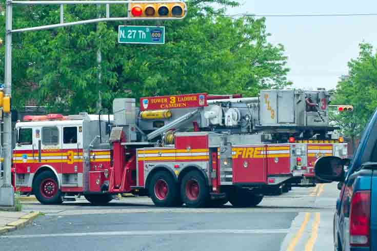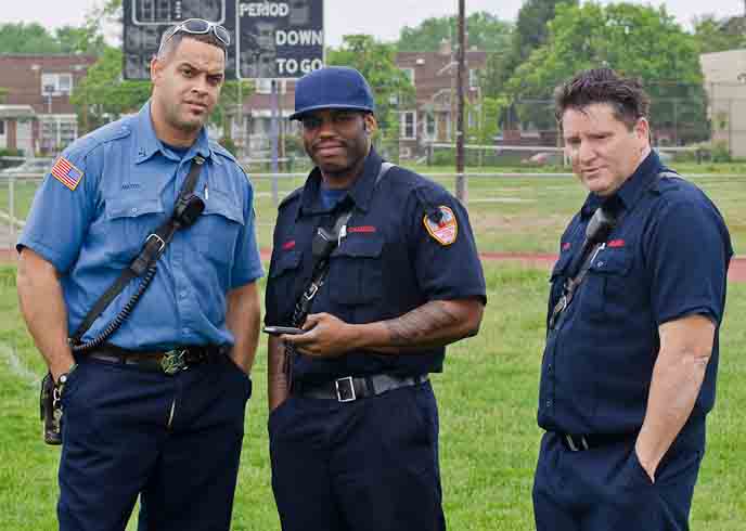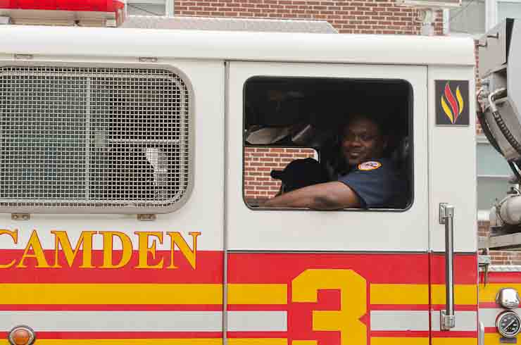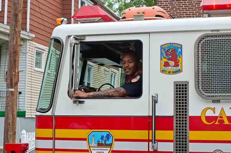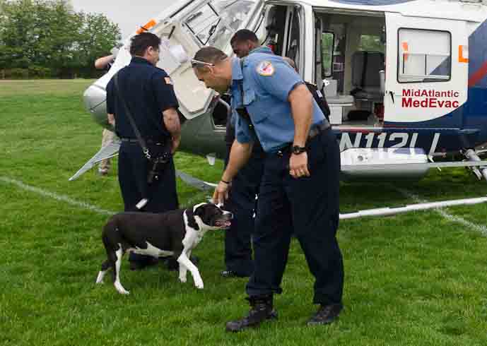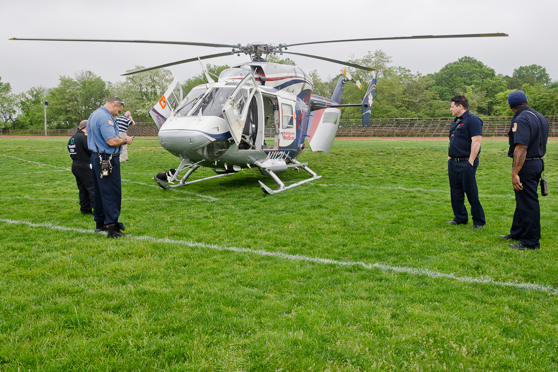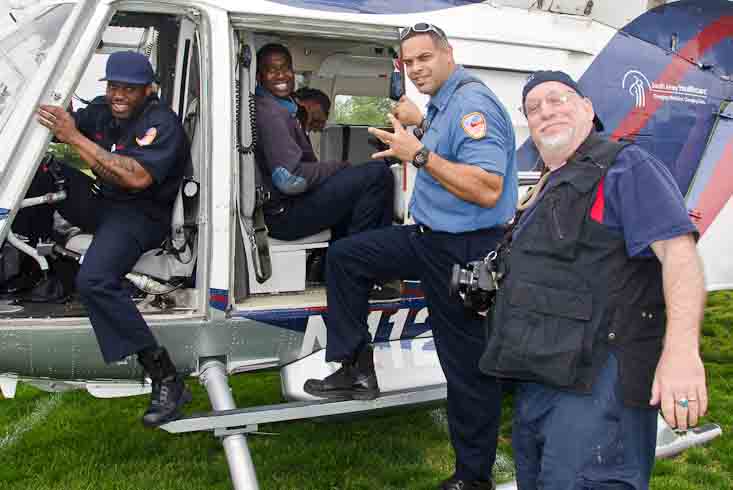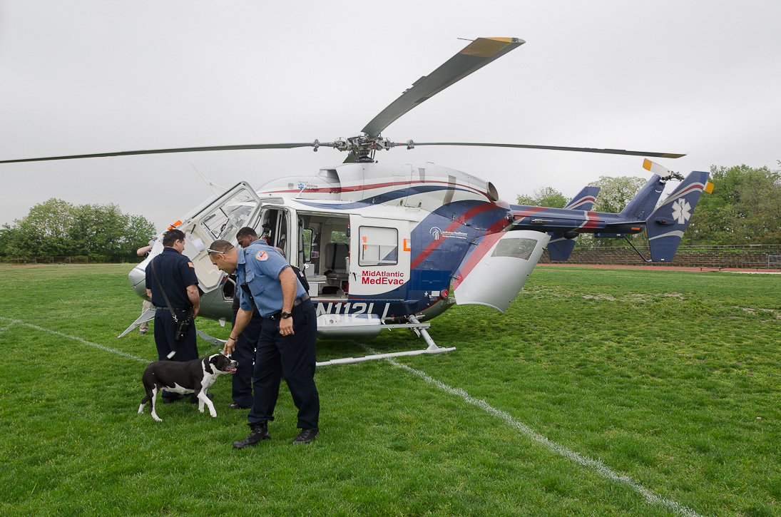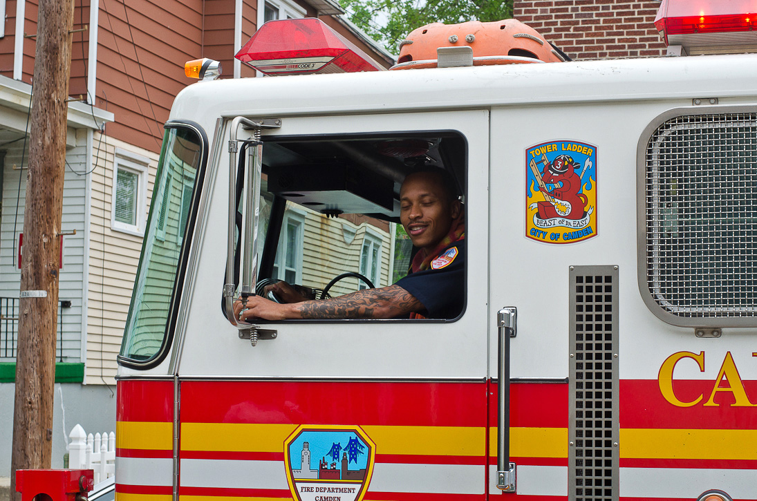 This page and the other pages in this series are the successors to the series of web-page about the Camden Fire Department that began with the page Camden Fire Department: The Fires of the Summer of 2011. On this and other pages in the series you will find pictures and information regarding different events and aspects of the fire service in Camden, New Jersey. On the afternoon of May 5, 2012 a call came over the radio about a dwelling fire at 3811 High Street in East Camden. I jumped into my truck, with camera, radio, and my dog Lola. There was no fire at the scene, Ladder 3 and Engine 9 were returning to quarters, so after taking a couple of pictures I went on my way, as there were things to do in East Camden. I stopped at Engine 11 for a few minutes, then went over to the East Camden firehouse. While there a call came for Squad 7 to go to Camden High School's football field to monitor a helicopter landing and take-off. As the weather was nice, aside from a cloudy sky, I thought this would be a good opportunity for Lola to stretch her legs a bit, so off we went. Not much drama, a bit of goofing around while waiting for the patient to come back to the helicopter from nearby Lady of Lourdes Hospital, and some pictures. Quiet is good! As with the web page covering other Camden Fire Department events, if you can identify anyone that I've missed, please comment at the bottom of the page. (I'm terrible at at names and faces). May 10, 2012 |