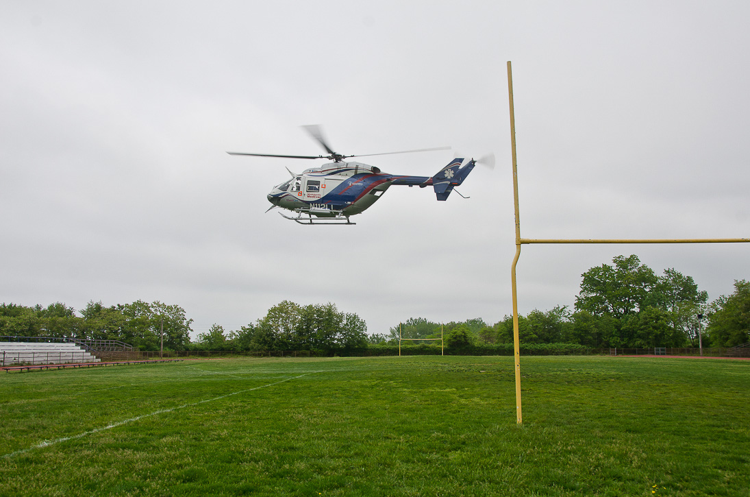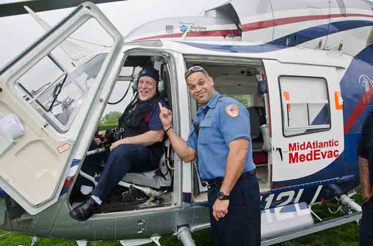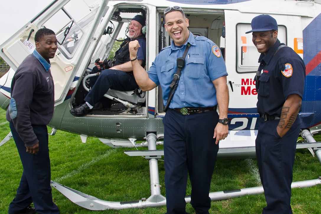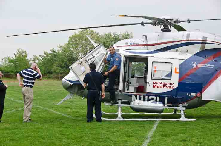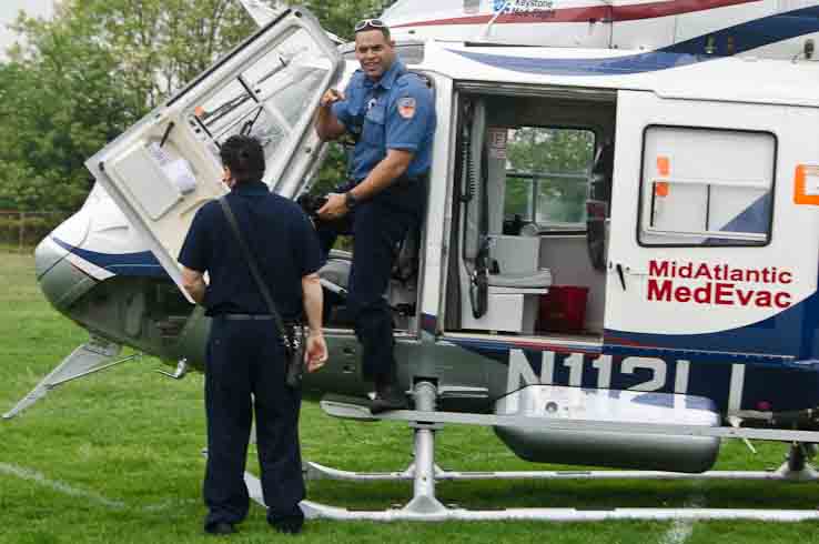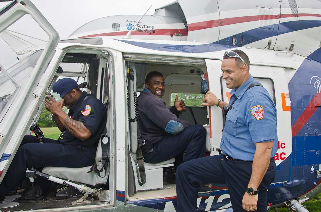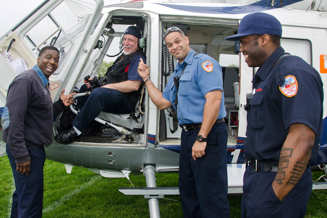 This page and the other pages in this series are the successors to the series of web-page about the Camden Fire Department that began with the page Camden Fire Department: The Fires of the Summer of 2011. On this and other pages in the series you will find pictures and information regarding different events and aspects of the fire service in Camden, New Jersey. On the afternoon of May 5, 2012 a call came over the radio about a dwelling fire at 3811 High Street in East Camden. I jumped into my truck, with camera, radio, and my dog Lola. There was no fire at the scene, Ladder 3 and Engine 9 were returning to quarters, so after taking a couple of pictures I went on my way, as there were things to do in East Camden. I stopped at Engine 11 for a few minutes, then went over to the East Camden firehouse. While there a call came for Squad 7 to go to Camden High School's football field to monitor a helicopter landing and take-off. As the weather was nice, aside from a cloudy sky, I thought this would be a good opportunity for Lola to stretch her legs a bit, so off we went. Not much drama, a bit of goofing around while waiting for the patient to come back to the helicopter from nearby Lady of Lourdes Hospital, and some pictures. Quiet is good! As with the web page covering other Camden Fire Department events, if you can identify anyone that I've missed, please comment at the bottom of the page. (I'm terrible at at names and faces). May 10, 2012 |