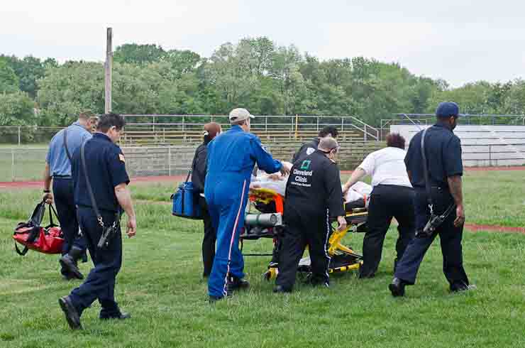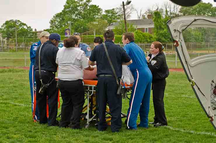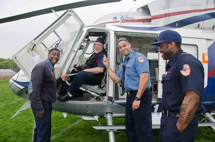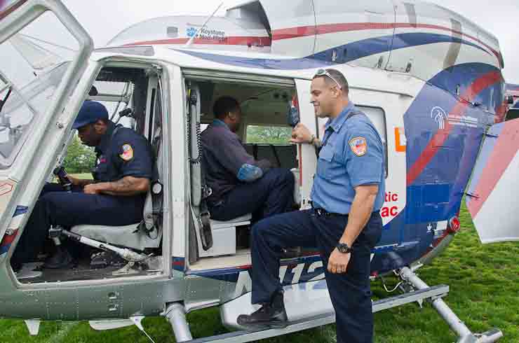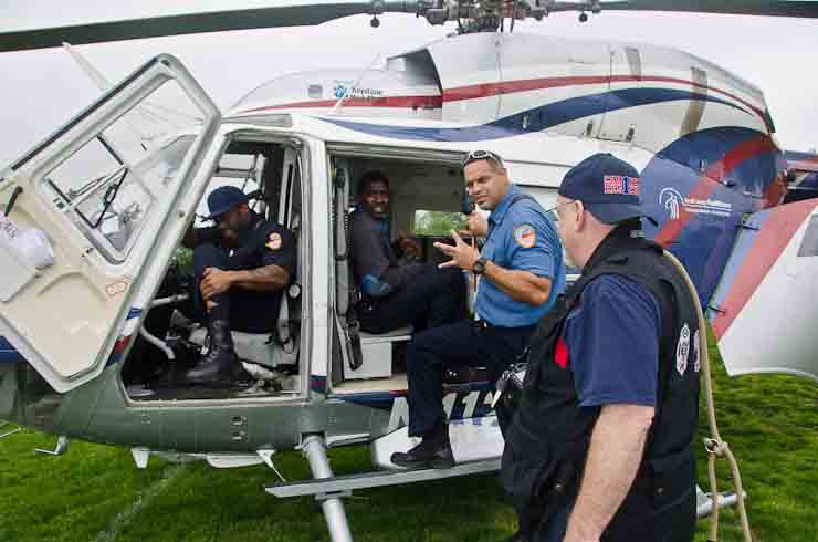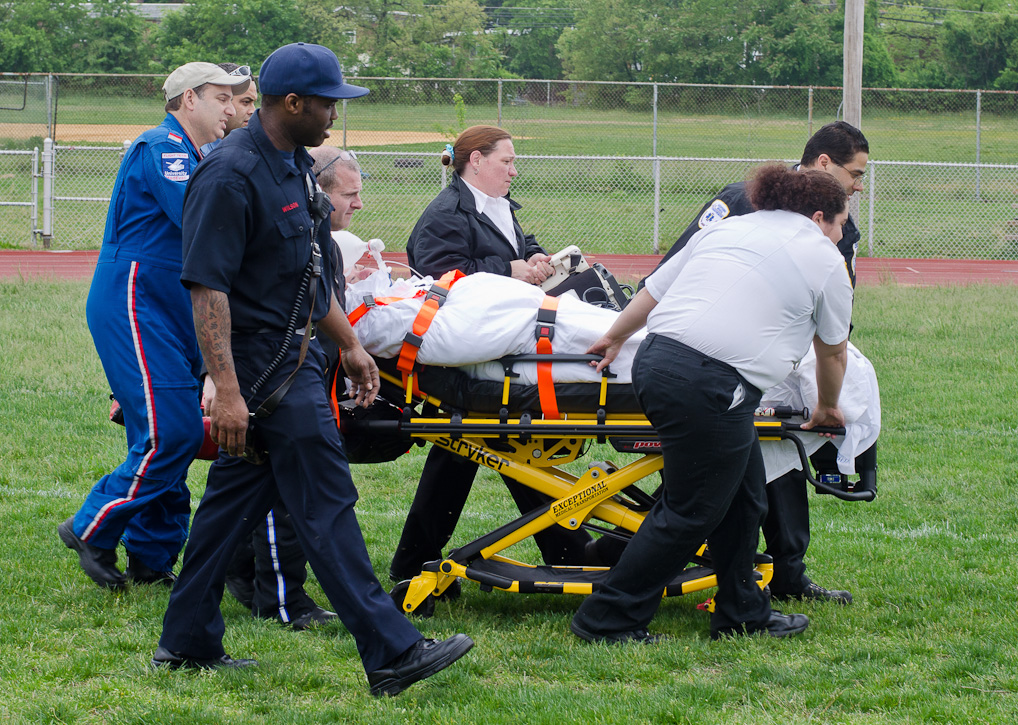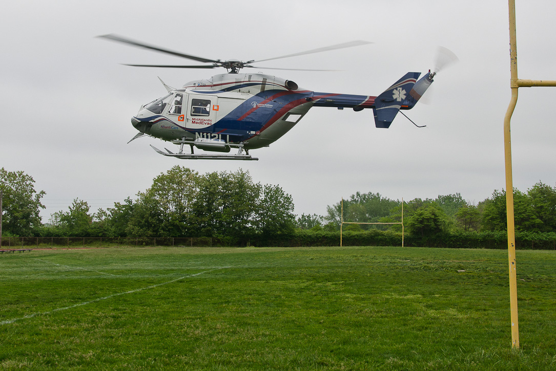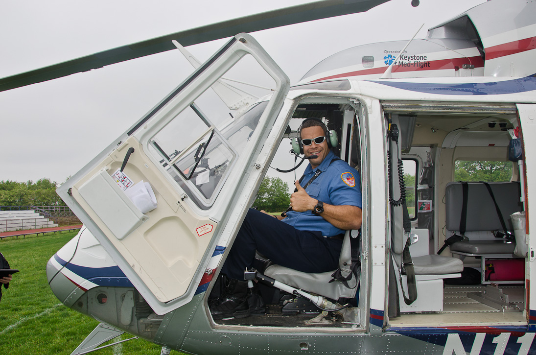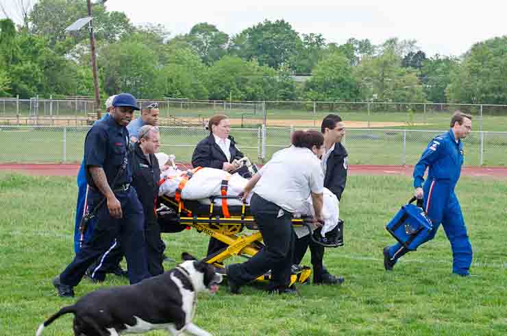 This page and the other pages in this series are the successors to the series of web-page about the Camden Fire Department that began with the page Camden Fire Department: The Fires of the Summer of 2011. On this and other pages in the series you will find pictures and information regarding different events and aspects of the fire service in Camden, New Jersey. On the afternoon of May 5, 2012 a call came over the radio about a dwelling fire at 3811 High Street in East Camden. I jumped into my truck, with camera, radio, and my dog Lola. There was no fire at the scene, Ladder 3 and Engine 9 were returning to quarters, so after taking a couple of pictures I went on my way, as there were things to do in East Camden. I stopped at Engine 11 for a few minutes, then went over to the East Camden firehouse. While there a call came for Squad 7 to go to Camden High School's football field to monitor a helicopter landing and take-off. As the weather was nice, aside from a cloudy sky, I thought this would be a good opportunity for Lola to stretch her legs a bit, so off we went. Not much drama, a bit of goofing around while waiting for the patient to come back to the helicopter from nearby Lady of Lourdes Hospital, and some pictures. Quiet is good! As with the web page covering other Camden Fire Department events, if you can identify anyone that I've missed, please comment at the bottom of the page. (I'm terrible at at names and faces). May 10, 2012 |