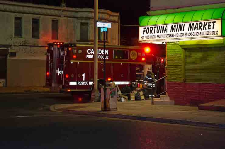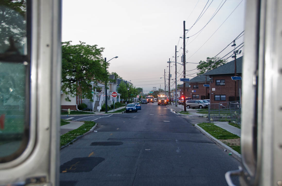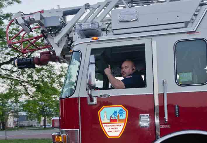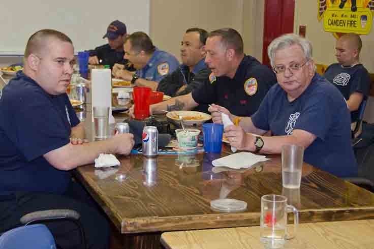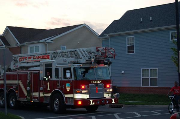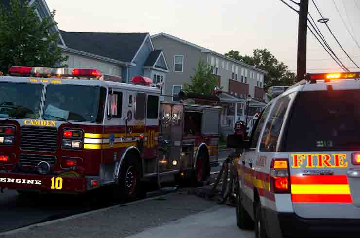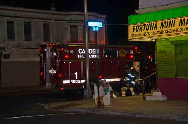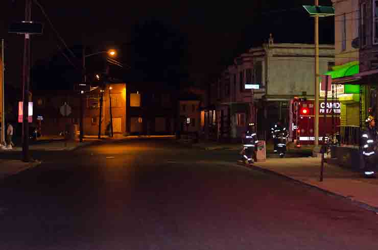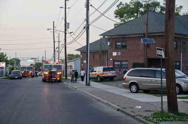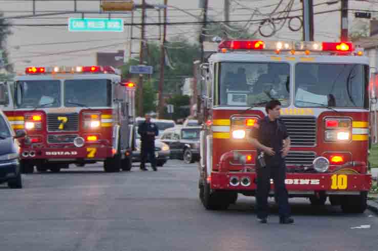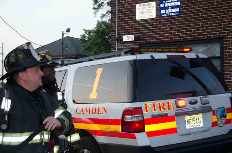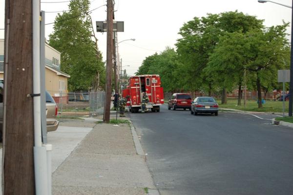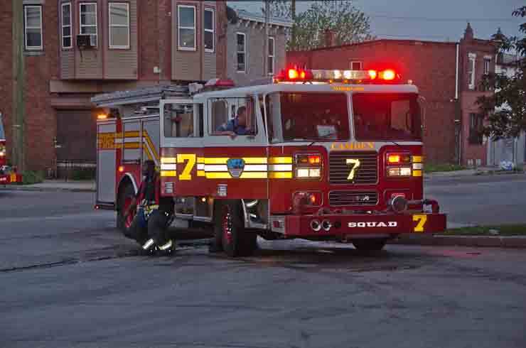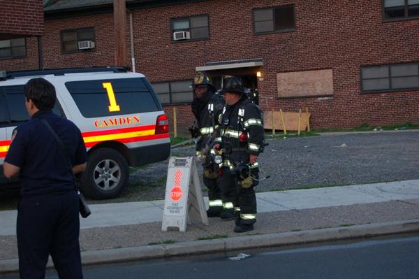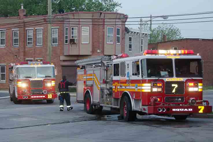 This page and the other pages in this series are the successors to the series of web-page about the Camden Fire Department that began with the page Camden Fire Department: The Fires of the Summer of 2011. On this and other pages in the series you will find pictures and information regarding different events and aspects of the fire service in Camden, New Jersey. Having received an invitation for a Sunday dinner at Liberty Station, with meatballs, sausage and gravy cooked by Engine 10's incomparable master chef, Joey DiPaolo, I was on hand and in good company in Camden when at about 7:40 a call came for a gas leak in a vacant unit at the Clement T. Branch Village public housing project on North 9th Street between Van Hook Street and Central Avenue. Riding in the back of the old Rescue truck was an experience… haven't been shaken that much since my last trip to an amusement park… still managed to get a couple of shots out the back, coming and going. After access was gained to the vacant apartment and the situation handled, we returned to Liberty Station for a bit more food and a lot more fellowship! On hand were Engine 10, Squad 7, Rescue 1, and Battalion Chief Frank Saia, who was on duty. Also in attendance was Squad 51 from the Gloucester City Fire Department and GCFD's Battalion Chief Charles Sanderson, a very good sign being that the two departments are working together more closely now than in past times. Other attendees included former Chief of Department Joe Marini, Fire Dispatcher Matthew DeGailler, photographer Dom Patricelli, and off-duty Deputy Chief Ed Glassman. A very good time was had by all. A few minutes after 9:00 PM another call concerning a gas leak was received, and the Camden companies were dispatched to 1206 Louis Street to investigate. This was handed and units returned to quarters. Besides the photos I took, there are 38 photos courtesy of Dom Patricelli on this page. On the way home I was driving down Haddon Avenue when word came of a car accident on Mickle Boulevard at Haddon Avenue. At 9:52 PM I got a picture of the ambulance as seen from my car window as I was stopped at the light. As with the web page covering other Camden Fire Department events, if you can identify anyone that I've missed, please comment at the bottom of the page. (I'm terrible at at names and faces). May 10, 2012 |