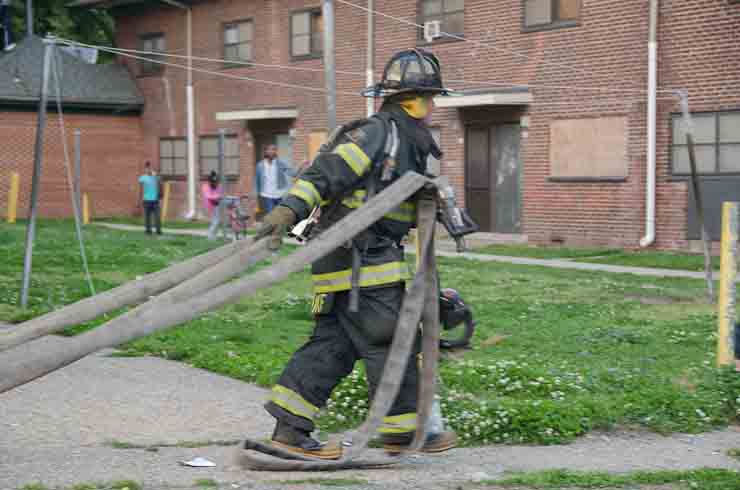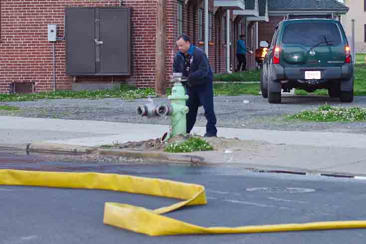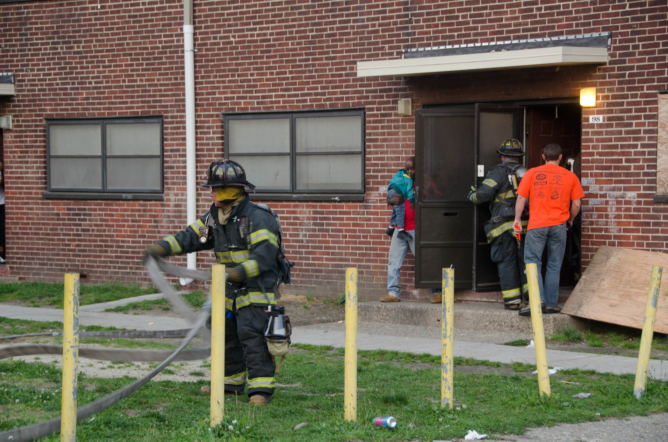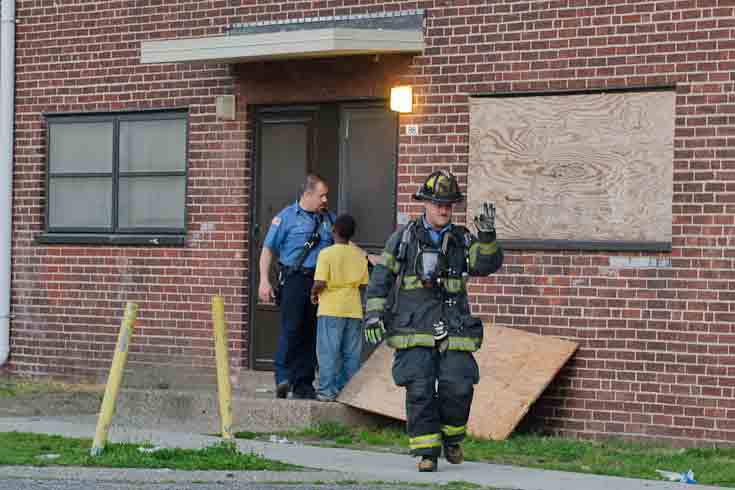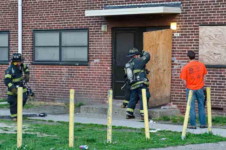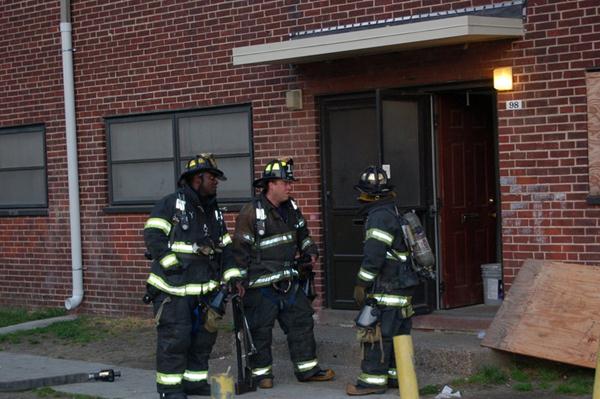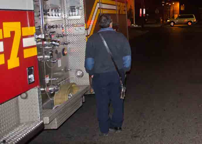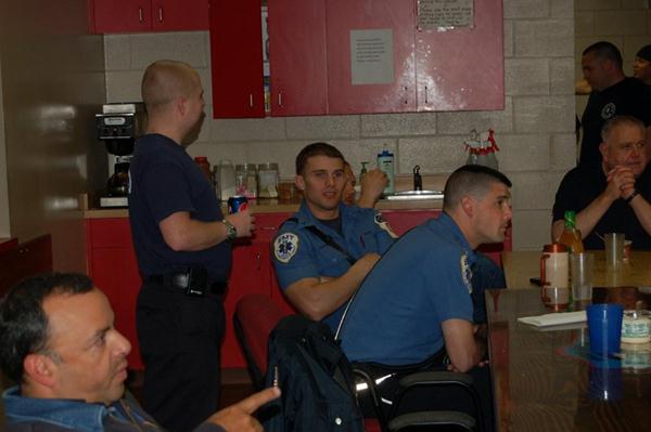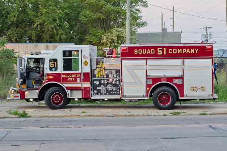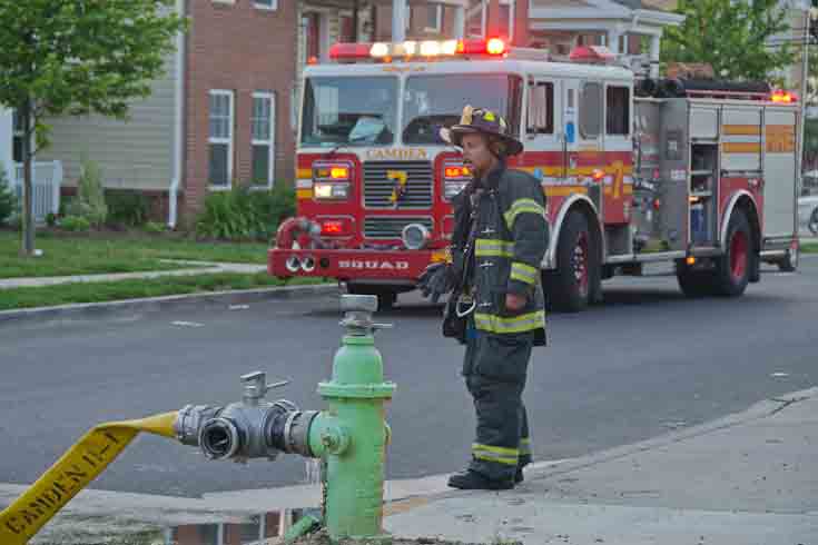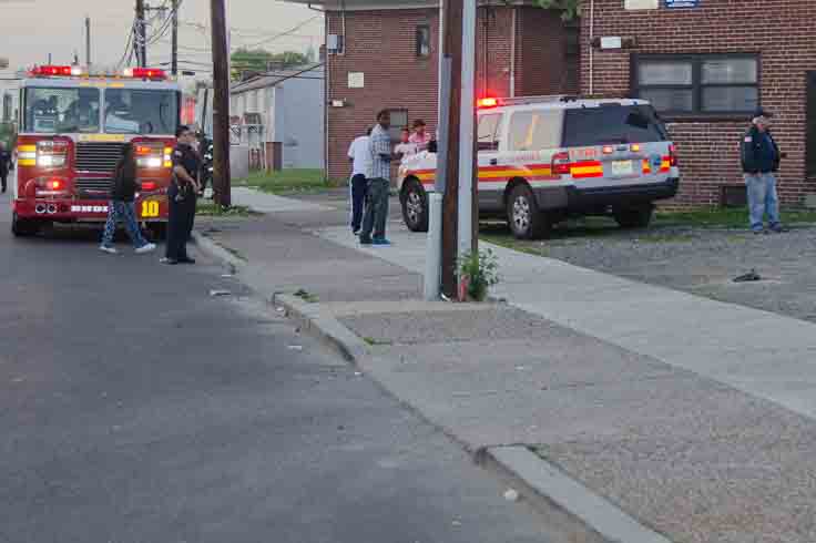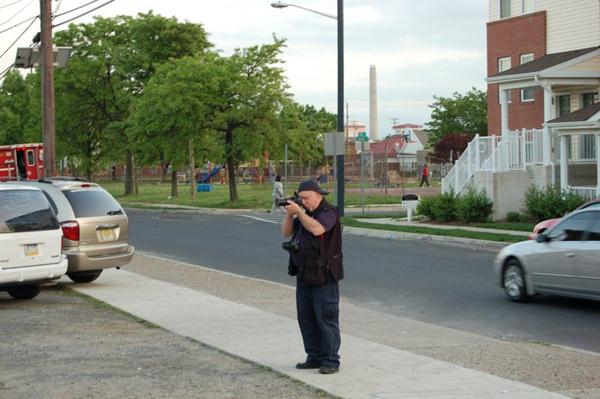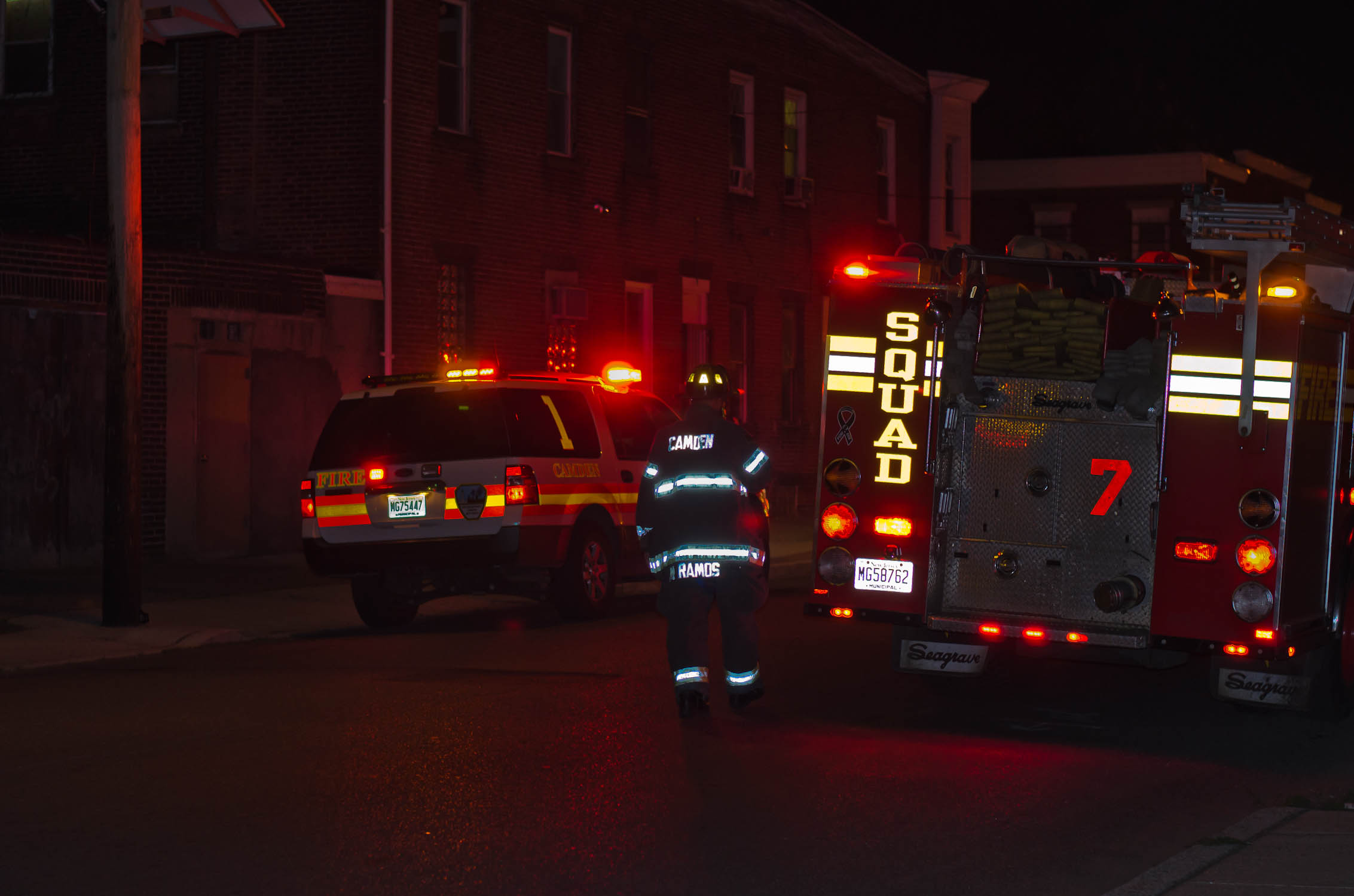 This page and the other pages in this series are the successors to the series of web-page about the Camden Fire Department that began with the page Camden Fire Department: The Fires of the Summer of 2011. On this and other pages in the series you will find pictures and information regarding different events and aspects of the fire service in Camden, New Jersey. Having received an invitation for a Sunday dinner at Liberty Station, with meatballs, sausage and gravy cooked by Engine 10's incomparable master chef, Joey DiPaolo, I was on hand and in good company in Camden when at about 7:40 a call came for a gas leak in a vacant unit at the Clement T. Branch Village public housing project on North 9th Street between Van Hook Street and Central Avenue. Riding in the back of the old Rescue truck was an experience… haven't been shaken that much since my last trip to an amusement park… still managed to get a couple of shots out the back, coming and going. After access was gained to the vacant apartment and the situation handled, we returned to Liberty Station for a bit more food and a lot more fellowship! On hand were Engine 10, Squad 7, Rescue 1, and Battalion Chief Frank Saia, who was on duty. Also in attendance was Squad 51 from the Gloucester City Fire Department and GCFD's Battalion Chief Charles Sanderson, a very good sign being that the two departments are working together more closely now than in past times. Other attendees included former Chief of Department Joe Marini, Fire Dispatcher Matthew DeGailler, photographer Dom Patricelli, and off-duty Deputy Chief Ed Glassman. A very good time was had by all. A few minutes after 9:00 PM another call concerning a gas leak was received, and the Camden companies were dispatched to 1206 Louis Street to investigate. This was handed and units returned to quarters. Besides the photos I took, there are 38 photos courtesy of Dom Patricelli on this page. On the way home I was driving down Haddon Avenue when word came of a car accident on Mickle Boulevard at Haddon Avenue. At 9:52 PM I got a picture of the ambulance as seen from my car window as I was stopped at the light. As with the web page covering other Camden Fire Department events, if you can identify anyone that I've missed, please comment at the bottom of the page. (I'm terrible at at names and faces). May 10, 2012 |