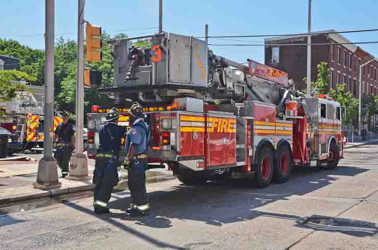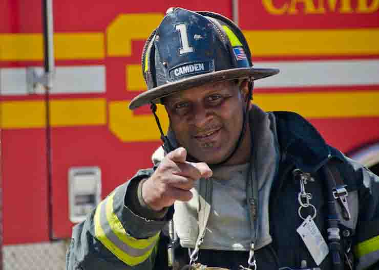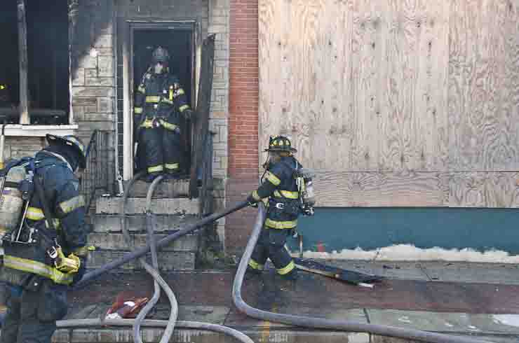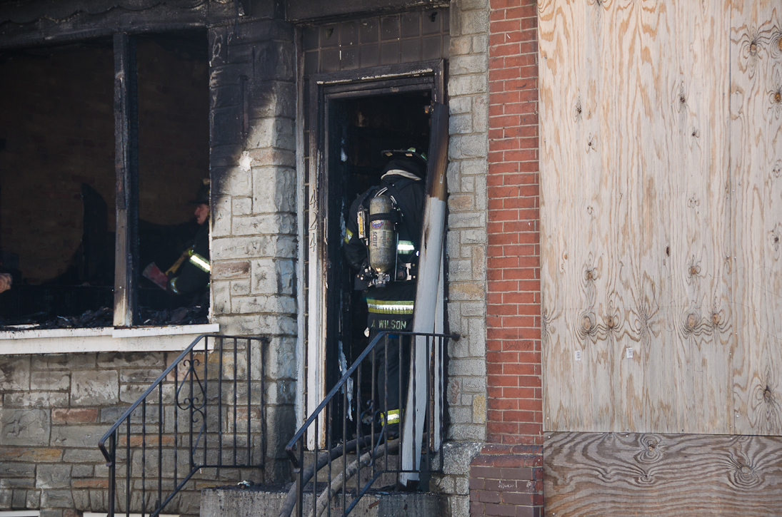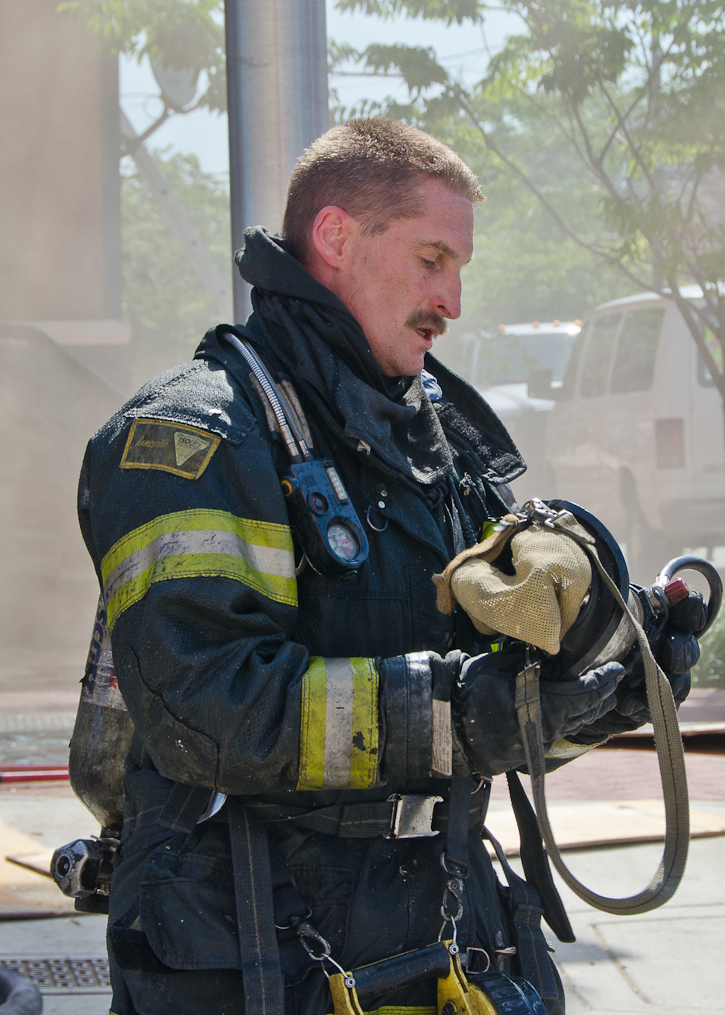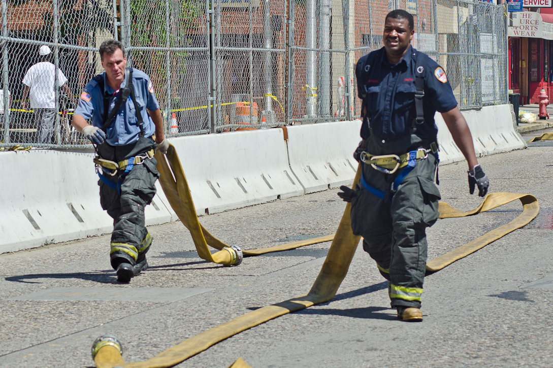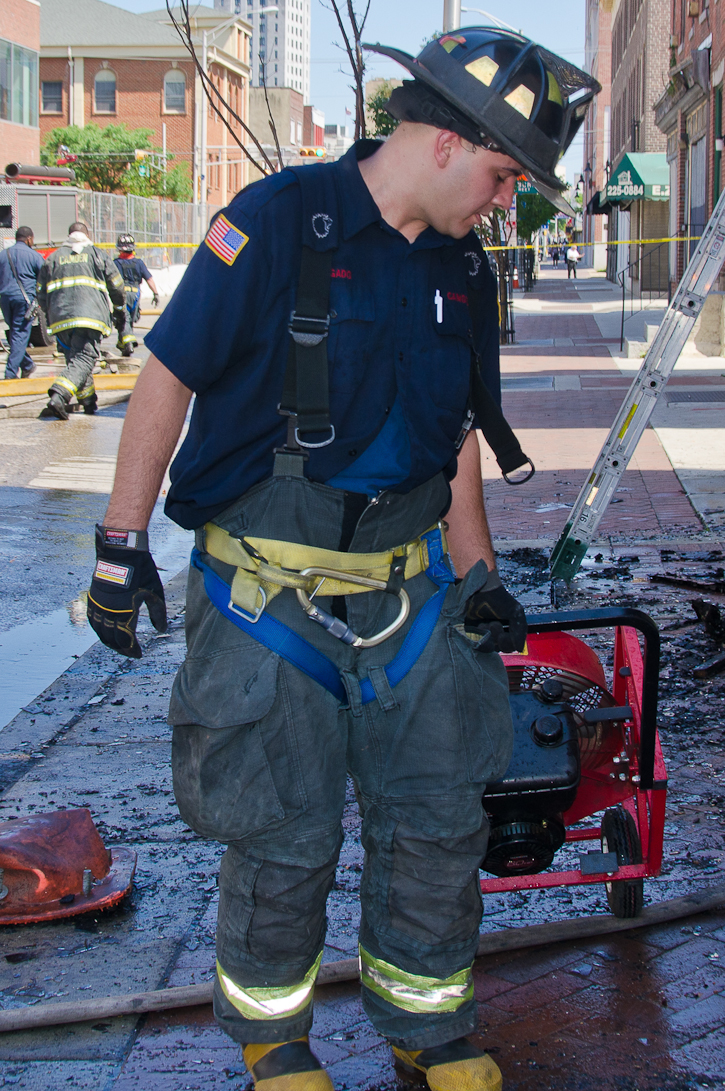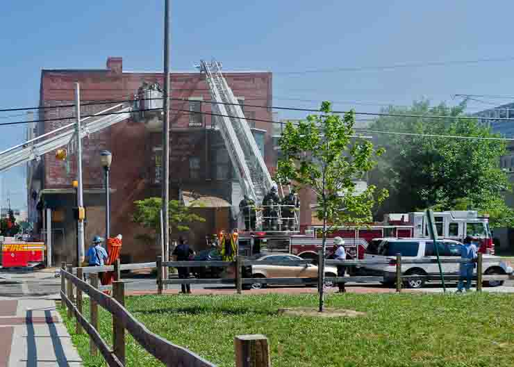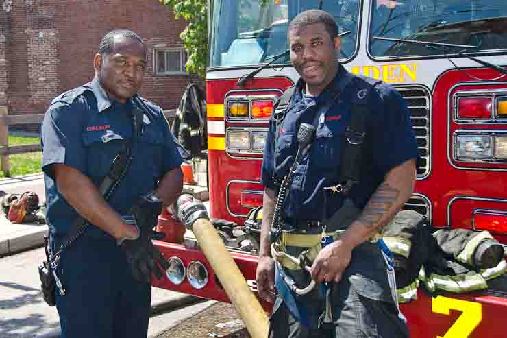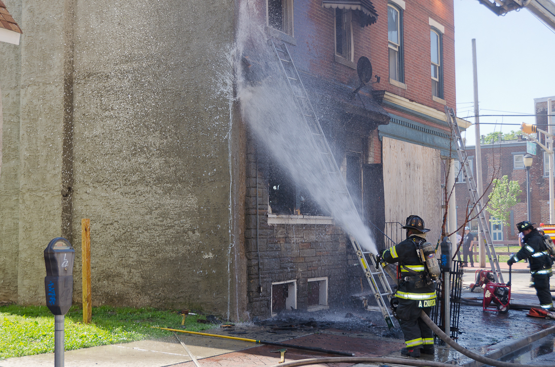This page and the other pages in this series are the successors to the series of web-page about the Camden Fire Department that began with the page Camden Fire Department: The Fires of the Summer of 2011. On this and other pages in the series you will find pictures and information regarding different events and aspects of the fire service in Camden, New Jersey. On March 23, 2012 the Camden Fire Department put out a fire in a vacant (except for squatters) building at 426 Broadway. On May 31, the Department return to take care of a fire next door, at 424 Broadway, also vacant and also infested by squatters. The Battalion Chief on arrival reported heavy fire showing from the second floor of a three-story dwelling, with a person trapped. Multiple hand lines and two ladders were put into service. A woman was rescued from the second floor and taken to Cooper Trauma Center, firefighters Denis O'Reilly and Victor Torres being the heroes of the day. Besides the photos presented on this page, which I shot, there are many more pictures, taken by Ted Aurig, that can be seen at NewJerseyFireground.com. As with the web page covering other Camden Fire Department events, if you can identify anyone that I've missed, please comment at the bottom of the page. (I'm terrible at at names and faces). June 25, 2012 |