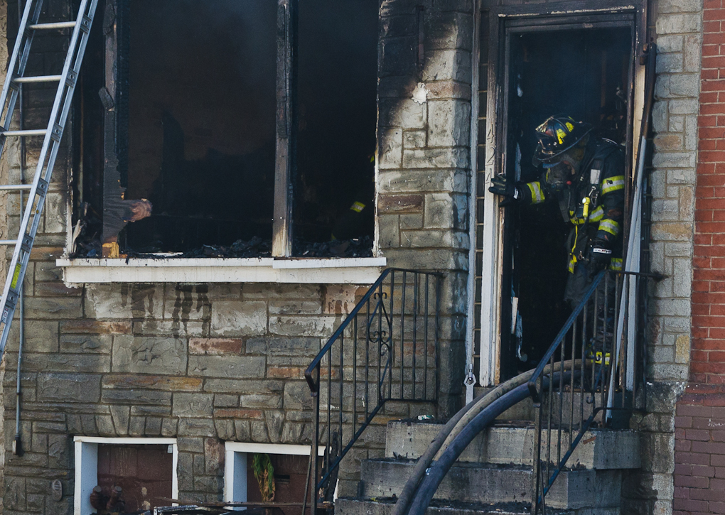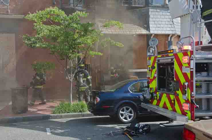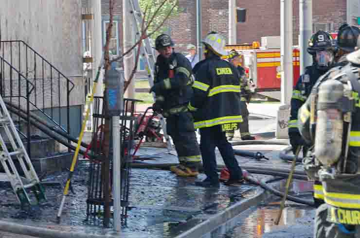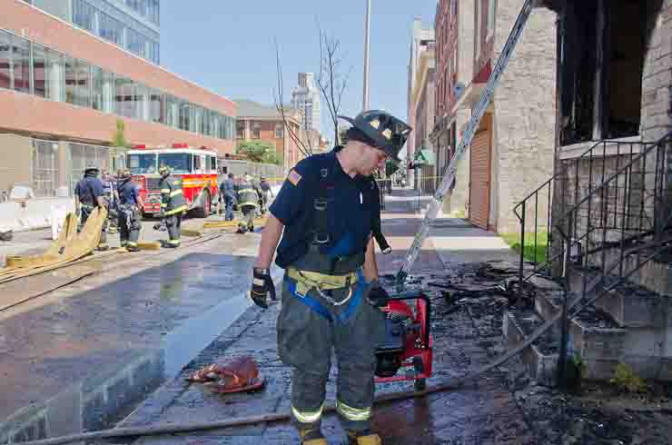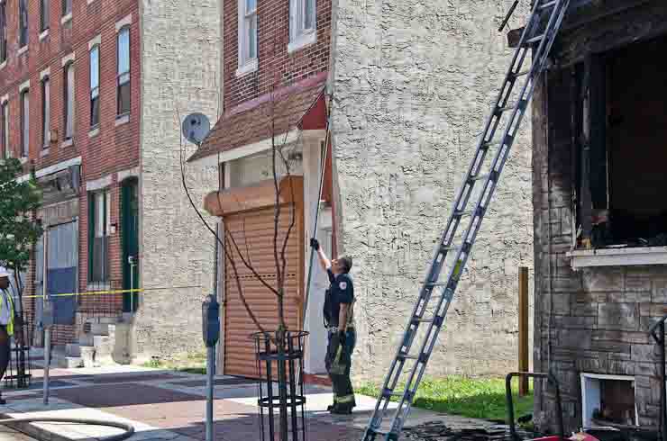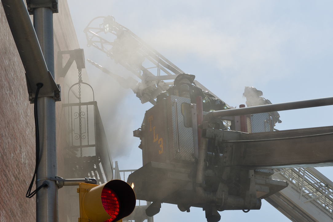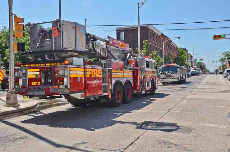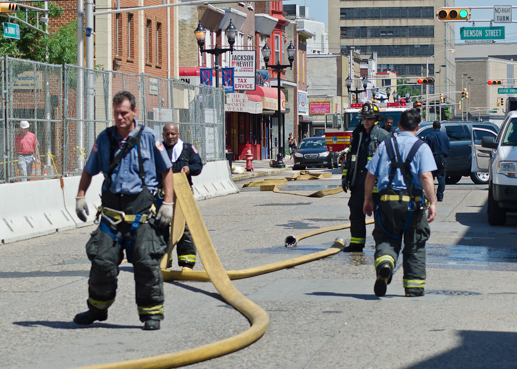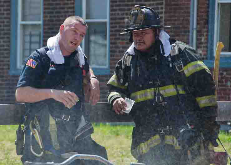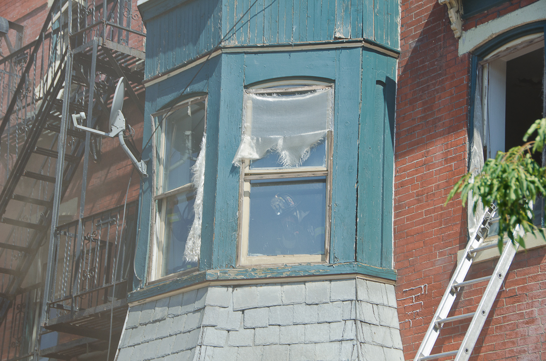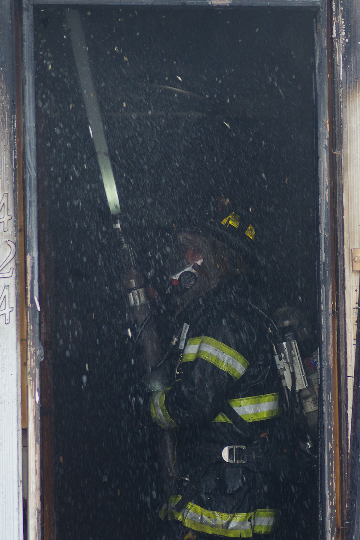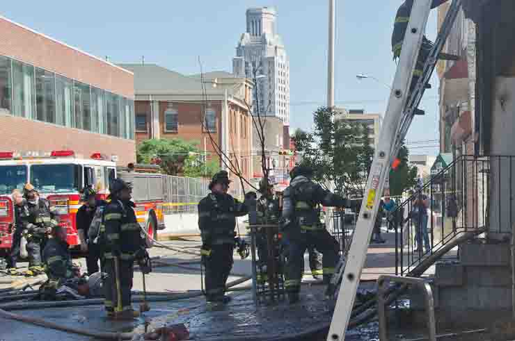 This page and the other pages in this series are the successors to the series of web-page about the Camden Fire Department that began with the page Camden Fire Department: The Fires of the Summer of 2011. On this and other pages in the series you will find pictures and information regarding different events and aspects of the fire service in Camden, New Jersey. On March 23, 2012 the Camden Fire Department put out a fire in a vacant (except for squatters) building at 426 Broadway. On May 31, the Department return to take care of a fire next door, at 424 Broadway, also vacant and also infested by squatters. The Battalion Chief on arrival reported heavy fire showing from the second floor of a three-story dwelling, with a person trapped. Multiple hand lines and two ladders were put into service. A woman was rescued from the second floor and taken to Cooper Trauma Center, firefighters Denis O'Reilly and Victor Torres being the heroes of the day. Besides the photos presented on this page, which I shot, there are many more pictures, taken by Ted Aurig, that can be seen at NewJerseyFireground.com. As with the web page covering other Camden Fire Department events, if you can identify anyone that I've missed, please comment at the bottom of the page. (I'm terrible at at names and faces). June 25, 2012 |