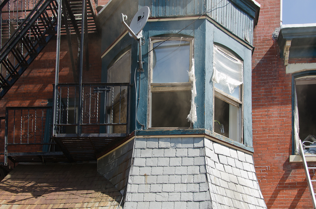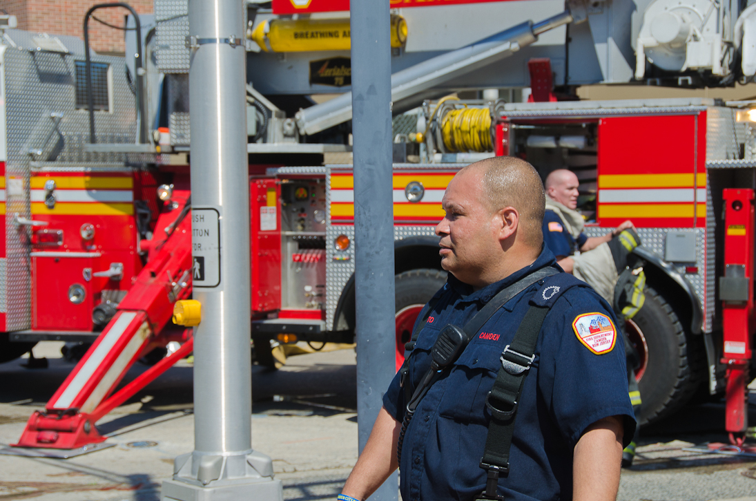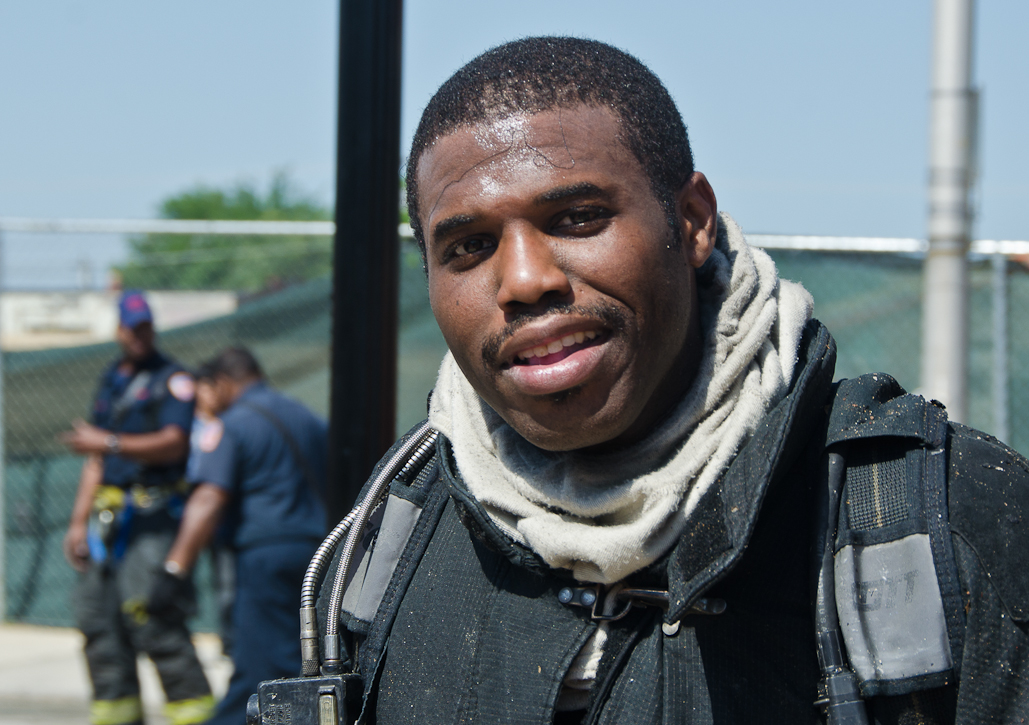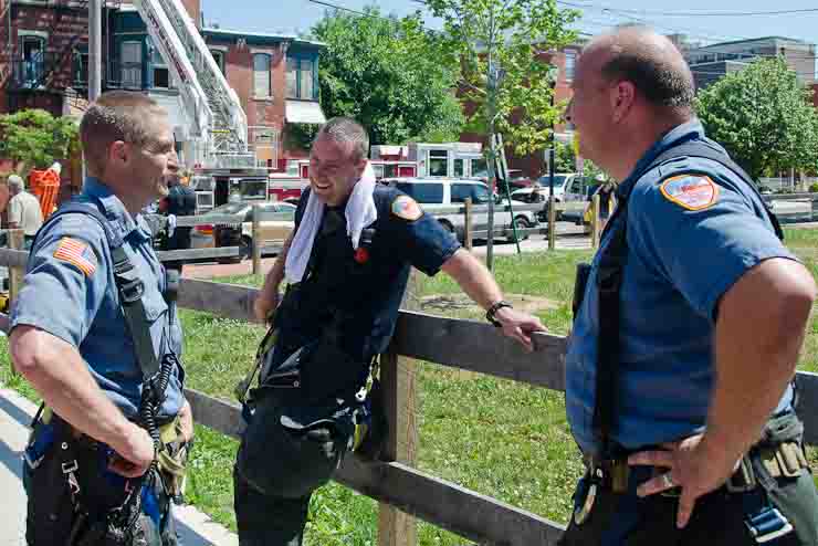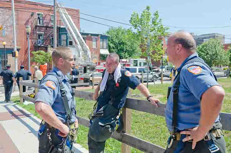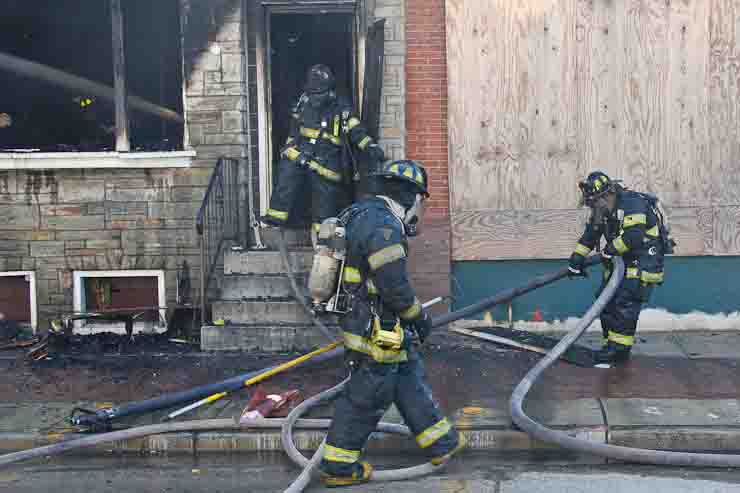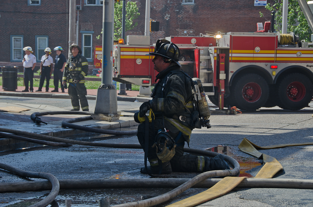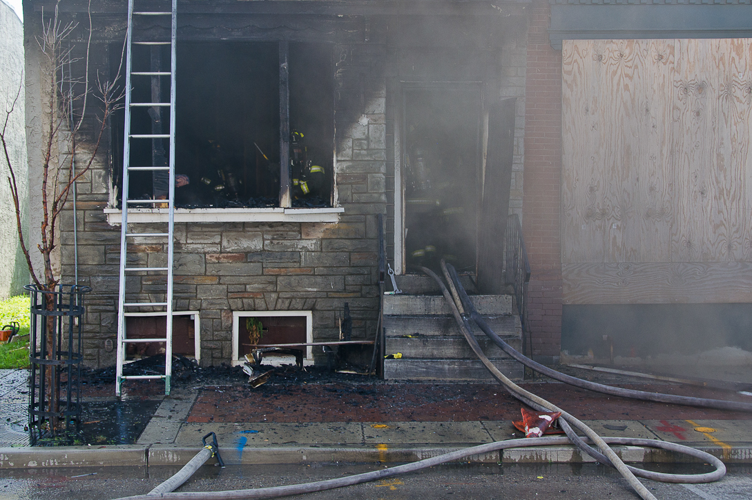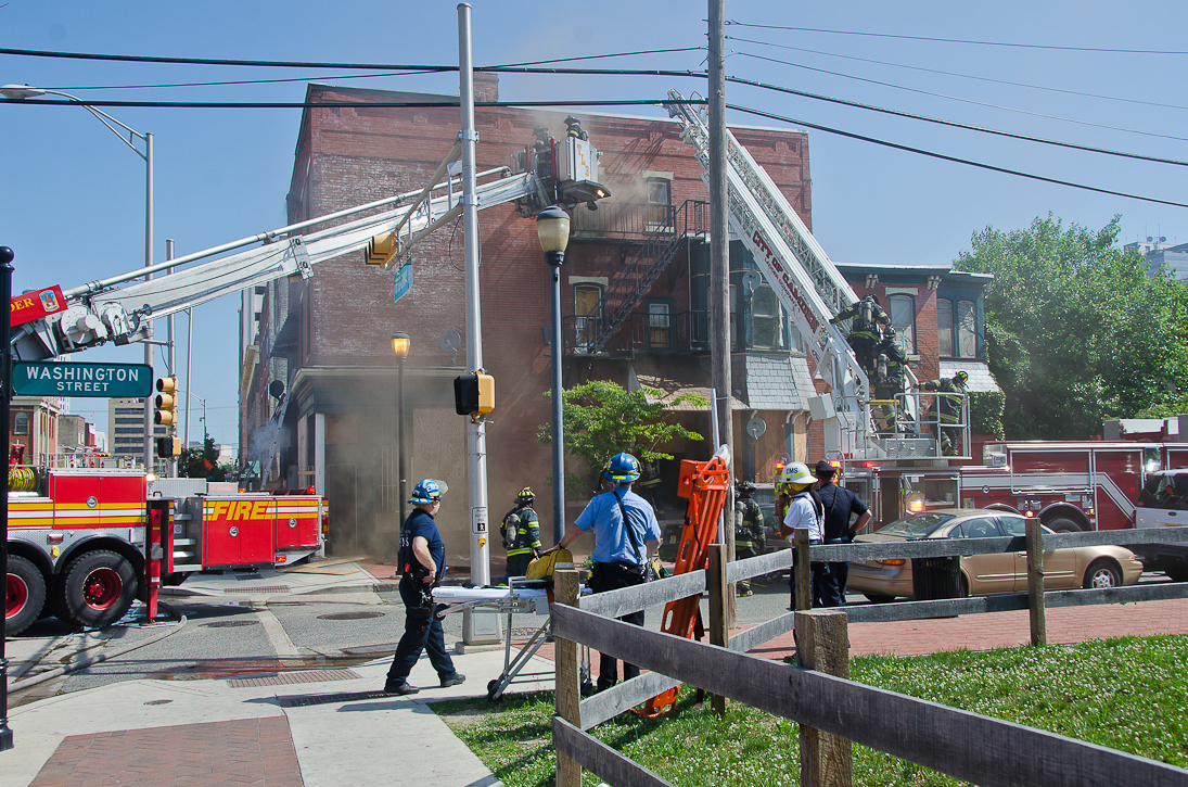 This page and the other pages in this series are the successors to the series of web-page about the Camden Fire Department that began with the page Camden Fire Department: The Fires of the Summer of 2011. On this and other pages in the series you will find pictures and information regarding different events and aspects of the fire service in Camden, New Jersey. On March 23, 2012 the Camden Fire Department put out a fire in a vacant (except for squatters) building at 426 Broadway. On May 31, the Department return to take care of a fire next door, at 424 Broadway, also vacant and also infested by squatters. The Battalion Chief on arrival reported heavy fire showing from the second floor of a three-story dwelling, with a person trapped. Multiple hand lines and two ladders were put into service. A woman was rescued from the second floor and taken to Cooper Trauma Center, firefighters Denis O'Reilly and Victor Torres being the heroes of the day. Besides the photos presented on this page, which I shot, there are many more pictures, taken by Ted Aurig, that can be seen at NewJerseyFireground.com. As with the web page covering other Camden Fire Department events, if you can identify anyone that I've missed, please comment at the bottom of the page. (I'm terrible at at names and faces). June 25, 2012 |