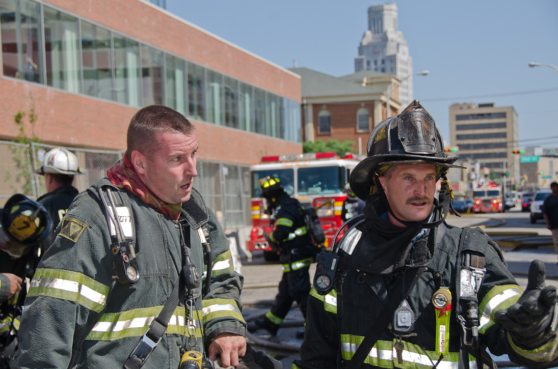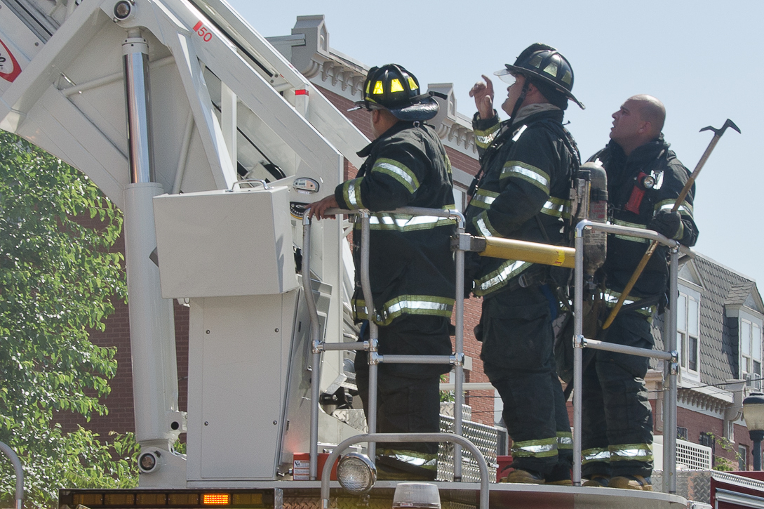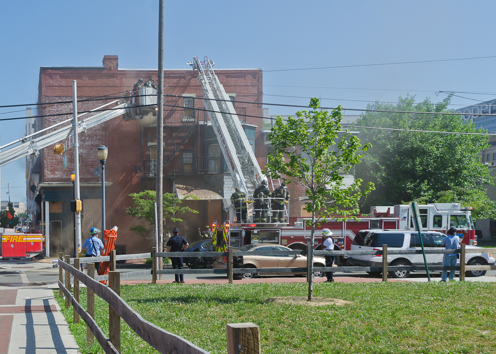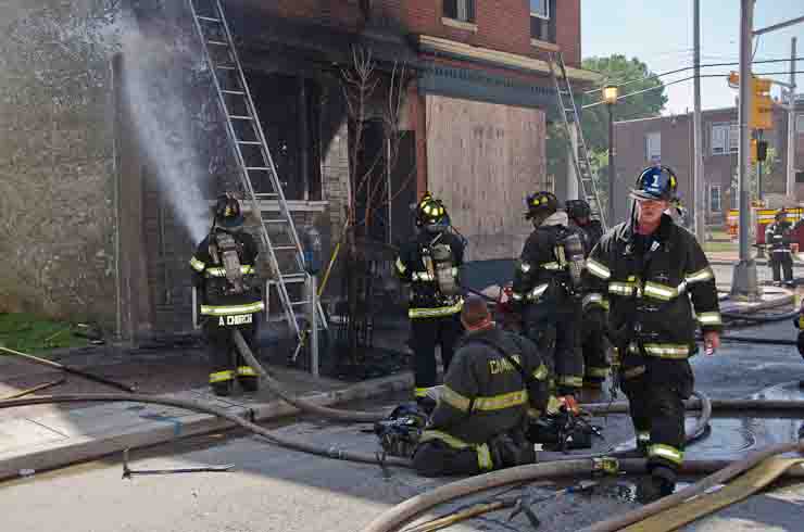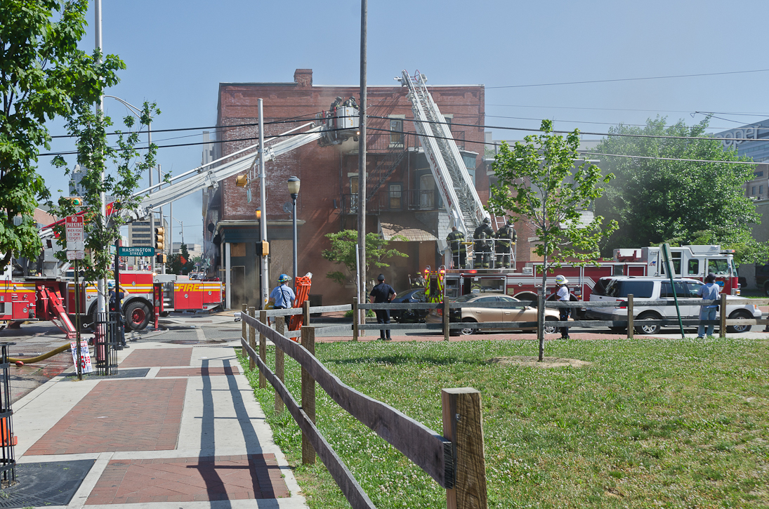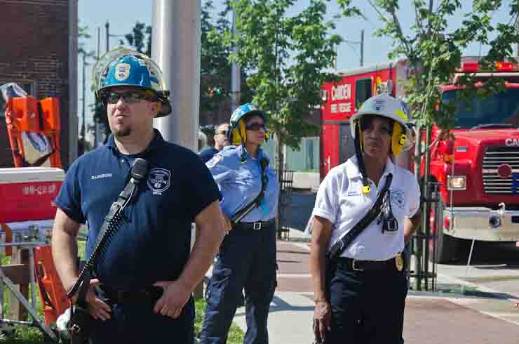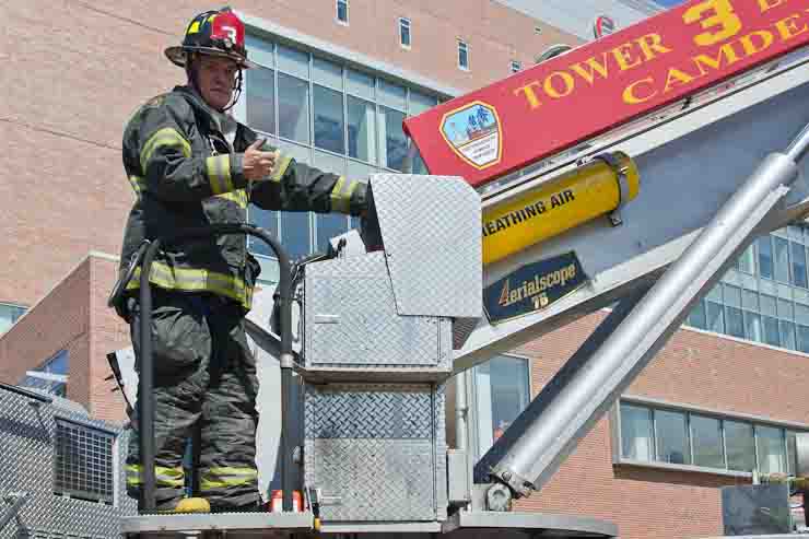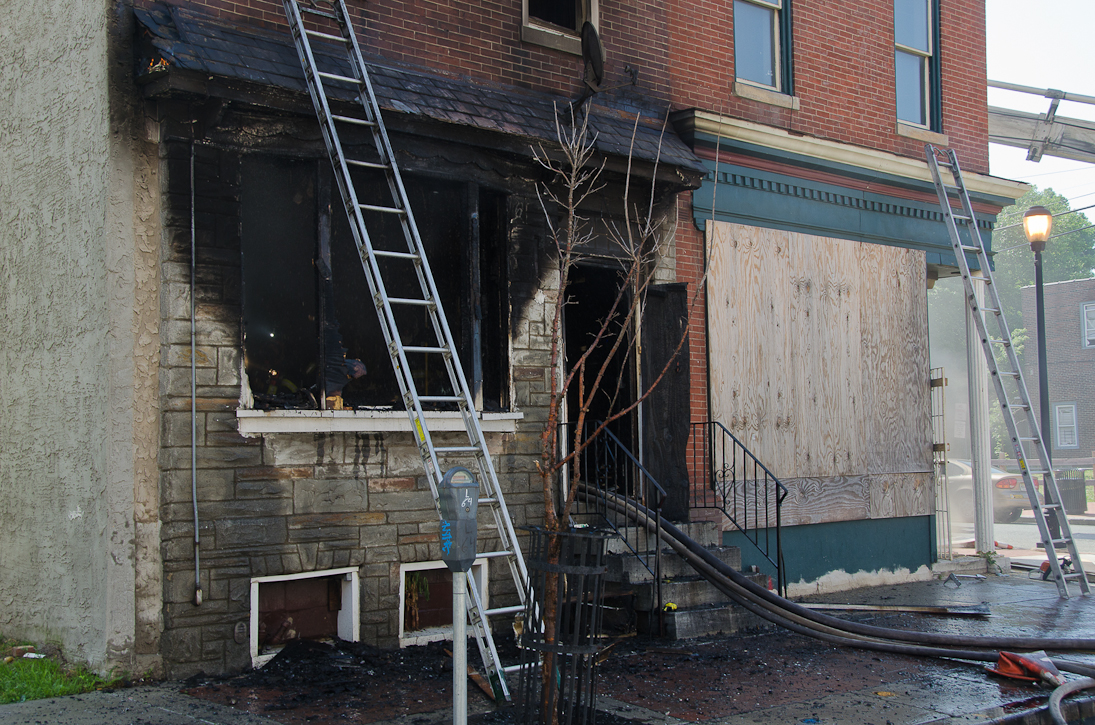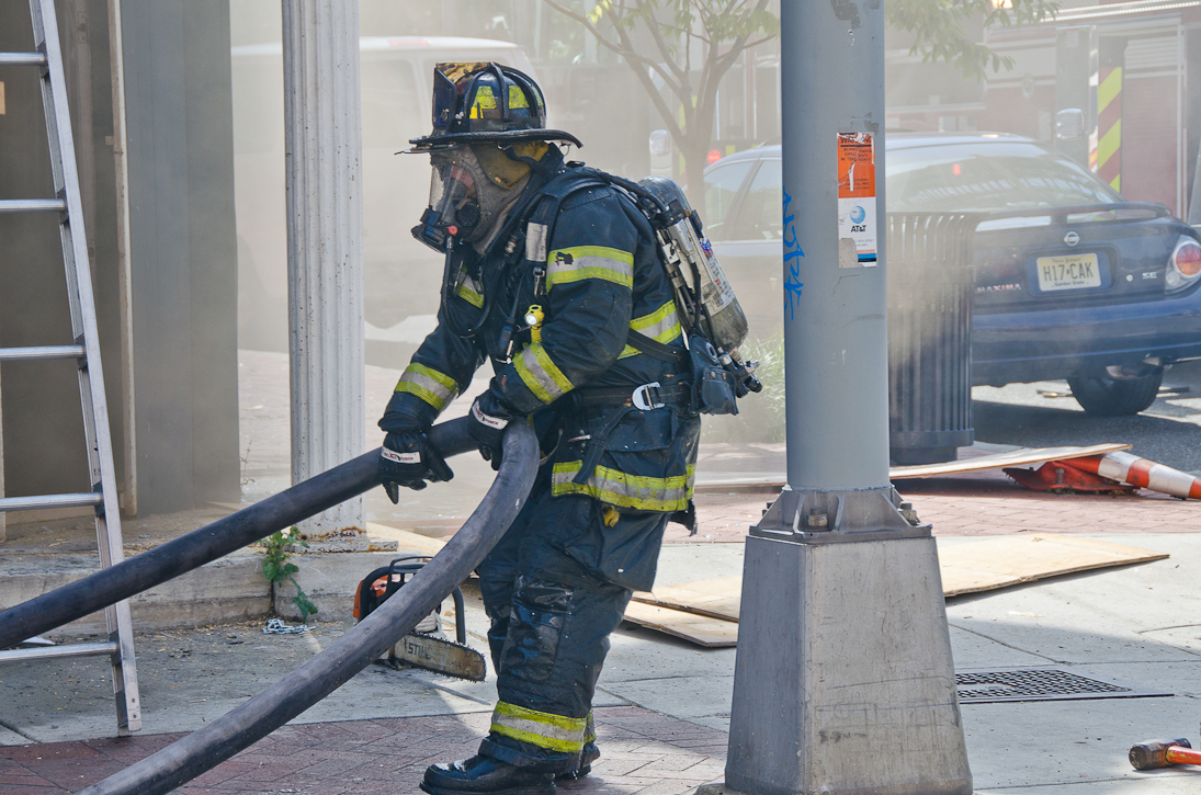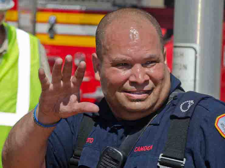 This page and the other pages in this series are the successors to the series of web-page about the Camden Fire Department that began with the page Camden Fire Department: The Fires of the Summer of 2011. On this and other pages in the series you will find pictures and information regarding different events and aspects of the fire service in Camden, New Jersey. On March 23, 2012 the Camden Fire Department put out a fire in a vacant (except for squatters) building at 426 Broadway. On May 31, the Department return to take care of a fire next door, at 424 Broadway, also vacant and also infested by squatters. The Battalion Chief on arrival reported heavy fire showing from the second floor of a three-story dwelling, with a person trapped. Multiple hand lines and two ladders were put into service. A woman was rescued from the second floor and taken to Cooper Trauma Center, firefighters Denis O'Reilly and Victor Torres being the heroes of the day. Besides the photos presented on this page, which I shot, there are many more pictures, taken by Ted Aurig, that can be seen at NewJerseyFireground.com. As with the web page covering other Camden Fire Department events, if you can identify anyone that I've missed, please comment at the bottom of the page. (I'm terrible at at names and faces). June 25, 2012 |