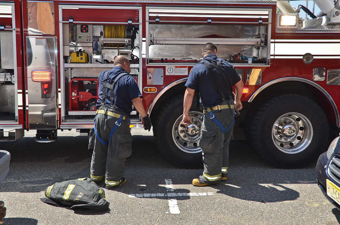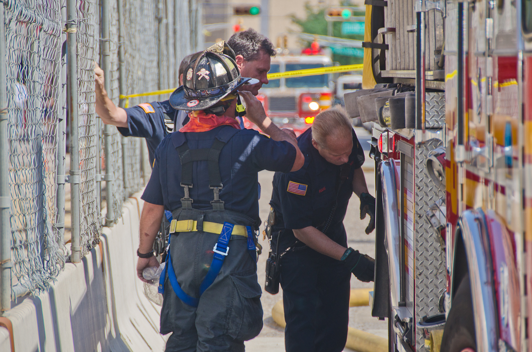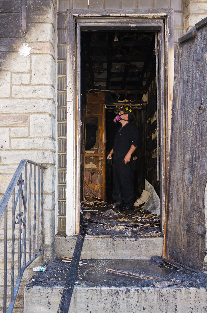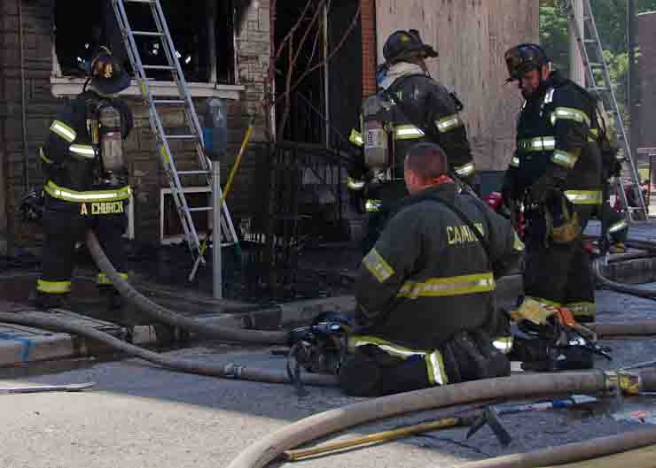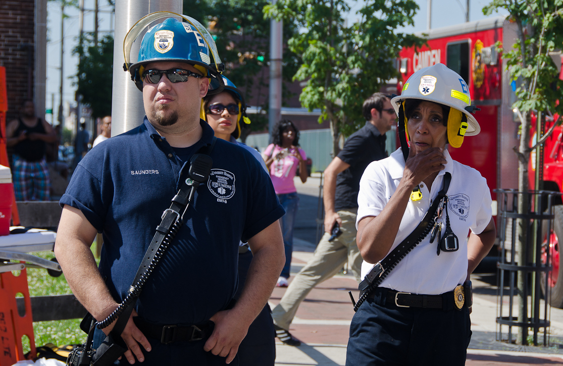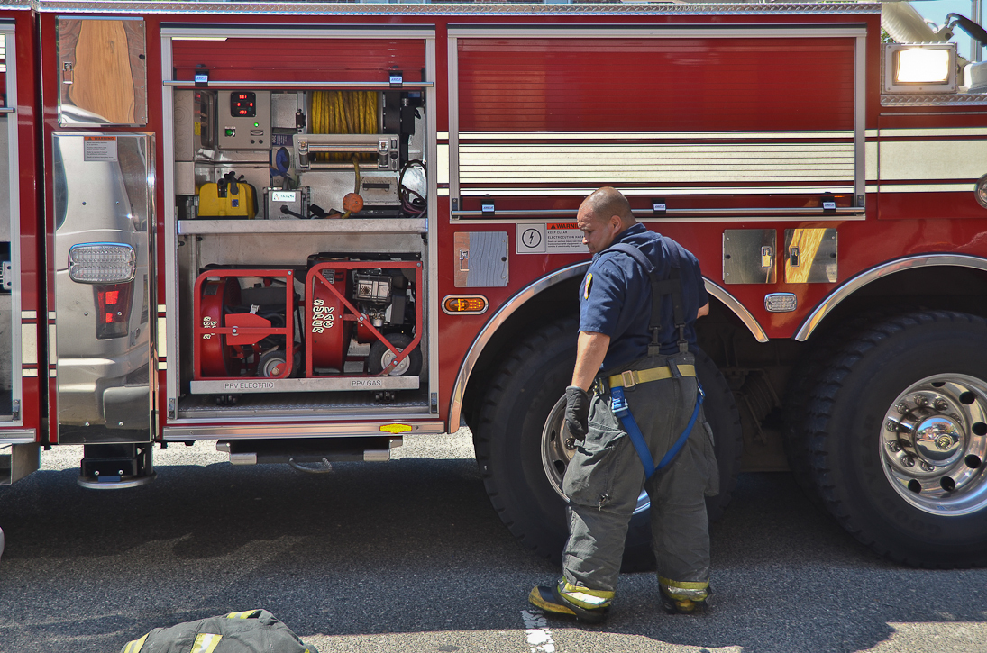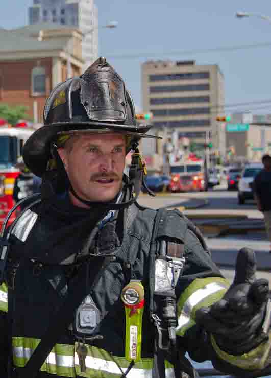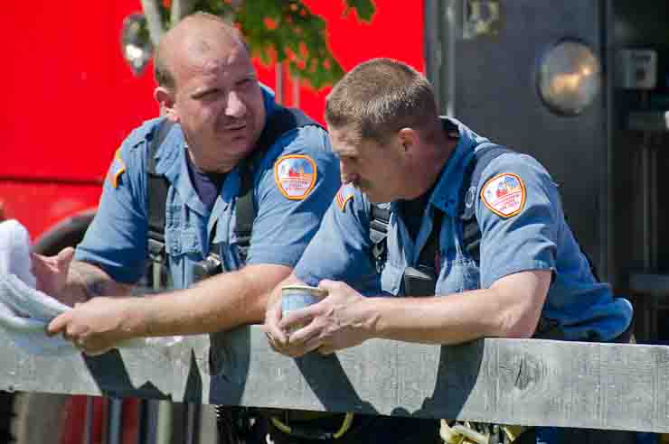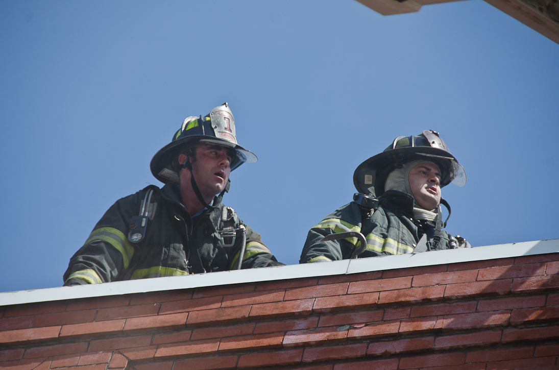This page and the other pages in this series are the successors to the series of web-page about the Camden Fire Department that began with the page Camden Fire Department: The Fires of the Summer of 2011. On this and other pages in the series you will find pictures and information regarding different events and aspects of the fire service in Camden, New Jersey. On March 23, 2012 the Camden Fire Department put out a fire in a vacant (except for squatters) building at 426 Broadway. On May 31, the Department return to take care of a fire next door, at 424 Broadway, also vacant and also infested by squatters. The Battalion Chief on arrival reported heavy fire showing from the second floor of a three-story dwelling, with a person trapped. Multiple hand lines and two ladders were put into service. A woman was rescued from the second floor and taken to Cooper Trauma Center, firefighters Denis O'Reilly and Victor Torres being the heroes of the day. Besides the photos presented on this page, which I shot, there are many more pictures, taken by Ted Aurig, that can be seen at NewJerseyFireground.com. As with the web page covering other Camden Fire Department events, if you can identify anyone that I've missed, please comment at the bottom of the page. (I'm terrible at at names and faces). June 25, 2012 |