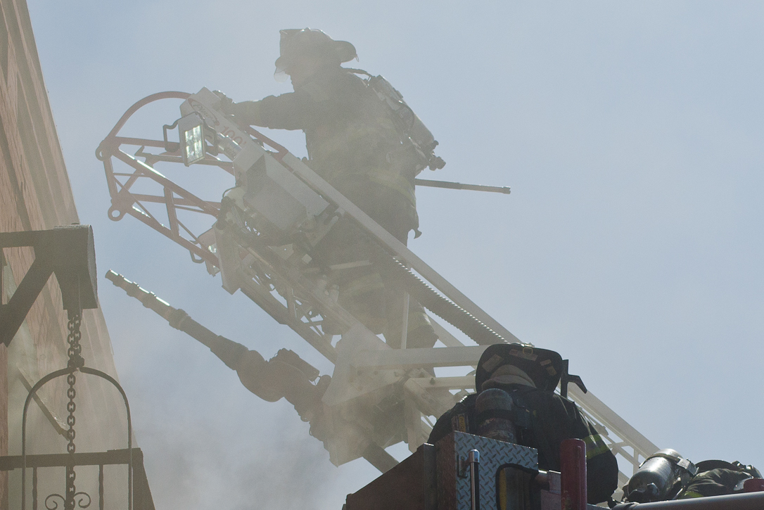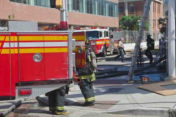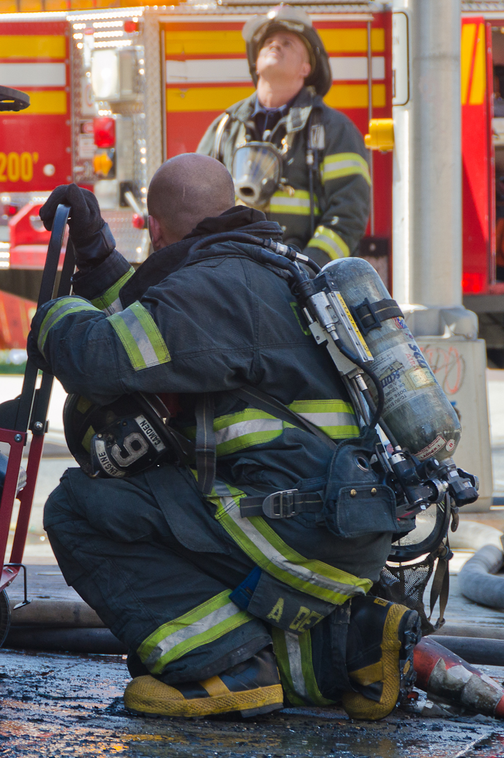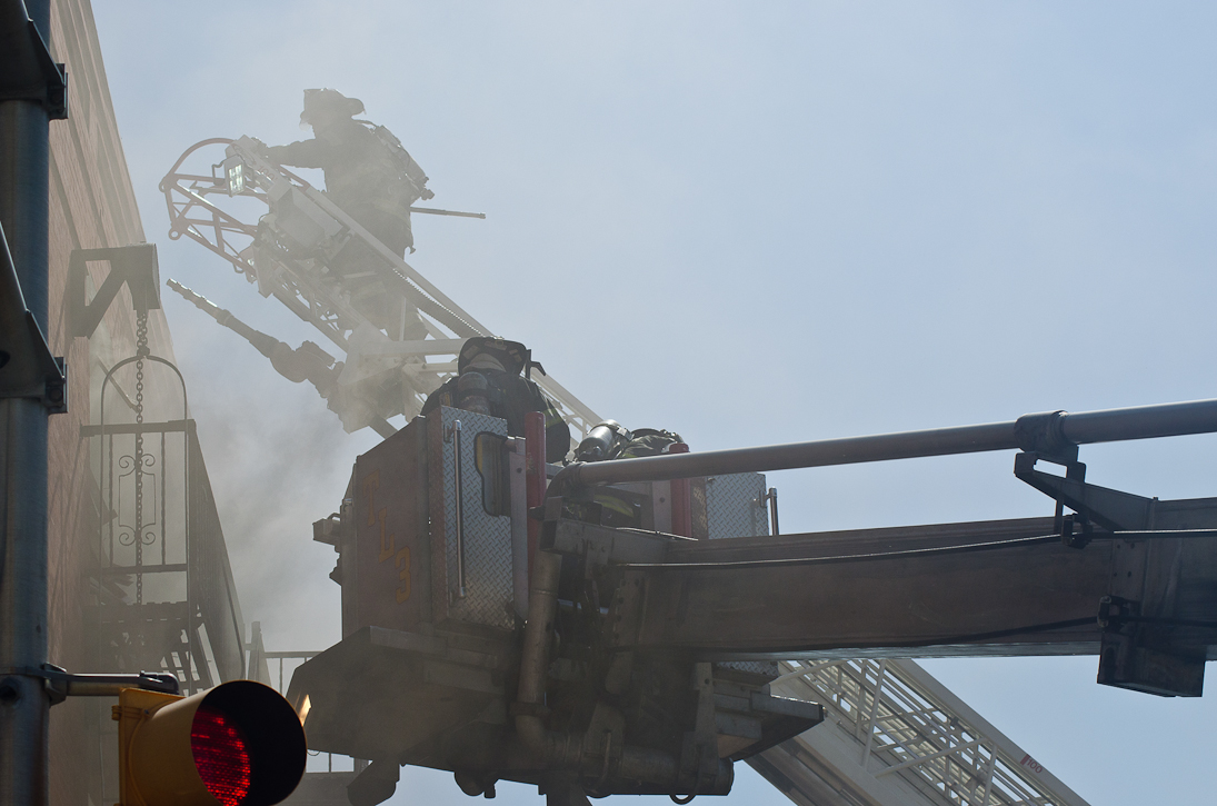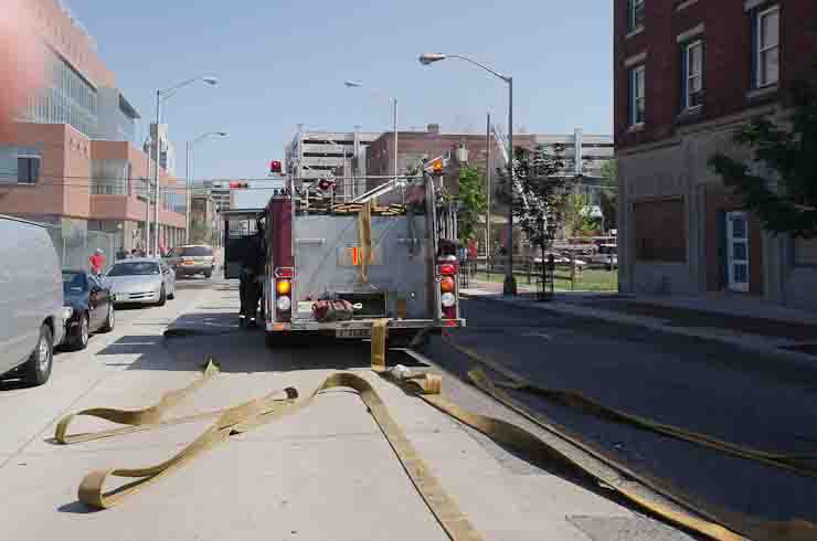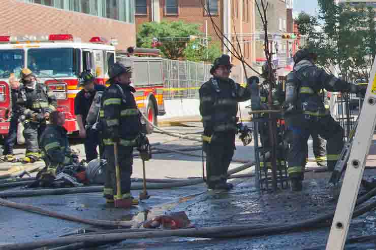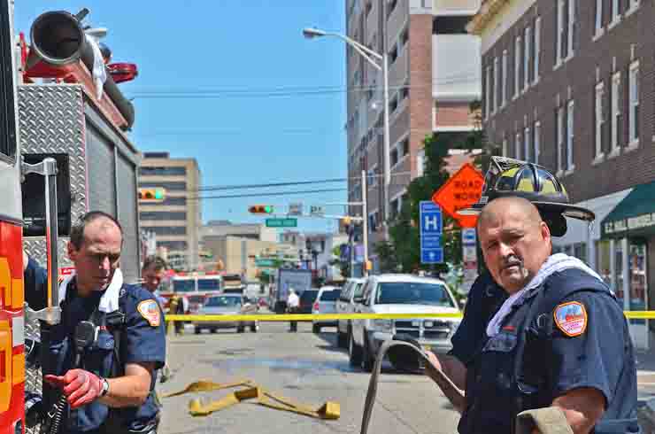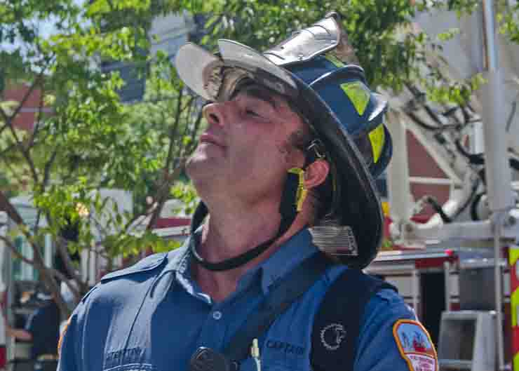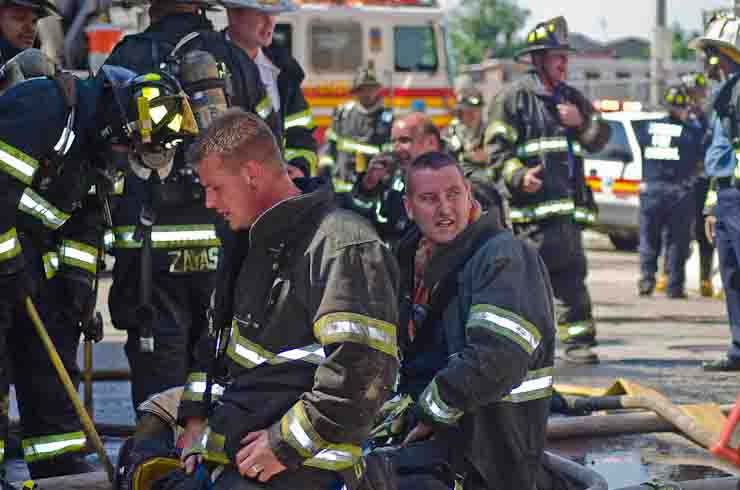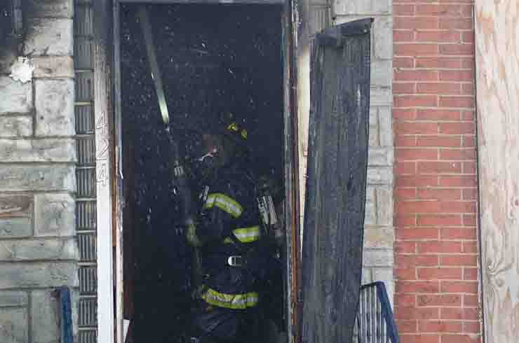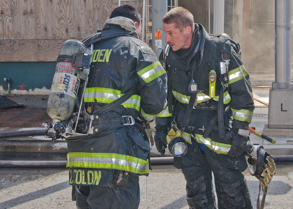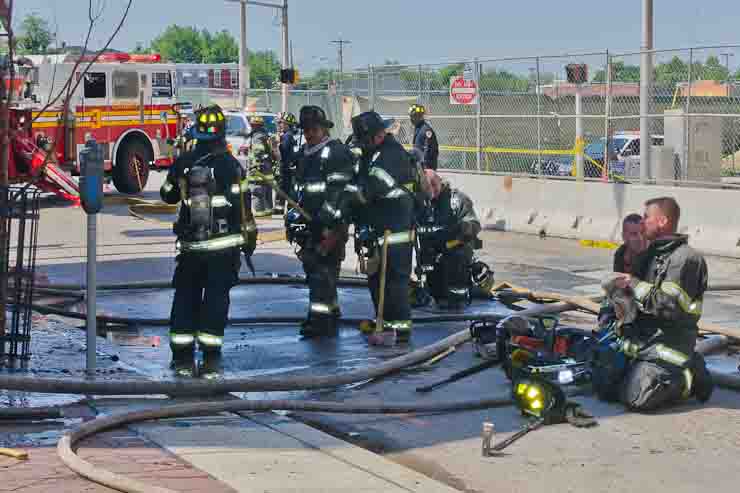 This page and the other pages in this series are the successors to the series of web-page about the Camden Fire Department that began with the page Camden Fire Department: The Fires of the Summer of 2011. On this and other pages in the series you will find pictures and information regarding different events and aspects of the fire service in Camden, New Jersey. On March 23, 2012 the Camden Fire Department put out a fire in a vacant (except for squatters) building at 426 Broadway. On May 31, the Department return to take care of a fire next door, at 424 Broadway, also vacant and also infested by squatters. The Battalion Chief on arrival reported heavy fire showing from the second floor of a three-story dwelling, with a person trapped. Multiple hand lines and two ladders were put into service. A woman was rescued from the second floor and taken to Cooper Trauma Center, firefighters Denis O'Reilly and Victor Torres being the heroes of the day. Besides the photos presented on this page, which I shot, there are many more pictures, taken by Ted Aurig, that can be seen at NewJerseyFireground.com. As with the web page covering other Camden Fire Department events, if you can identify anyone that I've missed, please comment at the bottom of the page. (I'm terrible at at names and faces). June 25, 2012 |