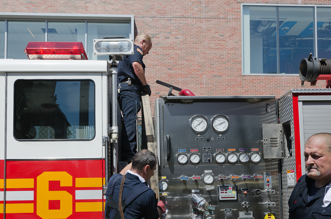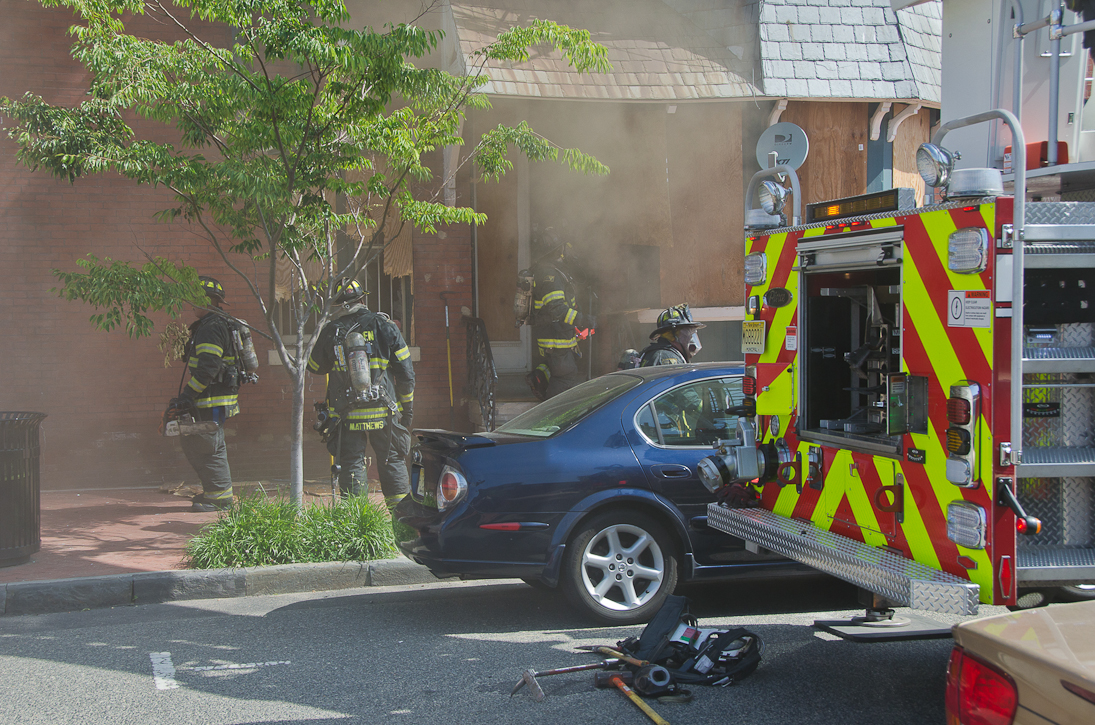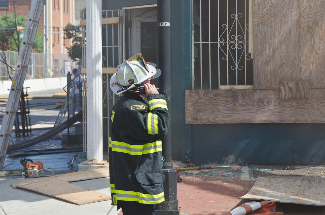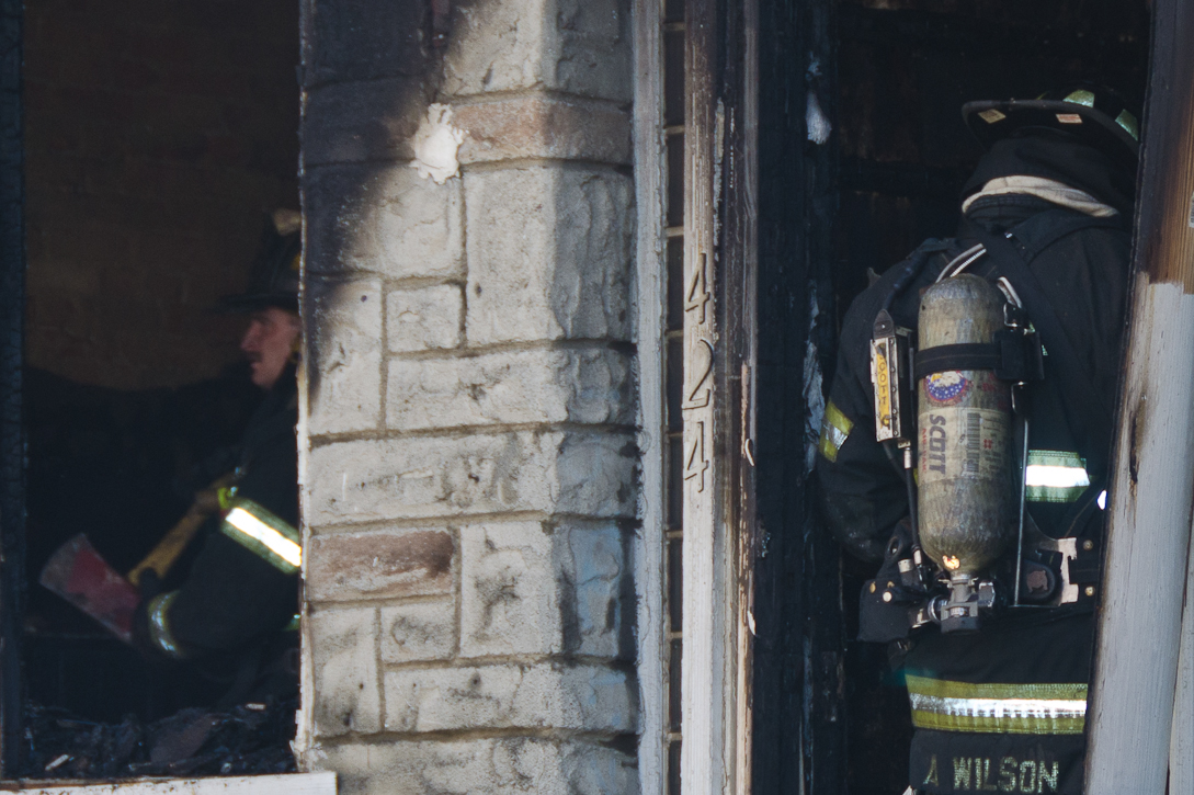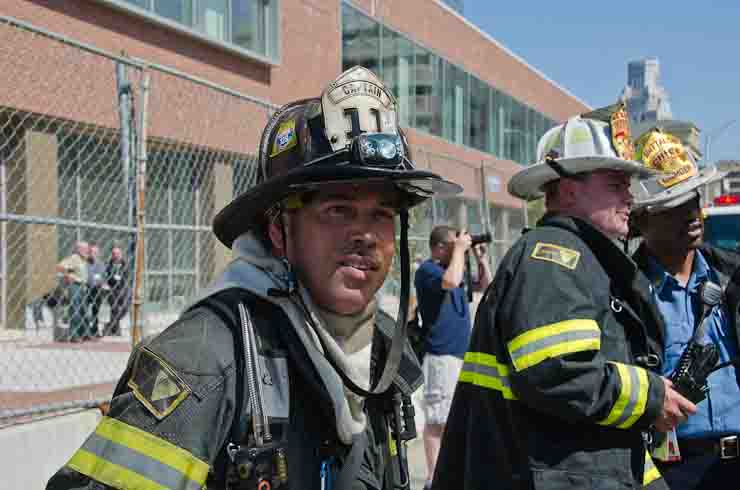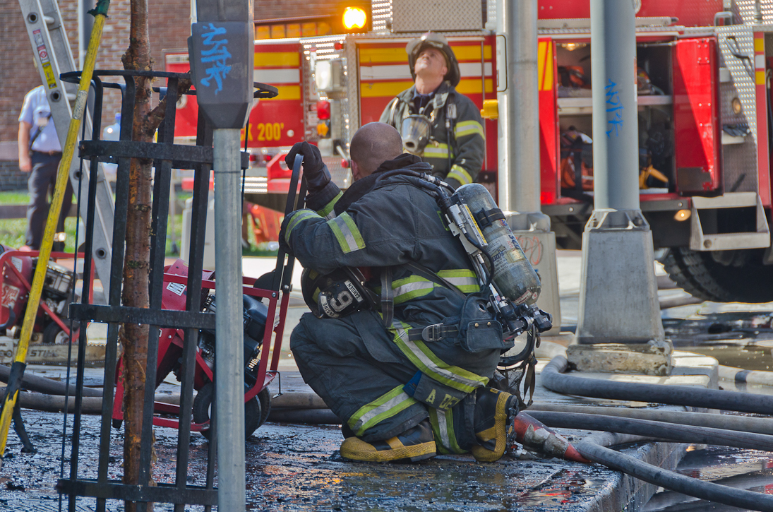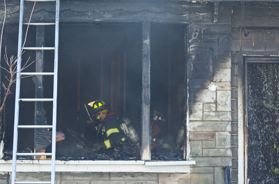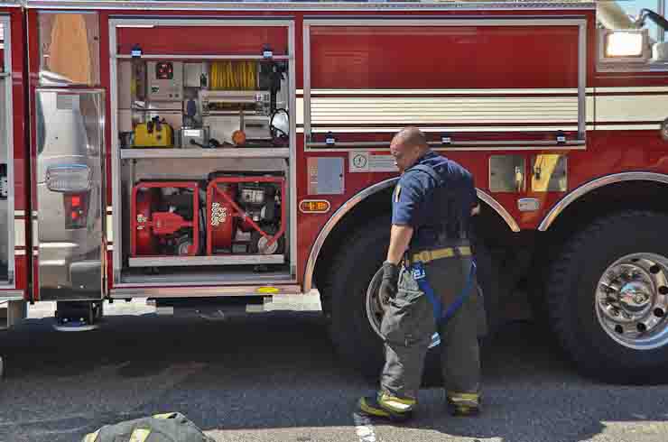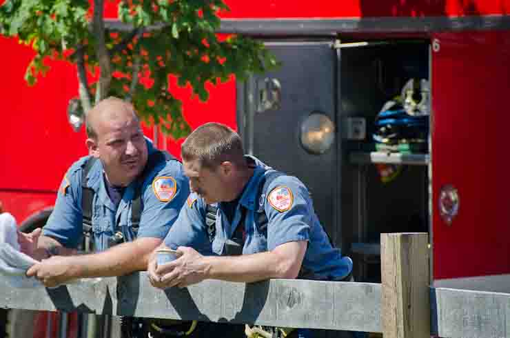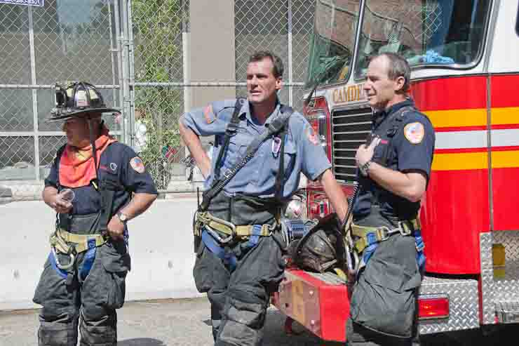 This page and the other pages in this series are the successors to the series of web-page about the Camden Fire Department that began with the page Camden Fire Department: The Fires of the Summer of 2011. On this and other pages in the series you will find pictures and information regarding different events and aspects of the fire service in Camden, New Jersey. On March 23, 2012 the Camden Fire Department put out a fire in a vacant (except for squatters) building at 426 Broadway. On May 31, the Department return to take care of a fire next door, at 424 Broadway, also vacant and also infested by squatters. The Battalion Chief on arrival reported heavy fire showing from the second floor of a three-story dwelling, with a person trapped. Multiple hand lines and two ladders were put into service. A woman was rescued from the second floor and taken to Cooper Trauma Center, firefighters Denis O'Reilly and Victor Torres being the heroes of the day. Besides the photos presented on this page, which I shot, there are many more pictures, taken by Ted Aurig, that can be seen at NewJerseyFireground.com. As with the web page covering other Camden Fire Department events, if you can identify anyone that I've missed, please comment at the bottom of the page. (I'm terrible at at names and faces). June 25, 2012 |