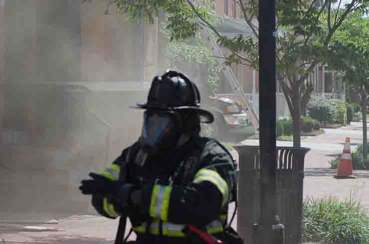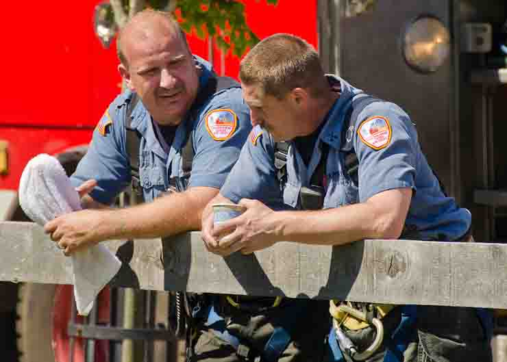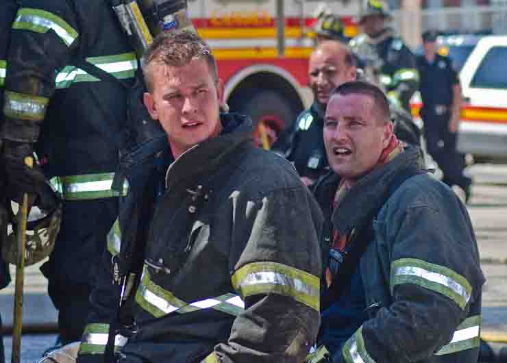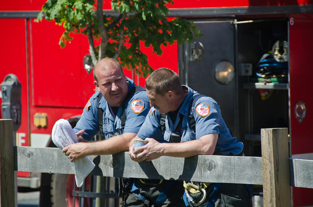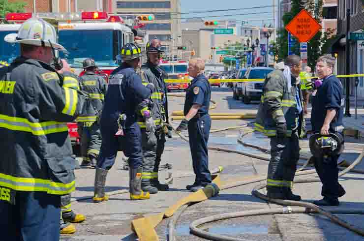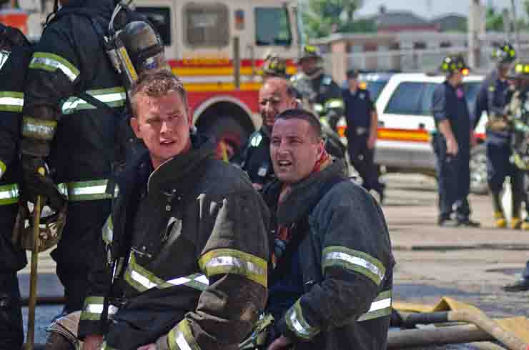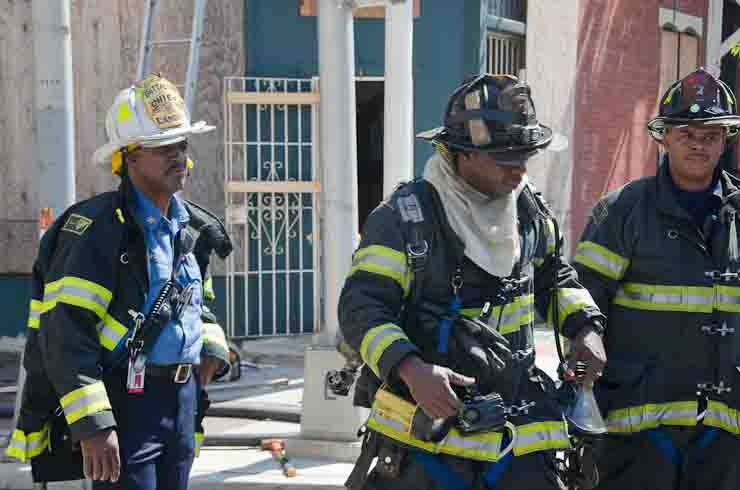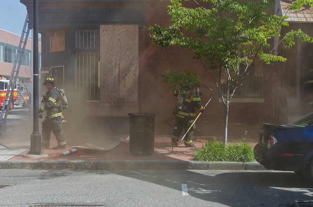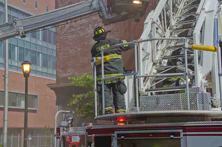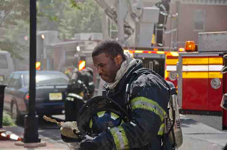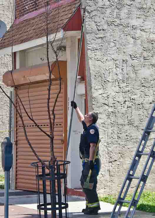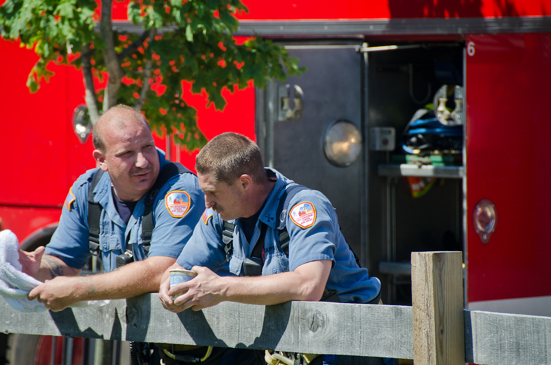 This page and the other pages in this series are the successors to the series of web-page about the Camden Fire Department that began with the page Camden Fire Department: The Fires of the Summer of 2011. On this and other pages in the series you will find pictures and information regarding different events and aspects of the fire service in Camden, New Jersey. On March 23, 2012 the Camden Fire Department put out a fire in a vacant (except for squatters) building at 426 Broadway. On May 31, the Department return to take care of a fire next door, at 424 Broadway, also vacant and also infested by squatters. The Battalion Chief on arrival reported heavy fire showing from the second floor of a three-story dwelling, with a person trapped. Multiple hand lines and two ladders were put into service. A woman was rescued from the second floor and taken to Cooper Trauma Center, firefighters Denis O'Reilly and Victor Torres being the heroes of the day. Besides the photos presented on this page, which I shot, there are many more pictures, taken by Ted Aurig, that can be seen at NewJerseyFireground.com. As with the web page covering other Camden Fire Department events, if you can identify anyone that I've missed, please comment at the bottom of the page. (I'm terrible at at names and faces). June 25, 2012 |
