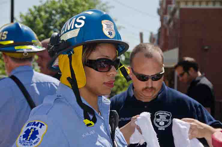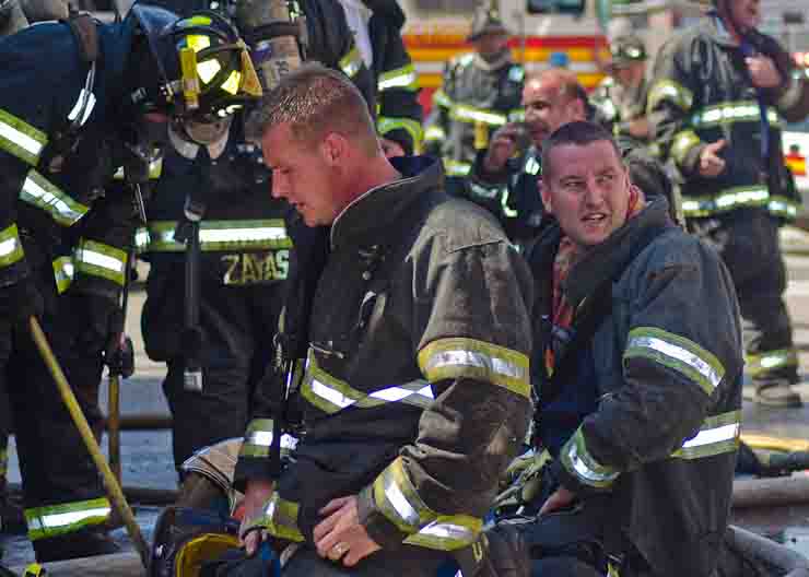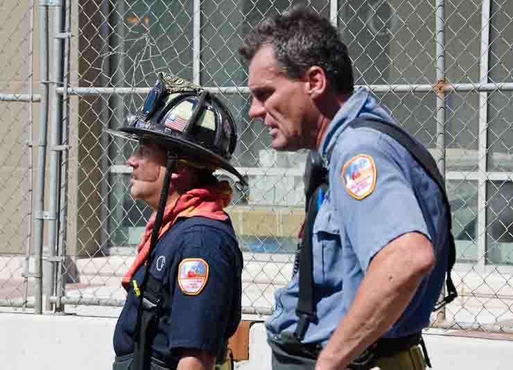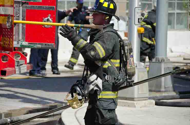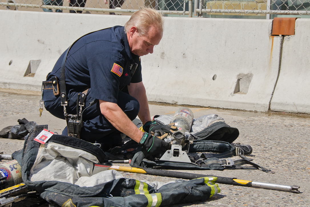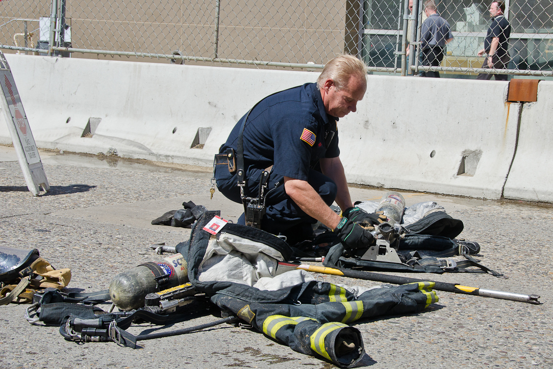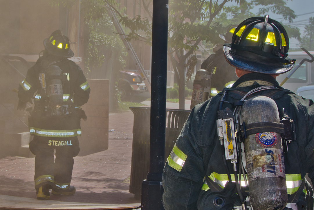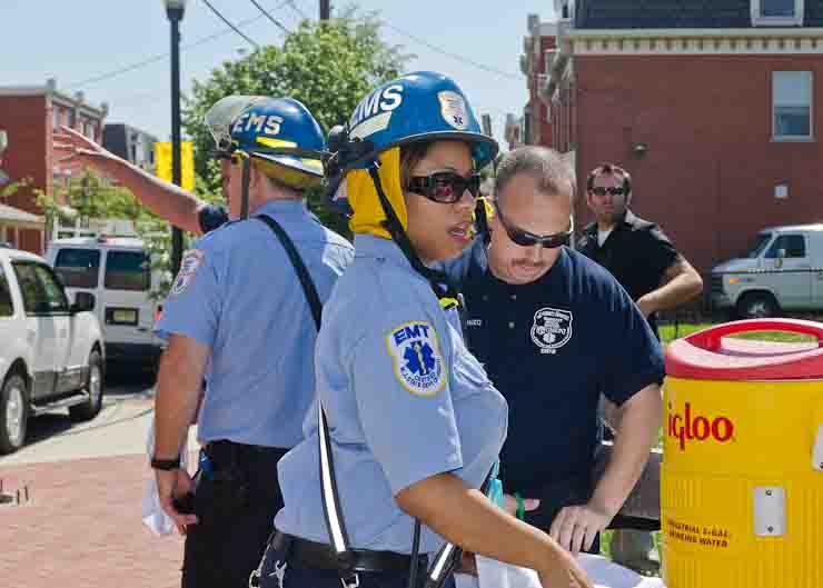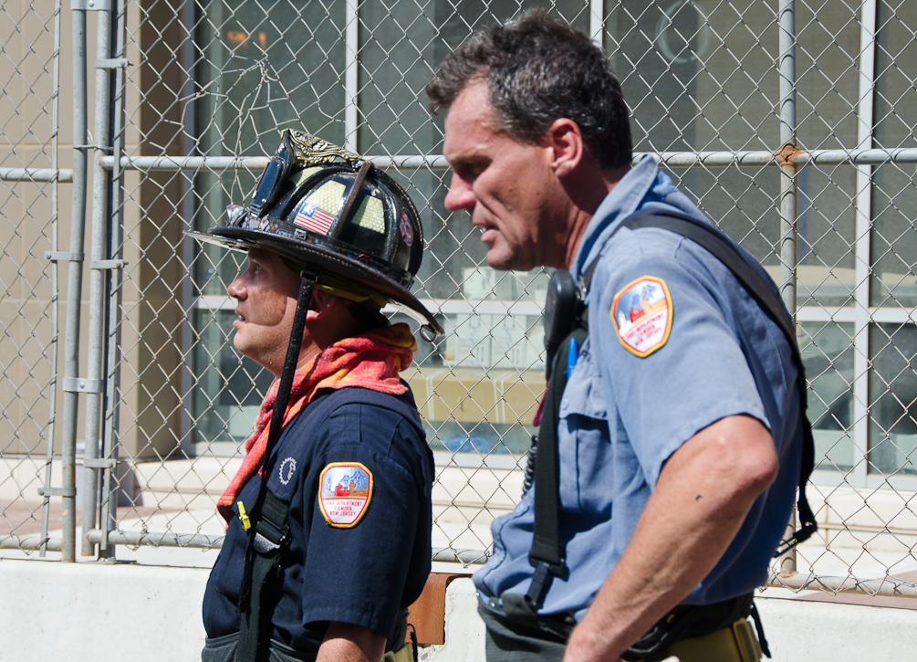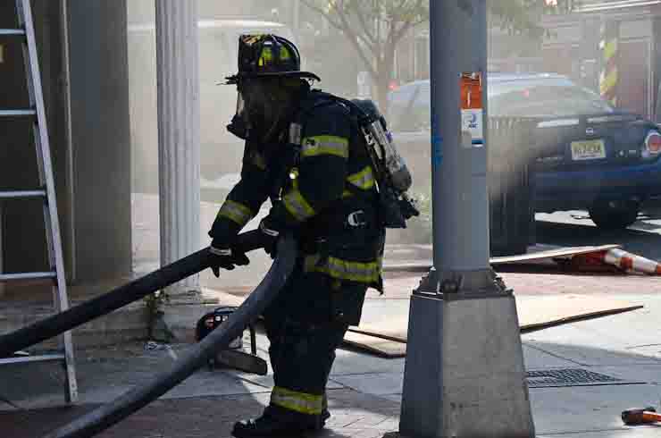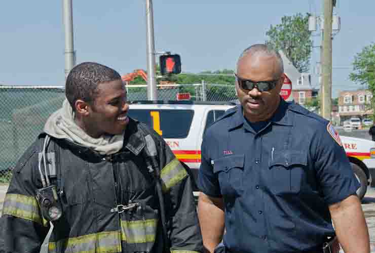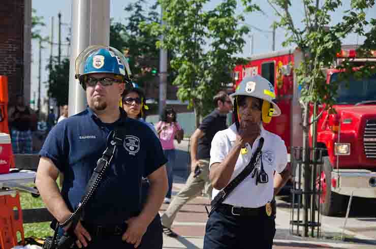 This page and the other pages in this series are the successors to the series of web-page about the Camden Fire Department that began with the page Camden Fire Department: The Fires of the Summer of 2011. On this and other pages in the series you will find pictures and information regarding different events and aspects of the fire service in Camden, New Jersey. On March 23, 2012 the Camden Fire Department put out a fire in a vacant (except for squatters) building at 426 Broadway. On May 31, the Department return to take care of a fire next door, at 424 Broadway, also vacant and also infested by squatters. The Battalion Chief on arrival reported heavy fire showing from the second floor of a three-story dwelling, with a person trapped. Multiple hand lines and two ladders were put into service. A woman was rescued from the second floor and taken to Cooper Trauma Center, firefighters Denis O'Reilly and Victor Torres being the heroes of the day. Besides the photos presented on this page, which I shot, there are many more pictures, taken by Ted Aurig, that can be seen at NewJerseyFireground.com. As with the web page covering other Camden Fire Department events, if you can identify anyone that I've missed, please comment at the bottom of the page. (I'm terrible at at names and faces). June 25, 2012 |