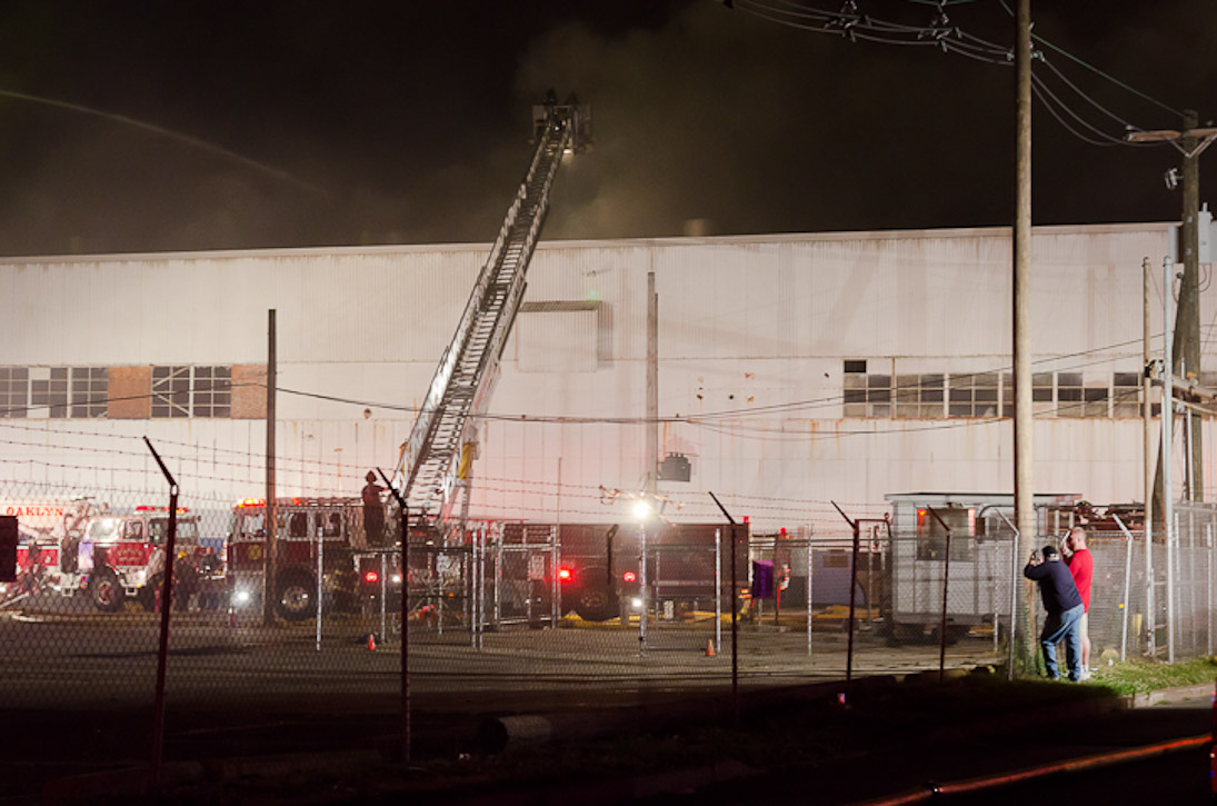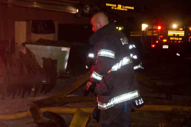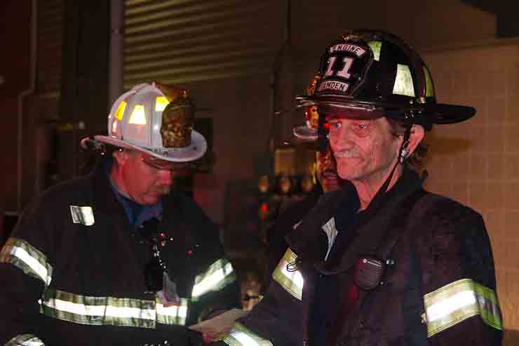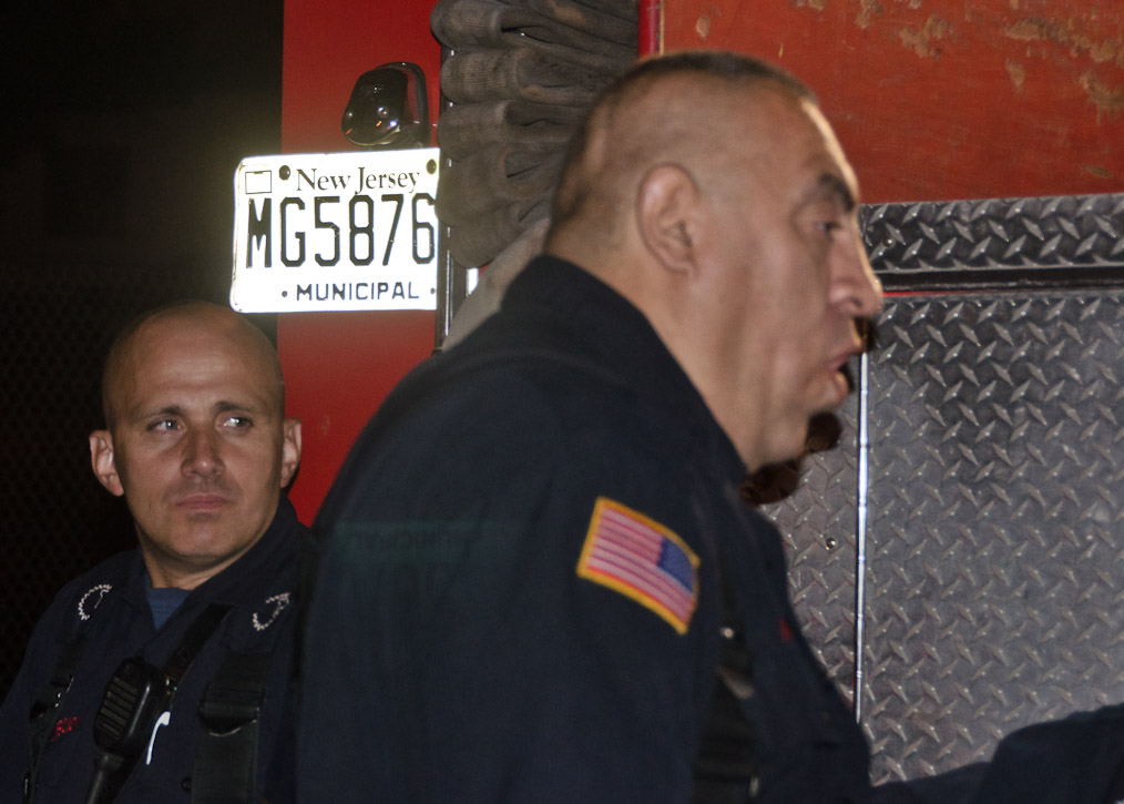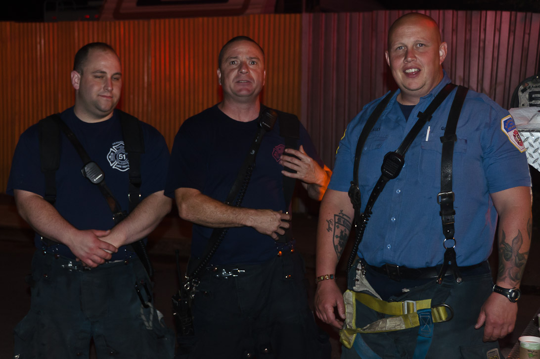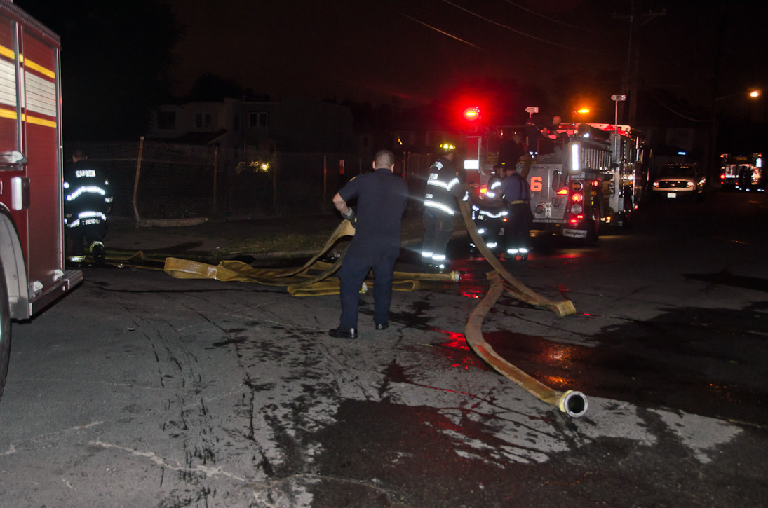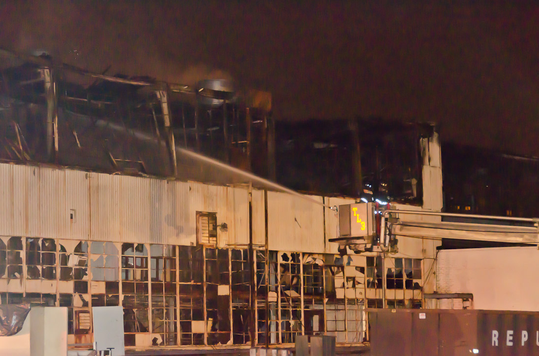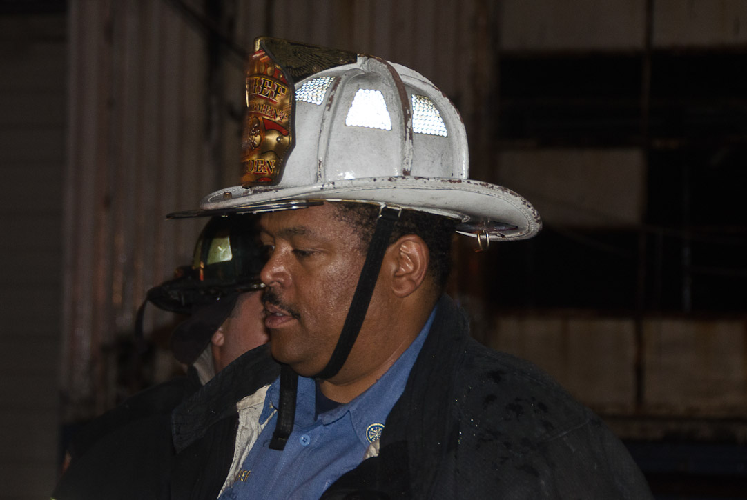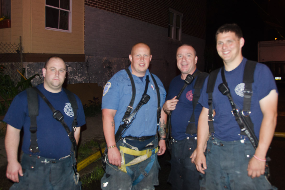 Magnetic Metals Corporation has been in operation on Hayes Avenue in the Cramer Hill section of Camden since 1942, manufacturing high grade nickel alloy laminations. The biggest fire to date in 2012, a building that was in the process of being emptied out caught fire around 11:00 PM on June 18, 2012. The fire went to six alarms before being brought under control. I arrived on scene at about the 13 minute mark, took my first shot at 11:07 AM, and was still there well over five hours later, taking my last shot at 4:45 AM. When I returned a few hours later, Engine 11 was still operating, wetting down hot spots. This is the third of four pages of photos of this fire. Links to continue to the next page, return to the first page, or skip ahead are at the bottom of this page. The photos are for the most part presented in the order in which they were taken… I was using two cameras, some photos taken in the same minute on each camera may be sequenced wrong, but that's small stuff! As with the web page covering other Camden Fire Department events, if you can identify anyone that I've missed, please comment at the bottom of the page. (I'm terrible at at names and faces). June 26, 2012 |