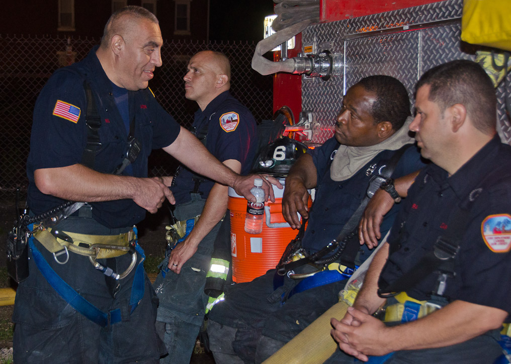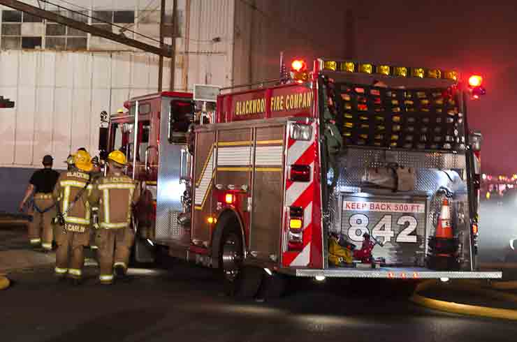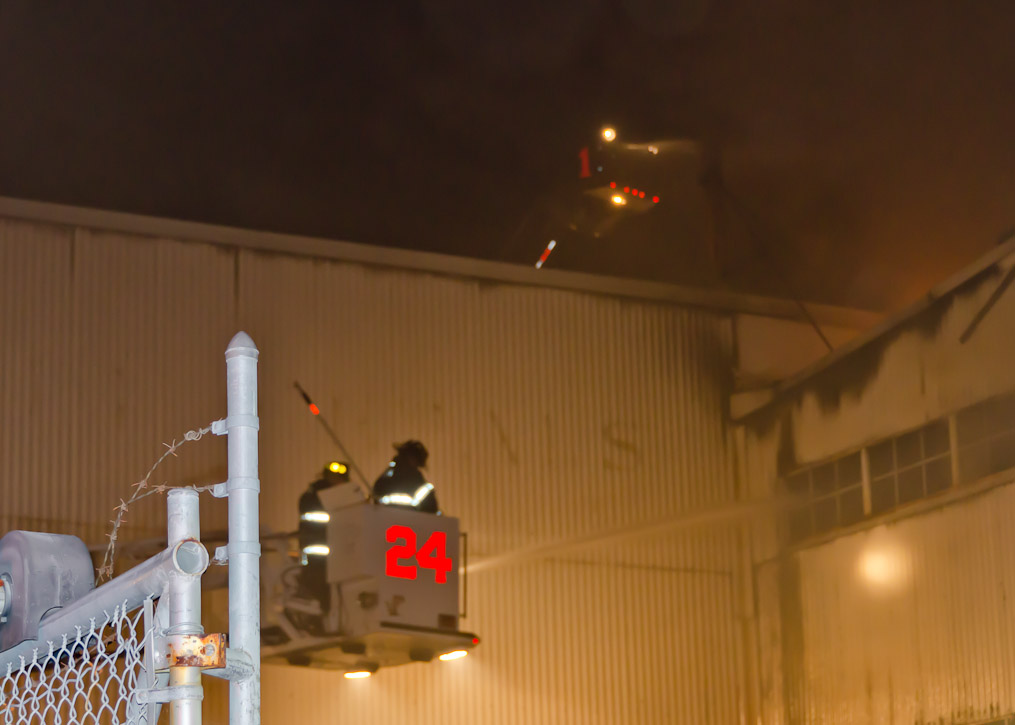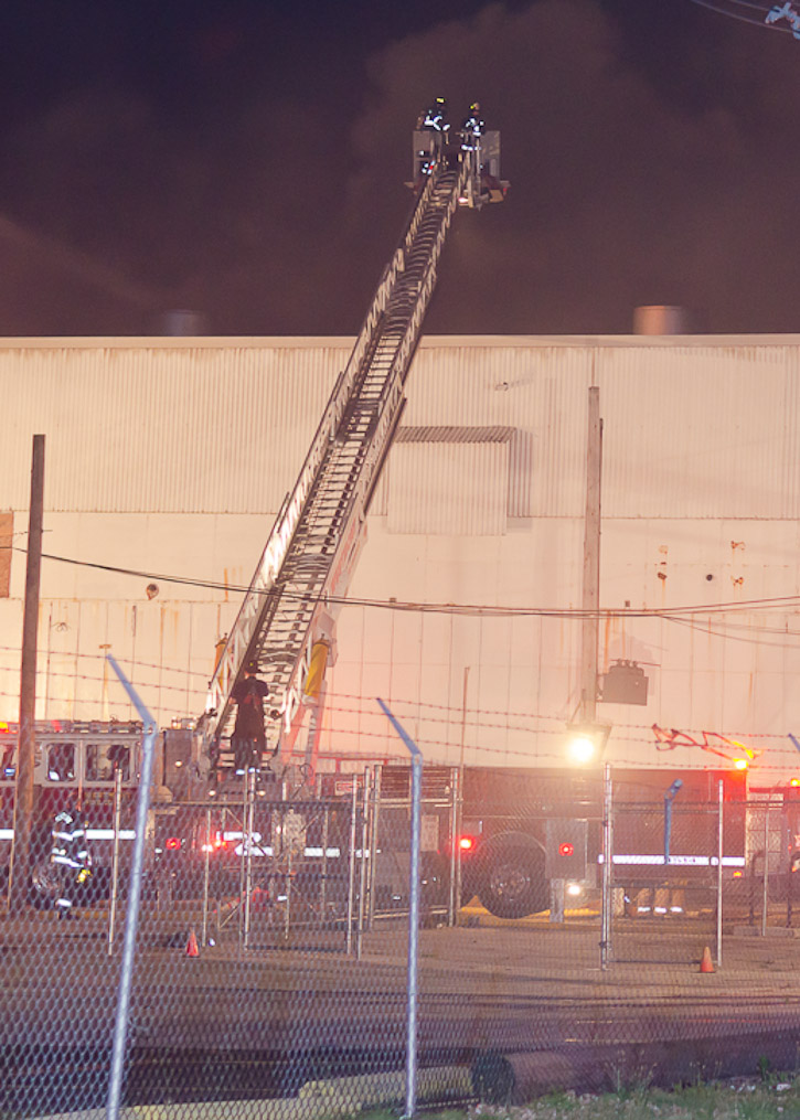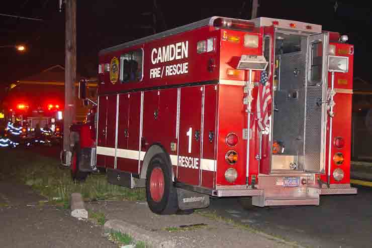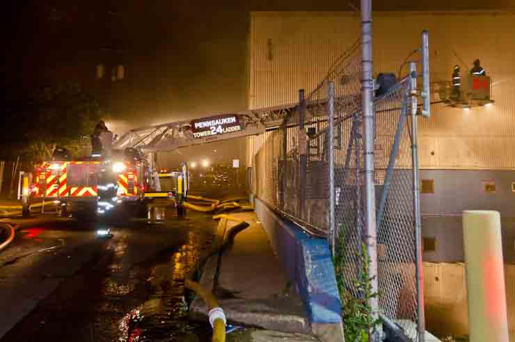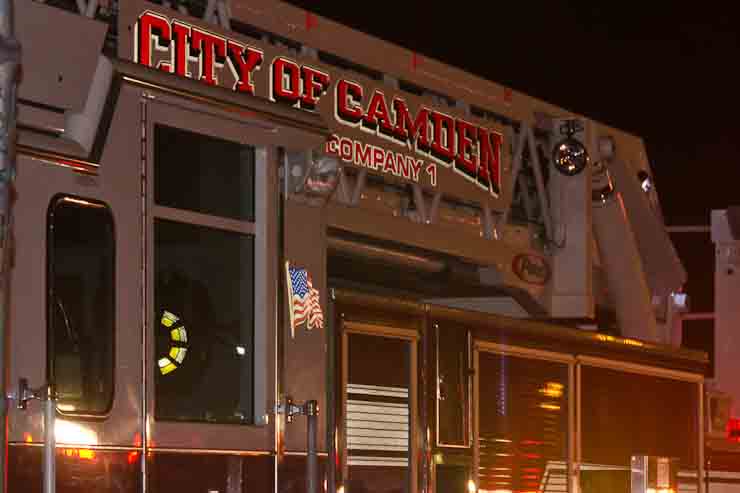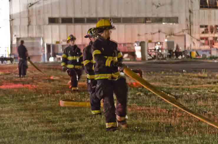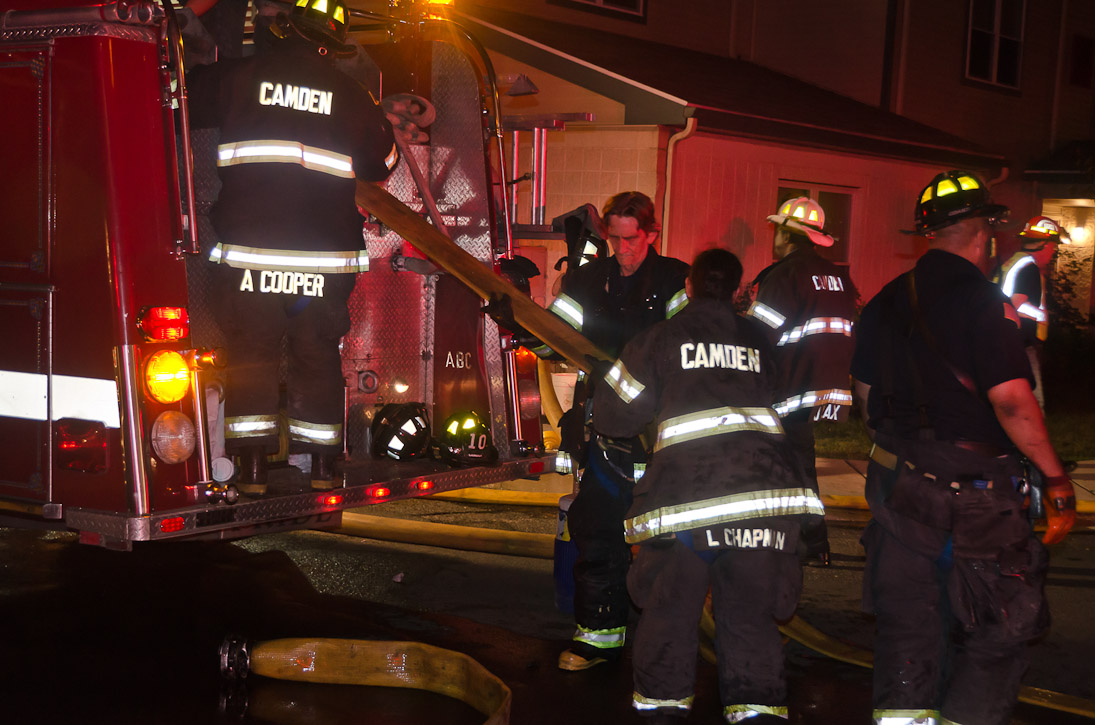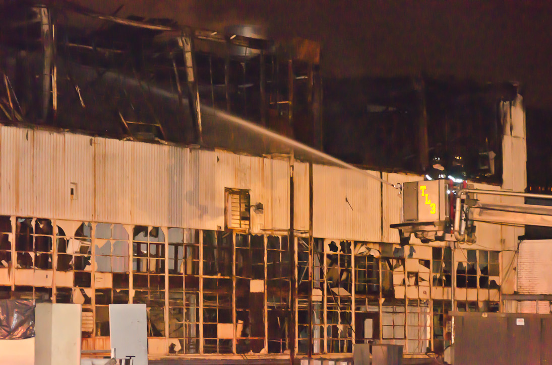 Magnetic Metals Corporation has been in operation on Hayes Avenue in the Cramer Hill section of Camden since 1942, manufacturing high grade nickel alloy laminations. The biggest fire to date in 2012, a building that was in the process of being emptied out caught fire around 11:00 PM on June 18, 2012. The fire went to six alarms before being brought under control. I arrived on scene at about the 13 minute mark, took my first shot at 11:07 AM, and was still there well over five hours later, taking my last shot at 4:45 AM. When I returned a few hours later, Engine 11 was still operating, wetting down hot spots. This is the third of four pages of photos of this fire. Links to continue to the next page, return to the first page, or skip ahead are at the bottom of this page. The photos are for the most part presented in the order in which they were taken… I was using two cameras, some photos taken in the same minute on each camera may be sequenced wrong, but that's small stuff! As with the web page covering other Camden Fire Department events, if you can identify anyone that I've missed, please comment at the bottom of the page. (I'm terrible at at names and faces). June 26, 2012 |