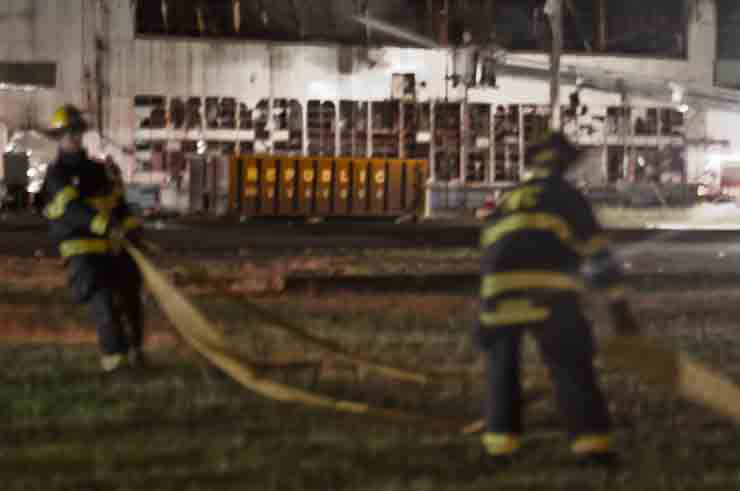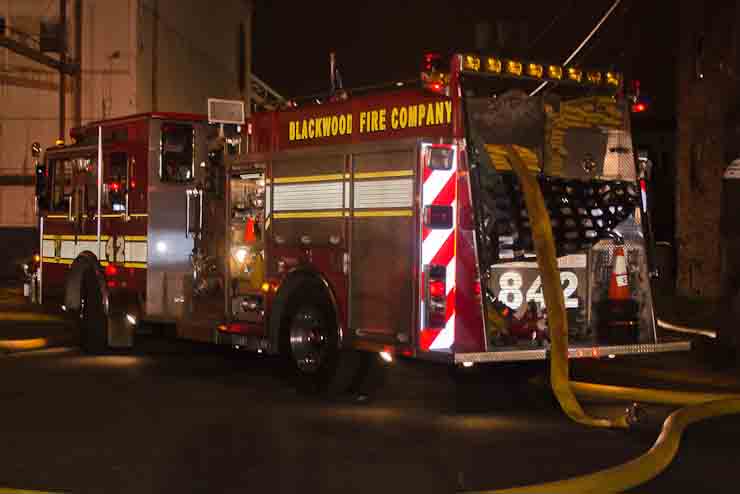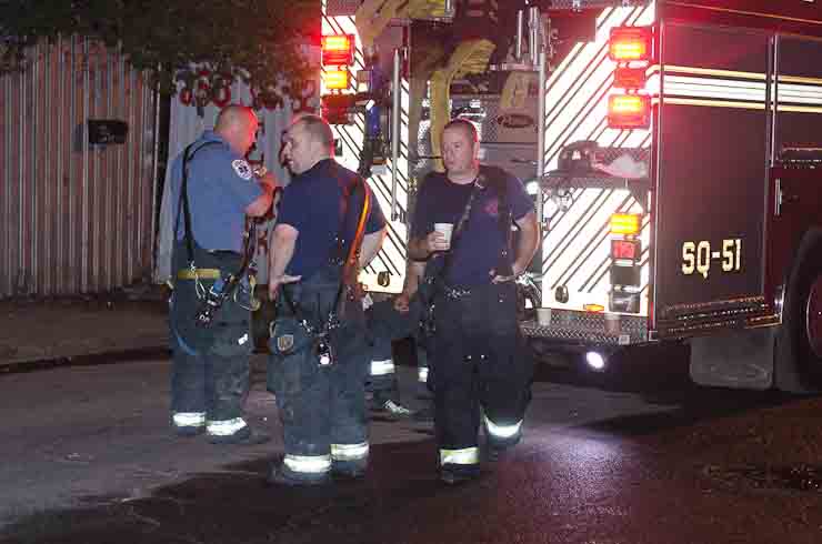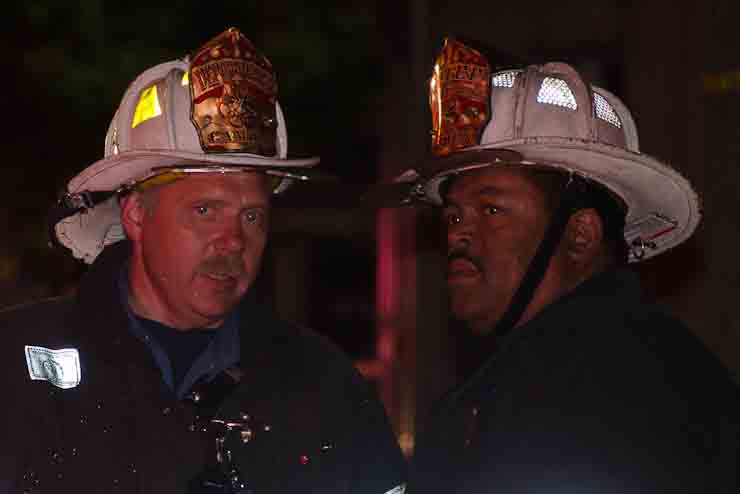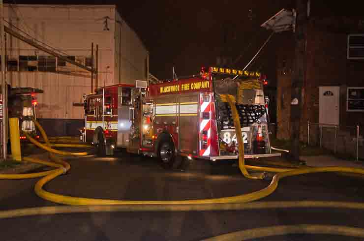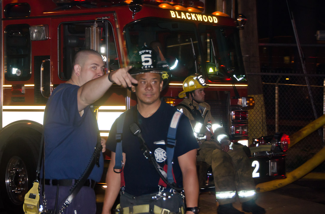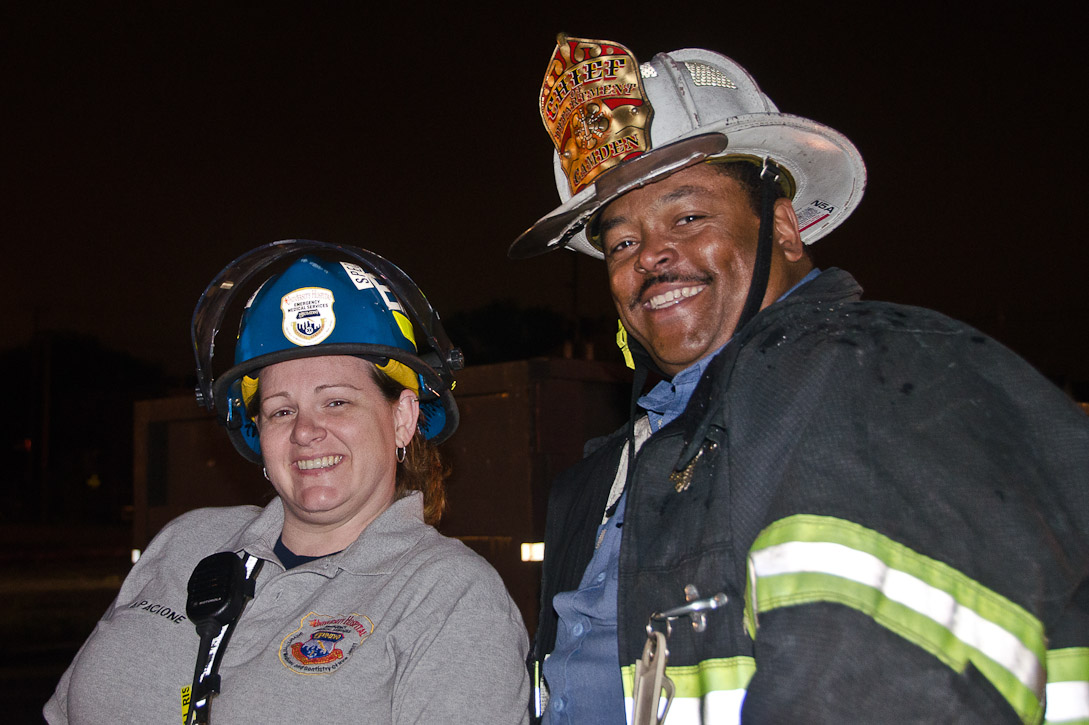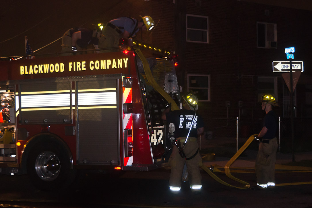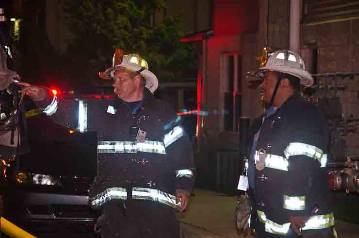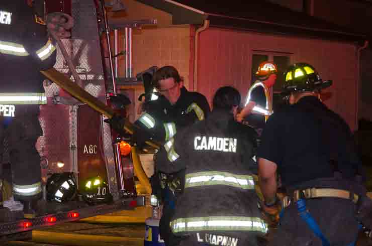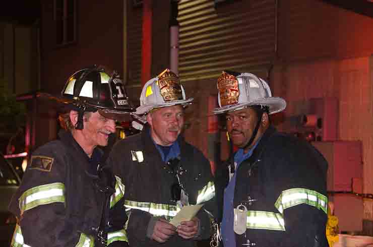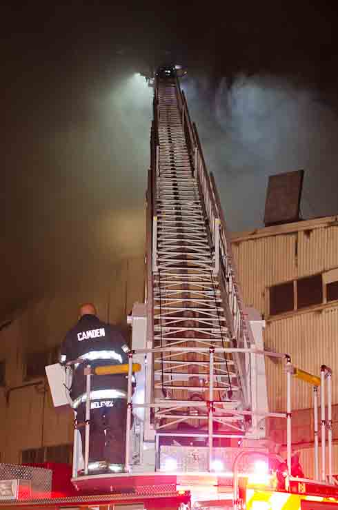 Magnetic Metals Corporation has been in operation on Hayes Avenue in the Cramer Hill section of Camden since 1942, manufacturing high grade nickel alloy laminations. The biggest fire to date in 2012, a building that was in the process of being emptied out caught fire around 11:00 PM on June 18, 2012. The fire went to six alarms before being brought under control. I arrived on scene at about the 13 minute mark, took my first shot at 11:07 AM, and was still there well over five hours later, taking my last shot at 4:45 AM. When I returned a few hours later, Engine 11 was still operating, wetting down hot spots. This is the third of four pages of photos of this fire. Links to continue to the next page, return to the first page, or skip ahead are at the bottom of this page. The photos are for the most part presented in the order in which they were taken… I was using two cameras, some photos taken in the same minute on each camera may be sequenced wrong, but that's small stuff! As with the web page covering other Camden Fire Department events, if you can identify anyone that I've missed, please comment at the bottom of the page. (I'm terrible at at names and faces). June 26, 2012 |
