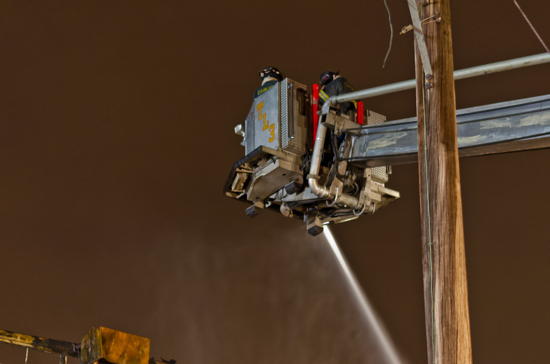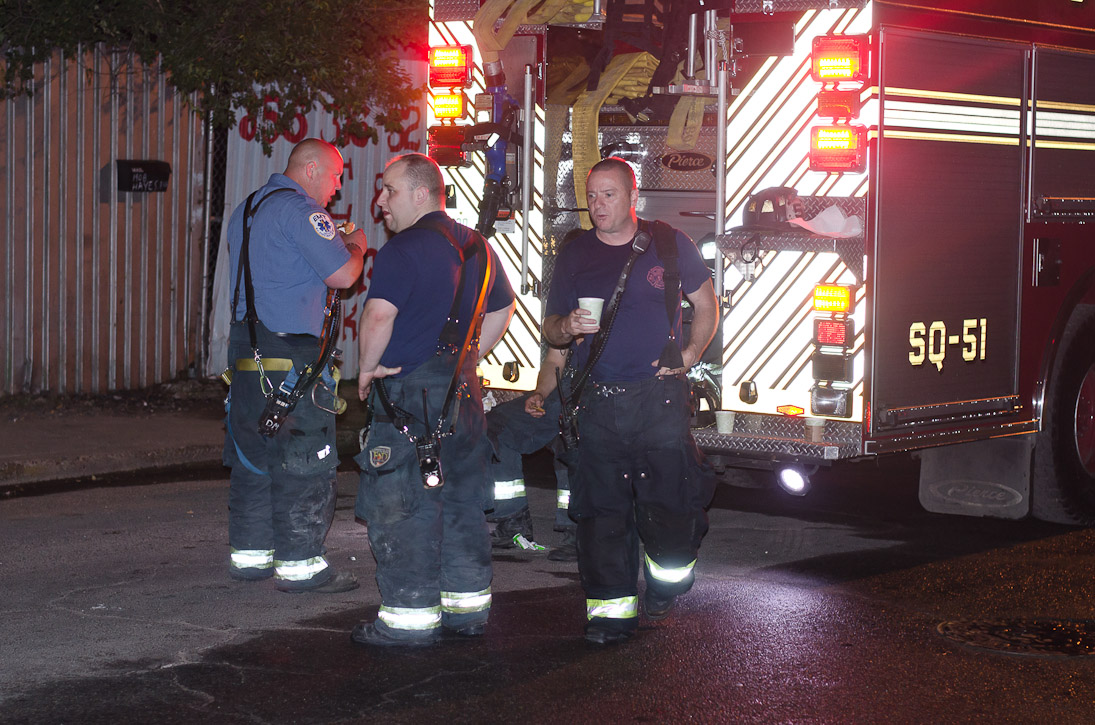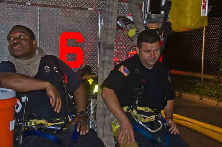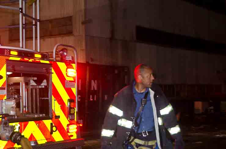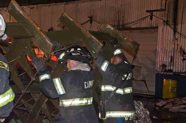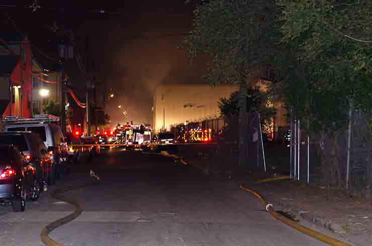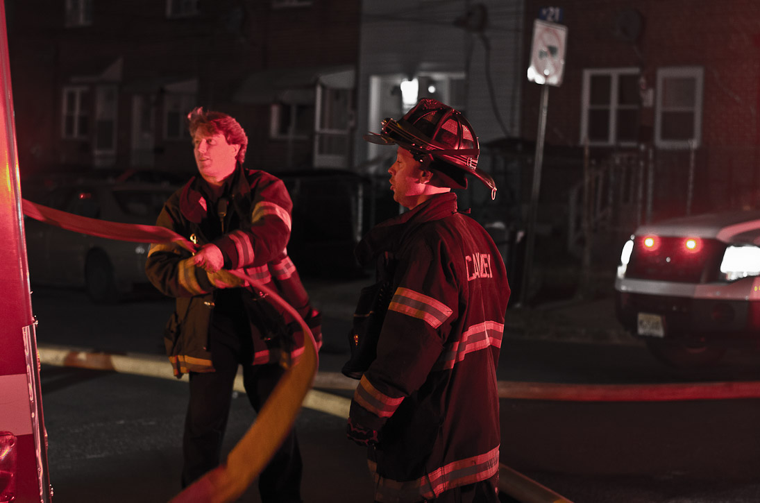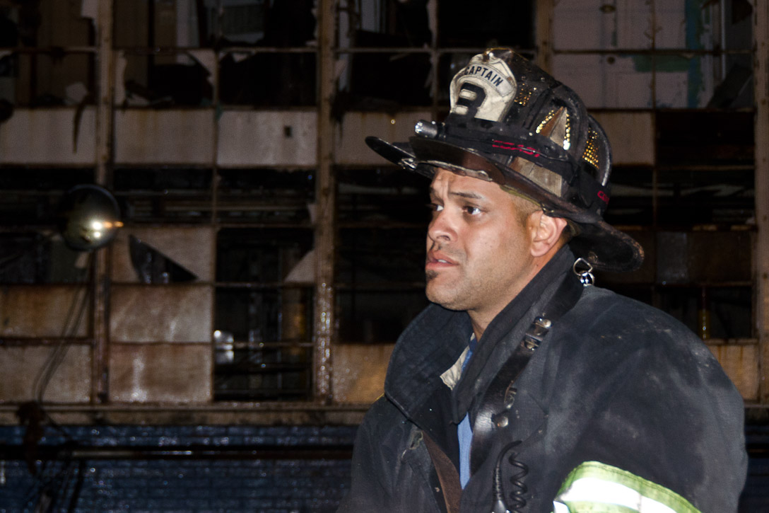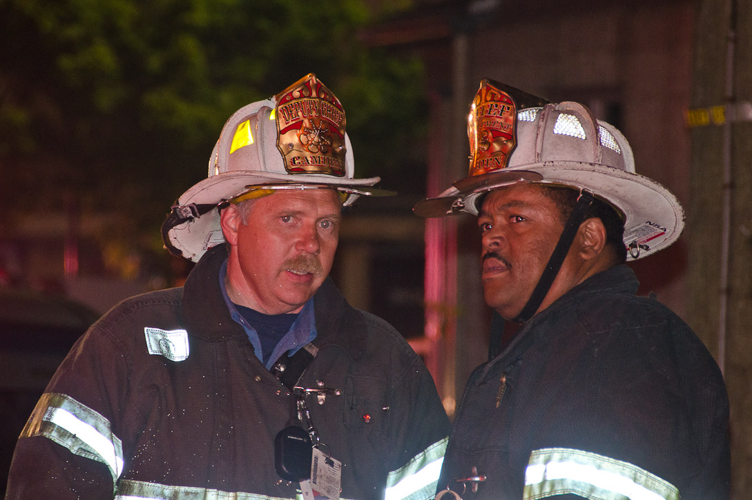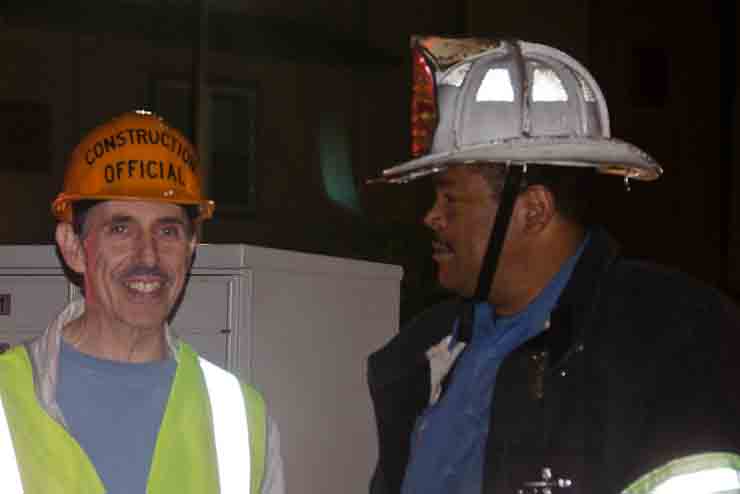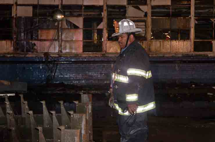 Magnetic Metals Corporation has been in operation on Hayes Avenue in the Cramer Hill section of Camden since 1942, manufacturing high grade nickel alloy laminations. The biggest fire to date in 2012, a building that was in the process of being emptied out caught fire around 11:00 PM on June 18, 2012. The fire went to six alarms before being brought under control. I arrived on scene at about the 13 minute mark, took my first shot at 11:07 AM, and was still there well over five hours later, taking my last shot at 4:45 AM. When I returned a few hours later, Engine 11 was still operating, wetting down hot spots. This is the third of four pages of photos of this fire. Links to continue to the next page, return to the first page, or skip ahead are at the bottom of this page. The photos are for the most part presented in the order in which they were taken… I was using two cameras, some photos taken in the same minute on each camera may be sequenced wrong, but that's small stuff! As with the web page covering other Camden Fire Department events, if you can identify anyone that I've missed, please comment at the bottom of the page. (I'm terrible at at names and faces). June 26, 2012 |