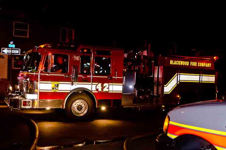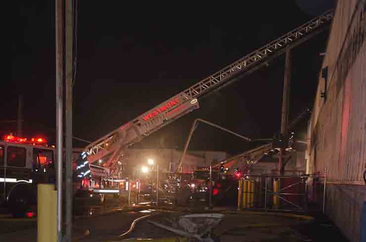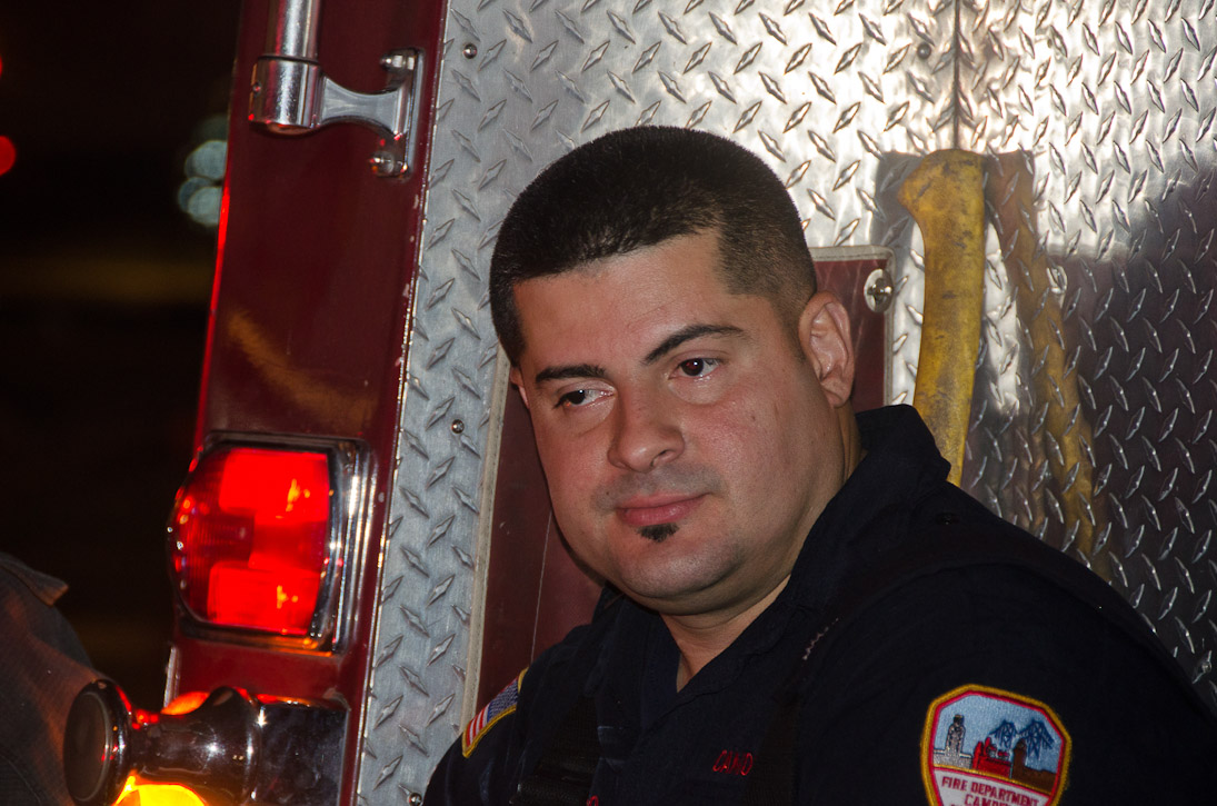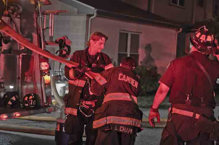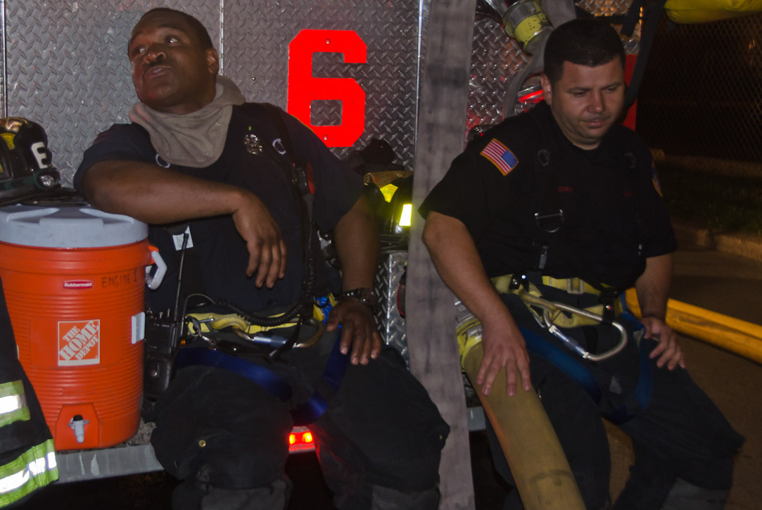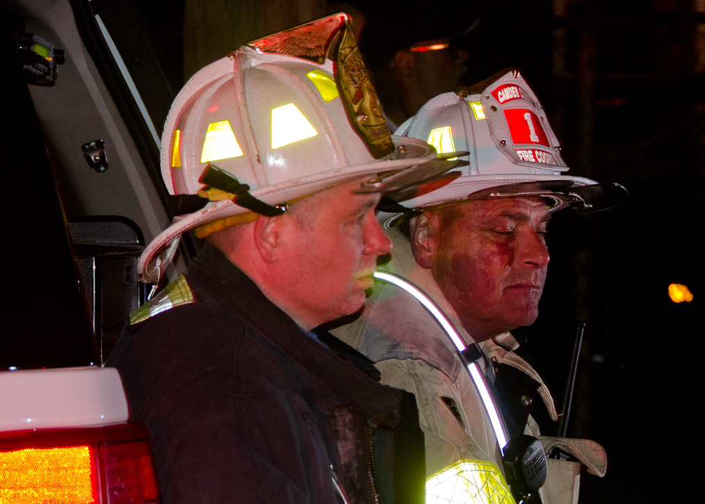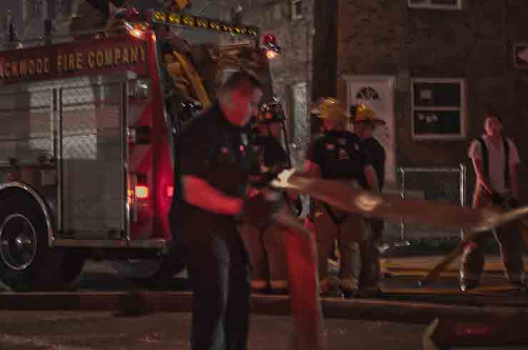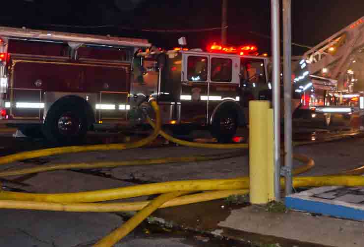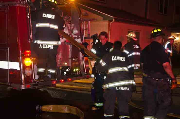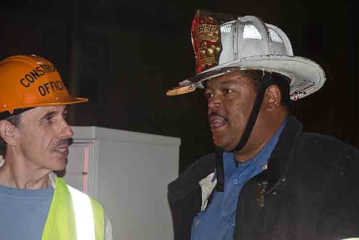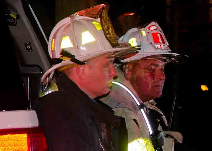 Magnetic Metals Corporation has been in operation on Hayes Avenue in the Cramer Hill section of Camden since 1942, manufacturing high grade nickel alloy laminations. The biggest fire to date in 2012, a building that was in the process of being emptied out caught fire around 11:00 PM on June 18, 2012. The fire went to six alarms before being brought under control. I arrived on scene at about the 13 minute mark, took my first shot at 11:07 AM, and was still there well over five hours later, taking my last shot at 4:45 AM. When I returned a few hours later, Engine 11 was still operating, wetting down hot spots. This is the third of four pages of photos of this fire. Links to continue to the next page, return to the first page, or skip ahead are at the bottom of this page. The photos are for the most part presented in the order in which they were taken… I was using two cameras, some photos taken in the same minute on each camera may be sequenced wrong, but that's small stuff! As with the web page covering other Camden Fire Department events, if you can identify anyone that I've missed, please comment at the bottom of the page. (I'm terrible at at names and faces). June 26, 2012 |