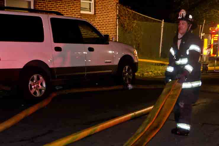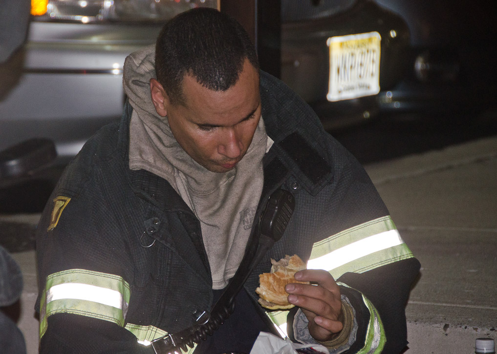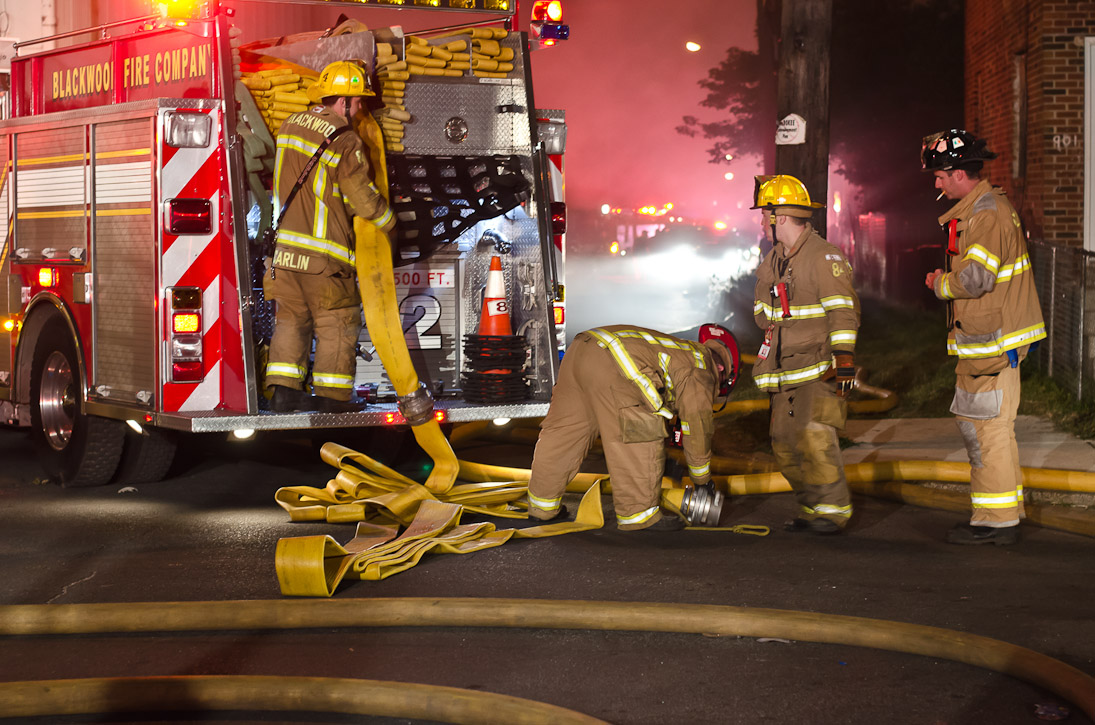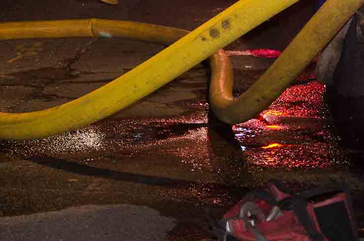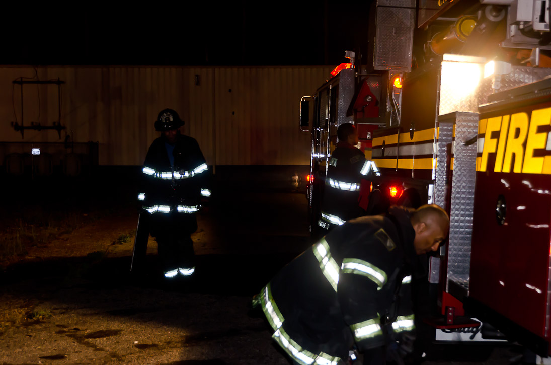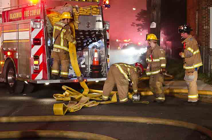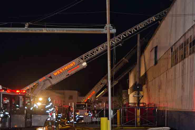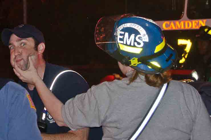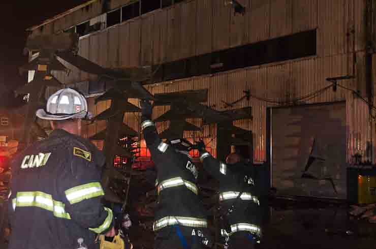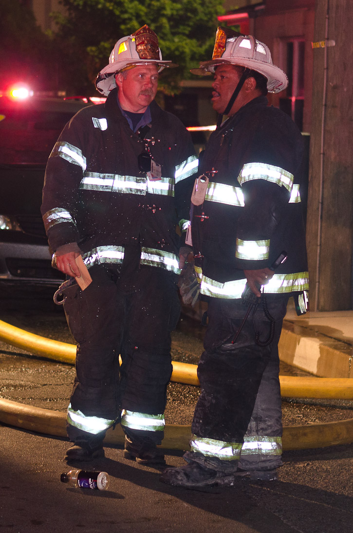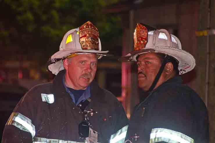 Magnetic Metals Corporation has been in operation on Hayes Avenue in the Cramer Hill section of Camden since 1942, manufacturing high grade nickel alloy laminations. The biggest fire to date in 2012, a building that was in the process of being emptied out caught fire around 11:00 PM on June 18, 2012. The fire went to six alarms before being brought under control. I arrived on scene at about the 13 minute mark, took my first shot at 11:07 AM, and was still there well over five hours later, taking my last shot at 4:45 AM. When I returned a few hours later, Engine 11 was still operating, wetting down hot spots. This is the third of four pages of photos of this fire. Links to continue to the next page, return to the first page, or skip ahead are at the bottom of this page. The photos are for the most part presented in the order in which they were taken… I was using two cameras, some photos taken in the same minute on each camera may be sequenced wrong, but that's small stuff! As with the web page covering other Camden Fire Department events, if you can identify anyone that I've missed, please comment at the bottom of the page. (I'm terrible at at names and faces). June 26, 2012 |