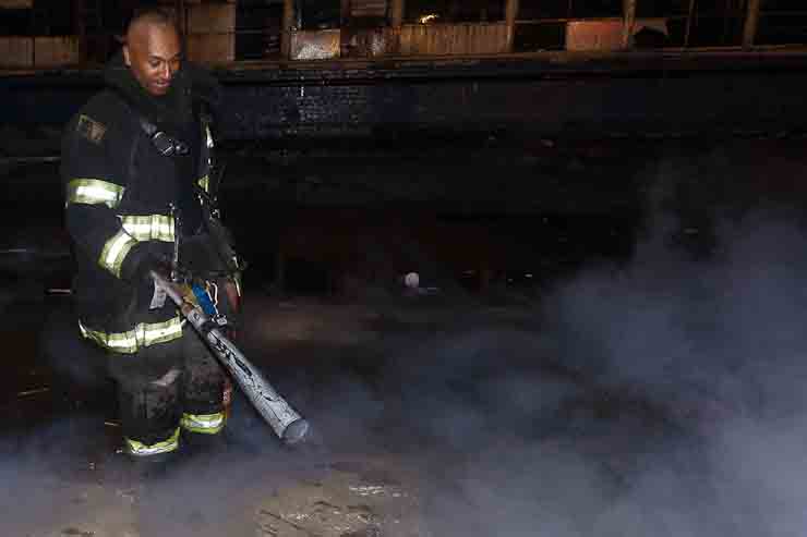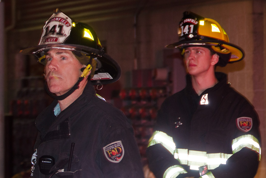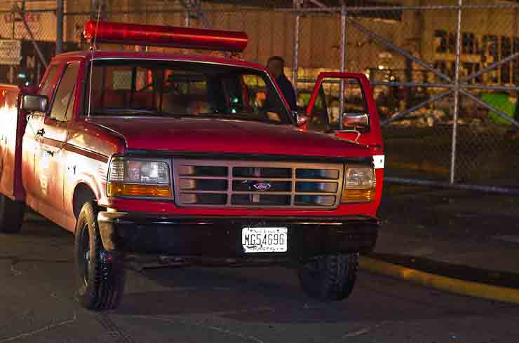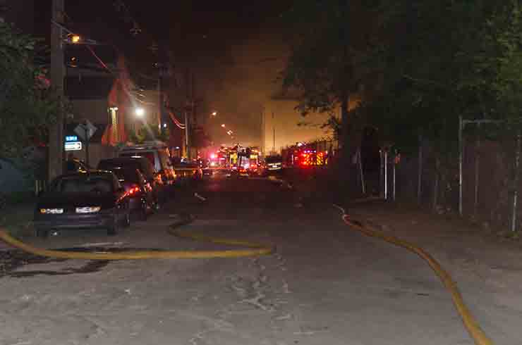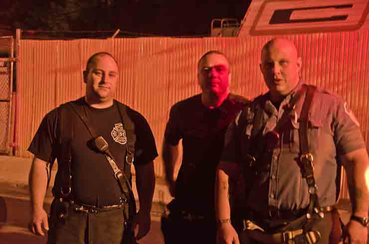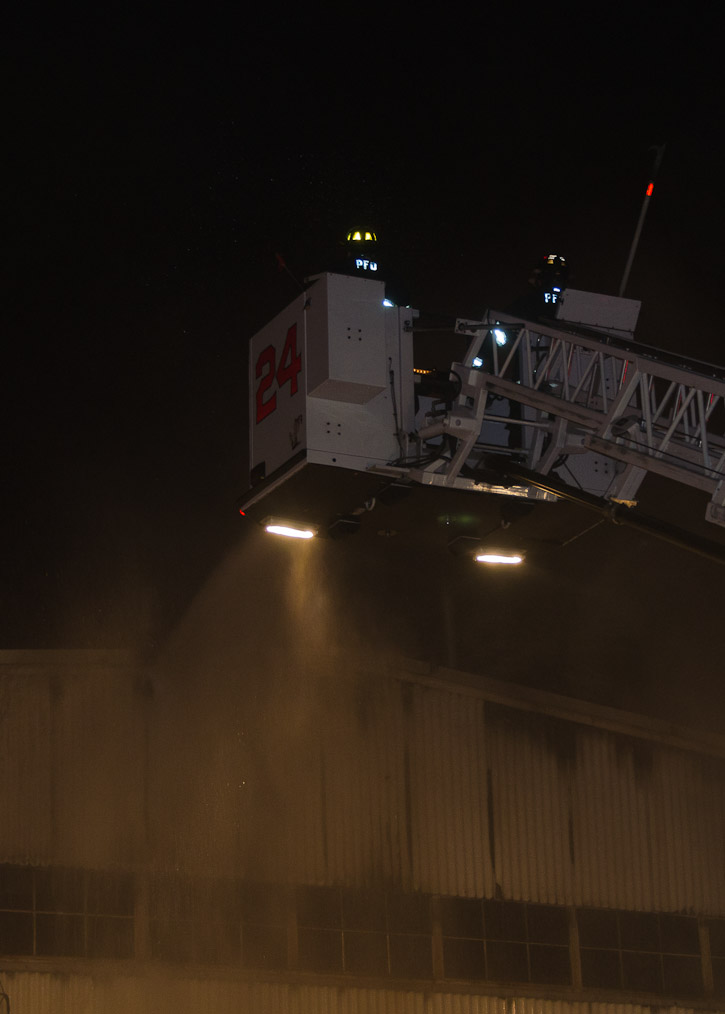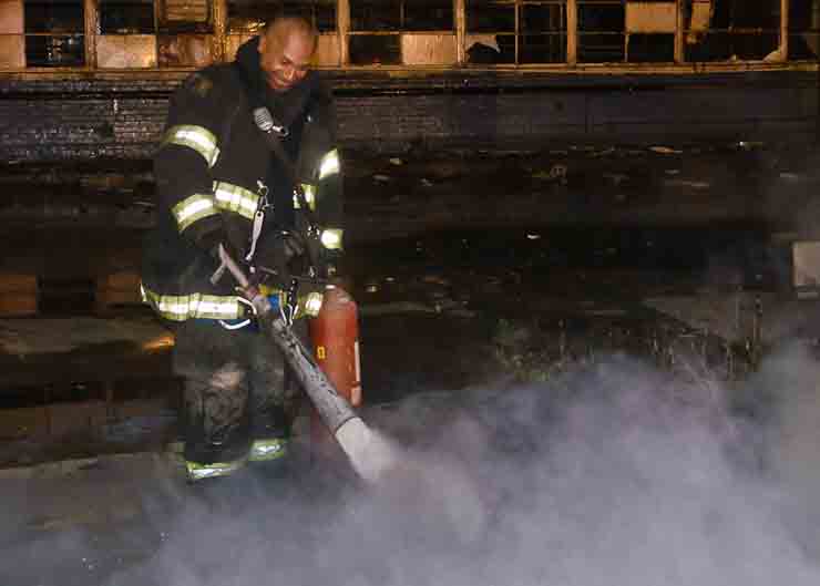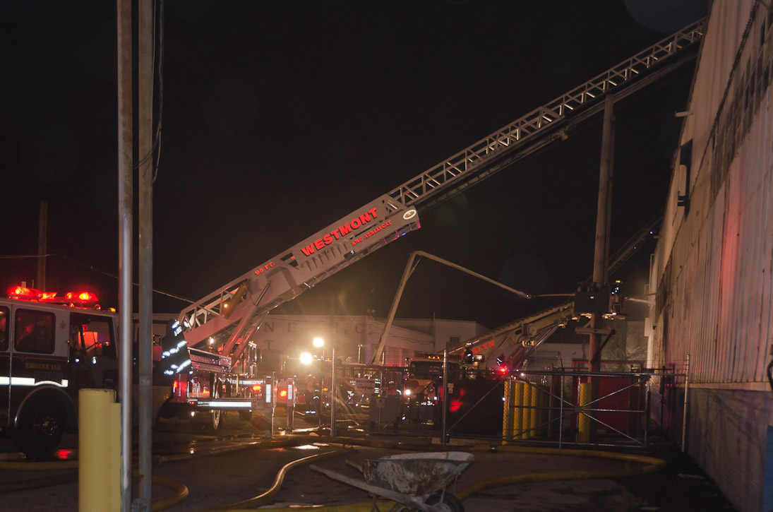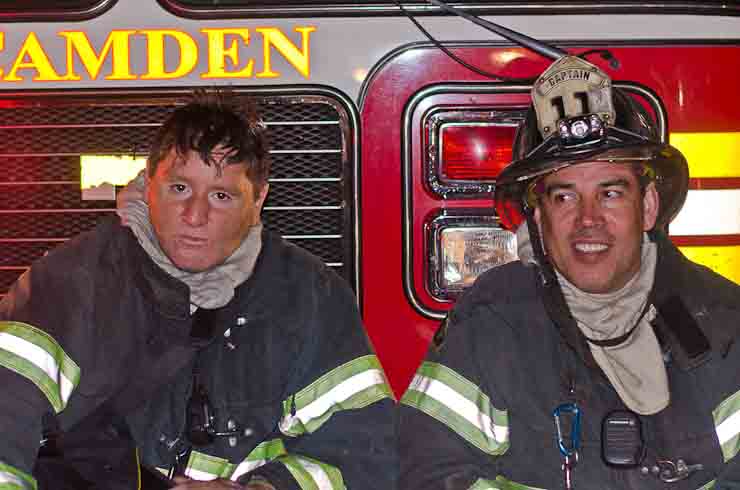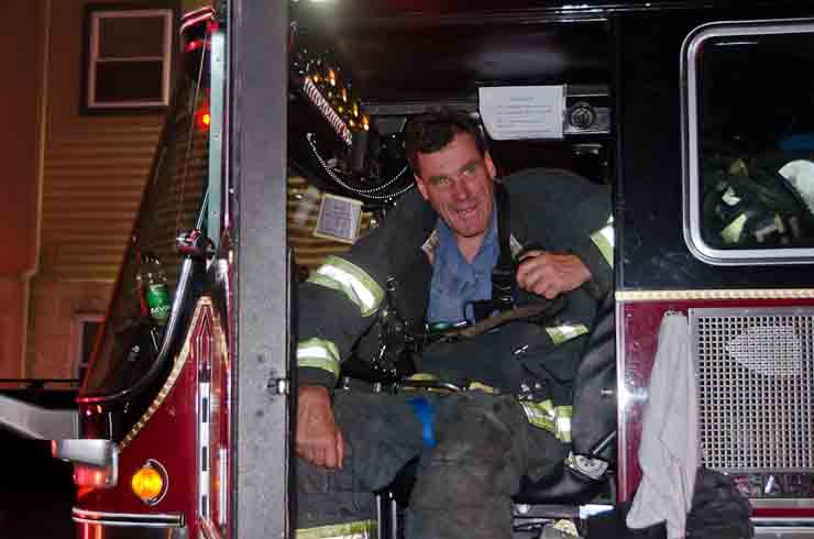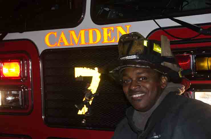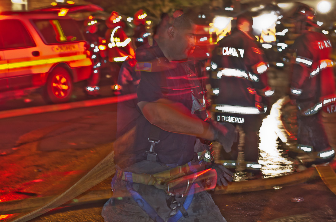 Magnetic Metals Corporation has been in operation on Hayes Avenue in the Cramer Hill section of Camden since 1942, manufacturing high grade nickel alloy laminations. The biggest fire to date in 2012, a building that was in the process of being emptied out caught fire around 11:00 PM on June 18, 2012. The fire went to six alarms before being brought under control. I arrived on scene at about the 13 minute mark, took my first shot at 11:07 AM, and was still there well over five hours later, taking my last shot at 4:45 AM. When I returned a few hours later, Engine 11 was still operating, wetting down hot spots. This is the third of four pages of photos of this fire. Links to continue to the next page, return to the first page, or skip ahead are at the bottom of this page. The photos are for the most part presented in the order in which they were taken… I was using two cameras, some photos taken in the same minute on each camera may be sequenced wrong, but that's small stuff! As with the web page covering other Camden Fire Department events, if you can identify anyone that I've missed, please comment at the bottom of the page. (I'm terrible at at names and faces). June 26, 2012 |