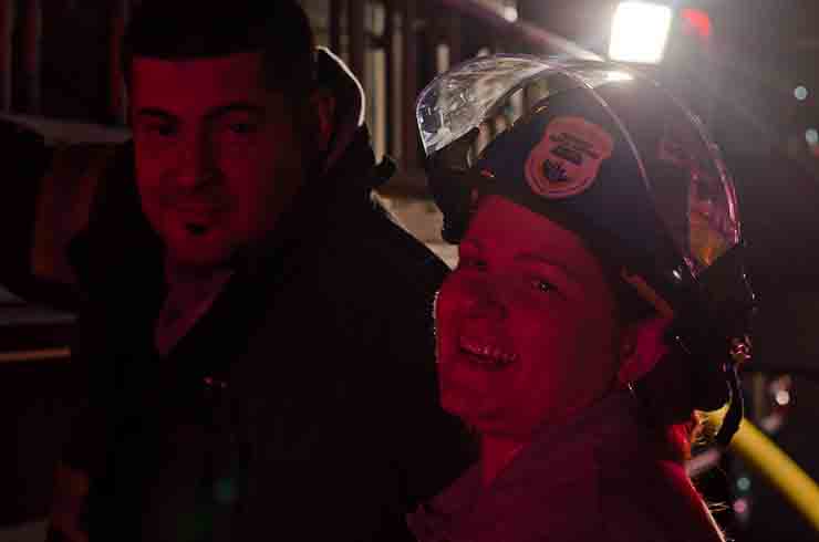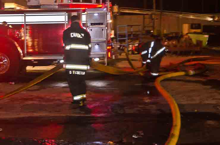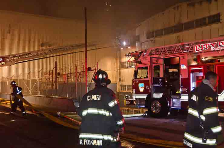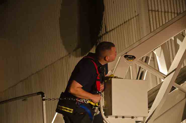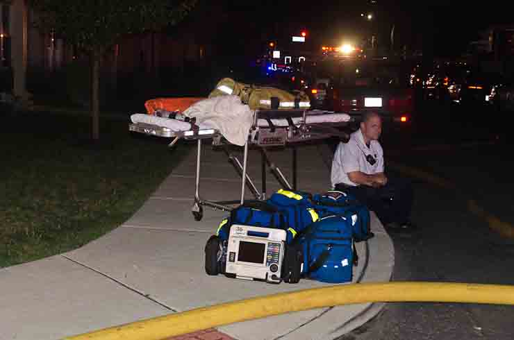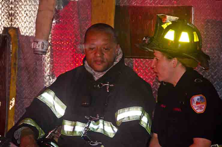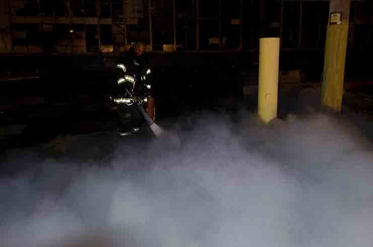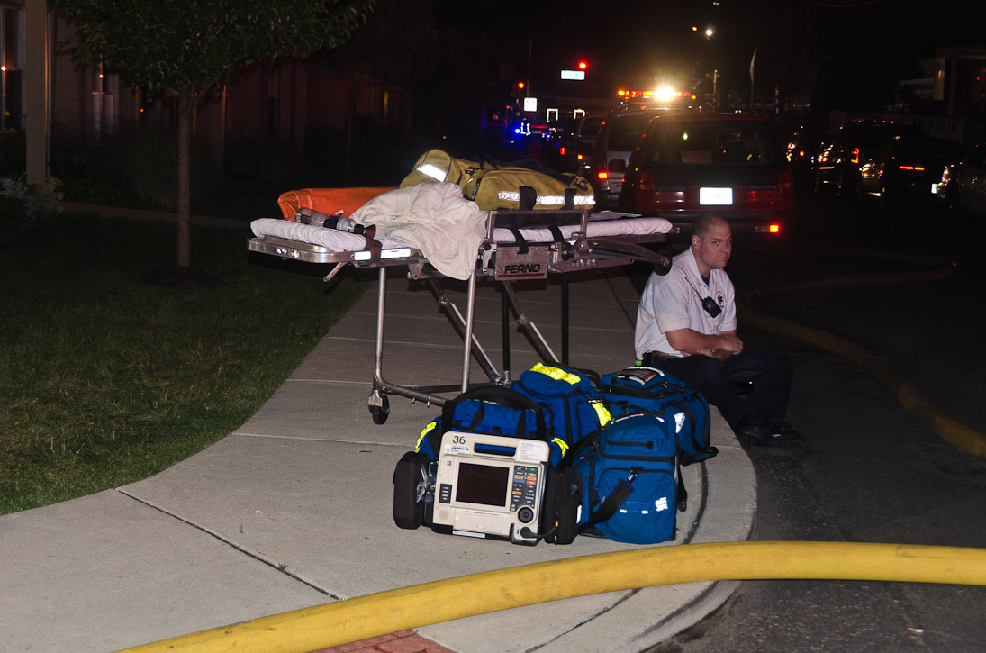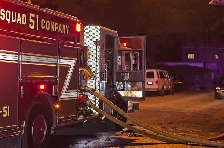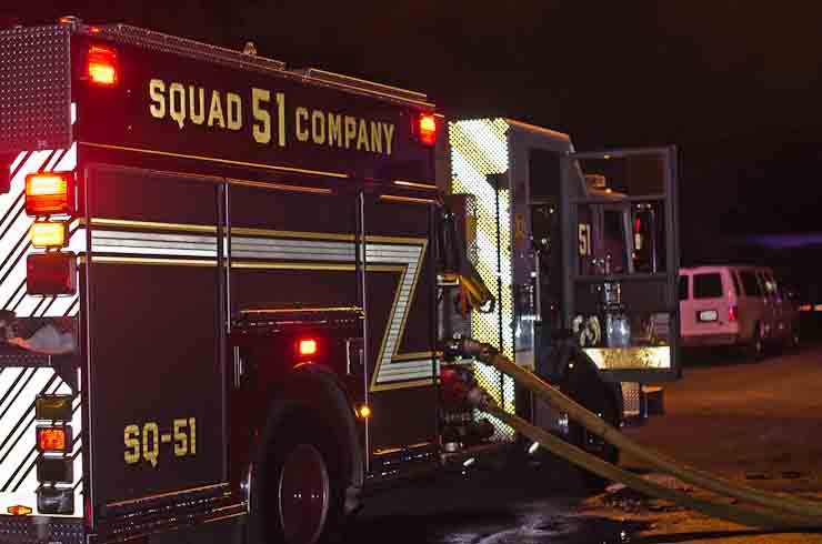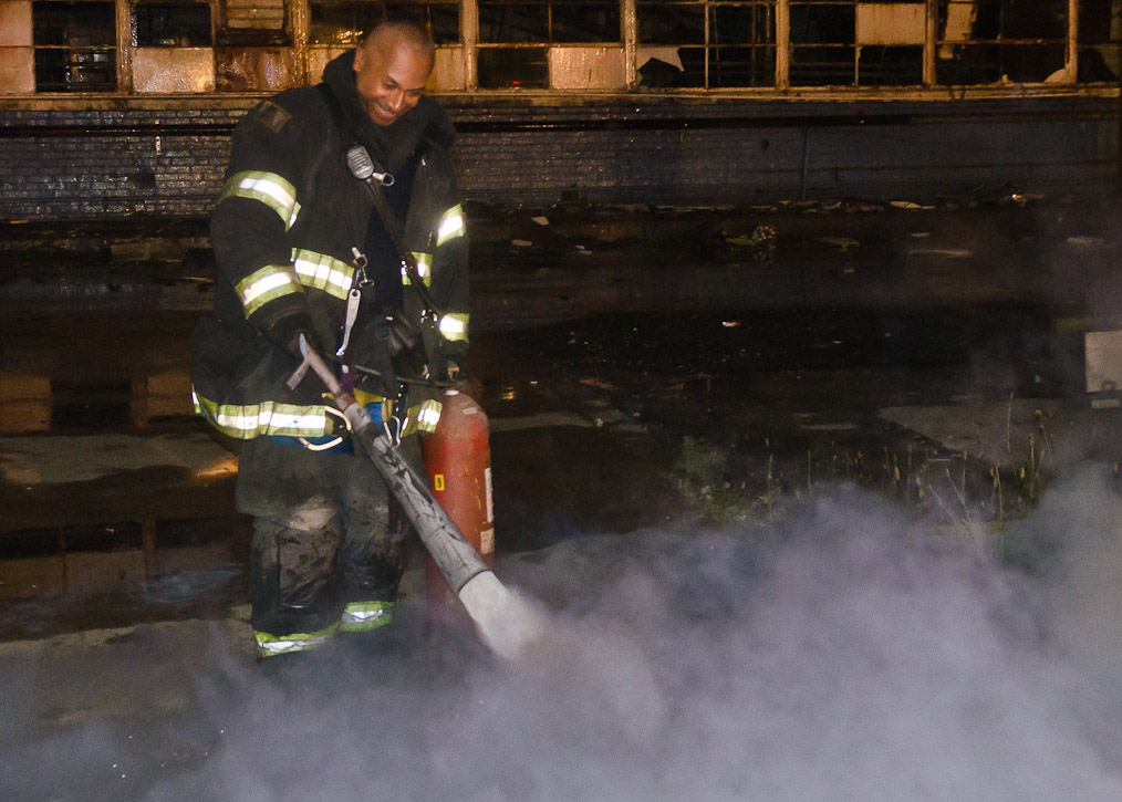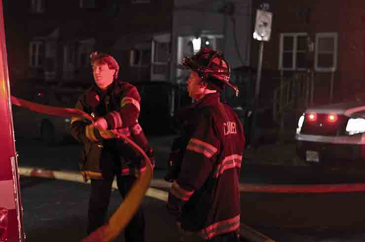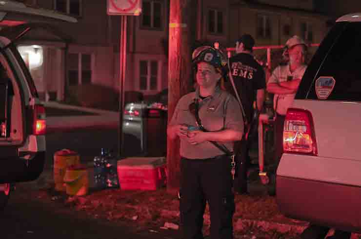 Magnetic Metals Corporation has been in operation on Hayes Avenue in the Cramer Hill section of Camden since 1942, manufacturing high grade nickel alloy laminations. The biggest fire to date in 2012, a building that was in the process of being emptied out caught fire around 11:00 PM on June 18, 2012. The fire went to six alarms before being brought under control. I arrived on scene at about the 13 minute mark, took my first shot at 11:07 AM, and was still there well over five hours later, taking my last shot at 4:45 AM. When I returned a few hours later, Engine 11 was still operating, wetting down hot spots. This is the third of four pages of photos of this fire. Links to continue to the next page, return to the first page, or skip ahead are at the bottom of this page. The photos are for the most part presented in the order in which they were taken… I was using two cameras, some photos taken in the same minute on each camera may be sequenced wrong, but that's small stuff! As with the web page covering other Camden Fire Department events, if you can identify anyone that I've missed, please comment at the bottom of the page. (I'm terrible at at names and faces). June 26, 2012 |