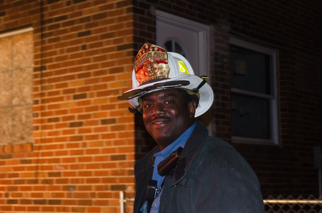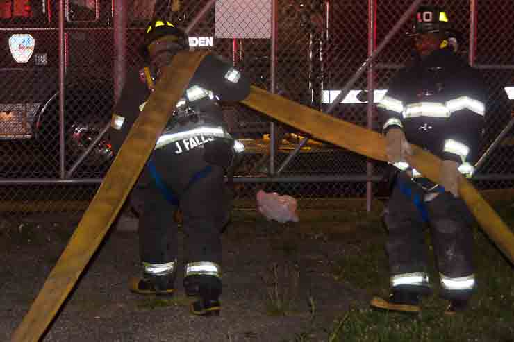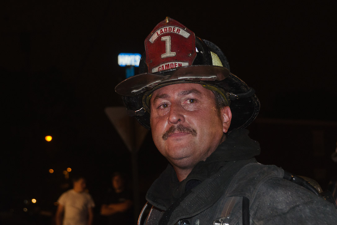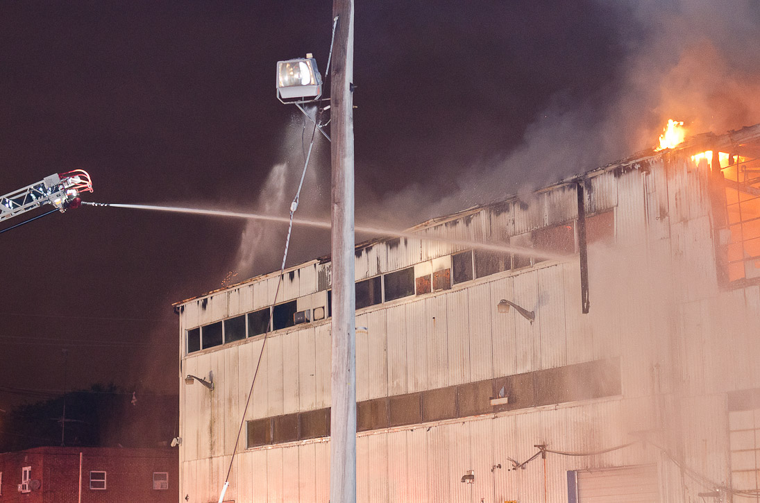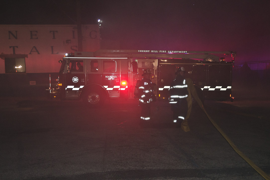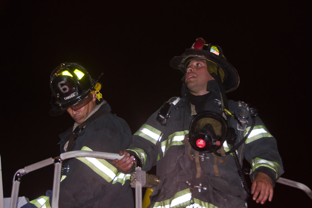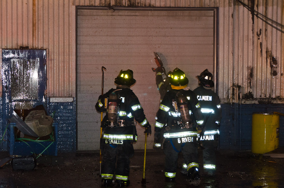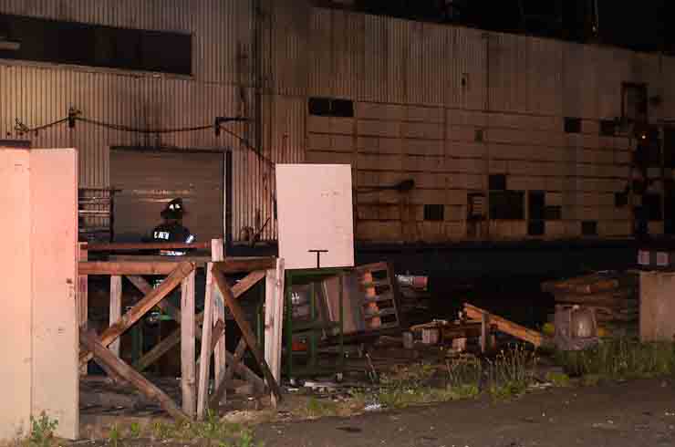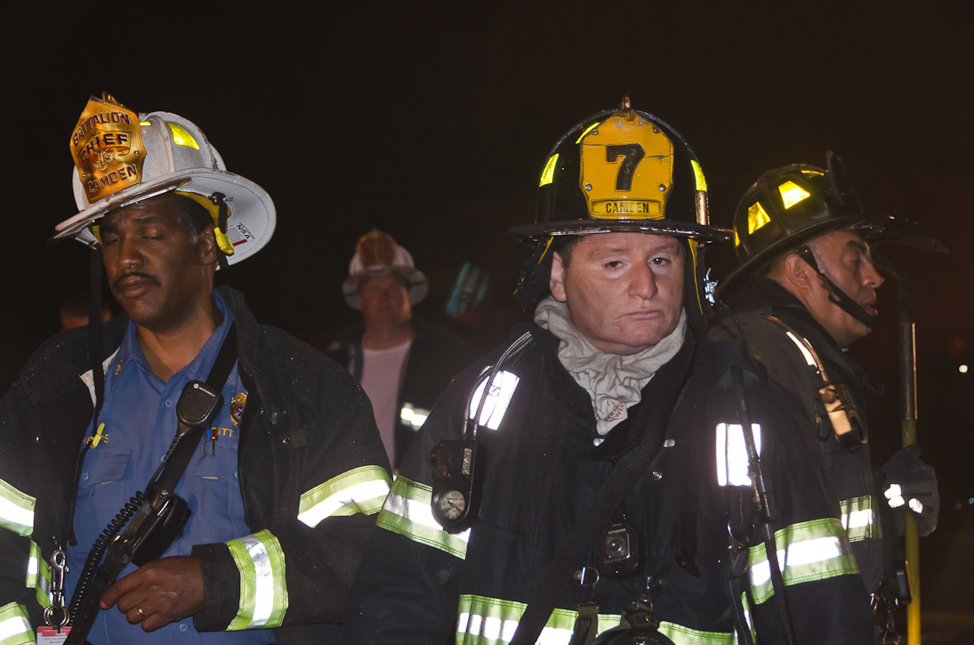 This page and the other pages in this series are the successors to the series of web-page about the Camden Fire Department that began with the page Camden Fire Department: The Fires of the Summer of 2011. On this and other pages in the series you will find pictures and information regarding different events and aspects of the fire service in Camden, New Jersey. Magnetic Metals Corporation has been in operation on Hayes Avenue in the Cramer Hill section of Camden since 1942, manufacturing high grade nickel alloy laminations. The biggest fire to date in 2012, a building that was in the process of being emptied out caught fire around 11:00 PM on June 18, 2012. The fire went to six alarms before being brought under control. Ted Aurig of www.NewJerseyFireground.com wrote the following account of the blaze: On June 19th, 2012 shortly before 11 p.m. Camden County Communications started to receive a couple calls of a warehouse on fire at 21st. and Hayes Ave’s. A Full box was dispatched to 1900 Hayes Ave at Magnetic Metals for a building fire in the Cramer Hill section of the city. Camden County Radio advised responding units they were receiving calls for flames through the windows of the building. Companies arrived and reported fire through the roof of a commercial building. Battalion 2 struck the 2nd Alarm. A 3rd Alarm was transmitted several minutes later. At the 20 minute mark, Command reported companies were operating in defensive operations as the Command staff was paring up Engine companies with the Ladder Companies for Ladder Pipe operations with heavy fire through the roof. Three additional Engine companies were special called to the scene. A 4th Alarm was transmitted. Car 3 reported fire running the roofline of a 350x400 warehouse. On the 5th Alarm a 5” strike team was dispatched. At the 90 minute mark Command reported the fire to still be doubtful. Fire conditions were present under the roof. Two additional Engines were special called to supply an additional Tower Ladder. The Truck Companies set up on all sides of the building in defensive operation. Companies remained operating. A 6th Alarm was transmitted. At the 3 hour mark companies were making good progress.The fire was officially placed under control at 2:49 A.M. No injuries were reported on the fire ground. The Camden City, Camden County and State Fire Marshals were on scene investigating the fire. According to press reports approx. 100 residents were evacuated from the area due to heavy smoke. This was the 2nd working warehouse fire in the City of Camden within 24 hours. The first fire was reported around 5 p.m. for a vacant warehouse. That fire was held to an All Hands Box. I arrived on scene at about the 13 minute mark, took my first shot at 11:07 AM, and was still there well over five hours later, taking my last shot at 4:45 AM. When I returned a few hours later, Engine 11 was still operating, wetting down hot spots. This is the first of four pages of photos of this fire. Links to continue to the next page or skip ahead are at the bottom of this page. The photos are for the most part presented in the order in which they were taken… I was using two cameras, some photos taken in the same minute on each camera may be sequenced wrong, but that's small stuff! As with the web page covering other Camden Fire Department events, if you can identify anyone that I've missed, please comment at the bottom of the page. (I'm terrible at at names and faces). June 26, 2012 |