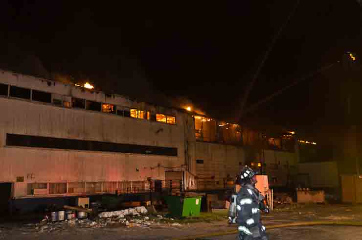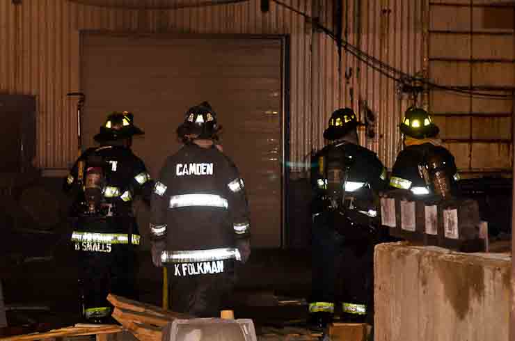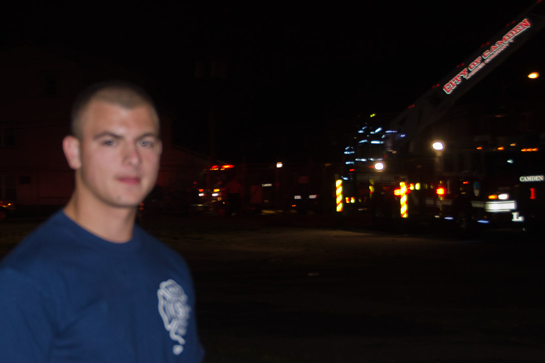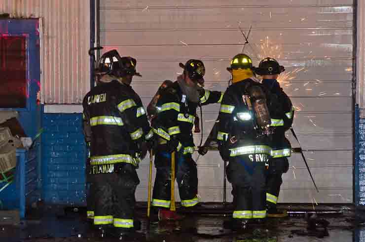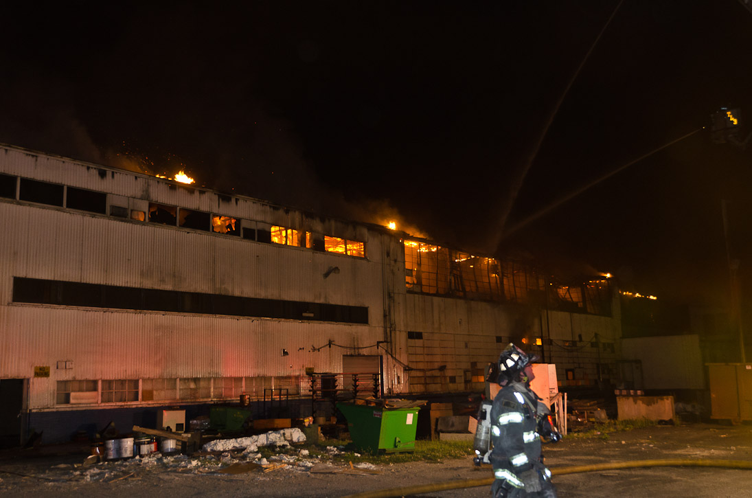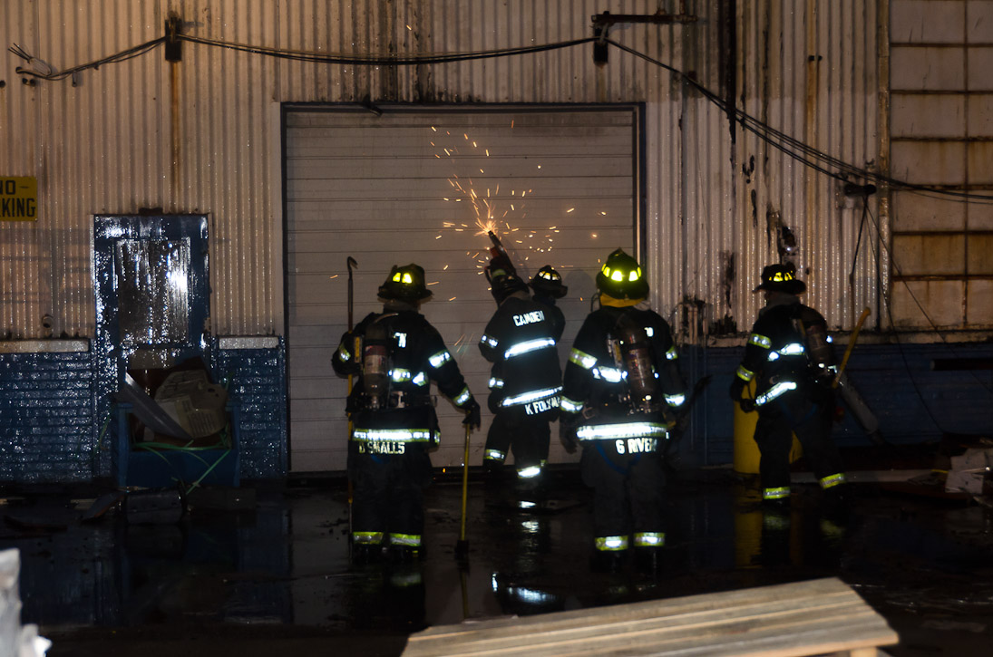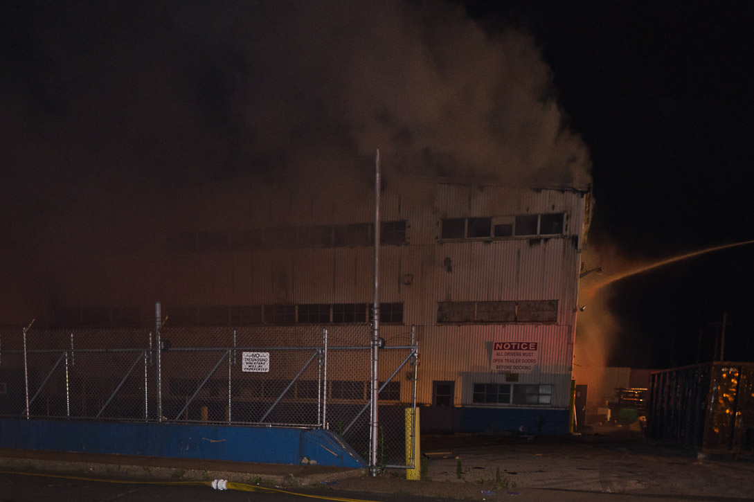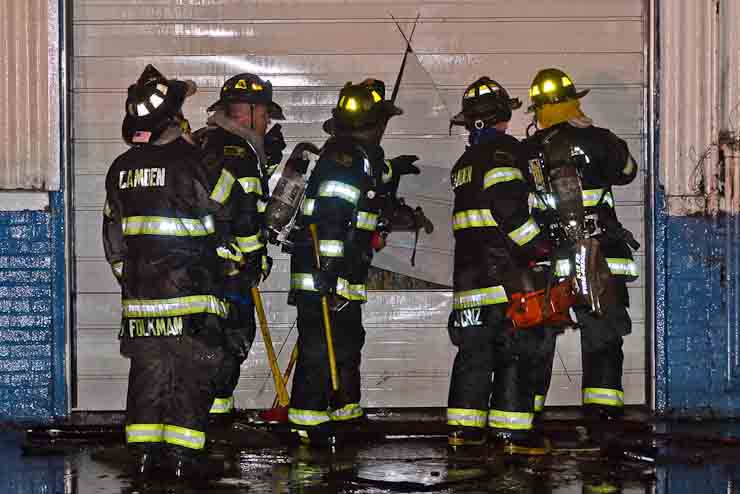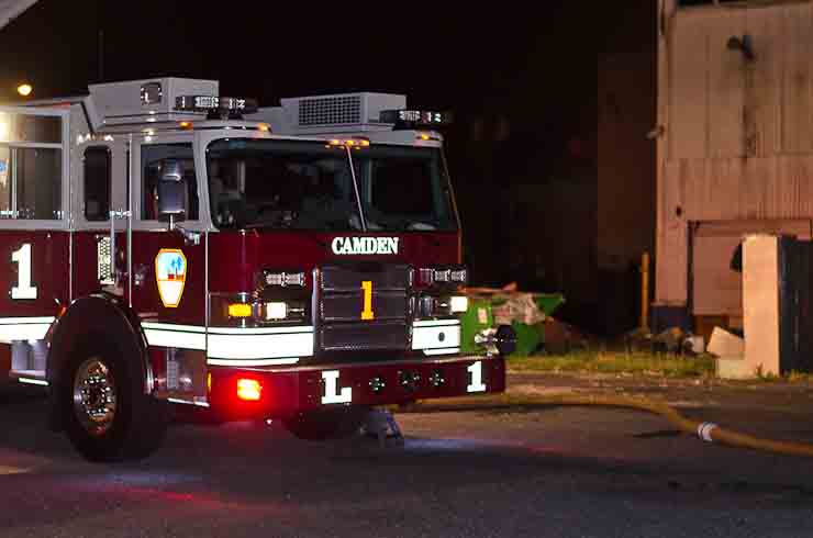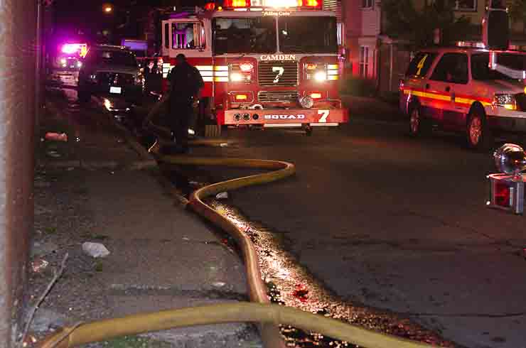 This page and the other pages in this series are the successors to the series of web-page about the Camden Fire Department that began with the page Camden Fire Department: The Fires of the Summer of 2011. On this and other pages in the series you will find pictures and information regarding different events and aspects of the fire service in Camden, New Jersey. Magnetic Metals Corporation has been in operation on Hayes Avenue in the Cramer Hill section of Camden since 1942, manufacturing high grade nickel alloy laminations. The biggest fire to date in 2012, a building that was in the process of being emptied out caught fire around 11:00 PM on June 18, 2012. The fire went to six alarms before being brought under control. Ted Aurig of www.NewJerseyFireground.com wrote the following account of the blaze: On June 19th, 2012 shortly before 11 p.m. Camden County Communications started to receive a couple calls of a warehouse on fire at 21st. and Hayes Ave’s. A Full box was dispatched to 1900 Hayes Ave at Magnetic Metals for a building fire in the Cramer Hill section of the city. Camden County Radio advised responding units they were receiving calls for flames through the windows of the building. Companies arrived and reported fire through the roof of a commercial building. Battalion 2 struck the 2nd Alarm. A 3rd Alarm was transmitted several minutes later. At the 20 minute mark, Command reported companies were operating in defensive operations as the Command staff was paring up Engine companies with the Ladder Companies for Ladder Pipe operations with heavy fire through the roof. Three additional Engine companies were special called to the scene. A 4th Alarm was transmitted. Car 3 reported fire running the roofline of a 350x400 warehouse. On the 5th Alarm a 5” strike team was dispatched. At the 90 minute mark Command reported the fire to still be doubtful. Fire conditions were present under the roof. Two additional Engines were special called to supply an additional Tower Ladder. The Truck Companies set up on all sides of the building in defensive operation. Companies remained operating. A 6th Alarm was transmitted. At the 3 hour mark companies were making good progress.The fire was officially placed under control at 2:49 A.M. No injuries were reported on the fire ground. The Camden City, Camden County and State Fire Marshals were on scene investigating the fire. According to press reports approx. 100 residents were evacuated from the area due to heavy smoke. This was the 2nd working warehouse fire in the City of Camden within 24 hours. The first fire was reported around 5 p.m. for a vacant warehouse. That fire was held to an All Hands Box. I arrived on scene at about the 13 minute mark, took my first shot at 11:07 AM, and was still there well over five hours later, taking my last shot at 4:45 AM. When I returned a few hours later, Engine 11 was still operating, wetting down hot spots. This is the first of four pages of photos of this fire. Links to continue to the next page or skip ahead are at the bottom of this page. The photos are for the most part presented in the order in which they were taken… I was using two cameras, some photos taken in the same minute on each camera may be sequenced wrong, but that's small stuff! As with the web page covering other Camden Fire Department events, if you can identify anyone that I've missed, please comment at the bottom of the page. (I'm terrible at at names and faces). June 26, 2012 |