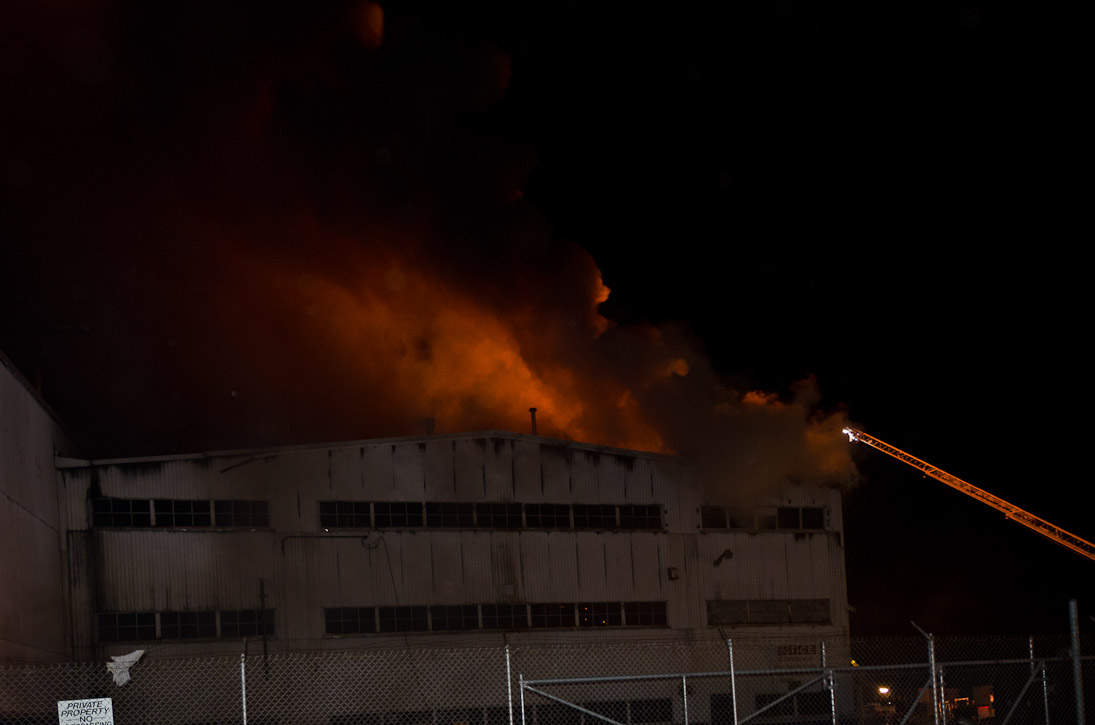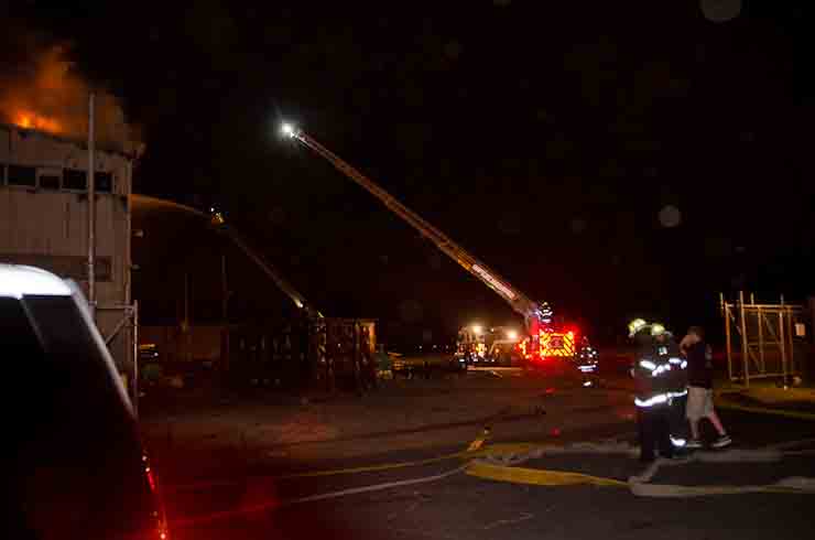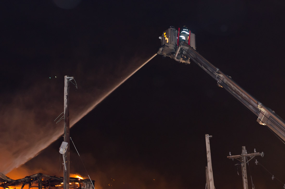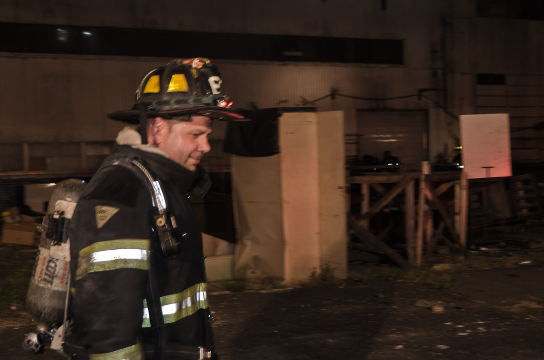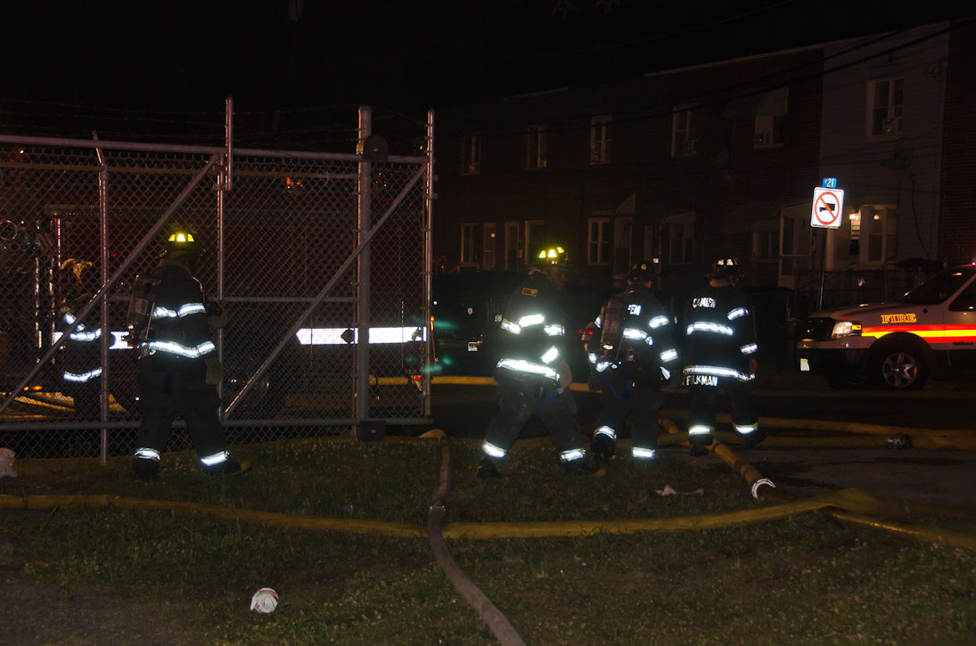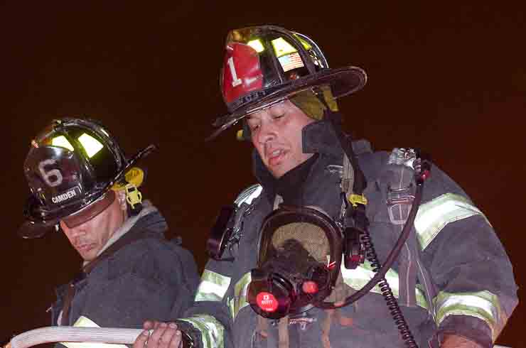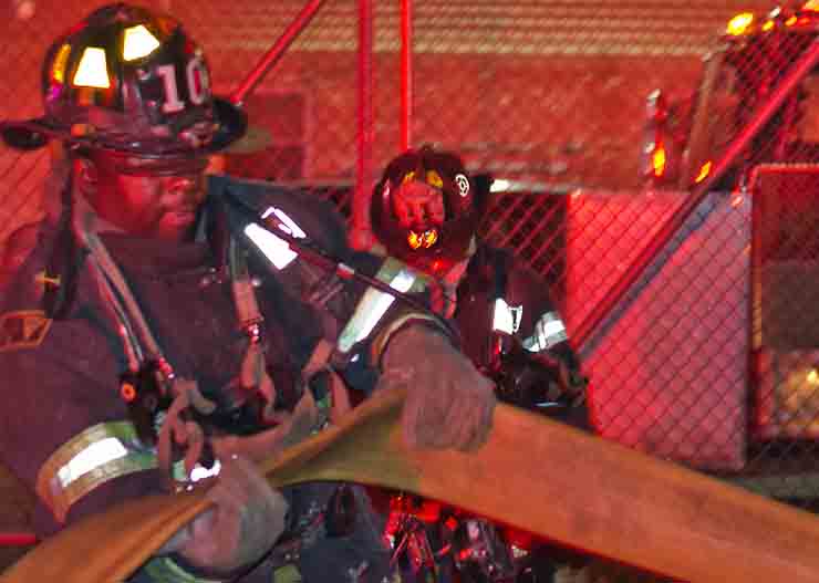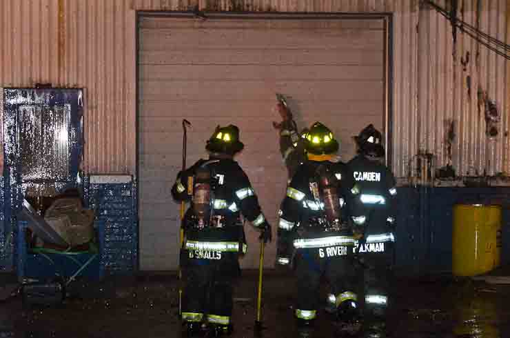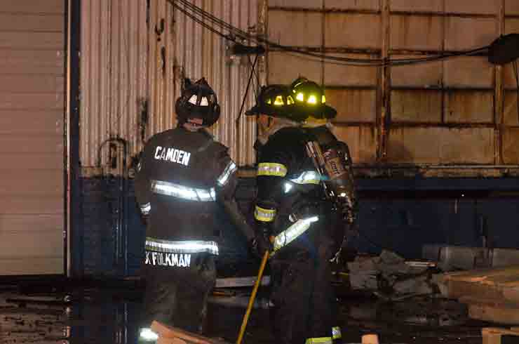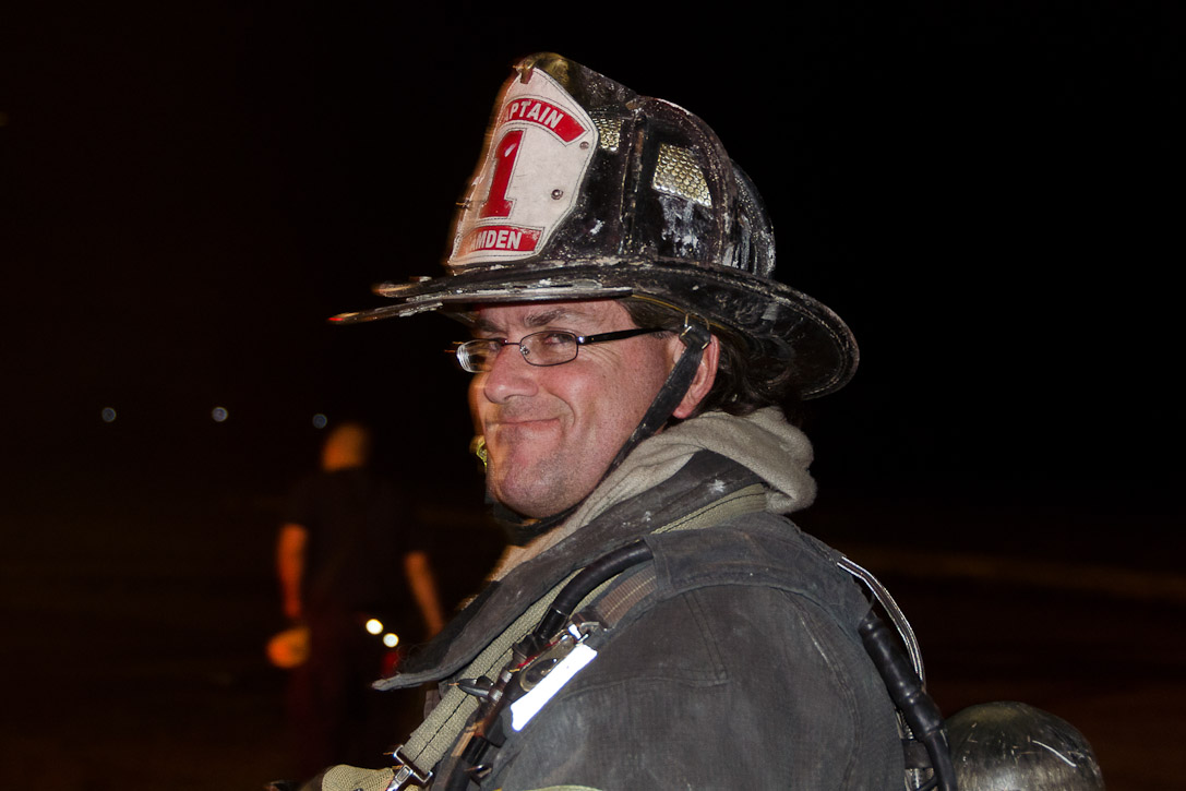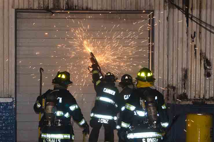 This page and the other pages in this series are the successors to the series of web-page about the Camden Fire Department that began with the page Camden Fire Department: The Fires of the Summer of 2011. On this and other pages in the series you will find pictures and information regarding different events and aspects of the fire service in Camden, New Jersey. Magnetic Metals Corporation has been in operation on Hayes Avenue in the Cramer Hill section of Camden since 1942, manufacturing high grade nickel alloy laminations. The biggest fire to date in 2012, a building that was in the process of being emptied out caught fire around 11:00 PM on June 18, 2012. The fire went to six alarms before being brought under control. Ted Aurig of www.NewJerseyFireground.com wrote the following account of the blaze: On June 19th, 2012 shortly before 11 p.m. Camden County Communications started to receive a couple calls of a warehouse on fire at 21st. and Hayes Ave’s. A Full box was dispatched to 1900 Hayes Ave at Magnetic Metals for a building fire in the Cramer Hill section of the city. Camden County Radio advised responding units they were receiving calls for flames through the windows of the building. Companies arrived and reported fire through the roof of a commercial building. Battalion 2 struck the 2nd Alarm. A 3rd Alarm was transmitted several minutes later. At the 20 minute mark, Command reported companies were operating in defensive operations as the Command staff was paring up Engine companies with the Ladder Companies for Ladder Pipe operations with heavy fire through the roof. Three additional Engine companies were special called to the scene. A 4th Alarm was transmitted. Car 3 reported fire running the roofline of a 350x400 warehouse. On the 5th Alarm a 5” strike team was dispatched. At the 90 minute mark Command reported the fire to still be doubtful. Fire conditions were present under the roof. Two additional Engines were special called to supply an additional Tower Ladder. The Truck Companies set up on all sides of the building in defensive operation. Companies remained operating. A 6th Alarm was transmitted. At the 3 hour mark companies were making good progress.The fire was officially placed under control at 2:49 A.M. No injuries were reported on the fire ground. The Camden City, Camden County and State Fire Marshals were on scene investigating the fire. According to press reports approx. 100 residents were evacuated from the area due to heavy smoke. This was the 2nd working warehouse fire in the City of Camden within 24 hours. The first fire was reported around 5 p.m. for a vacant warehouse. That fire was held to an All Hands Box. I arrived on scene at about the 13 minute mark, took my first shot at 11:07 AM, and was still there well over five hours later, taking my last shot at 4:45 AM. When I returned a few hours later, Engine 11 was still operating, wetting down hot spots. This is the first of four pages of photos of this fire. Links to continue to the next page or skip ahead are at the bottom of this page. The photos are for the most part presented in the order in which they were taken… I was using two cameras, some photos taken in the same minute on each camera may be sequenced wrong, but that's small stuff! As with the web page covering other Camden Fire Department events, if you can identify anyone that I've missed, please comment at the bottom of the page. (I'm terrible at at names and faces). June 26, 2012 |