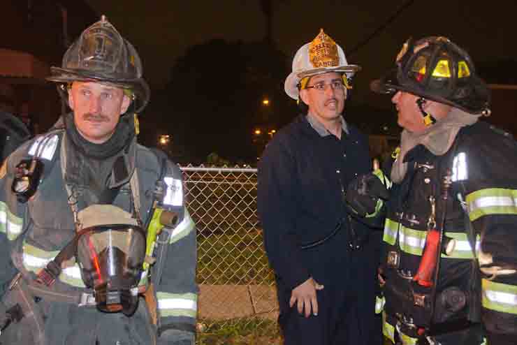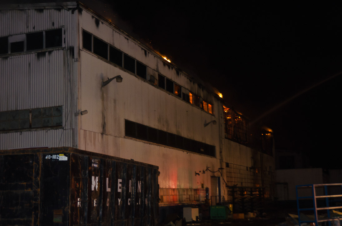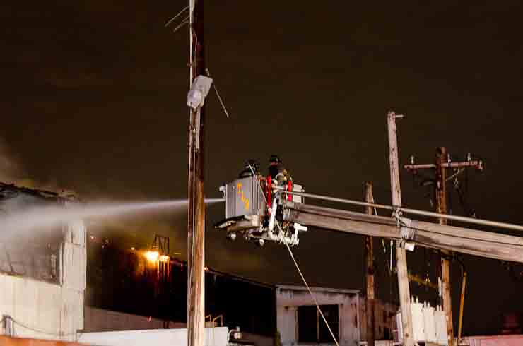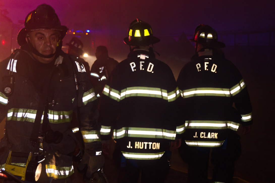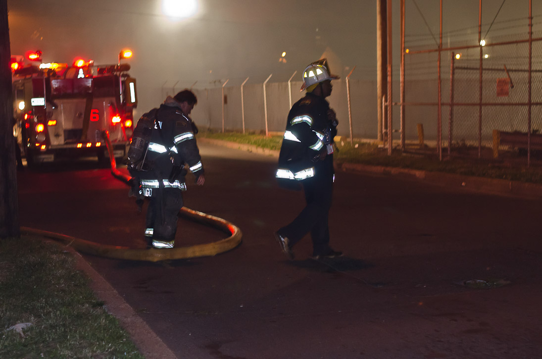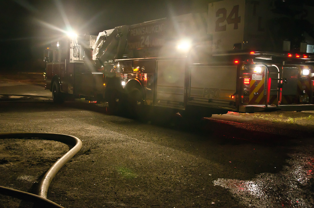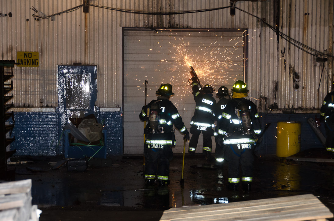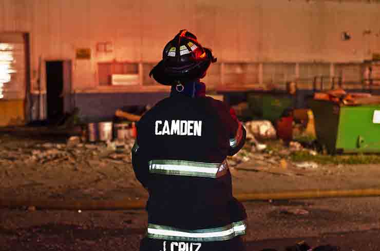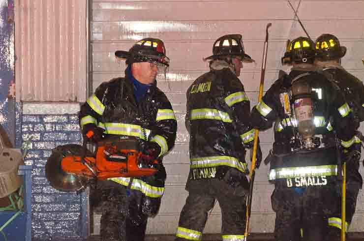 This page and the other pages in this series are the successors to the series of web-page about the Camden Fire Department that began with the page Camden Fire Department: The Fires of the Summer of 2011. On this and other pages in the series you will find pictures and information regarding different events and aspects of the fire service in Camden, New Jersey. Magnetic Metals Corporation has been in operation on Hayes Avenue in the Cramer Hill section of Camden since 1942, manufacturing high grade nickel alloy laminations. The biggest fire to date in 2012, a building that was in the process of being emptied out caught fire around 11:00 PM on June 18, 2012. The fire went to six alarms before being brought under control. Ted Aurig of www.NewJerseyFireground.com wrote the following account of the blaze: On June 19th, 2012 shortly before 11 p.m. Camden County Communications started to receive a couple calls of a warehouse on fire at 21st. and Hayes Ave’s. A Full box was dispatched to 1900 Hayes Ave at Magnetic Metals for a building fire in the Cramer Hill section of the city. Camden County Radio advised responding units they were receiving calls for flames through the windows of the building. Companies arrived and reported fire through the roof of a commercial building. Battalion 2 struck the 2nd Alarm. A 3rd Alarm was transmitted several minutes later. At the 20 minute mark, Command reported companies were operating in defensive operations as the Command staff was paring up Engine companies with the Ladder Companies for Ladder Pipe operations with heavy fire through the roof. Three additional Engine companies were special called to the scene. A 4th Alarm was transmitted. Car 3 reported fire running the roofline of a 350x400 warehouse. On the 5th Alarm a 5” strike team was dispatched. At the 90 minute mark Command reported the fire to still be doubtful. Fire conditions were present under the roof. Two additional Engines were special called to supply an additional Tower Ladder. The Truck Companies set up on all sides of the building in defensive operation. Companies remained operating. A 6th Alarm was transmitted. At the 3 hour mark companies were making good progress.The fire was officially placed under control at 2:49 A.M. No injuries were reported on the fire ground. The Camden City, Camden County and State Fire Marshals were on scene investigating the fire. According to press reports approx. 100 residents were evacuated from the area due to heavy smoke. This was the 2nd working warehouse fire in the City of Camden within 24 hours. The first fire was reported around 5 p.m. for a vacant warehouse. That fire was held to an All Hands Box. I arrived on scene at about the 13 minute mark, took my first shot at 11:07 AM, and was still there well over five hours later, taking my last shot at 4:45 AM. When I returned a few hours later, Engine 11 was still operating, wetting down hot spots. This is the first of four pages of photos of this fire. Links to continue to the next page or skip ahead are at the bottom of this page. The photos are for the most part presented in the order in which they were taken… I was using two cameras, some photos taken in the same minute on each camera may be sequenced wrong, but that's small stuff! As with the web page covering other Camden Fire Department events, if you can identify anyone that I've missed, please comment at the bottom of the page. (I'm terrible at at names and faces). June 26, 2012 |