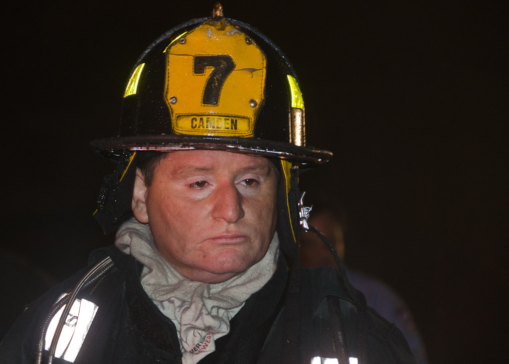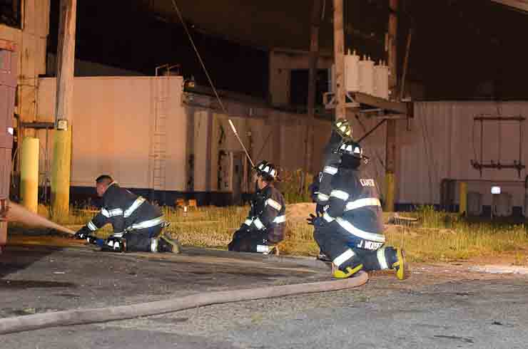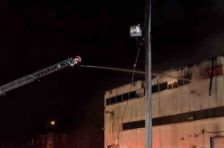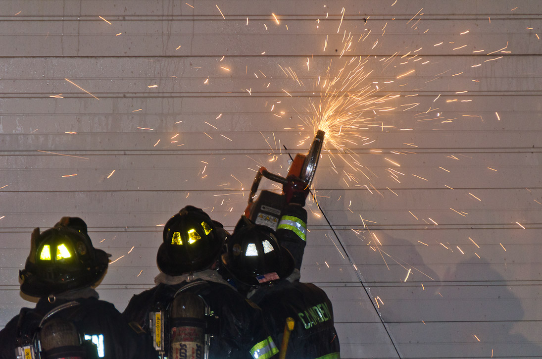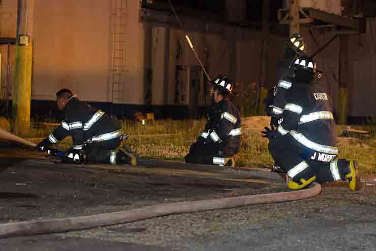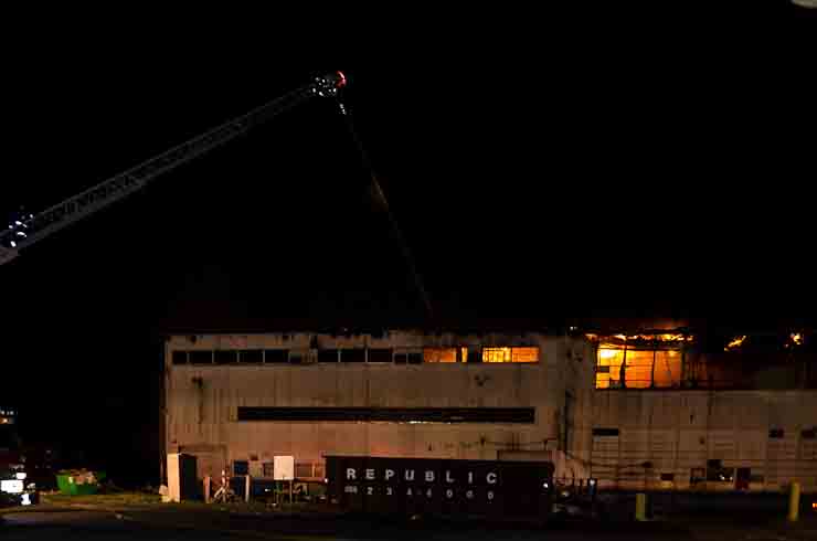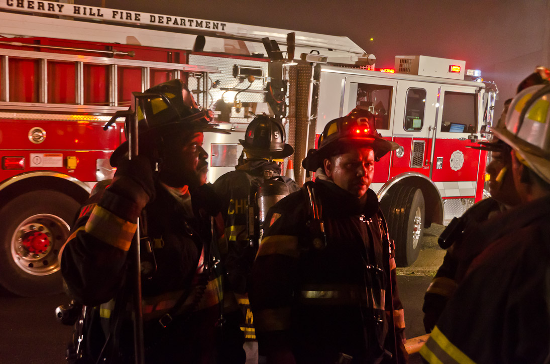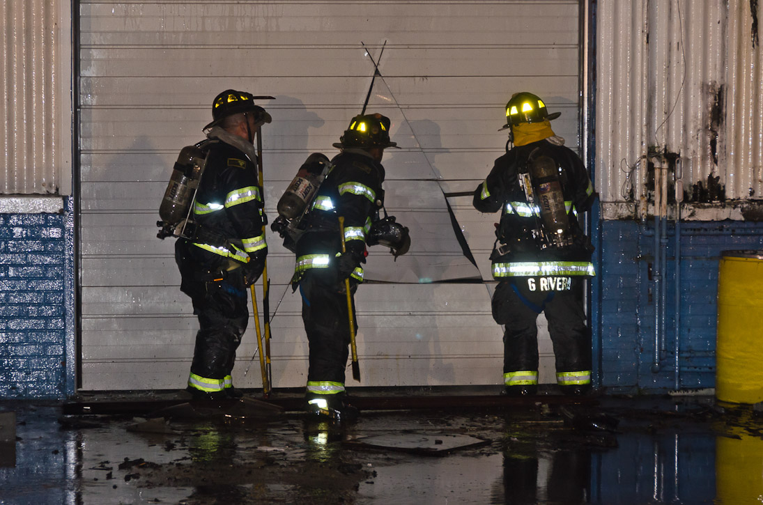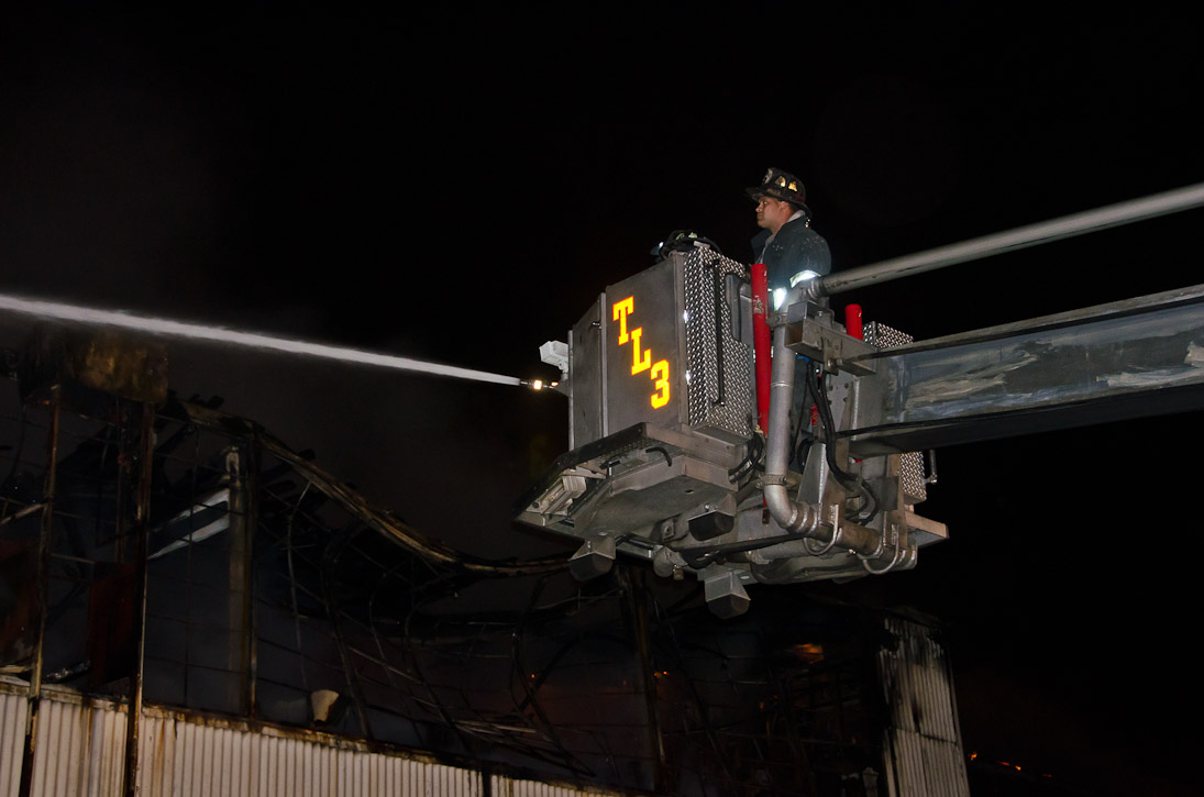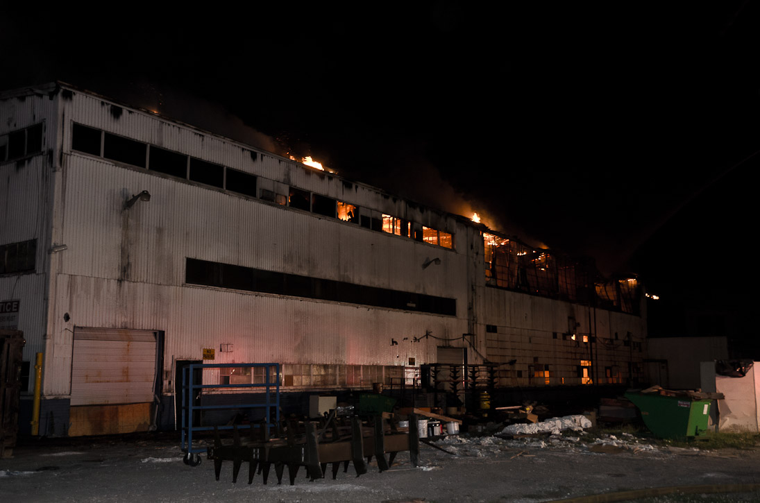 This page and the other pages in this series are the successors to the series of web-page about the Camden Fire Department that began with the page Camden Fire Department: The Fires of the Summer of 2011. On this and other pages in the series you will find pictures and information regarding different events and aspects of the fire service in Camden, New Jersey. Magnetic Metals Corporation has been in operation on Hayes Avenue in the Cramer Hill section of Camden since 1942, manufacturing high grade nickel alloy laminations. The biggest fire to date in 2012, a building that was in the process of being emptied out caught fire around 11:00 PM on June 18, 2012. The fire went to six alarms before being brought under control. Ted Aurig of www.NewJerseyFireground.com wrote the following account of the blaze: On June 19th, 2012 shortly before 11 p.m. Camden County Communications started to receive a couple calls of a warehouse on fire at 21st. and Hayes Ave’s. A Full box was dispatched to 1900 Hayes Ave at Magnetic Metals for a building fire in the Cramer Hill section of the city. Camden County Radio advised responding units they were receiving calls for flames through the windows of the building. Companies arrived and reported fire through the roof of a commercial building. Battalion 2 struck the 2nd Alarm. A 3rd Alarm was transmitted several minutes later. At the 20 minute mark, Command reported companies were operating in defensive operations as the Command staff was paring up Engine companies with the Ladder Companies for Ladder Pipe operations with heavy fire through the roof. Three additional Engine companies were special called to the scene. A 4th Alarm was transmitted. Car 3 reported fire running the roofline of a 350x400 warehouse. On the 5th Alarm a 5” strike team was dispatched. At the 90 minute mark Command reported the fire to still be doubtful. Fire conditions were present under the roof. Two additional Engines were special called to supply an additional Tower Ladder. The Truck Companies set up on all sides of the building in defensive operation. Companies remained operating. A 6th Alarm was transmitted. At the 3 hour mark companies were making good progress.The fire was officially placed under control at 2:49 A.M. No injuries were reported on the fire ground. The Camden City, Camden County and State Fire Marshals were on scene investigating the fire. According to press reports approx. 100 residents were evacuated from the area due to heavy smoke. This was the 2nd working warehouse fire in the City of Camden within 24 hours. The first fire was reported around 5 p.m. for a vacant warehouse. That fire was held to an All Hands Box. I arrived on scene at about the 13 minute mark, took my first shot at 11:07 AM, and was still there well over five hours later, taking my last shot at 4:45 AM. When I returned a few hours later, Engine 11 was still operating, wetting down hot spots. This is the first of four pages of photos of this fire. Links to continue to the next page or skip ahead are at the bottom of this page. The photos are for the most part presented in the order in which they were taken… I was using two cameras, some photos taken in the same minute on each camera may be sequenced wrong, but that's small stuff! As with the web page covering other Camden Fire Department events, if you can identify anyone that I've missed, please comment at the bottom of the page. (I'm terrible at at names and faces). June 26, 2012 |