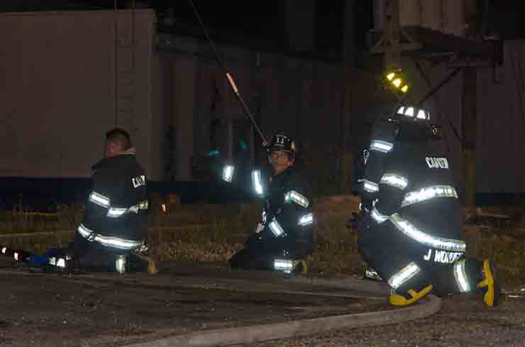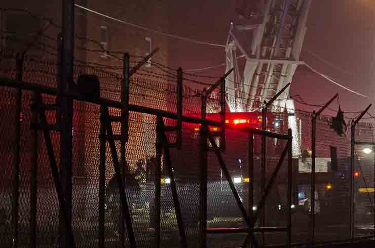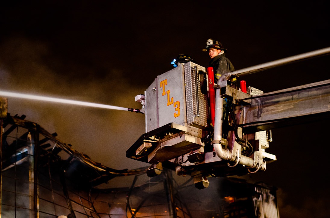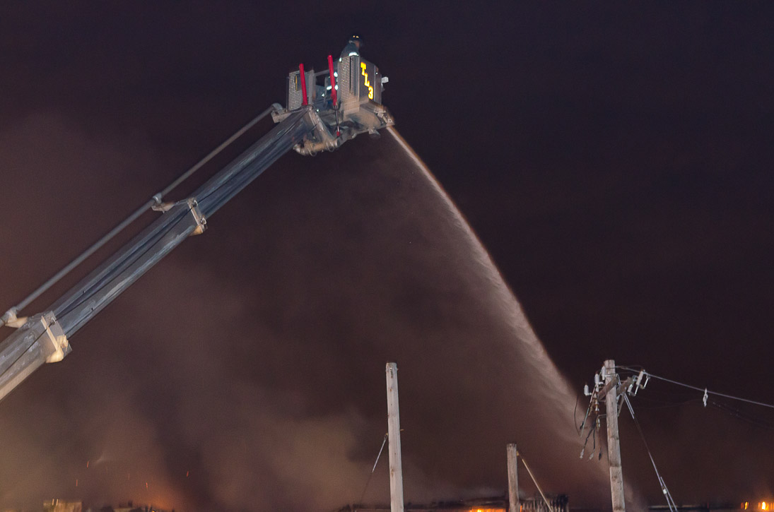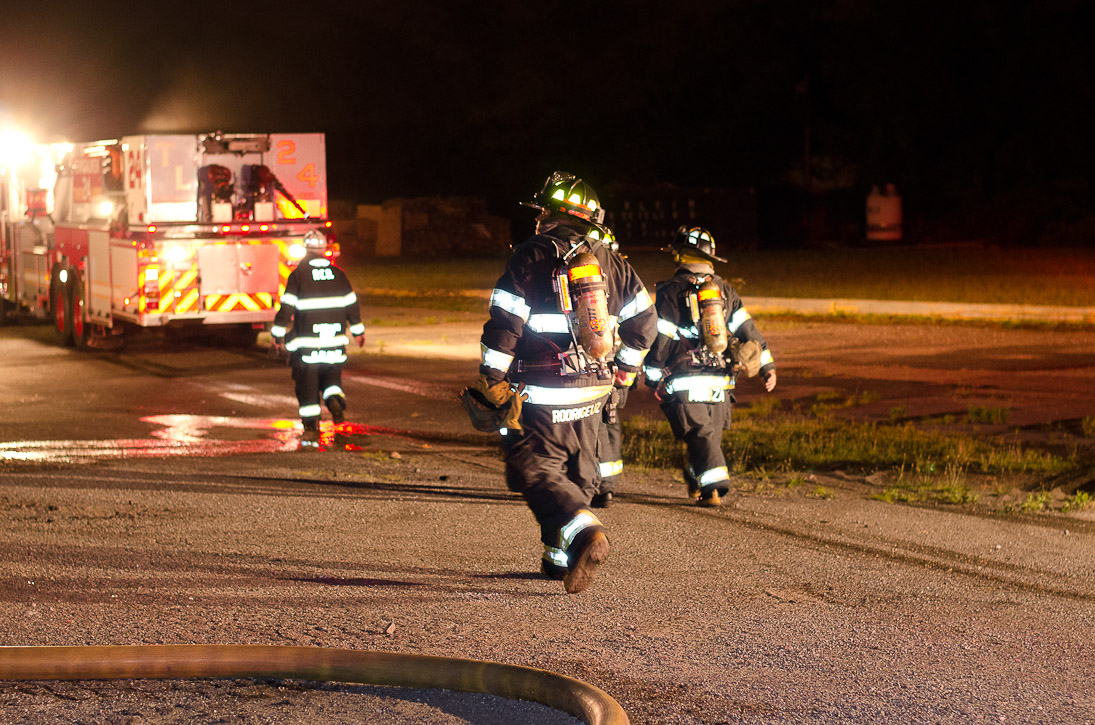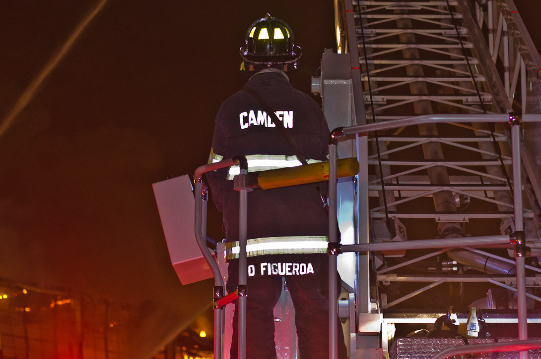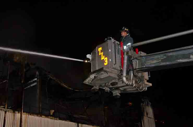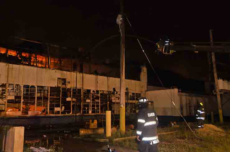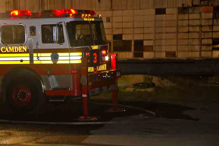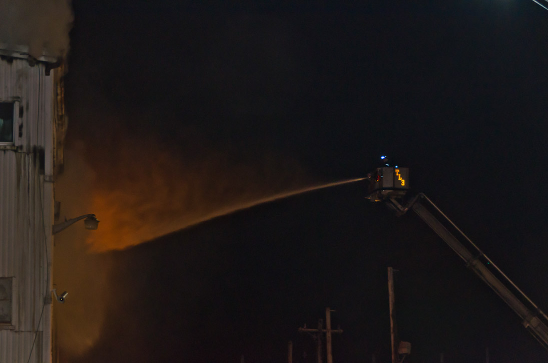 This page and the other pages in this series are the successors to the series of web-page about the Camden Fire Department that began with the page Camden Fire Department: The Fires of the Summer of 2011. On this and other pages in the series you will find pictures and information regarding different events and aspects of the fire service in Camden, New Jersey. Magnetic Metals Corporation has been in operation on Hayes Avenue in the Cramer Hill section of Camden since 1942, manufacturing high grade nickel alloy laminations. The biggest fire to date in 2012, a building that was in the process of being emptied out caught fire around 11:00 PM on June 18, 2012. The fire went to six alarms before being brought under control. Ted Aurig of www.NewJerseyFireground.com wrote the following account of the blaze: On June 19th, 2012 shortly before 11 p.m. Camden County Communications started to receive a couple calls of a warehouse on fire at 21st. and Hayes Ave’s. A Full box was dispatched to 1900 Hayes Ave at Magnetic Metals for a building fire in the Cramer Hill section of the city. Camden County Radio advised responding units they were receiving calls for flames through the windows of the building. Companies arrived and reported fire through the roof of a commercial building. Battalion 2 struck the 2nd Alarm. A 3rd Alarm was transmitted several minutes later. At the 20 minute mark, Command reported companies were operating in defensive operations as the Command staff was paring up Engine companies with the Ladder Companies for Ladder Pipe operations with heavy fire through the roof. Three additional Engine companies were special called to the scene. A 4th Alarm was transmitted. Car 3 reported fire running the roofline of a 350x400 warehouse. On the 5th Alarm a 5” strike team was dispatched. At the 90 minute mark Command reported the fire to still be doubtful. Fire conditions were present under the roof. Two additional Engines were special called to supply an additional Tower Ladder. The Truck Companies set up on all sides of the building in defensive operation. Companies remained operating. A 6th Alarm was transmitted. At the 3 hour mark companies were making good progress.The fire was officially placed under control at 2:49 A.M. No injuries were reported on the fire ground. The Camden City, Camden County and State Fire Marshals were on scene investigating the fire. According to press reports approx. 100 residents were evacuated from the area due to heavy smoke. This was the 2nd working warehouse fire in the City of Camden within 24 hours. The first fire was reported around 5 p.m. for a vacant warehouse. That fire was held to an All Hands Box. I arrived on scene at about the 13 minute mark, took my first shot at 11:07 AM, and was still there well over five hours later, taking my last shot at 4:45 AM. When I returned a few hours later, Engine 11 was still operating, wetting down hot spots. This is the first of four pages of photos of this fire. Links to continue to the next page or skip ahead are at the bottom of this page. The photos are for the most part presented in the order in which they were taken… I was using two cameras, some photos taken in the same minute on each camera may be sequenced wrong, but that's small stuff! As with the web page covering other Camden Fire Department events, if you can identify anyone that I've missed, please comment at the bottom of the page. (I'm terrible at at names and faces). June 26, 2012 |
