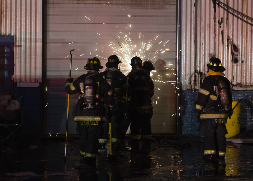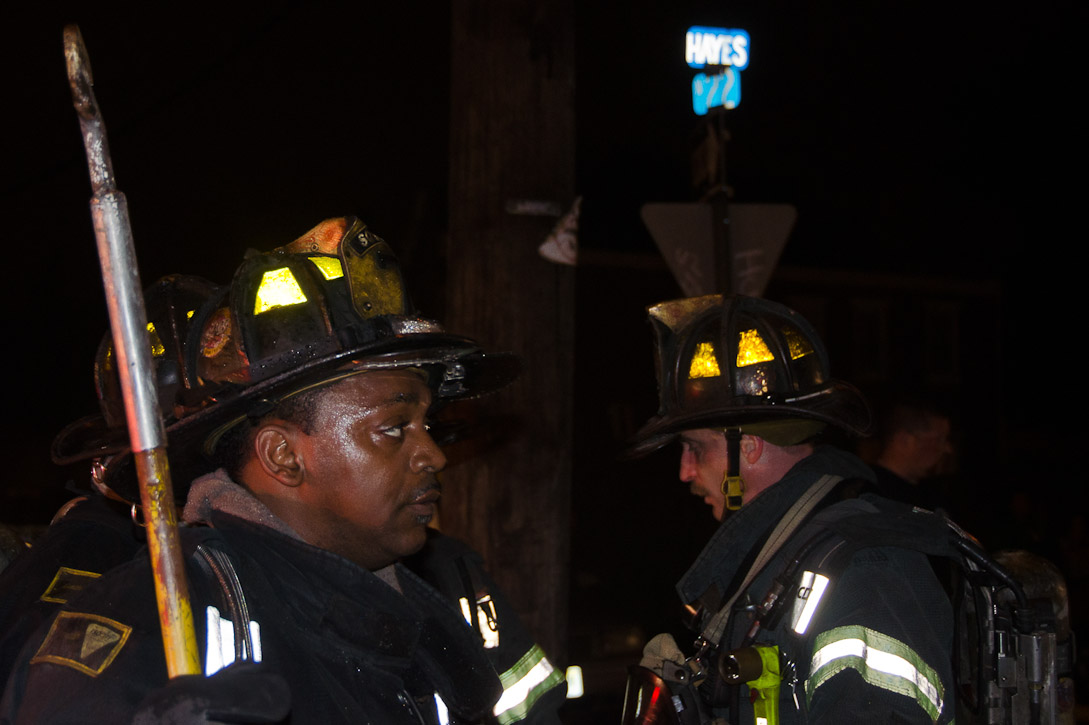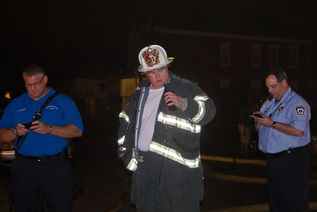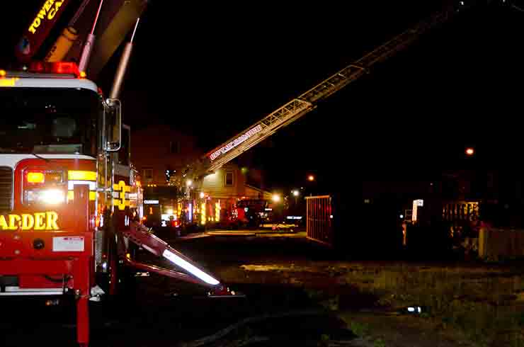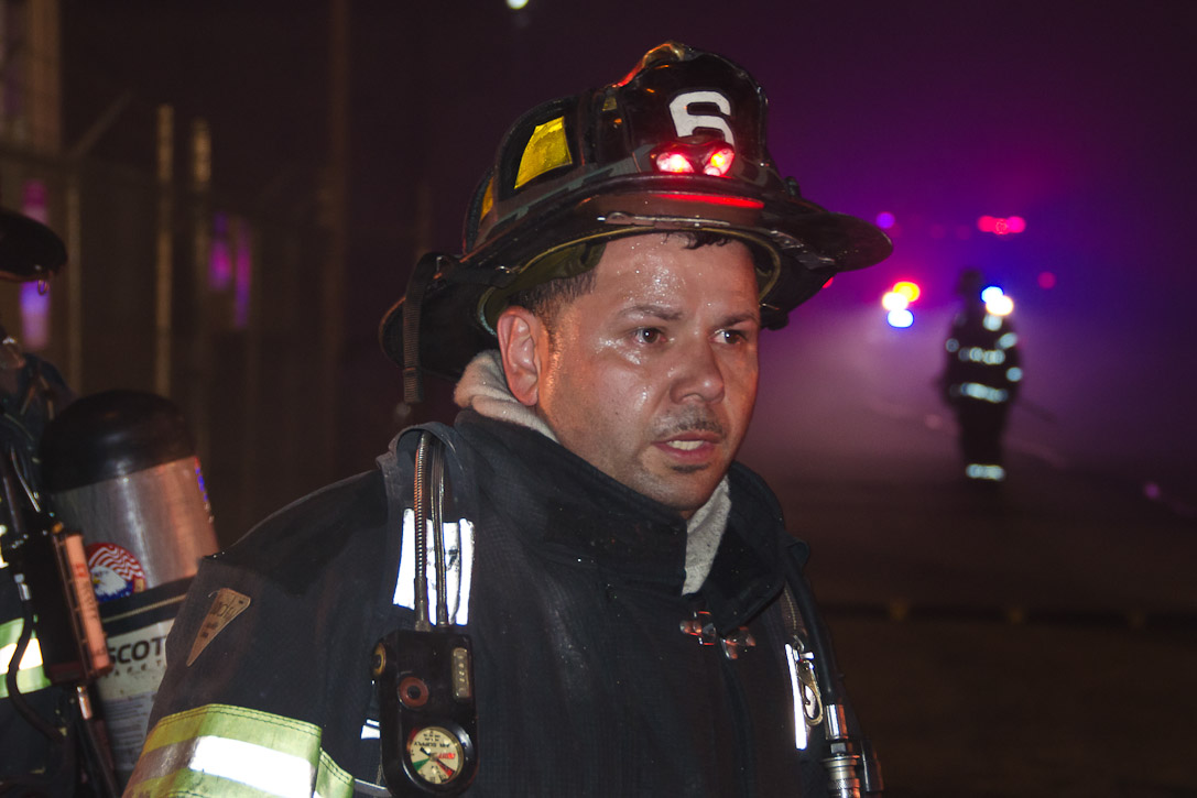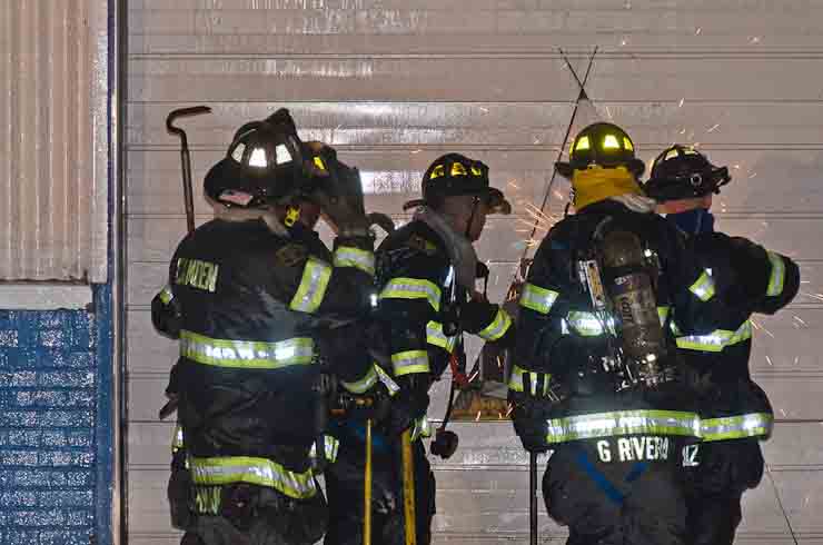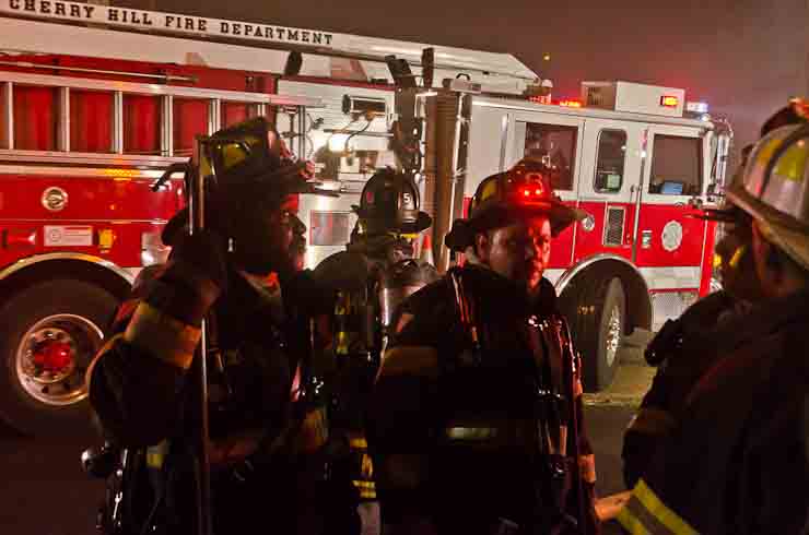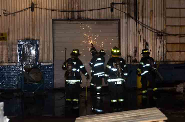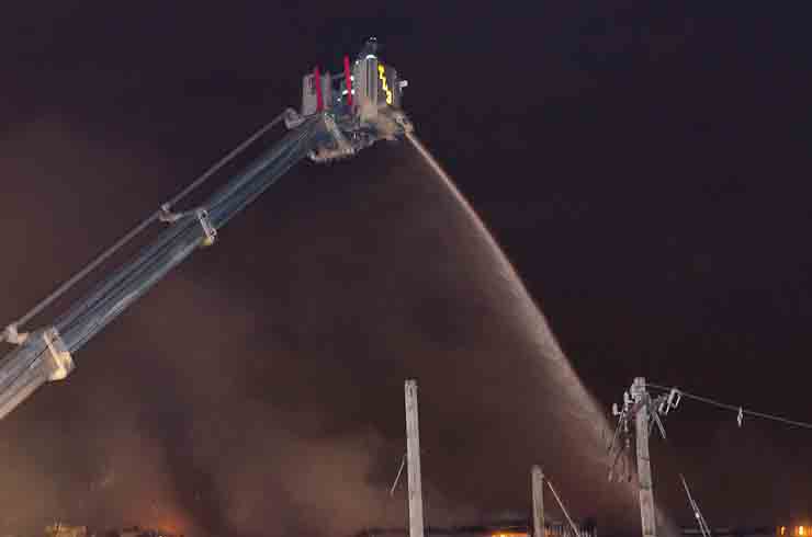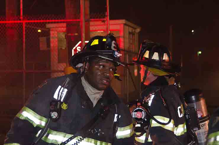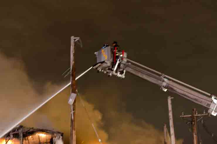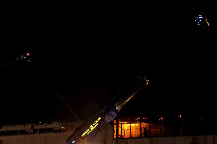 This page and the other pages in this series are the successors to the series of web-page about the Camden Fire Department that began with the page Camden Fire Department: The Fires of the Summer of 2011. On this and other pages in the series you will find pictures and information regarding different events and aspects of the fire service in Camden, New Jersey. Magnetic Metals Corporation has been in operation on Hayes Avenue in the Cramer Hill section of Camden since 1942, manufacturing high grade nickel alloy laminations. The biggest fire to date in 2012, a building that was in the process of being emptied out caught fire around 11:00 PM on June 18, 2012. The fire went to six alarms before being brought under control. Ted Aurig of www.NewJerseyFireground.com wrote the following account of the blaze: On June 19th, 2012 shortly before 11 p.m. Camden County Communications started to receive a couple calls of a warehouse on fire at 21st. and Hayes Ave’s. A Full box was dispatched to 1900 Hayes Ave at Magnetic Metals for a building fire in the Cramer Hill section of the city. Camden County Radio advised responding units they were receiving calls for flames through the windows of the building. Companies arrived and reported fire through the roof of a commercial building. Battalion 2 struck the 2nd Alarm. A 3rd Alarm was transmitted several minutes later. At the 20 minute mark, Command reported companies were operating in defensive operations as the Command staff was paring up Engine companies with the Ladder Companies for Ladder Pipe operations with heavy fire through the roof. Three additional Engine companies were special called to the scene. A 4th Alarm was transmitted. Car 3 reported fire running the roofline of a 350x400 warehouse. On the 5th Alarm a 5” strike team was dispatched. At the 90 minute mark Command reported the fire to still be doubtful. Fire conditions were present under the roof. Two additional Engines were special called to supply an additional Tower Ladder. The Truck Companies set up on all sides of the building in defensive operation. Companies remained operating. A 6th Alarm was transmitted. At the 3 hour mark companies were making good progress.The fire was officially placed under control at 2:49 A.M. No injuries were reported on the fire ground. The Camden City, Camden County and State Fire Marshals were on scene investigating the fire. According to press reports approx. 100 residents were evacuated from the area due to heavy smoke. This was the 2nd working warehouse fire in the City of Camden within 24 hours. The first fire was reported around 5 p.m. for a vacant warehouse. That fire was held to an All Hands Box. I arrived on scene at about the 13 minute mark, took my first shot at 11:07 AM, and was still there well over five hours later, taking my last shot at 4:45 AM. When I returned a few hours later, Engine 11 was still operating, wetting down hot spots. This is the first of four pages of photos of this fire. Links to continue to the next page or skip ahead are at the bottom of this page. The photos are for the most part presented in the order in which they were taken… I was using two cameras, some photos taken in the same minute on each camera may be sequenced wrong, but that's small stuff! As with the web page covering other Camden Fire Department events, if you can identify anyone that I've missed, please comment at the bottom of the page. (I'm terrible at at names and faces). June 26, 2012 |