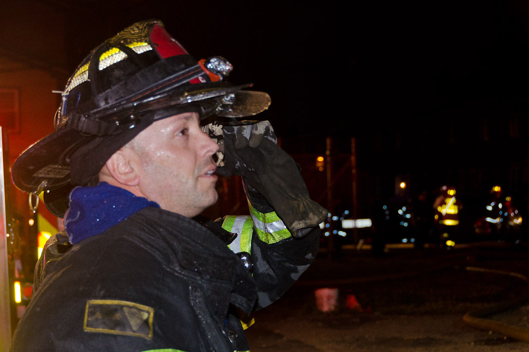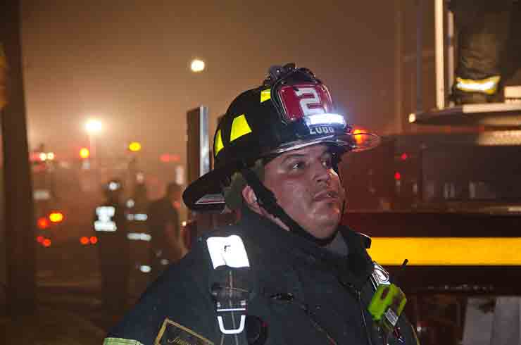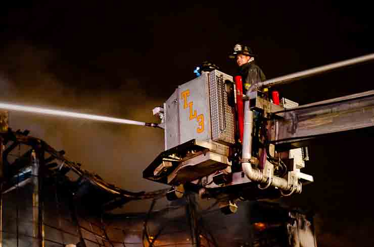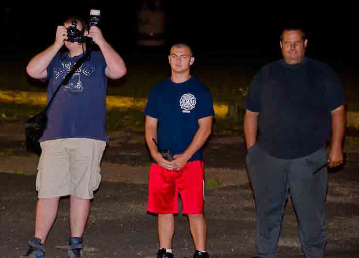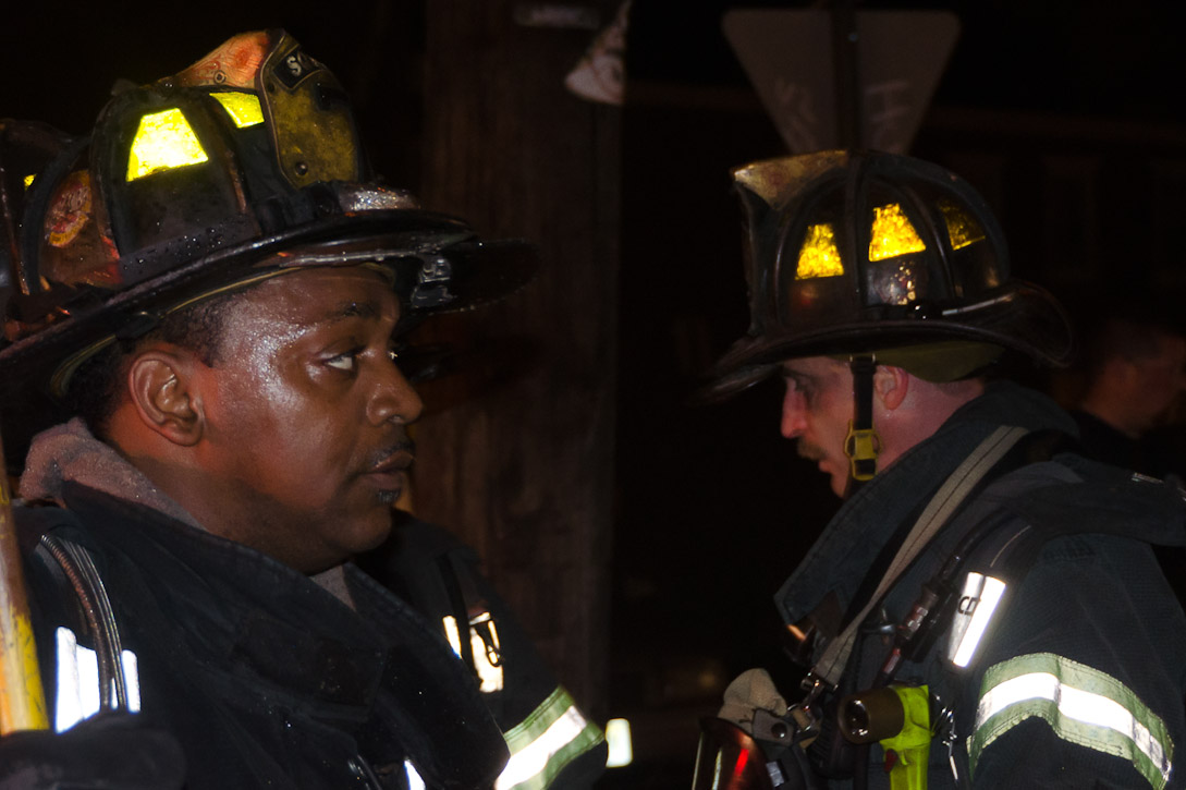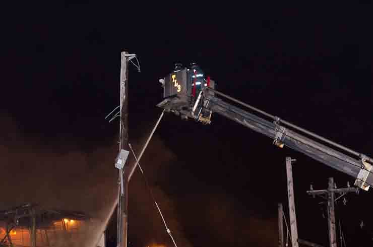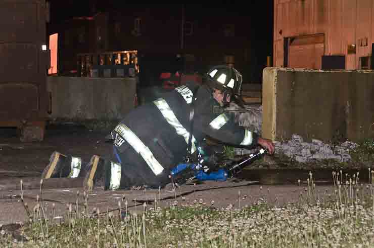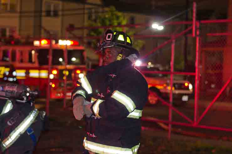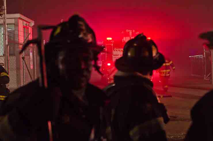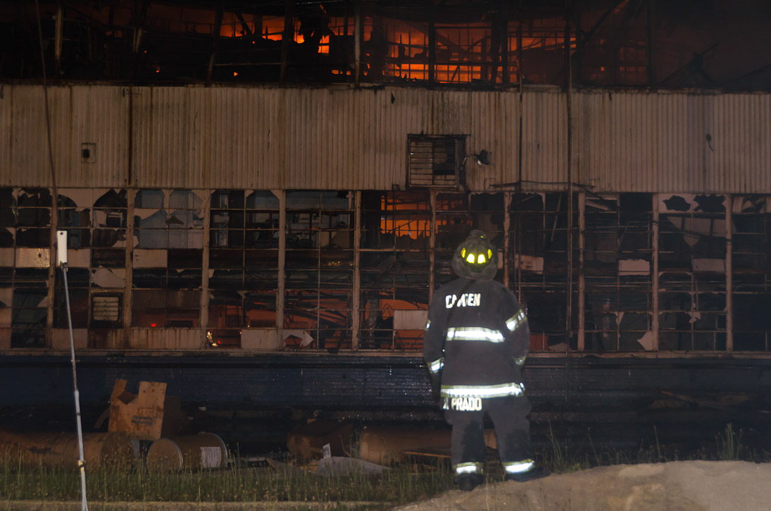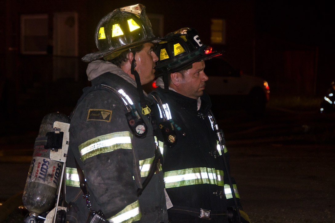 This page and the other pages in this series are the successors to the series of web-page about the Camden Fire Department that began with the page Camden Fire Department: The Fires of the Summer of 2011. On this and other pages in the series you will find pictures and information regarding different events and aspects of the fire service in Camden, New Jersey. Magnetic Metals Corporation has been in operation on Hayes Avenue in the Cramer Hill section of Camden since 1942, manufacturing high grade nickel alloy laminations. The biggest fire to date in 2012, a building that was in the process of being emptied out caught fire around 11:00 PM on June 18, 2012. The fire went to six alarms before being brought under control. Ted Aurig of www.NewJerseyFireground.com wrote the following account of the blaze: On June 19th, 2012 shortly before 11 p.m. Camden County Communications started to receive a couple calls of a warehouse on fire at 21st. and Hayes Ave’s. A Full box was dispatched to 1900 Hayes Ave at Magnetic Metals for a building fire in the Cramer Hill section of the city. Camden County Radio advised responding units they were receiving calls for flames through the windows of the building. Companies arrived and reported fire through the roof of a commercial building. Battalion 2 struck the 2nd Alarm. A 3rd Alarm was transmitted several minutes later. At the 20 minute mark, Command reported companies were operating in defensive operations as the Command staff was paring up Engine companies with the Ladder Companies for Ladder Pipe operations with heavy fire through the roof. Three additional Engine companies were special called to the scene. A 4th Alarm was transmitted. Car 3 reported fire running the roofline of a 350x400 warehouse. On the 5th Alarm a 5” strike team was dispatched. At the 90 minute mark Command reported the fire to still be doubtful. Fire conditions were present under the roof. Two additional Engines were special called to supply an additional Tower Ladder. The Truck Companies set up on all sides of the building in defensive operation. Companies remained operating. A 6th Alarm was transmitted. At the 3 hour mark companies were making good progress.The fire was officially placed under control at 2:49 A.M. No injuries were reported on the fire ground. The Camden City, Camden County and State Fire Marshals were on scene investigating the fire. According to press reports approx. 100 residents were evacuated from the area due to heavy smoke. This was the 2nd working warehouse fire in the City of Camden within 24 hours. The first fire was reported around 5 p.m. for a vacant warehouse. That fire was held to an All Hands Box. I arrived on scene at about the 13 minute mark, took my first shot at 11:07 AM, and was still there well over five hours later, taking my last shot at 4:45 AM. When I returned a few hours later, Engine 11 was still operating, wetting down hot spots. This is the first of four pages of photos of this fire. Links to continue to the next page or skip ahead are at the bottom of this page. The photos are for the most part presented in the order in which they were taken… I was using two cameras, some photos taken in the same minute on each camera may be sequenced wrong, but that's small stuff! As with the web page covering other Camden Fire Department events, if you can identify anyone that I've missed, please comment at the bottom of the page. (I'm terrible at at names and faces). June 26, 2012 |