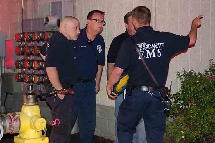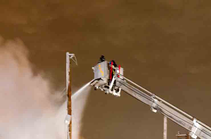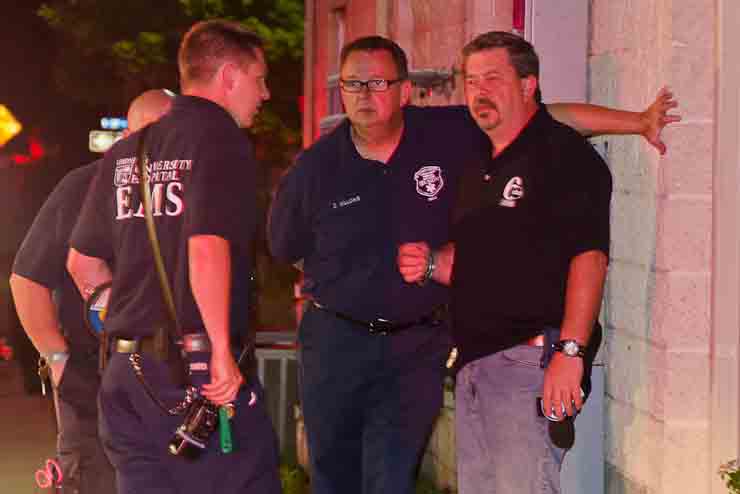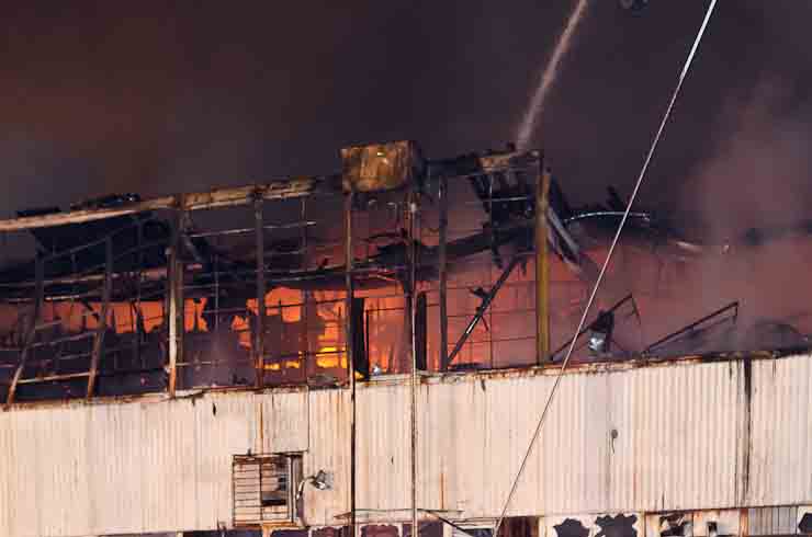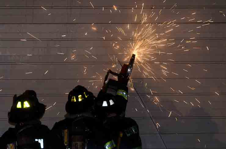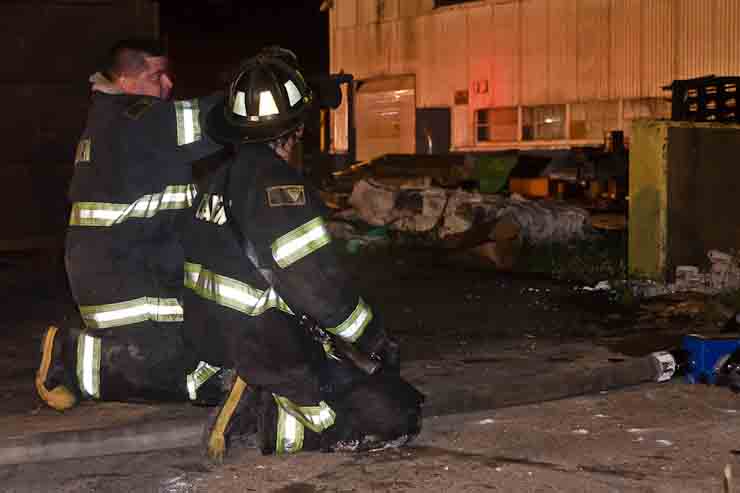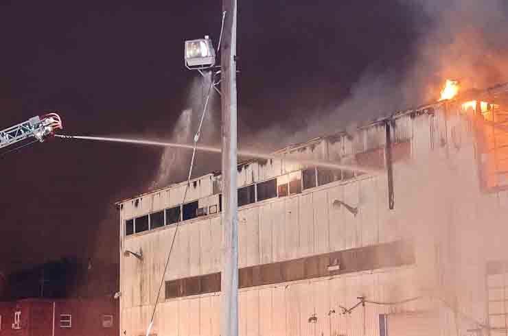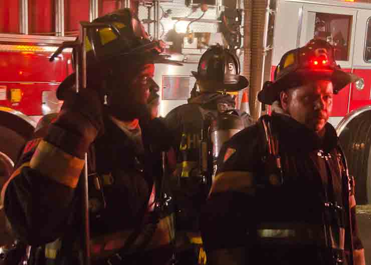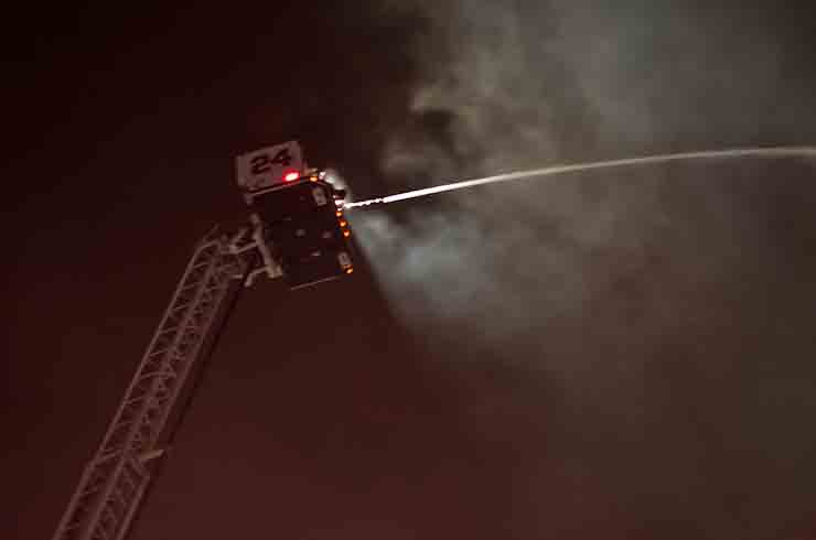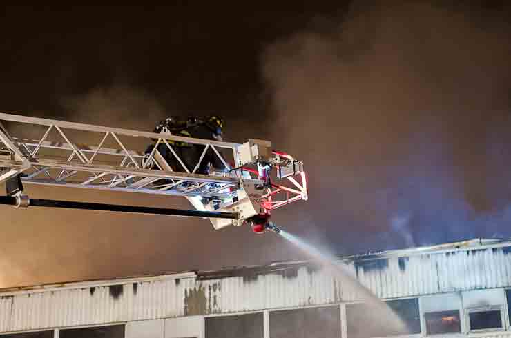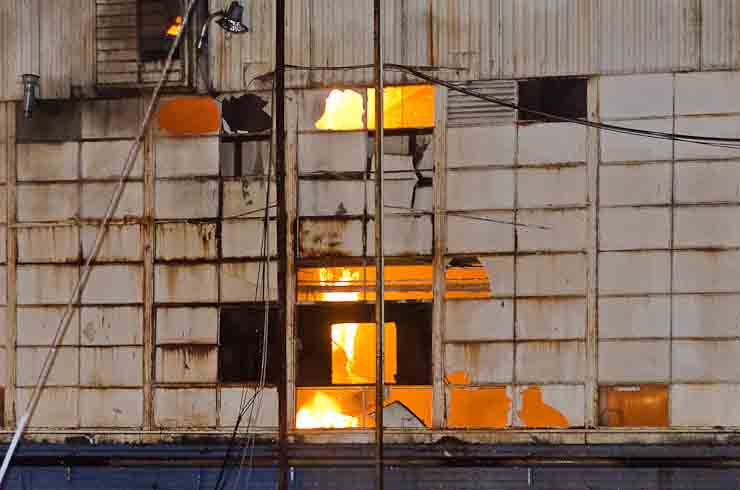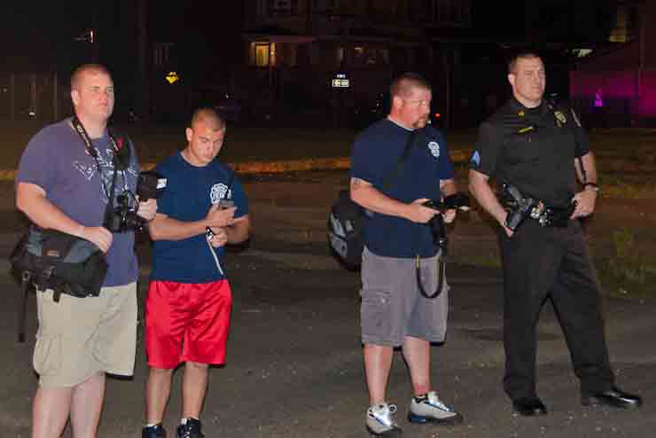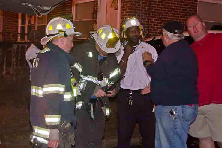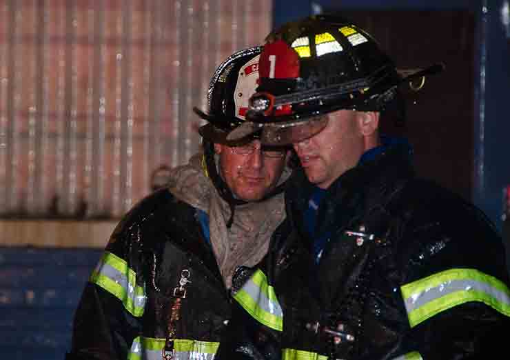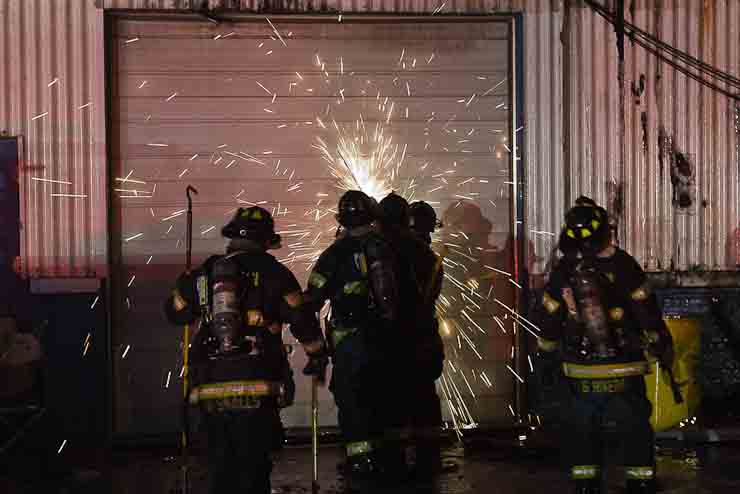 This page and the other pages in this series are the successors to the series of web-page about the Camden Fire Department that began with the page Camden Fire Department: The Fires of the Summer of 2011. On this and other pages in the series you will find pictures and information regarding different events and aspects of the fire service in Camden, New Jersey. Magnetic Metals Corporation has been in operation on Hayes Avenue in the Cramer Hill section of Camden since 1942, manufacturing high grade nickel alloy laminations. The biggest fire to date in 2012, a building that was in the process of being emptied out caught fire around 11:00 PM on June 18, 2012. The fire went to six alarms before being brought under control. Ted Aurig of www.NewJerseyFireground.com wrote the following account of the blaze: On June 19th, 2012 shortly before 11 p.m. Camden County Communications started to receive a couple calls of a warehouse on fire at 21st. and Hayes Ave’s. A Full box was dispatched to 1900 Hayes Ave at Magnetic Metals for a building fire in the Cramer Hill section of the city. Camden County Radio advised responding units they were receiving calls for flames through the windows of the building. Companies arrived and reported fire through the roof of a commercial building. Battalion 2 struck the 2nd Alarm. A 3rd Alarm was transmitted several minutes later. At the 20 minute mark, Command reported companies were operating in defensive operations as the Command staff was paring up Engine companies with the Ladder Companies for Ladder Pipe operations with heavy fire through the roof. Three additional Engine companies were special called to the scene. A 4th Alarm was transmitted. Car 3 reported fire running the roofline of a 350x400 warehouse. On the 5th Alarm a 5” strike team was dispatched. At the 90 minute mark Command reported the fire to still be doubtful. Fire conditions were present under the roof. Two additional Engines were special called to supply an additional Tower Ladder. The Truck Companies set up on all sides of the building in defensive operation. Companies remained operating. A 6th Alarm was transmitted. At the 3 hour mark companies were making good progress.The fire was officially placed under control at 2:49 A.M. No injuries were reported on the fire ground. The Camden City, Camden County and State Fire Marshals were on scene investigating the fire. According to press reports approx. 100 residents were evacuated from the area due to heavy smoke. This was the 2nd working warehouse fire in the City of Camden within 24 hours. The first fire was reported around 5 p.m. for a vacant warehouse. That fire was held to an All Hands Box. I arrived on scene at about the 13 minute mark, took my first shot at 11:07 AM, and was still there well over five hours later, taking my last shot at 4:45 AM. When I returned a few hours later, Engine 11 was still operating, wetting down hot spots. This is the first of four pages of photos of this fire. Links to continue to the next page or skip ahead are at the bottom of this page. The photos are for the most part presented in the order in which they were taken… I was using two cameras, some photos taken in the same minute on each camera may be sequenced wrong, but that's small stuff! As with the web page covering other Camden Fire Department events, if you can identify anyone that I've missed, please comment at the bottom of the page. (I'm terrible at at names and faces). June 26, 2012 |