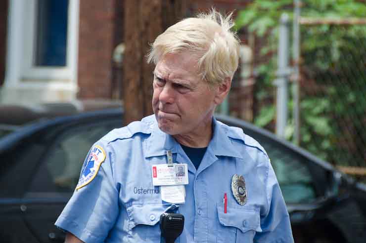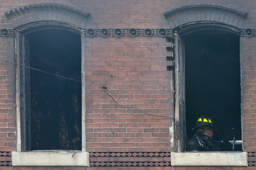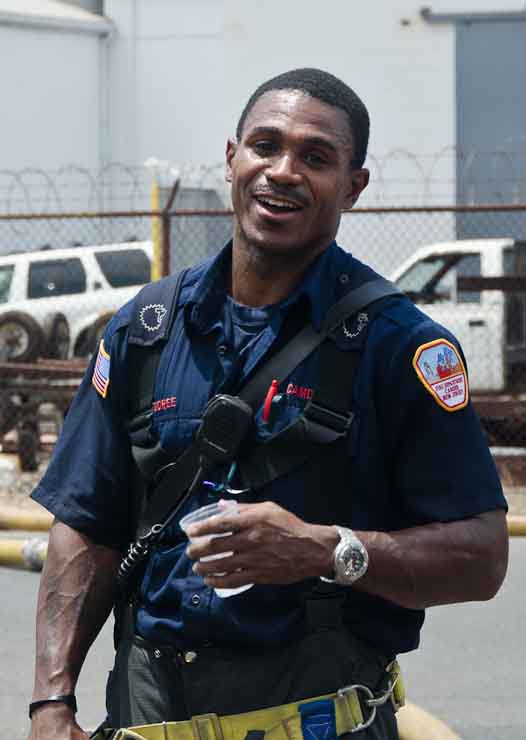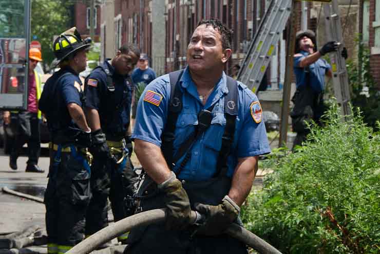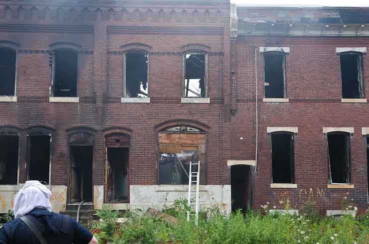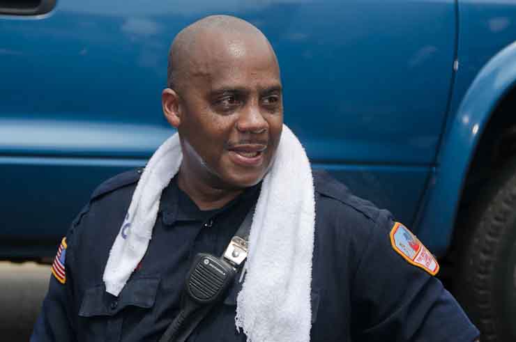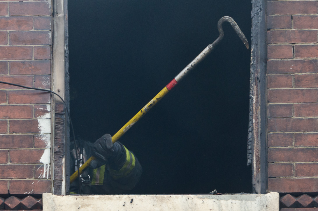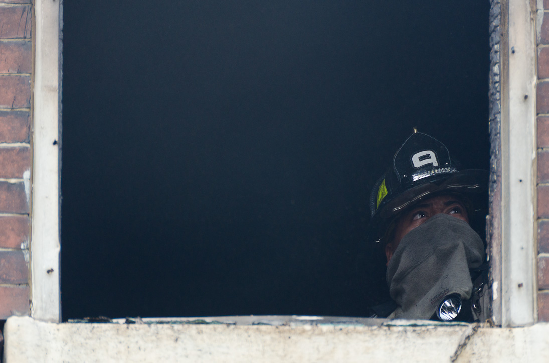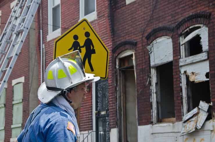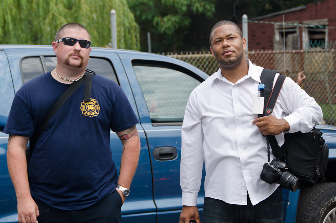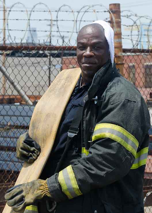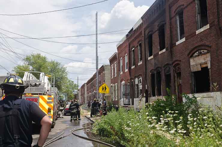 This page and the other pages in this series are the successors to the series of web-page about the Camden Fire Department that began with the page Camden Fire Department: The Fires of the Summer of 2011. On this and other pages in the series you will find pictures and information regarding different events and aspects of the fire service in Camden, New Jersey. Continued hot dry weather and more of the bad actions of social misfits gave the Camden Fire Department a too-hot job on July 10, 2012. Late in the morning a call came in reporting heavy fire coming from an abandoned house at 254 Mount Vernon Street. This structure was in the middle of a row of six two-story homes, numbers 248, 250, 252, 254, 256, and 258 Mount Vernon Street, with only 258 being occupied. With heavy fire showing from the second floor, all hands were placed in service. Companies secured water supplies and placed multiple hand lines in operation. With fire extending to the exposures on either side, command ordered all companies out of the dwellings as companies set up for defensive operations, placing their heaviest water lines in service. Crews placed several 2 1/2" hand lines to knock the bulk of the fire down which had extended in the attic area of the dwellings. Crews re- entered the dwellings to hit hot spots and open up. Two firefighters were slightly injured, and through the valiant efforts of Camden's Bravest, the home at 258 Mt. Vernon Street was saved. More photos from this fire taken by Ted Aurig can be seen at www.NewJerseyfireground.com. As with the web page covering other Camden Fire Department events, if you can identify anyone that I've missed, please comment at the bottom of the page. (I'm terrible at at names and faces). |