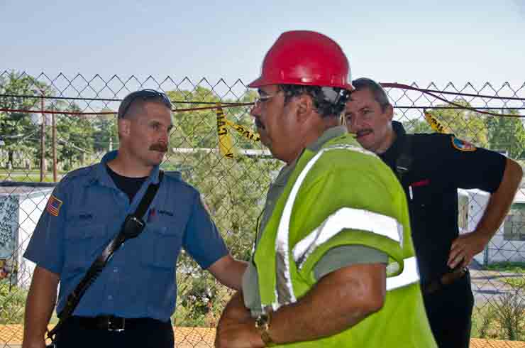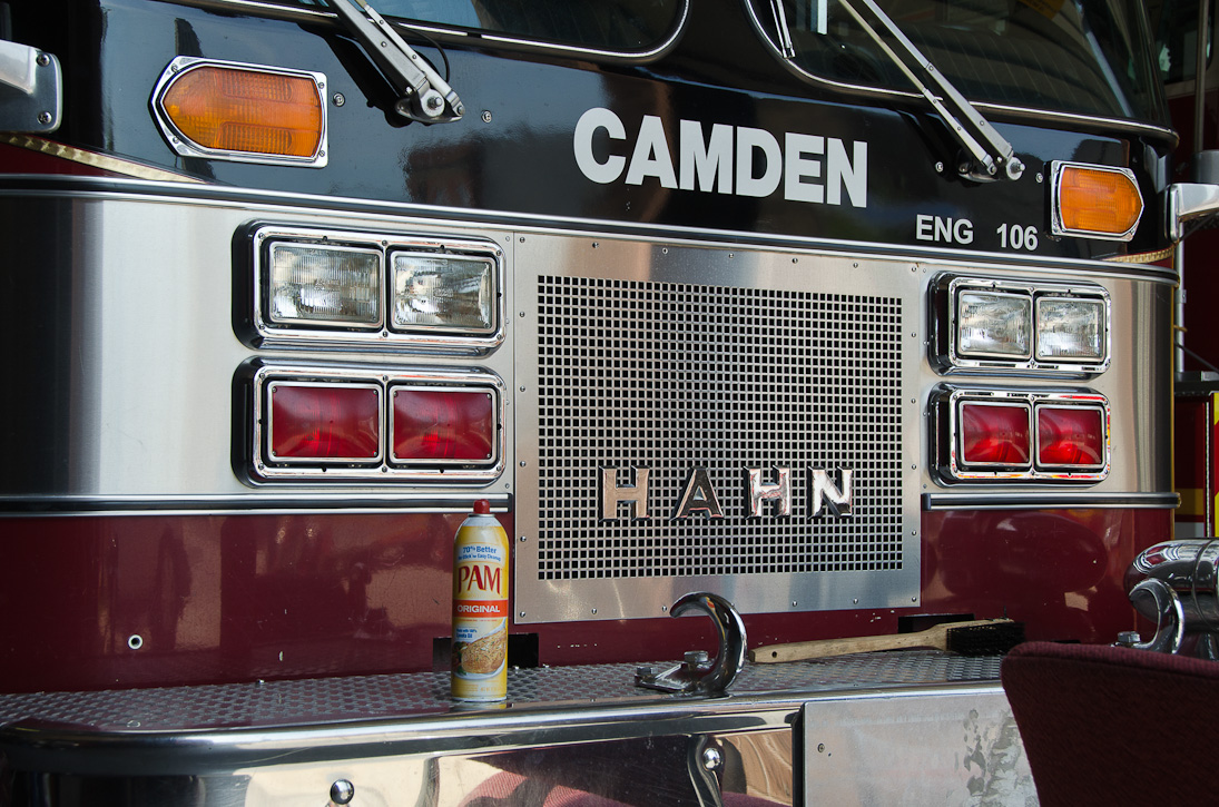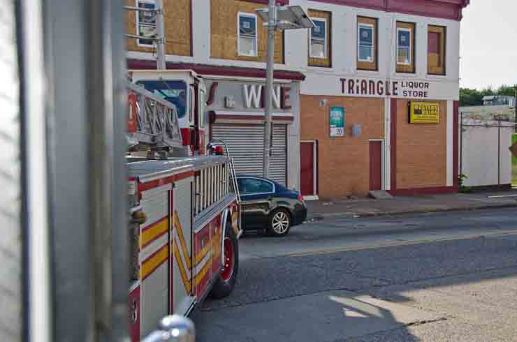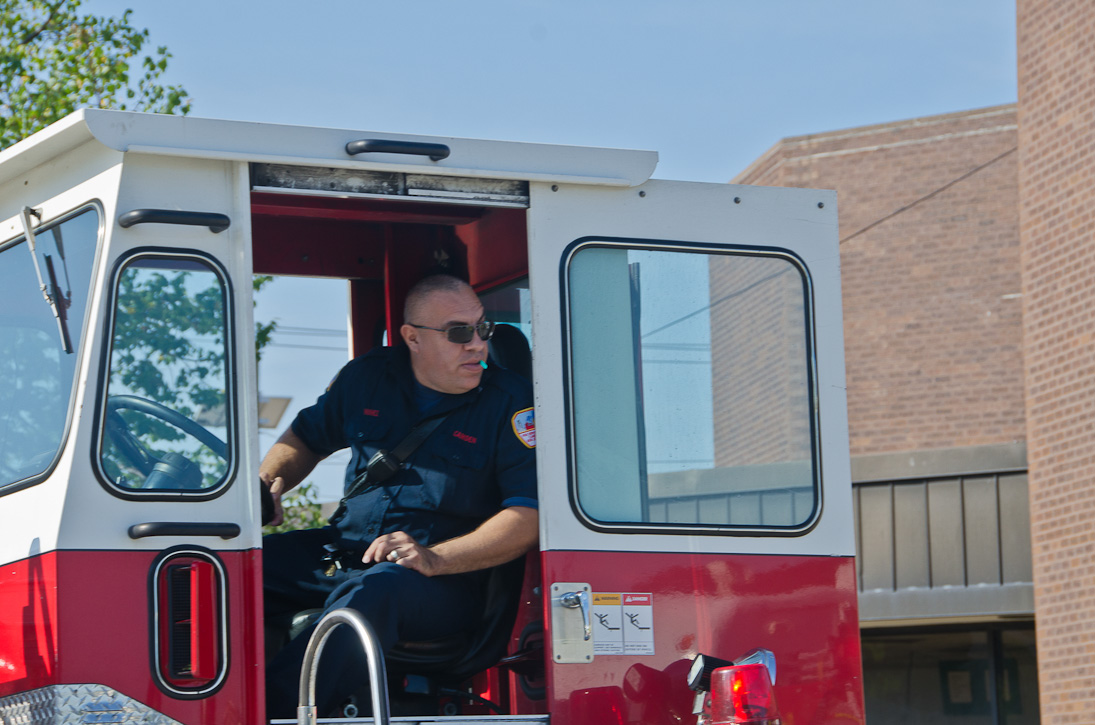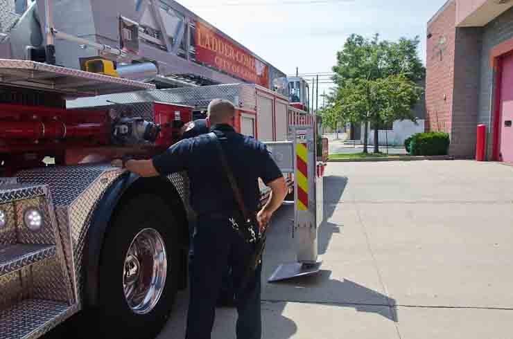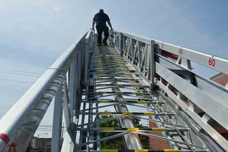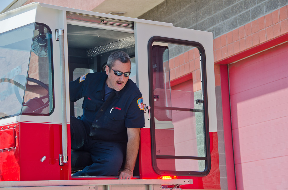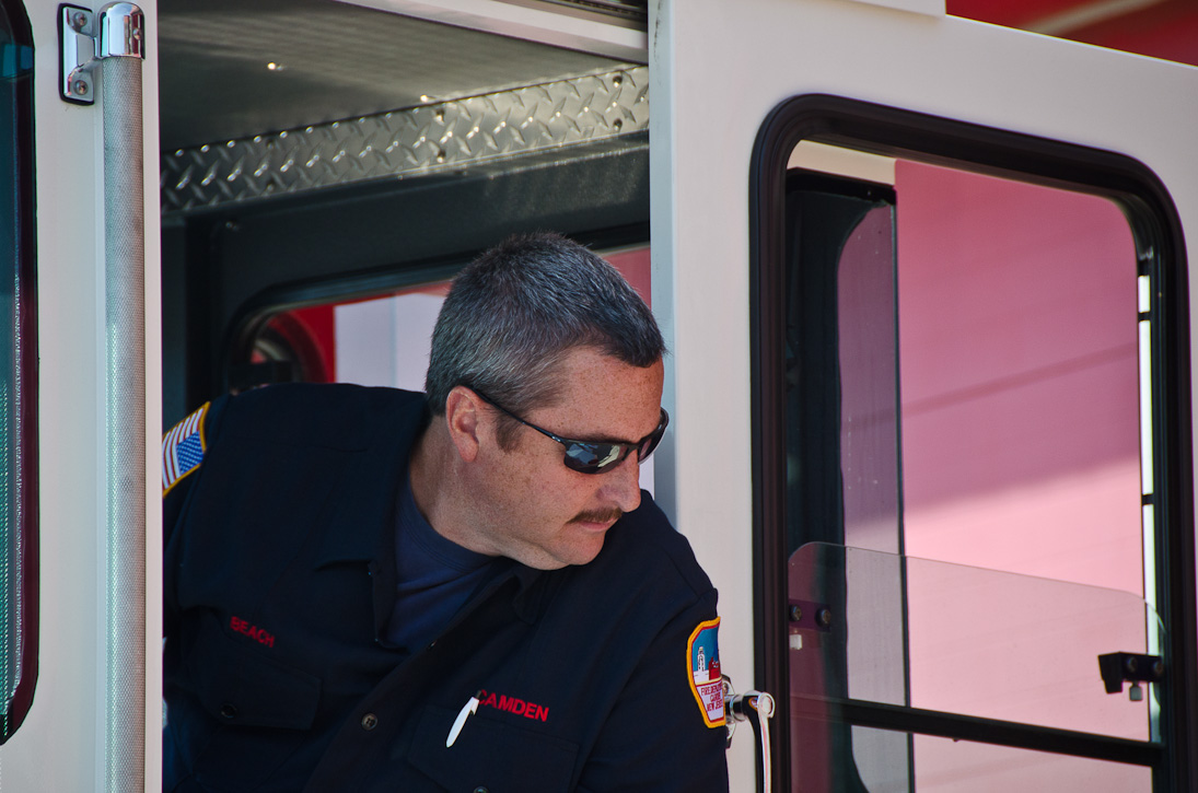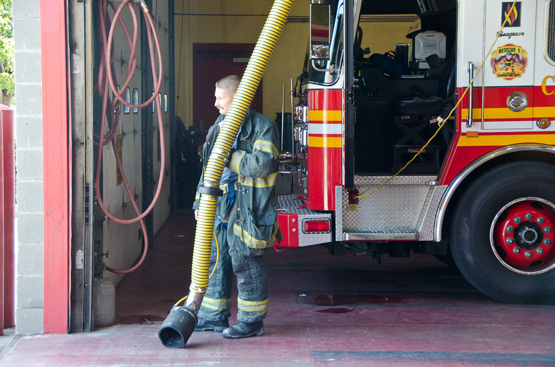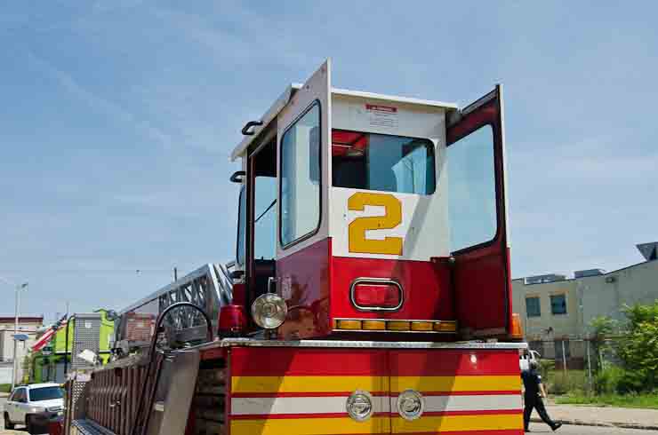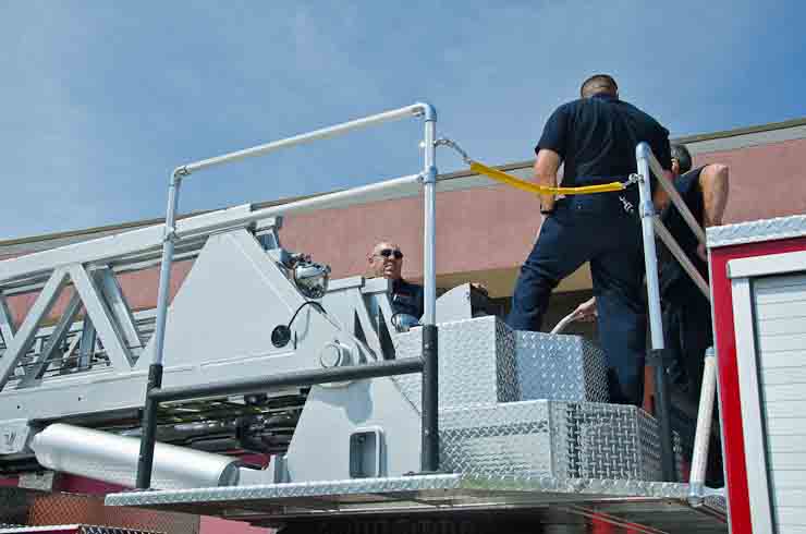 This page and the other pages in this series are the successors to the series of web-page about the Camden Fire Department that began with the page Camden Fire Department: The Fires of the Summer of 2011. On this and other pages in the series you will find pictures and information regarding different events and aspects of the fire service in Camden, New Jersey. I spent some time at Liberty Station with the men of Ladder 2 and Rescue 1… who have been jumping in and out of the two pieces of equipment for far too long… the new Ladder 2 truck had just been placed in service and the men were still training on it. No runs, but a trip to Pathmark to pick up groceries for the day's lunch and dinner, and a stop at the PATCO High Speed Line station to check out an excavation so it would be known what the conditions were in case of a trench collapse. Interesting stuff! The new ladder goes up, if memory serves, one hundred and one feet. After watching a couple of the fellows make the climb, I was asked if I wanted to take a crack at it, and yours truly went about two-thirds of the way up, and snapped a few pictures. As with the web page covering other Camden Fire Department events, if you can identify anyone that I've missed, please comment at the bottom of the page. (I'm terrible at at names and faces). October 30, 2012 |