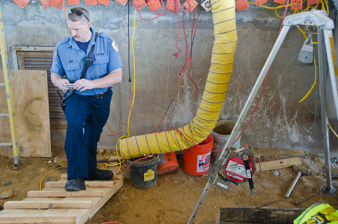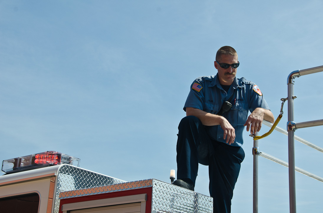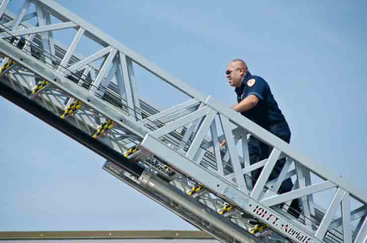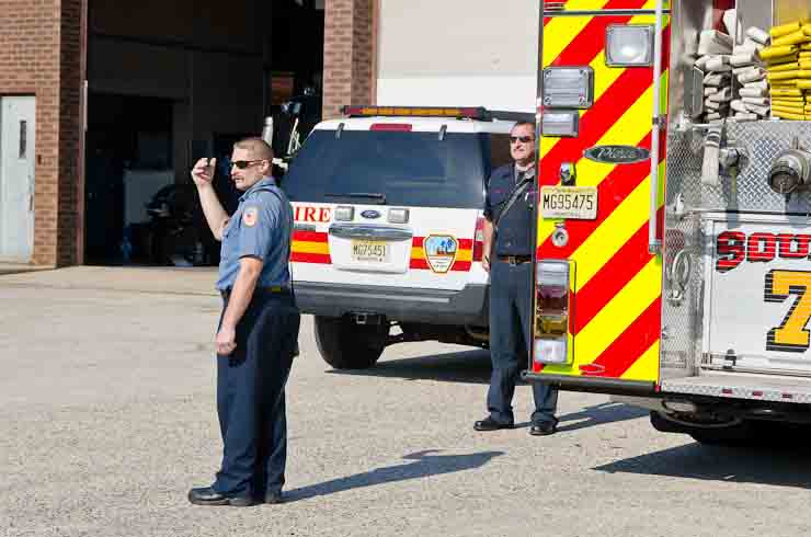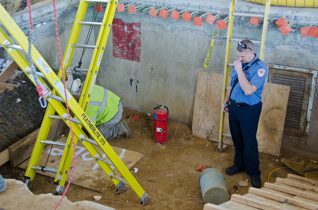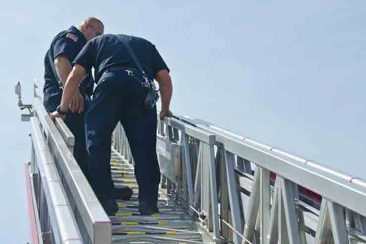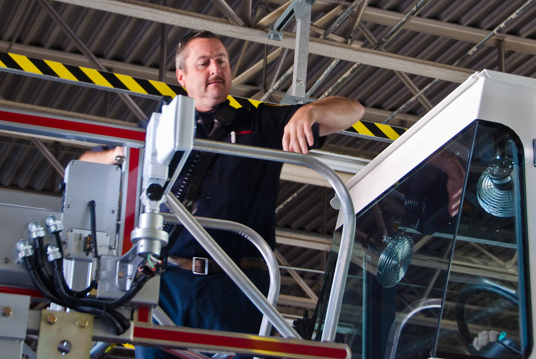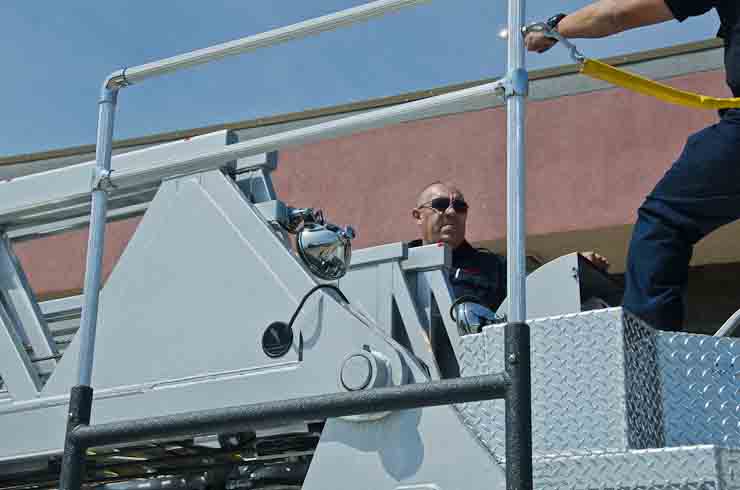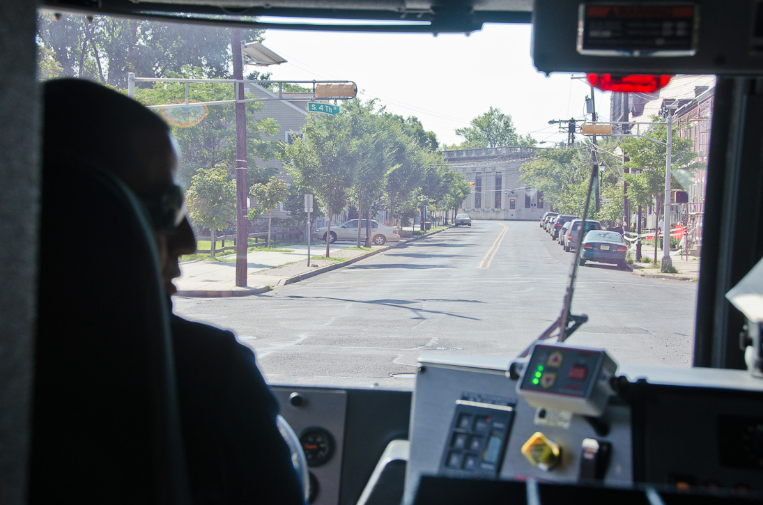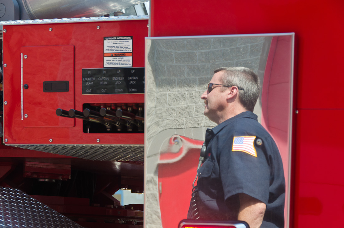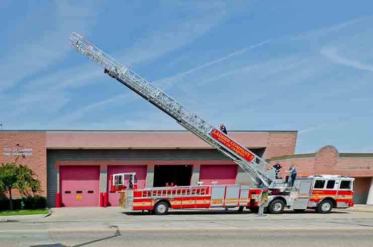 This page and the other pages in this series are the successors to the series of web-page about the Camden Fire Department that began with the page Camden Fire Department: The Fires of the Summer of 2011. On this and other pages in the series you will find pictures and information regarding different events and aspects of the fire service in Camden, New Jersey. I spent some time at Liberty Station with the men of Ladder 2 and Rescue 1… who have been jumping in and out of the two pieces of equipment for far too long… the new Ladder 2 truck had just been placed in service and the men were still training on it. No runs, but a trip to Pathmark to pick up groceries for the day's lunch and dinner, and a stop at the PATCO High Speed Line station to check out an excavation so it would be known what the conditions were in case of a trench collapse. Interesting stuff! The new ladder goes up, if memory serves, one hundred and one feet. After watching a couple of the fellows make the climb, I was asked if I wanted to take a crack at it, and yours truly went about two-thirds of the way up, and snapped a few pictures. As with the web page covering other Camden Fire Department events, if you can identify anyone that I've missed, please comment at the bottom of the page. (I'm terrible at at names and faces). October 30, 2012 |