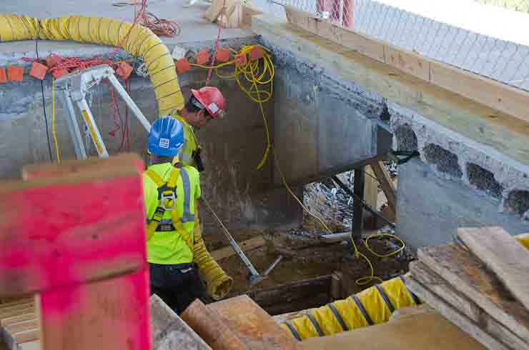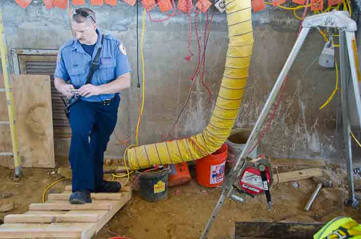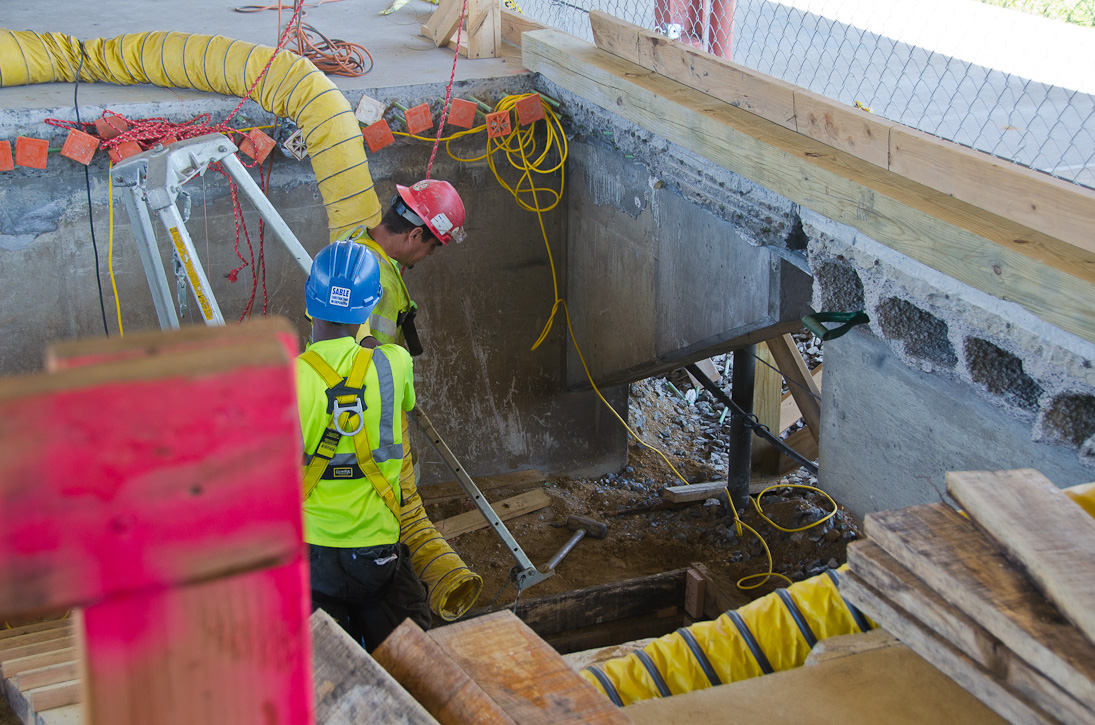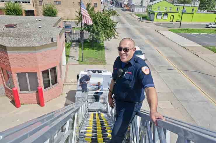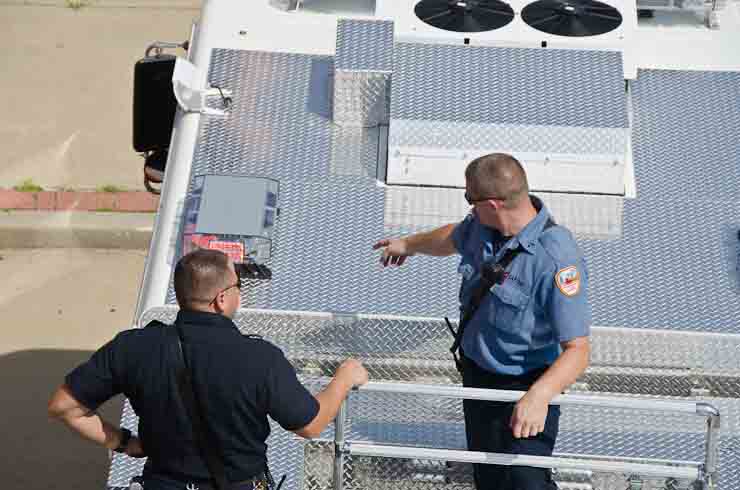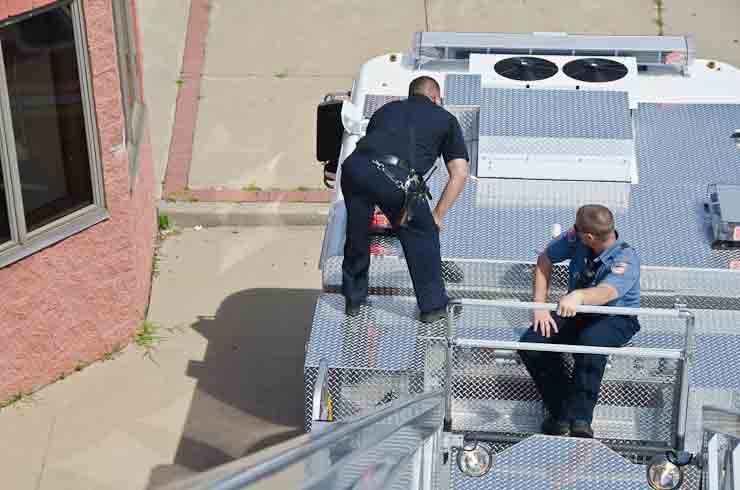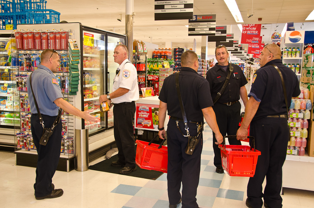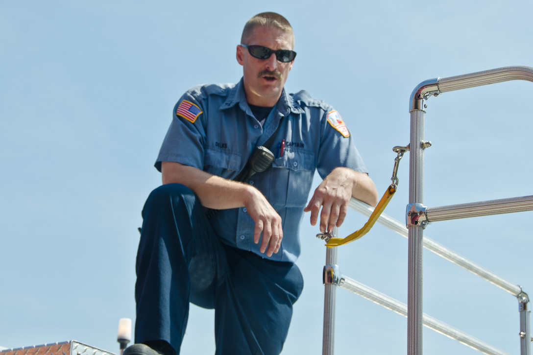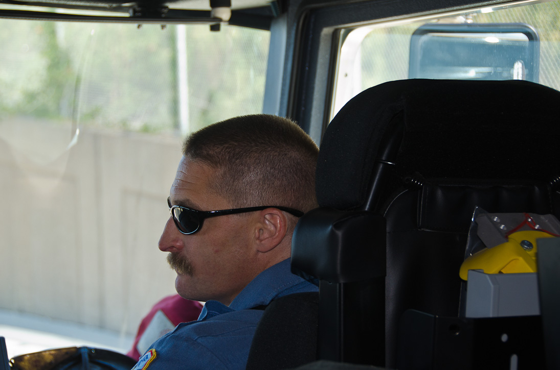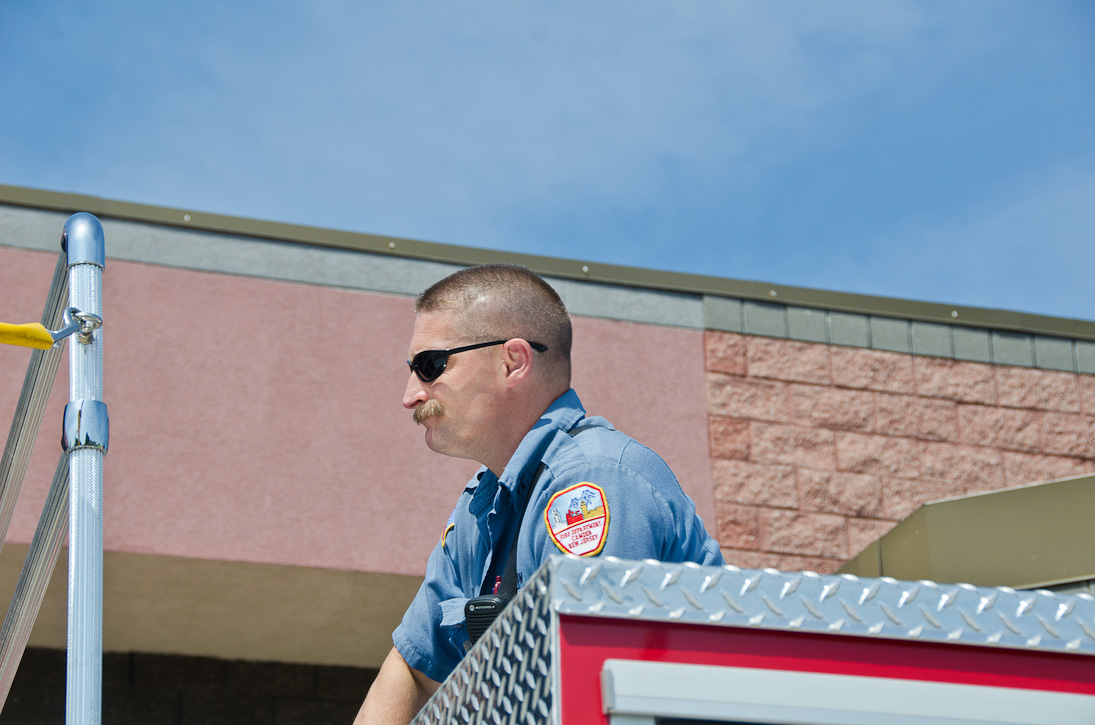 This page and the other pages in this series are the successors to the series of web-page about the Camden Fire Department that began with the page Camden Fire Department: The Fires of the Summer of 2011. On this and other pages in the series you will find pictures and information regarding different events and aspects of the fire service in Camden, New Jersey. I spent some time at Liberty Station with the men of Ladder 2 and Rescue 1… who have been jumping in and out of the two pieces of equipment for far too long… the new Ladder 2 truck had just been placed in service and the men were still training on it. No runs, but a trip to Pathmark to pick up groceries for the day's lunch and dinner, and a stop at the PATCO High Speed Line station to check out an excavation so it would be known what the conditions were in case of a trench collapse. Interesting stuff! The new ladder goes up, if memory serves, one hundred and one feet. After watching a couple of the fellows make the climb, I was asked if I wanted to take a crack at it, and yours truly went about two-thirds of the way up, and snapped a few pictures. As with the web page covering other Camden Fire Department events, if you can identify anyone that I've missed, please comment at the bottom of the page. (I'm terrible at at names and faces). October 30, 2012 |