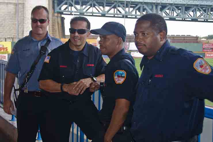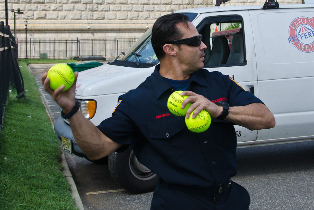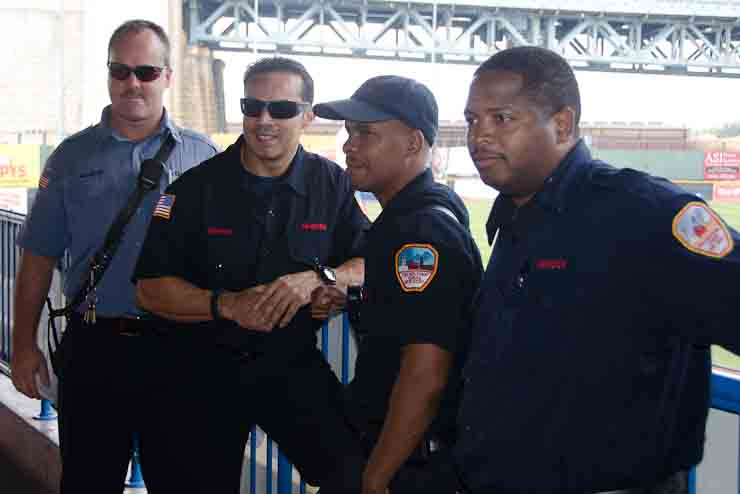 This page and the other pages in this series are the successors to the series of web-page about the Camden Fire Department that began with the page Camden Fire Department: The Fires of the Summer of 2011. On this and other pages in the series you will find pictures and information regarding different events and aspects of the fire service in Camden, New Jersey. Besides fighting fires and dealing with all sorts of other chaos, there are times that the Camden Fire Department deals with situations that are quite pleasant. On the afternoon of August 16, 2012 Engine Company 1 was sent over to Campbell Field, where the Camden Riversharks minor league baseball team plays. On this day, the field was being utilized by employees of the Campbell Soup Company for a social event. The Fire Department was asked to provide a piece of equipment to be on hand. The following photos were taken that day. As with the web page covering other Camden Fire Department events, if you can identify anyone that I've missed, please comment at the bottom of the page. (I'm terrible at at names and faces). October 30, 2012 |