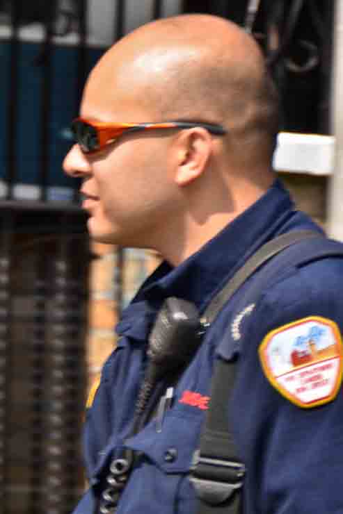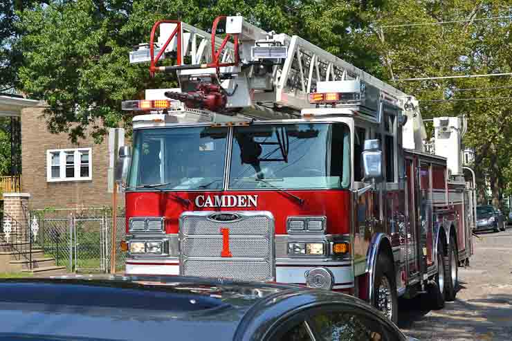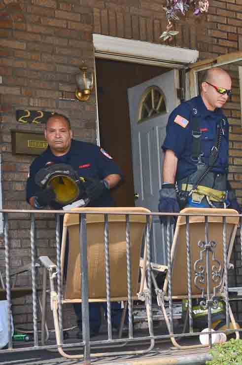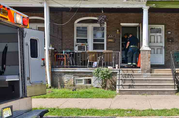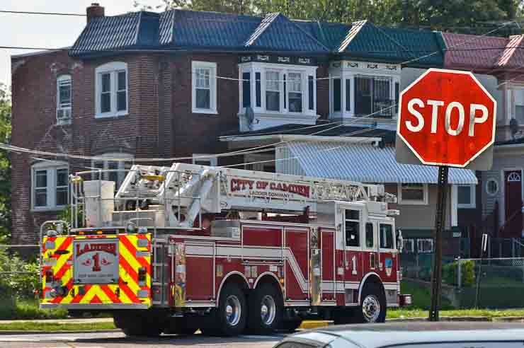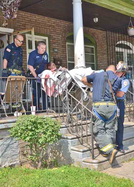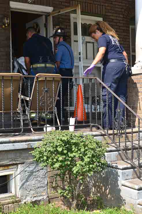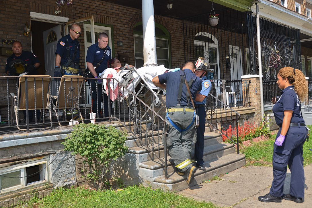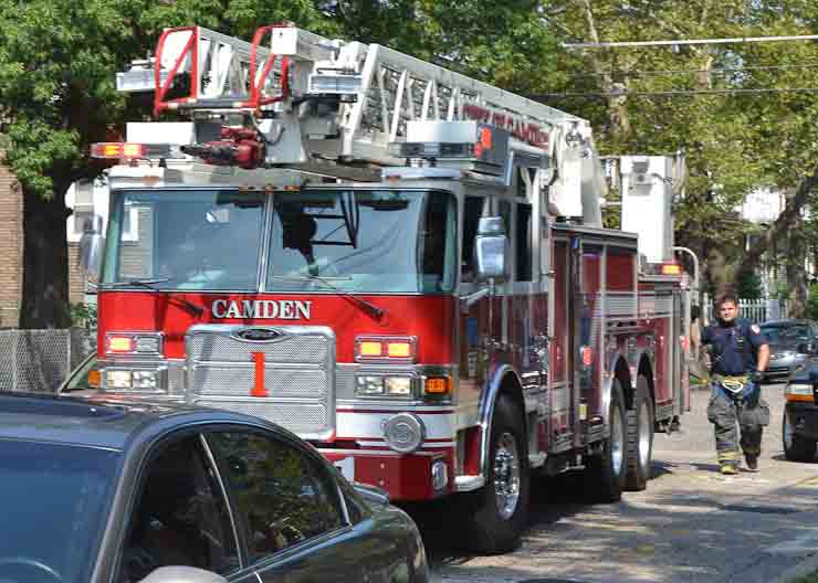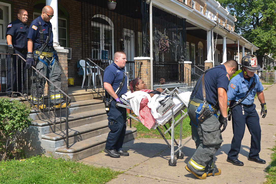 This page and the other pages in this series are the successors to the series of web-page about the Camden Fire Department that began with the page Camden Fire Department: The Fires of the Summer of 2011. On this and other pages in the series you will find pictures and information regarding different events and haspects of the fire service in Camden, New Jersey. The Camden Fire Department is often called on to assist EMS personnel in extricating patients from homes and into the ambulance for transport. On August 23, 2012 a typical EMS assist too place in the 200 block of Eutaw Avenue in East Camden. with Ladder Company 1 providing the service. As with the web page covering other Camden Fire Department events, if you can identify anyone that I've missed, please comment at the bottom of the page. (I'm terrible at at names and faces). October 31, 2012 |