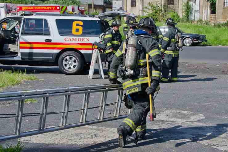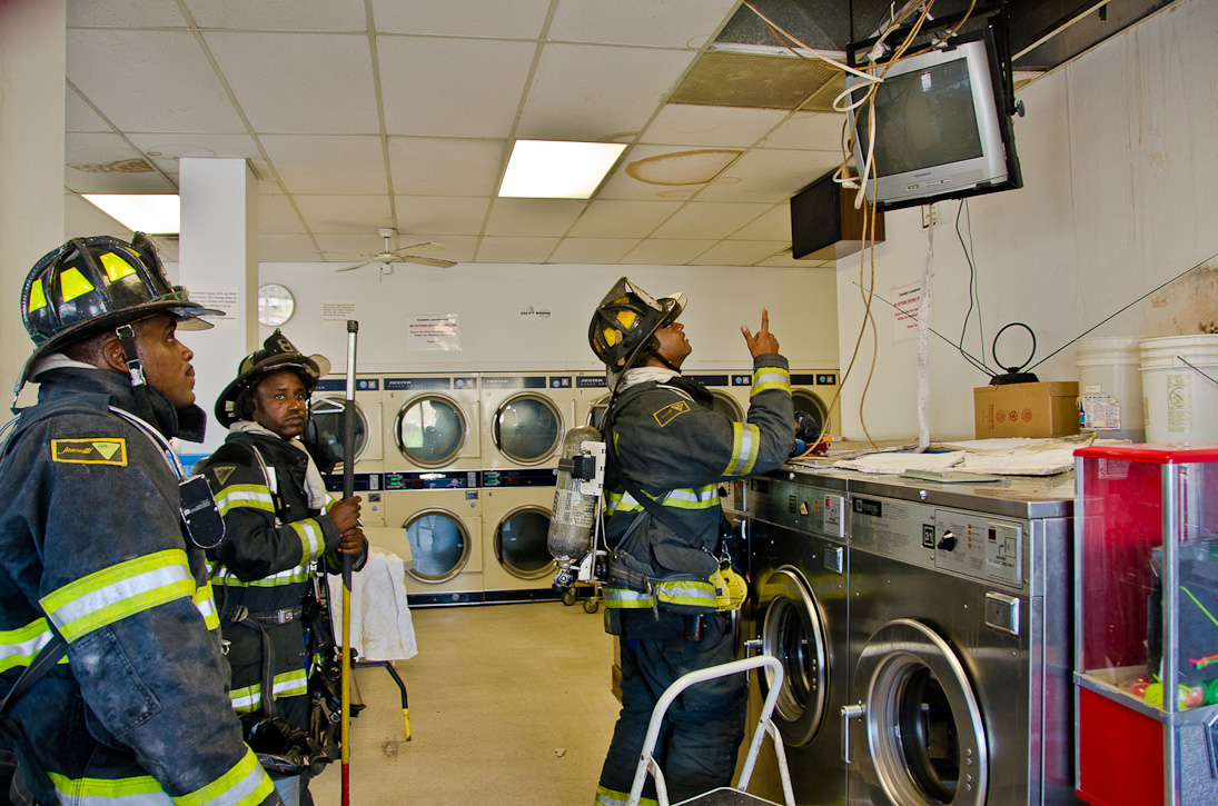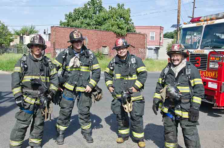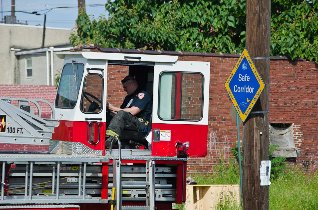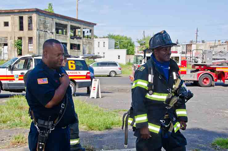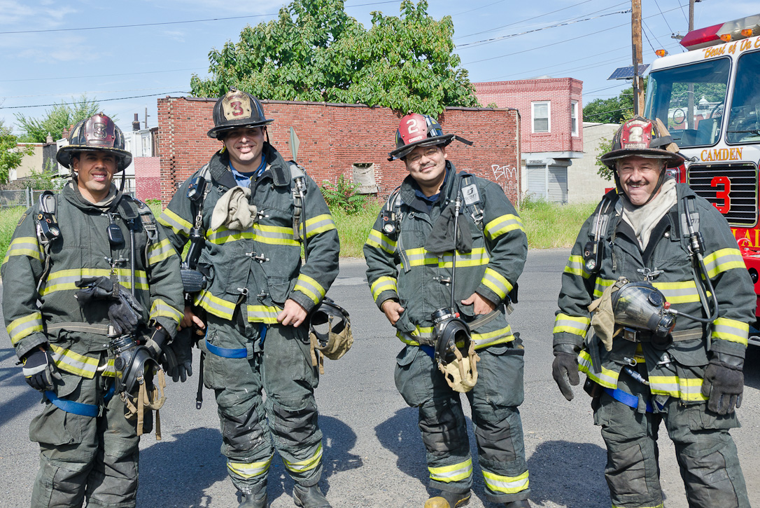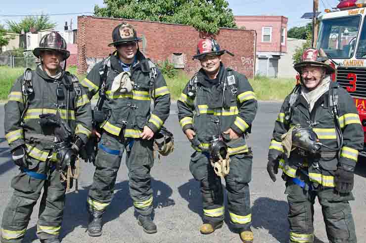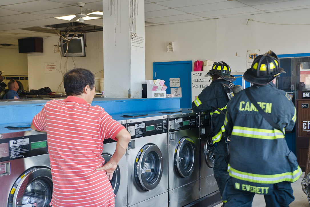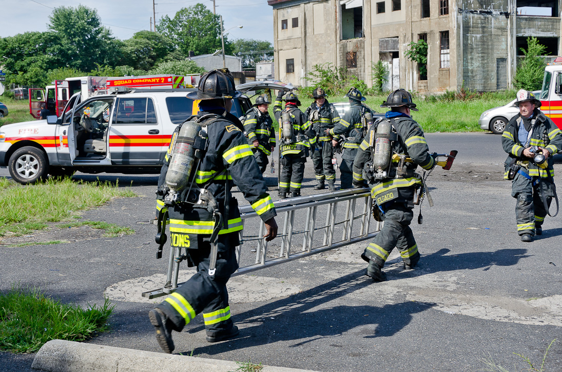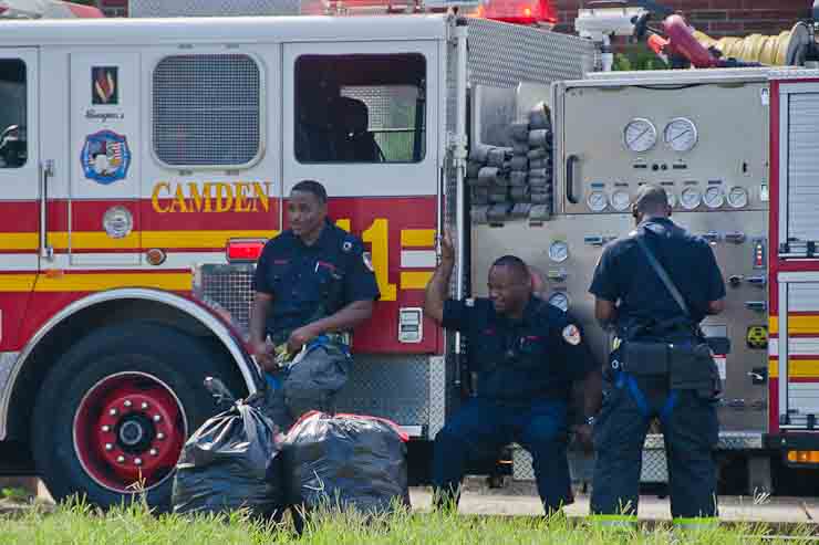 This page and the other pages in this series are the successors to the series of web-page about the Camden Fire Department that began with the page Camden Fire Department: The Fires of the Summer of 2011. On this and other pages in the series you will find pictures and information regarding different events and haspects of the fire service in Camden, New Jersey. The Camden Fire Department was called to the laundromat at South 7th Street and Division Street as smoke was observed in the ceiling. There was an electrical problem, and happily enough no fire, no damage and no injuries to anyone. Later that day I took a ride with Engine 1 out to the Canterbury Apartment off Morgan Boulevard. This run also turned out negative. As with the web page covering other Camden Fire Department events, if you can identify anyone that I've missed, please comment at the bottom of the page. (I'm terrible at at names and faces). October 31, 2012 |