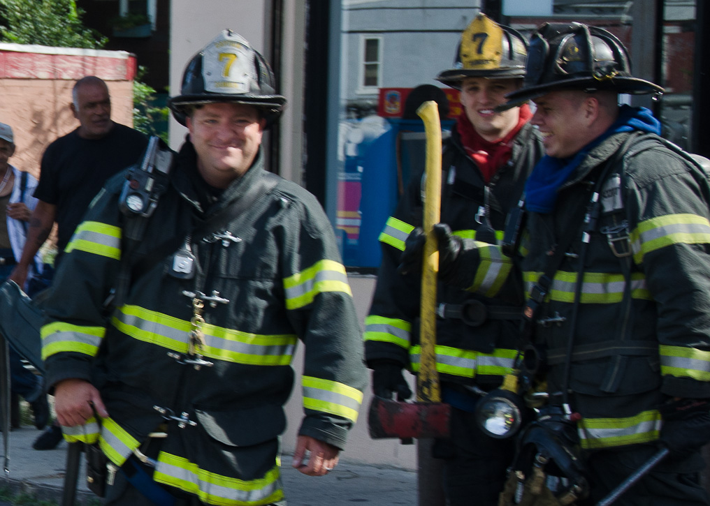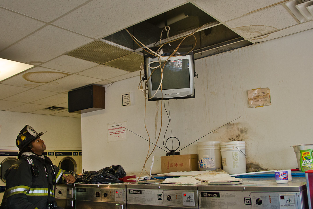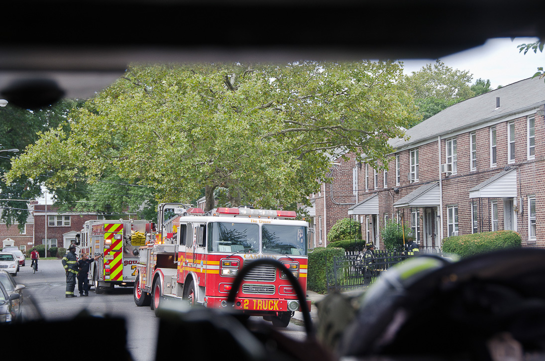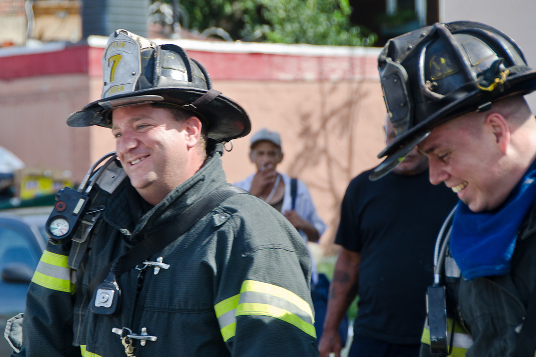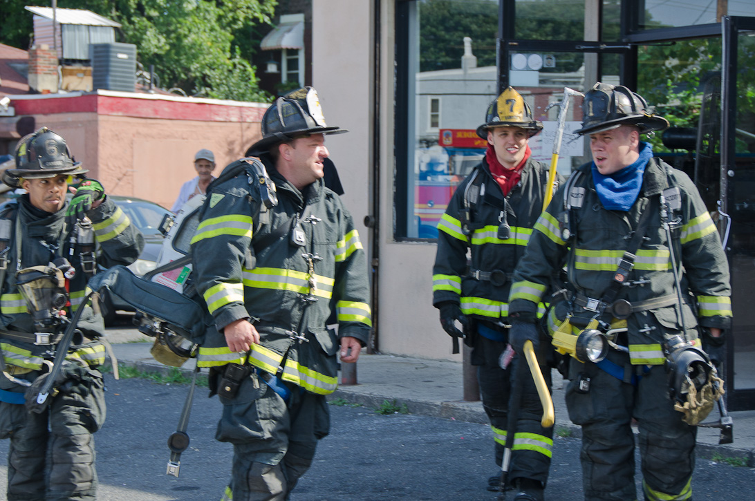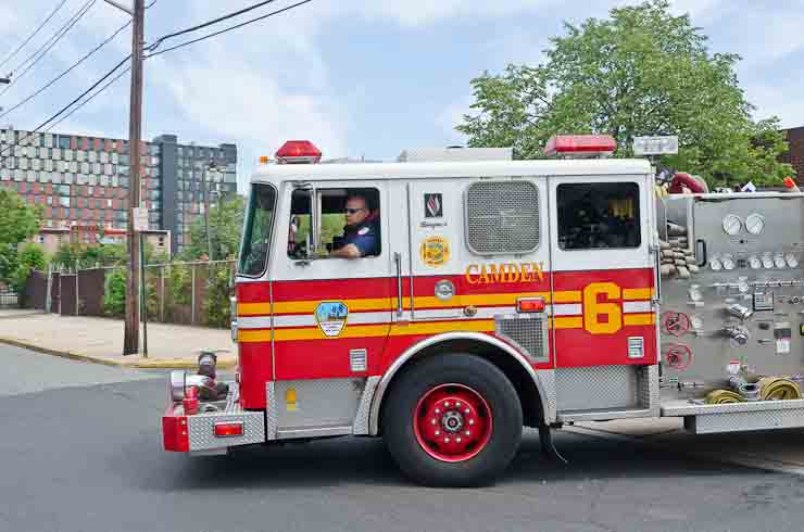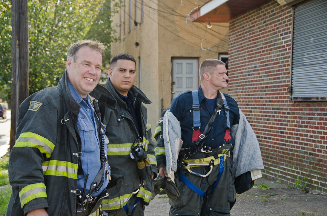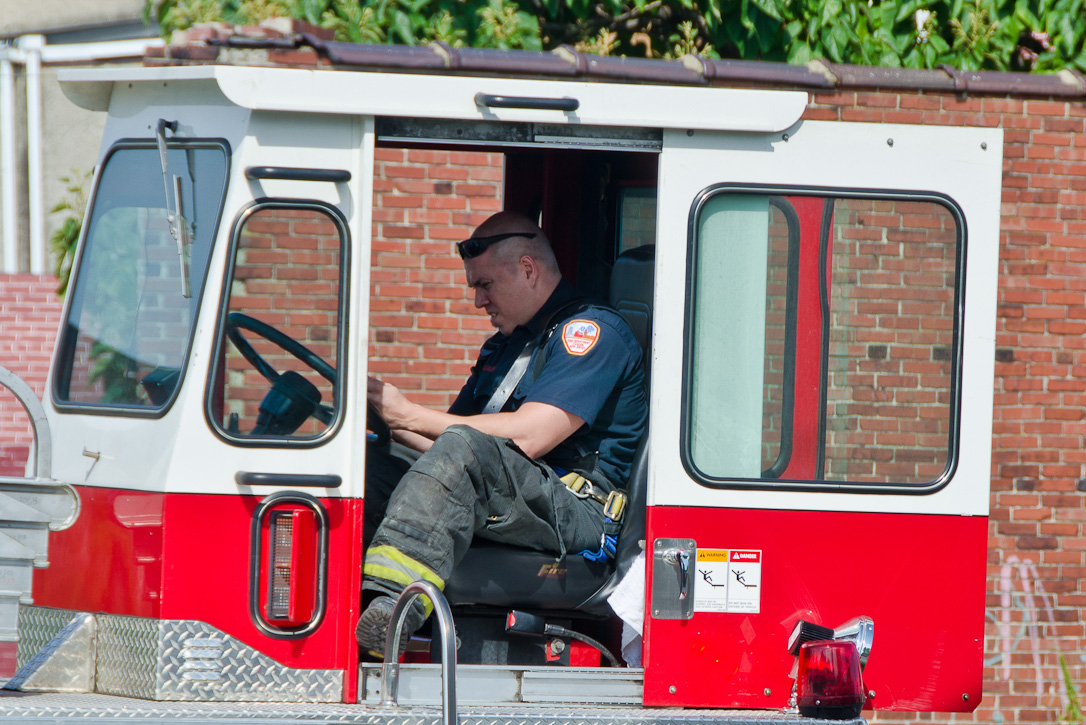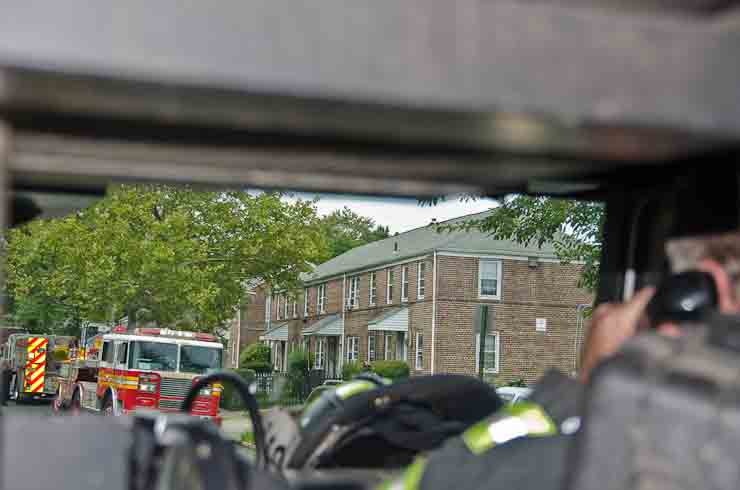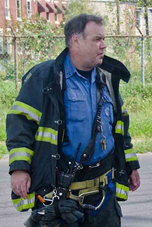 This page and the other pages in this series are the successors to the series of web-page about the Camden Fire Department that began with the page Camden Fire Department: The Fires of the Summer of 2011. On this and other pages in the series you will find pictures and information regarding different events and haspects of the fire service in Camden, New Jersey. The Camden Fire Department was called to the laundromat at South 7th Street and Division Street as smoke was observed in the ceiling. There was an electrical problem, and happily enough no fire, no damage and no injuries to anyone. Later that day I took a ride with Engine 1 out to the Canterbury Apartment off Morgan Boulevard. This run also turned out negative. As with the web page covering other Camden Fire Department events, if you can identify anyone that I've missed, please comment at the bottom of the page. (I'm terrible at at names and faces). October 31, 2012 |