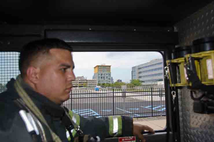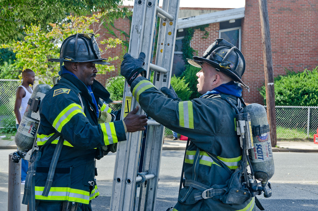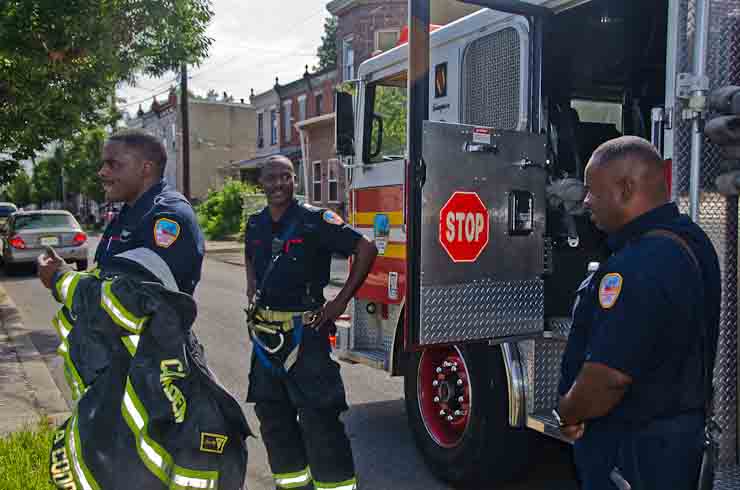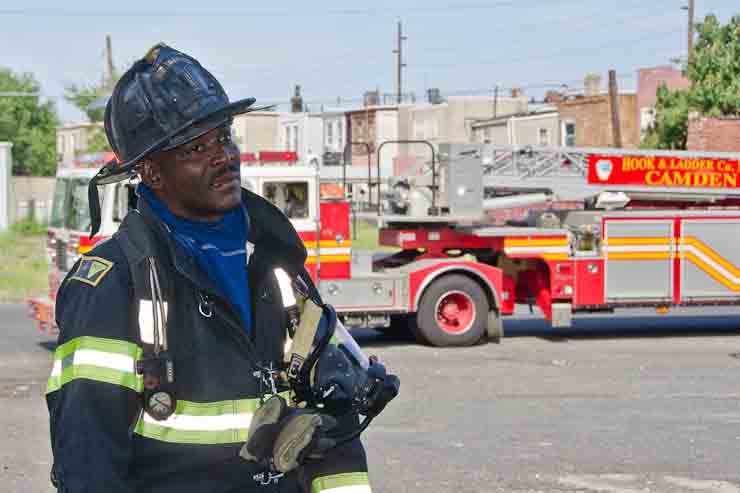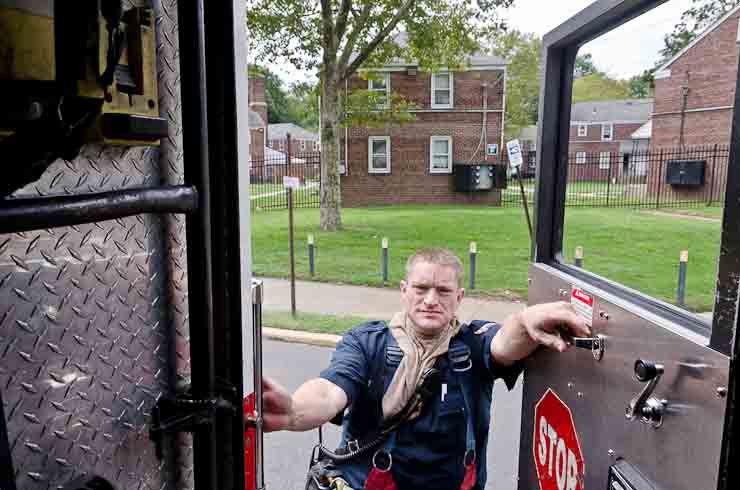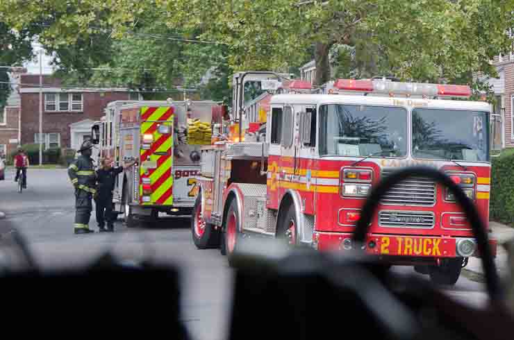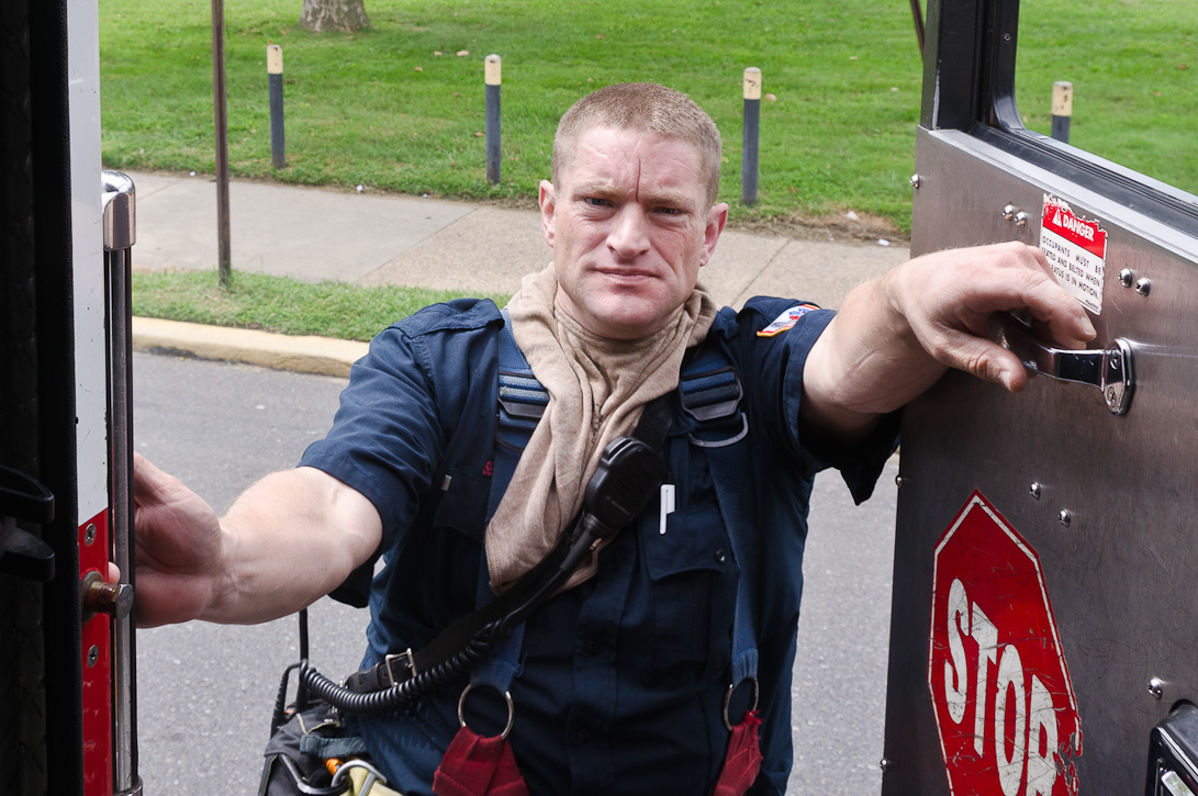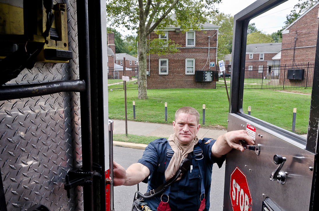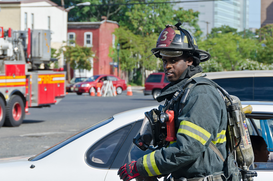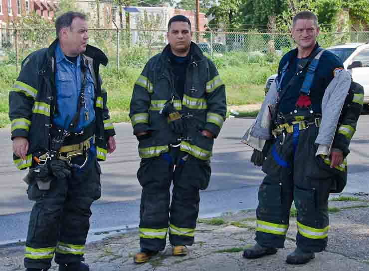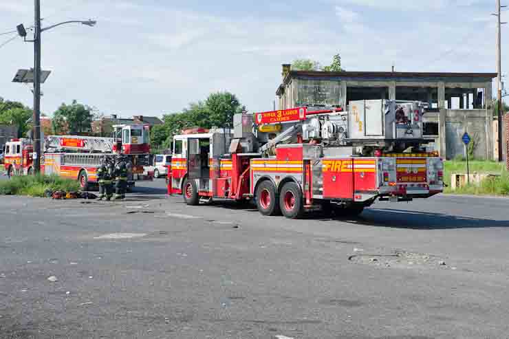 This page and the other pages in this series are the successors to the series of web-page about the Camden Fire Department that began with the page Camden Fire Department: The Fires of the Summer of 2011. On this and other pages in the series you will find pictures and information regarding different events and haspects of the fire service in Camden, New Jersey. The Camden Fire Department was called to the laundromat at South 7th Street and Division Street as smoke was observed in the ceiling. There was an electrical problem, and happily enough no fire, no damage and no injuries to anyone. Later that day I took a ride with Engine 1 out to the Canterbury Apartment off Morgan Boulevard. This run also turned out negative. As with the web page covering other Camden Fire Department events, if you can identify anyone that I've missed, please comment at the bottom of the page. (I'm terrible at at names and faces). October 31, 2012 |