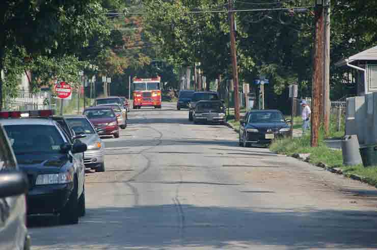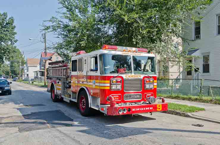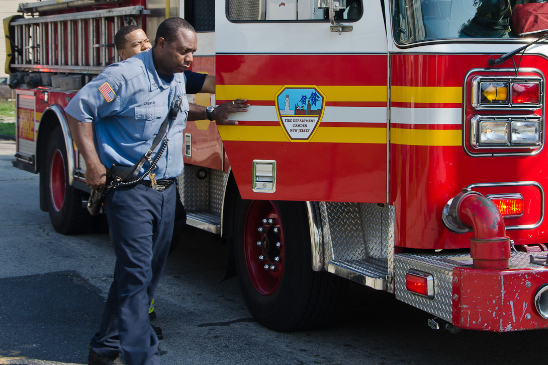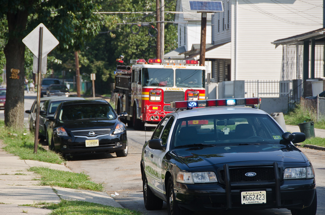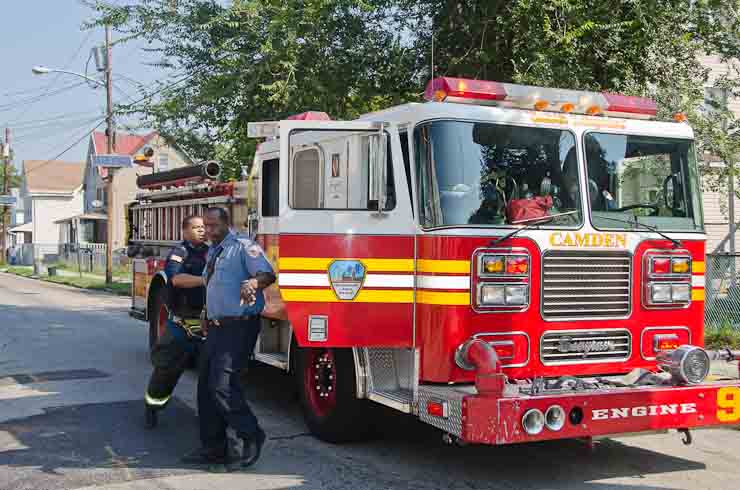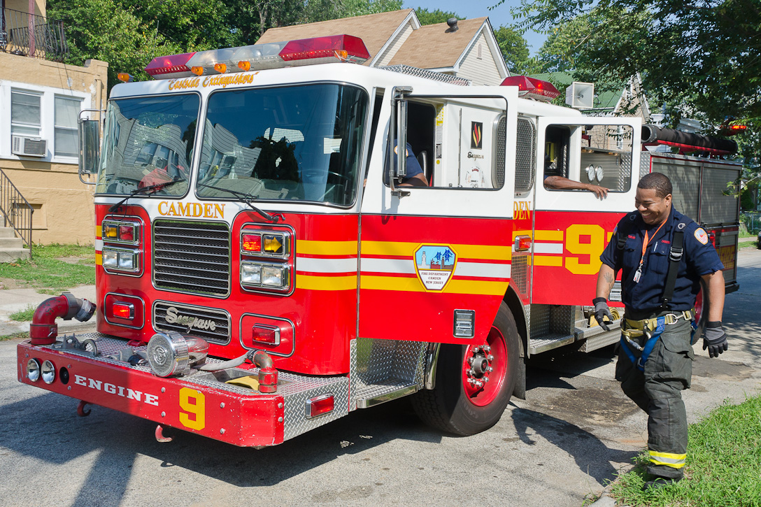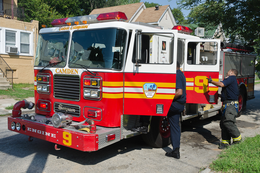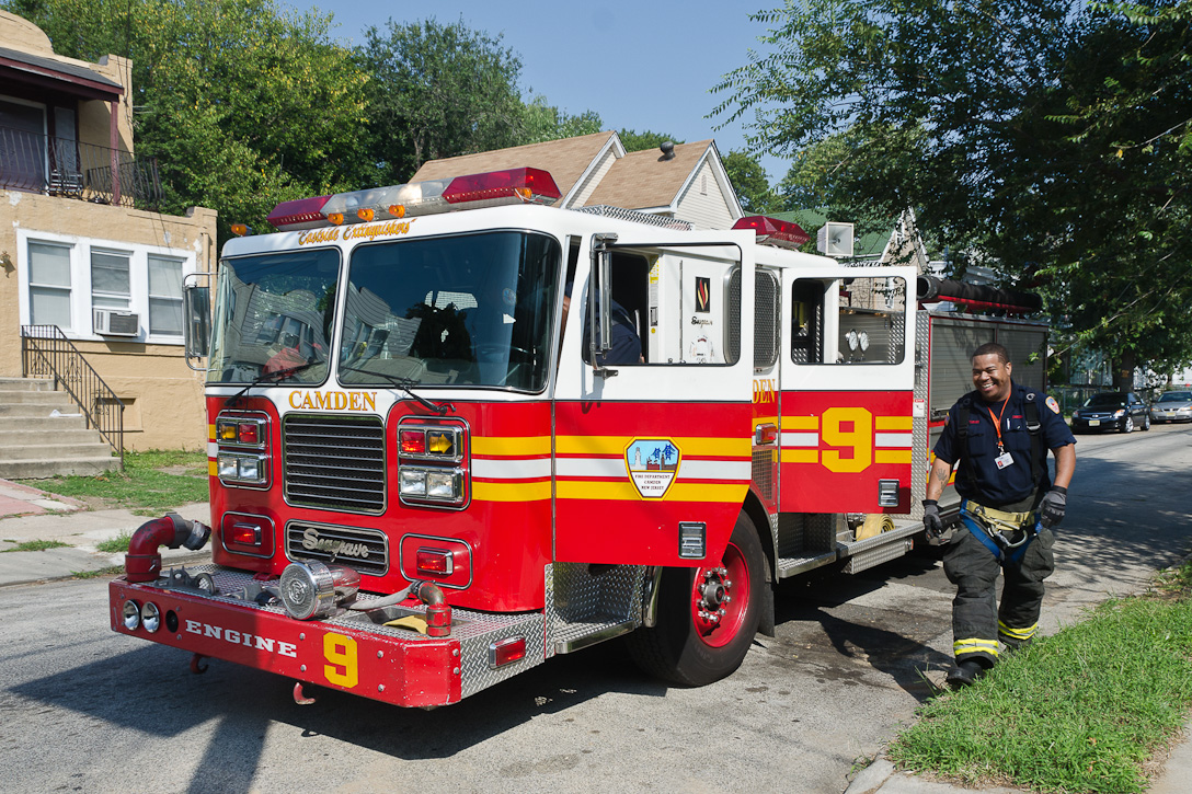This page and the other pages in this series are the successors to the series of web-page about the Camden Fire Department that began with the page Camden Fire Department: The Fires of the Summer of 2011. On this and other pages in the series you will find pictures and information regarding different events and haspects of the fire service in Camden, New Jersey. The Camden Fire Department was called to the laundromat at South 7th Street and Division Street as smoke was observed in the ceiling. There was an electrical problem, and happily enough no fire, no damage and no injuries to anyone. Later that day I took a ride with Engine 1 out to the Canterbury Apartment off Morgan Boulevard. This run also turned out negative. As with the web page covering other Camden Fire Department events, if you can identify anyone that I've missed, please comment at the bottom of the page. (I'm terrible at at names and faces). October 31, 2012 |