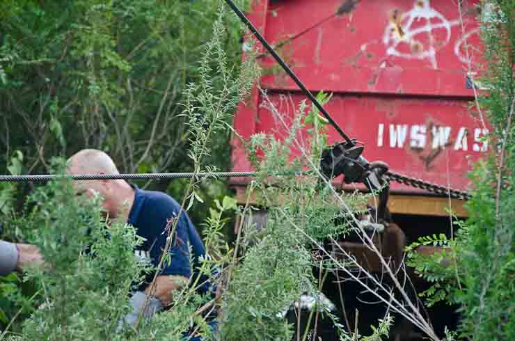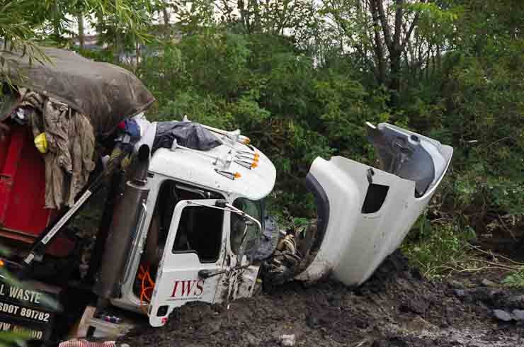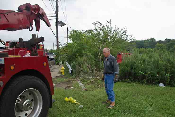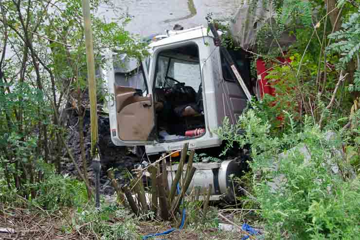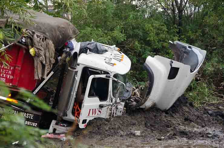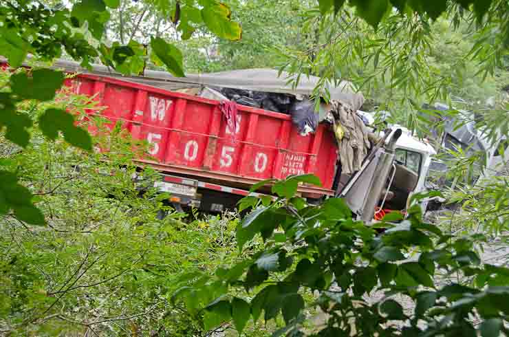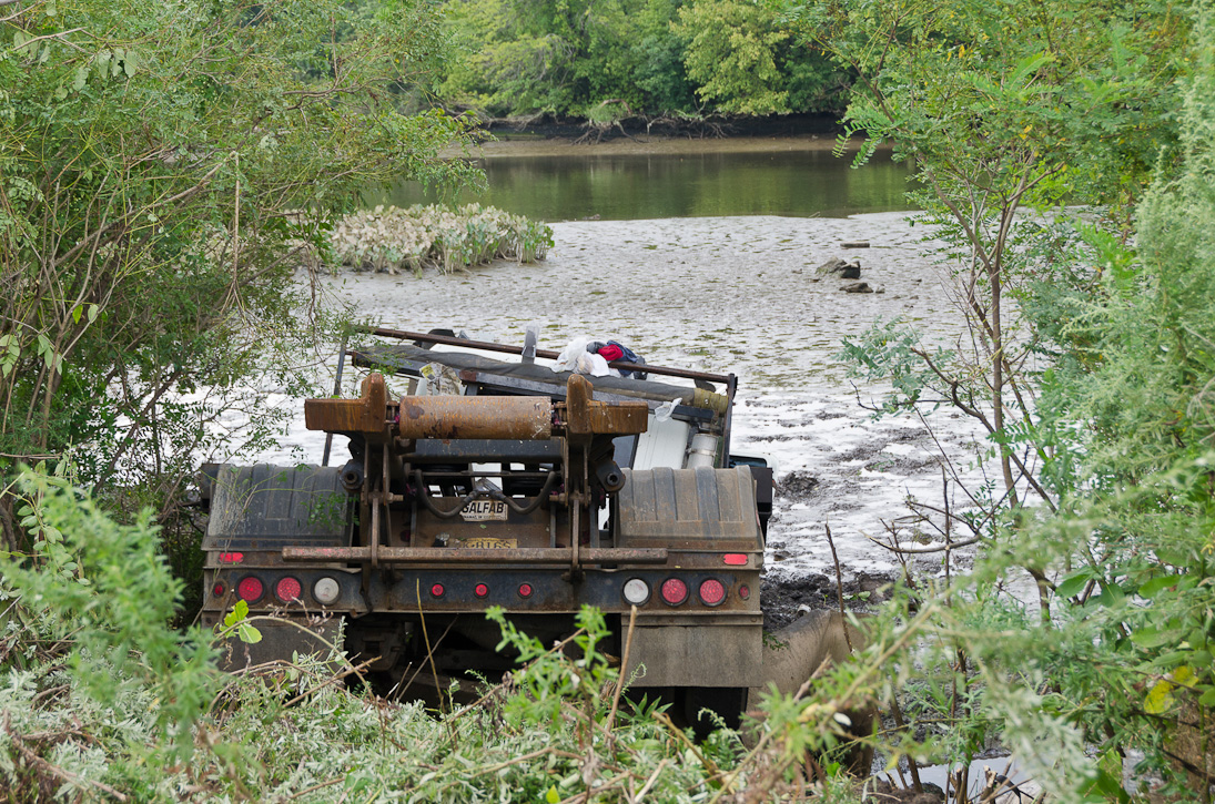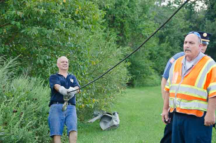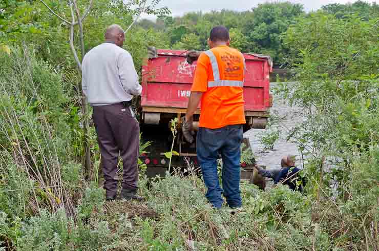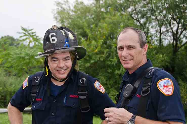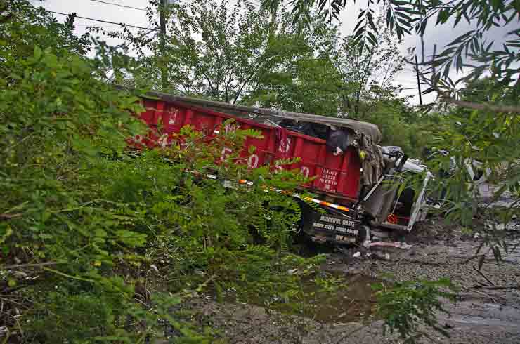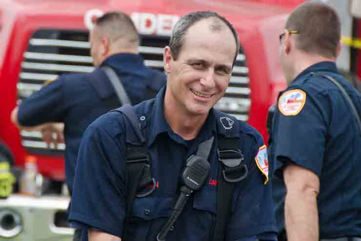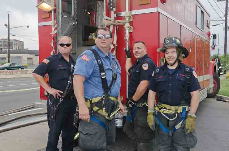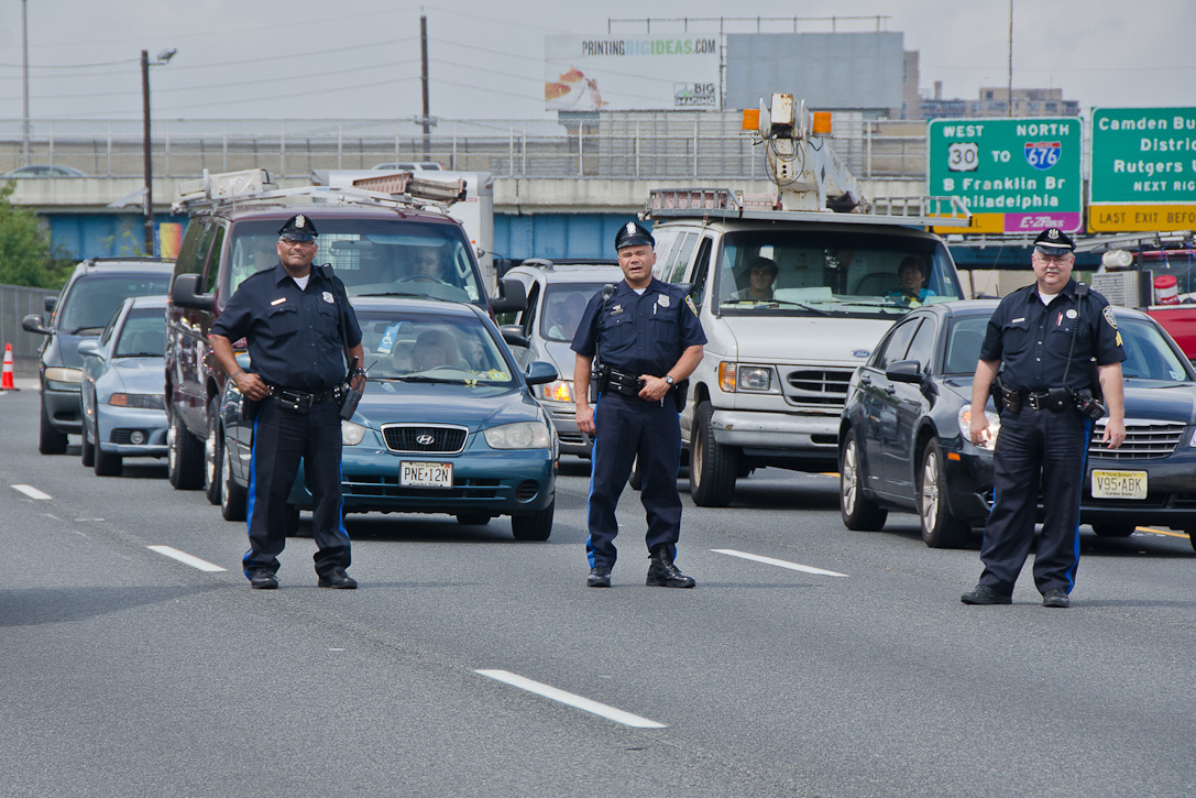 This page and the other pages in this series are the successors to the series of web-page about the Camden Fire Department that began with the page Camden Fire Department: The Fires of the Summer of 2011. On this and other pages in the series you will find pictures and information regarding different events and aspects of the fire service in Camden, New Jersey. I was in Camden on the morning of Tuesday, September 4, 2012 when I spotted Engine 10 on Kaighn Avenue east of Broadway, returning to their quarters after an investigation nearby. I pulled over and had taken a couple of photos when a call came over the radio dispatching Rescue 1 to the Admiral Wilson Boulevard. Off I went! At approximately 10:00 AM a tractor trailer transporting a dumpster, traveling eastbound on the Admiral Wilson Boulevard, was involved in a motor vehicle accident. From what I gathered, the driver of the truck swerved to avoid a passenger car at the Hess gas station, hit the car, lost control, and drove off the highway into the Cooper River. No one was hurt, but getting the truck out of the river was quite an event. As with the web page covering other Camden Fire Department events, if you can identify anyone that I've missed, please comment at the bottom of the page. (I'm terrible at at names and faces). October 31, 2012 |