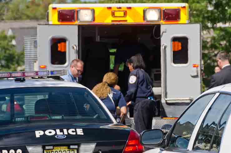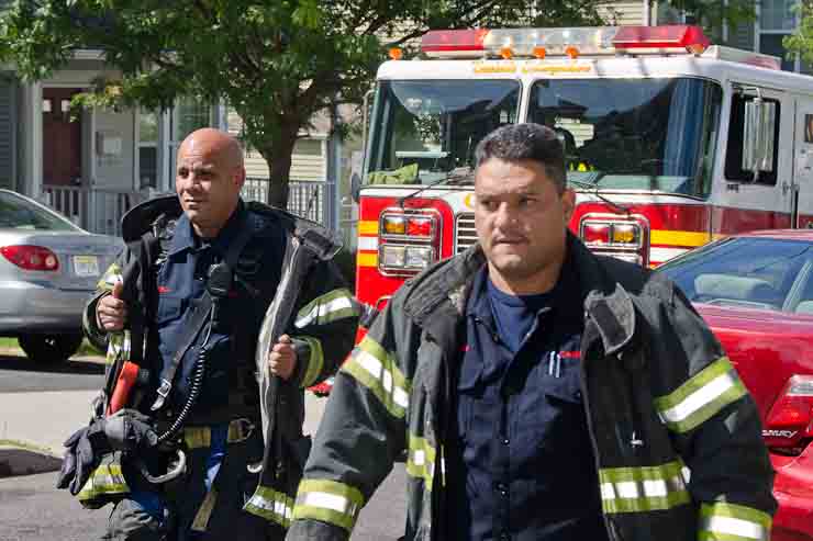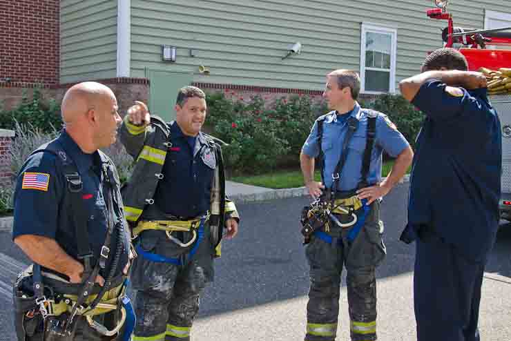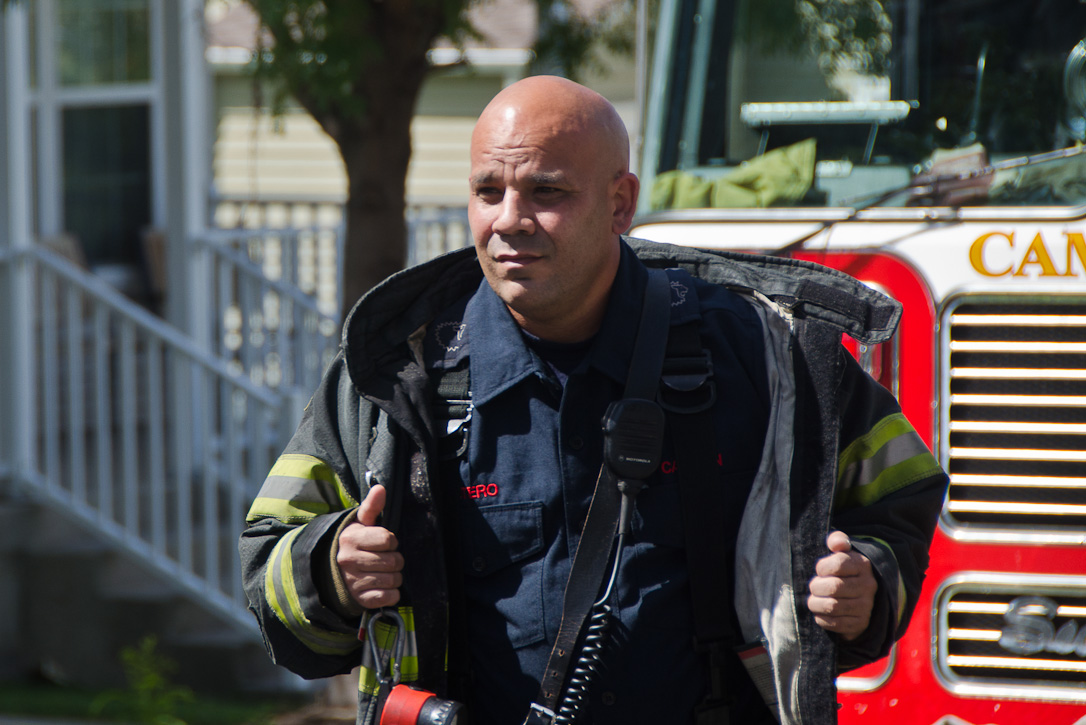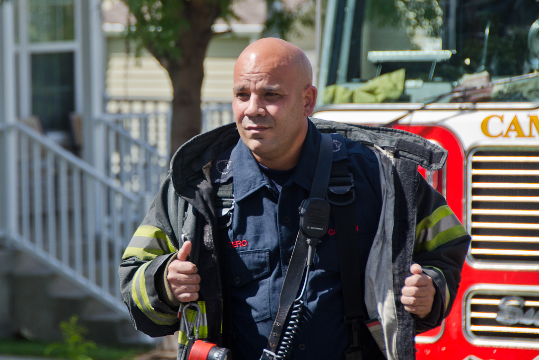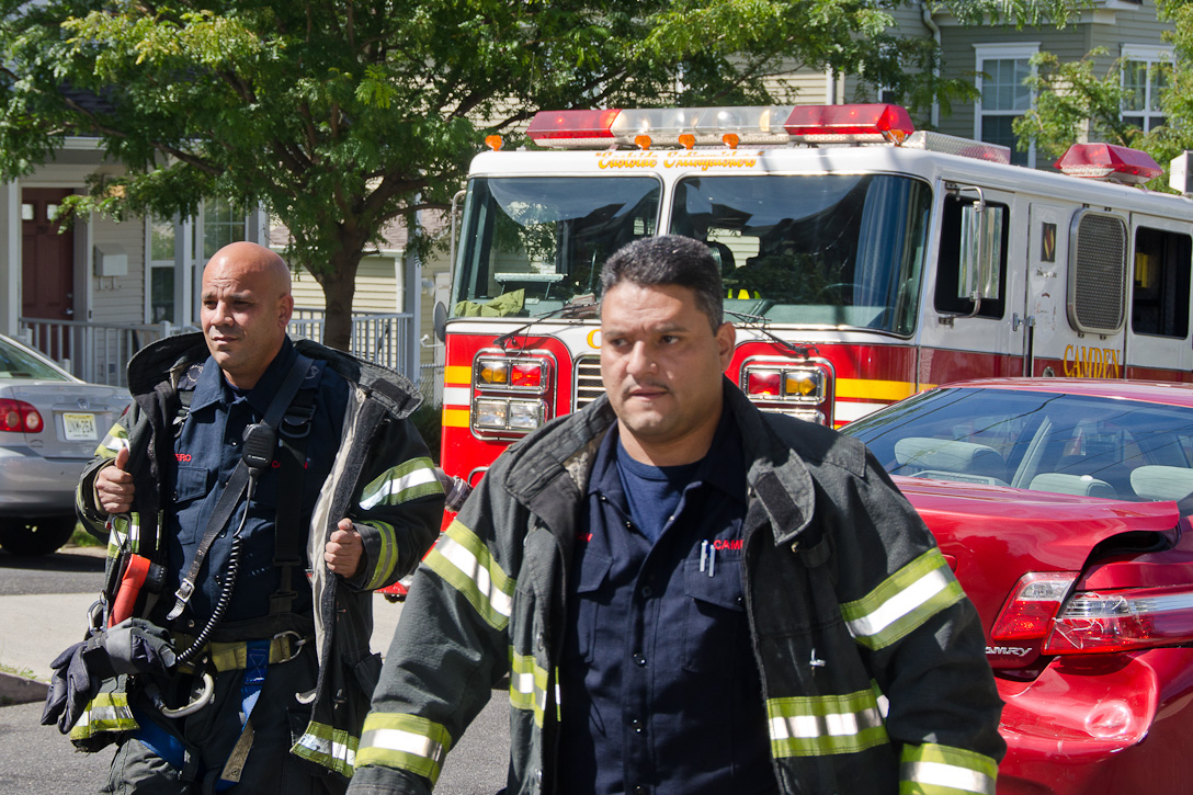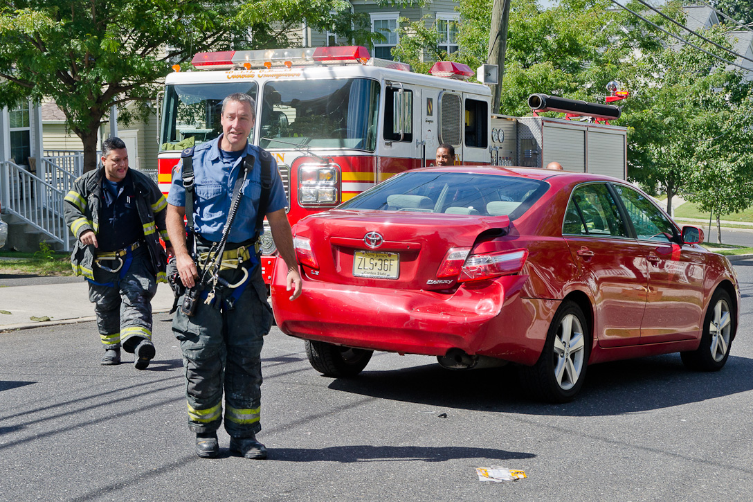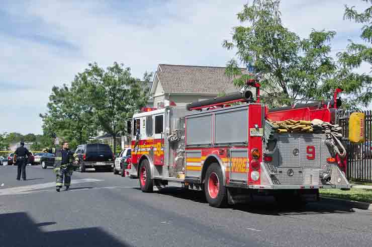 This page and the other pages in this series are the successors to the series of web-page about the Camden Fire Department that began with the page Camden Fire Department: The Fires of the Summer of 2011. On this and other pages in the series you will find pictures and information regarding different events and aspects of the fire service in Camden, New Jersey. I was in East Camden late in the afternoon of September 11 when a call over the radio sending Engine Company 9 to Beideman Avenue in the Baldwin's Run development, which formerly was known as Westfield Acres. There was some confusion as to what was going on and where, and it turned out to be for for good reason. Camden police were pursuing a suspect in the 200 block of North 32nd Street who turned and faced them with a weapon. Police fired on the suspect, wounding him in two places. The suspect fled on foot to a house on Beideman Avenue, where he was apprehended. Once the situation was safe, EMS personnel went in and transported the suspect to Cooper Hospital. After it was established as to what had taken place, Engine 9 went over to North 32nd Street and made sure that there was no risk of fire from the suspects vehicle. As with the web page covering other Camden Fire Department events, if you can identify anyone that I've missed, please comment at the bottom of the page. (I'm terrible at at names and faces). November 1, 2012 |