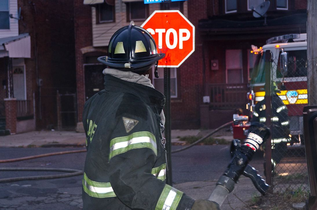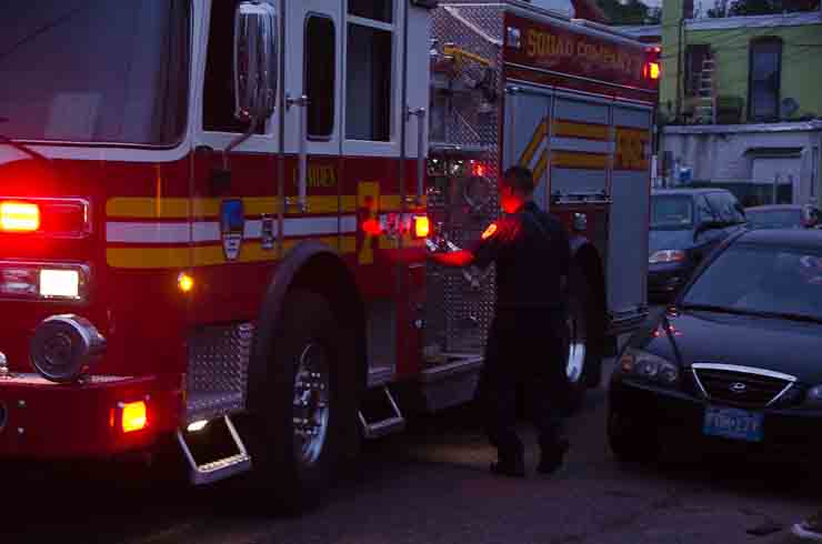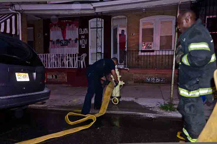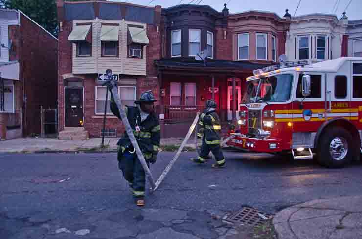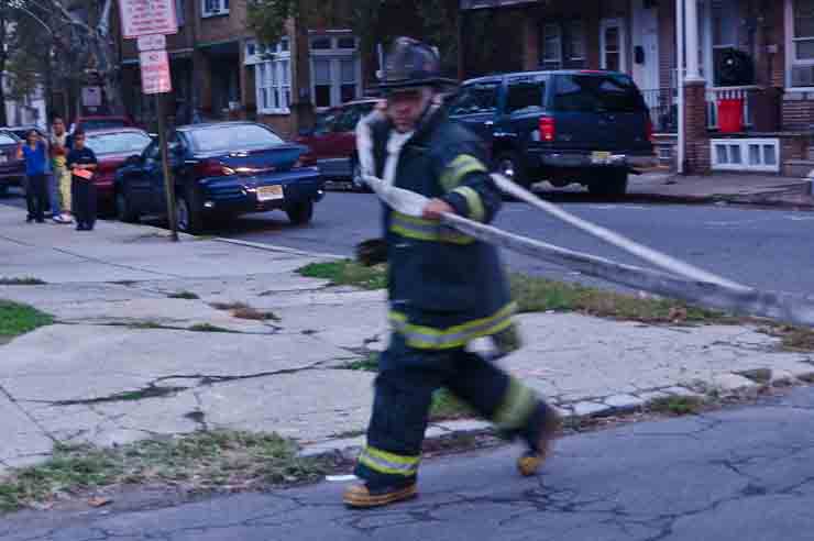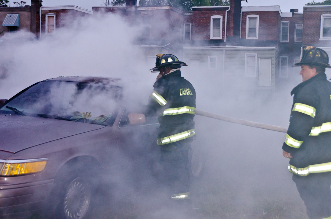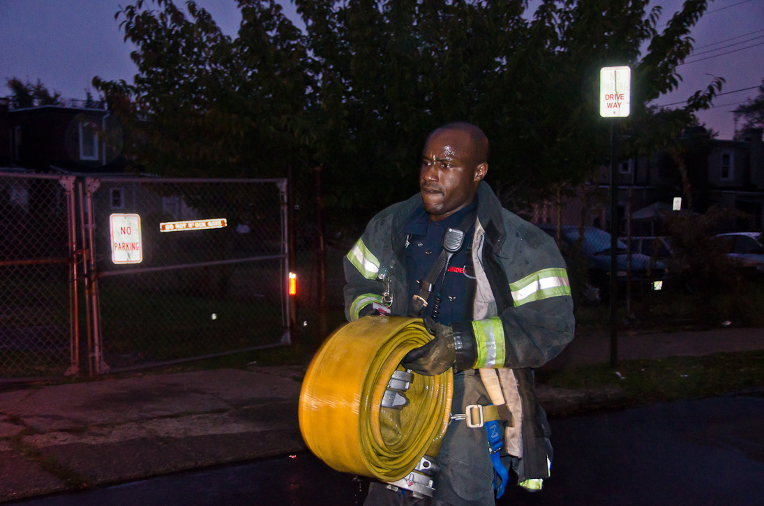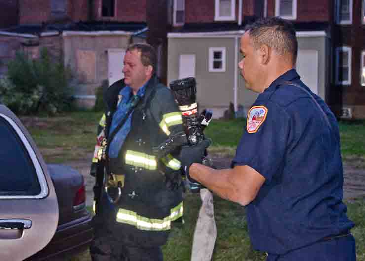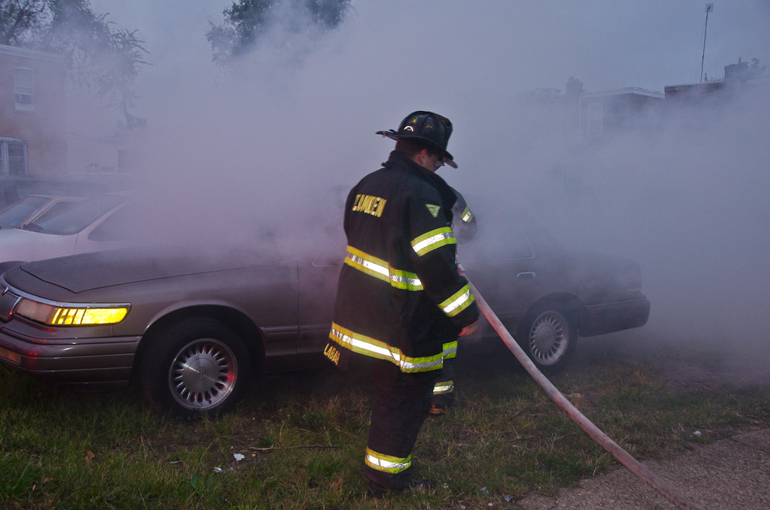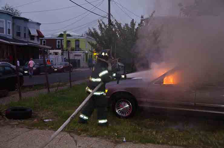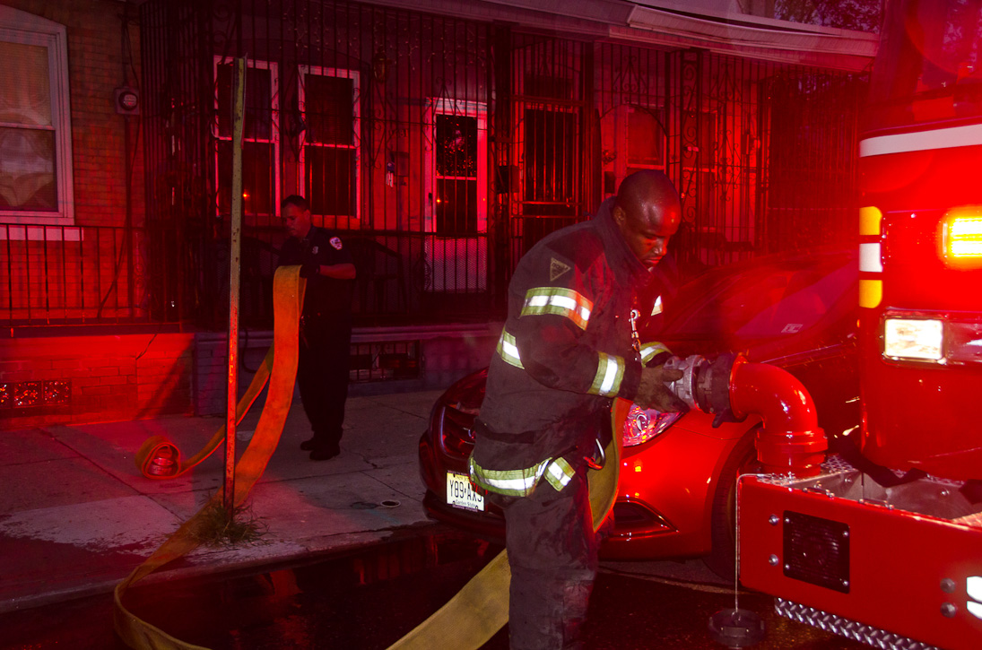 This page and the other pages in this series are the successors to the series of web-page about the Camden Fire Department that began with the page Camden Fire Department: The Fires of the Summer of 2011. On this and other pages in the series you will find pictures and information regarding different events and aspects of the fire service in Camden, New Jersey. At approximately 6:25 on October 9, 2012 Squad 7 was dispatched to Warsaw and Thurman Streets, where a car was on fire. The car was parked off street in a vacant lot that residents of Thurman Street had been using as a parking lot. The fire, in the car's engine compartment, was quickly dealt with. As with the web page covering other Camden Fire Department events, if you can identify anyone that I've missed, please comment at the bottom of the page. (I'm terrible at at names and faces). November 1, 2012 |