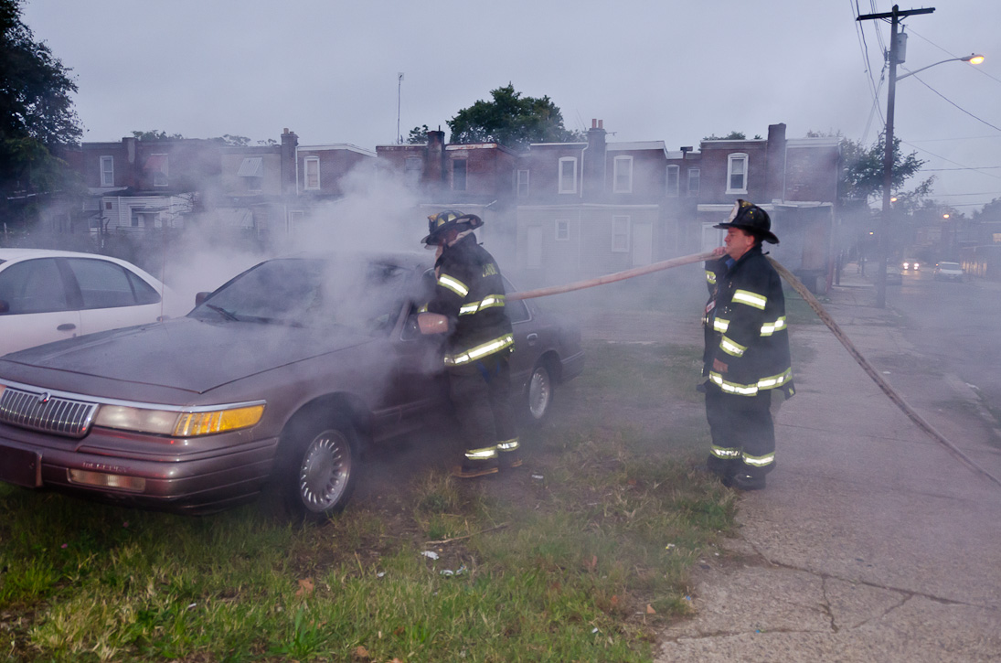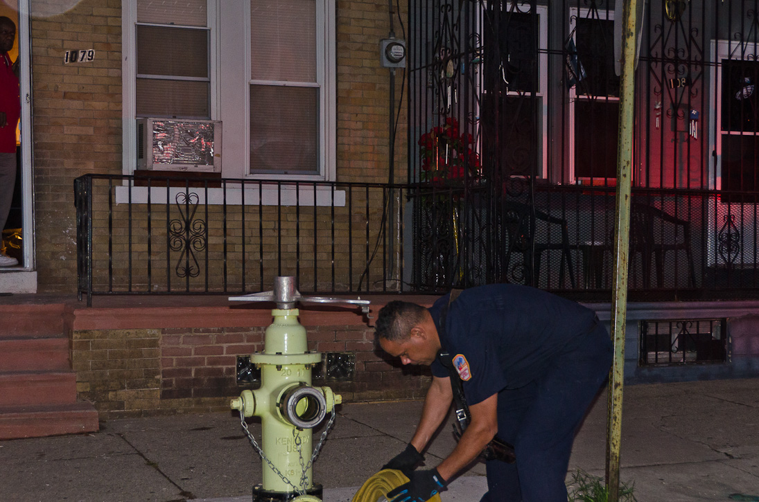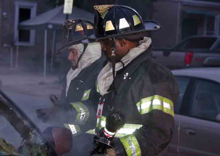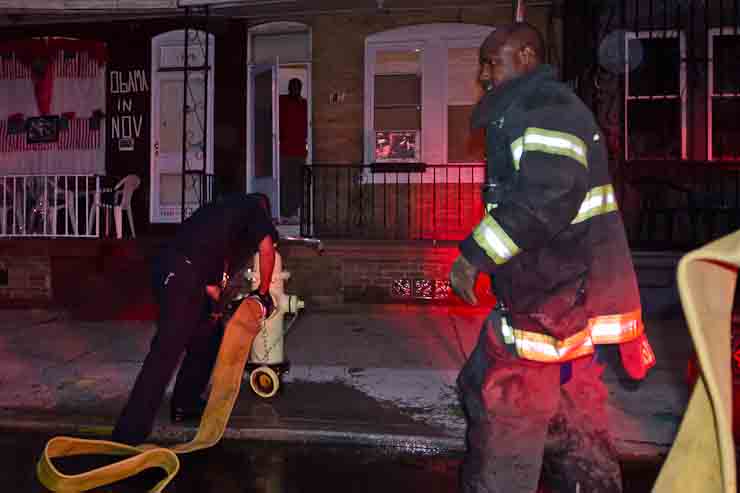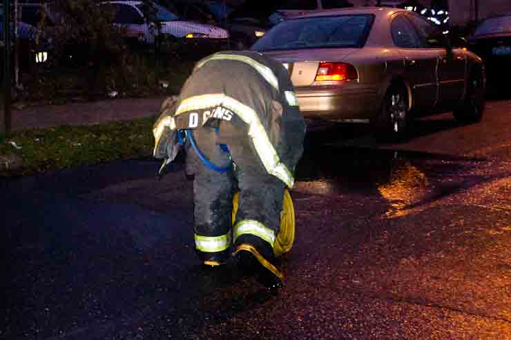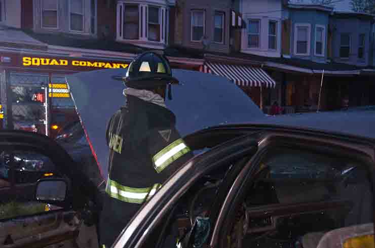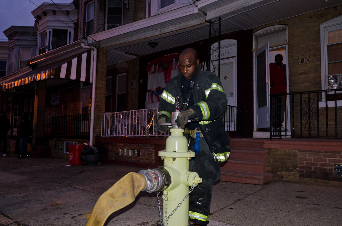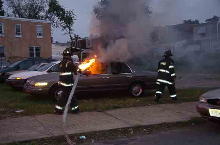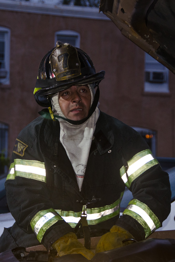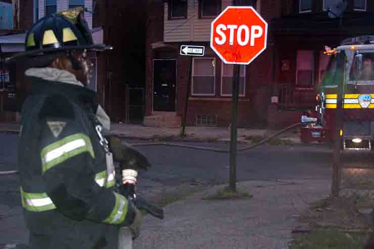 This page and the other pages in this series are the successors to the series of web-page about the Camden Fire Department that began with the page Camden Fire Department: The Fires of the Summer of 2011. On this and other pages in the series you will find pictures and information regarding different events and aspects of the fire service in Camden, New Jersey. At approximately 6:25 on October 9, 2012 Squad 7 was dispatched to Warsaw and Thurman Streets, where a car was on fire. The car was parked off street in a vacant lot that residents of Thurman Street had been using as a parking lot. The fire, in the car's engine compartment, was quickly dealt with. As with the web page covering other Camden Fire Department events, if you can identify anyone that I've missed, please comment at the bottom of the page. (I'm terrible at at names and faces). November 1, 2012 |