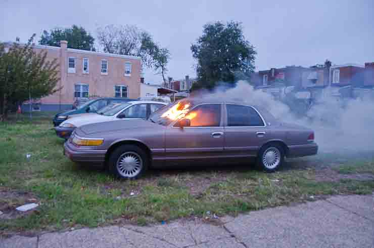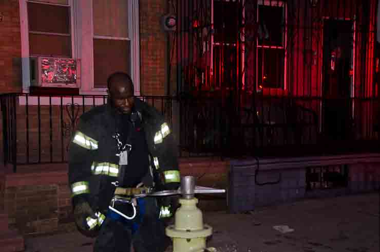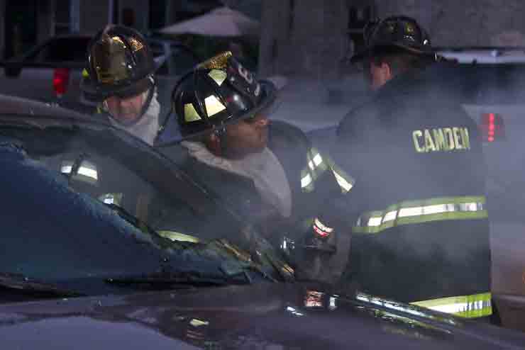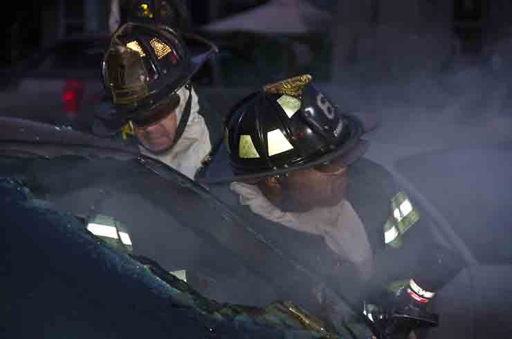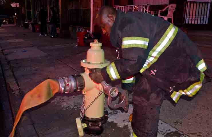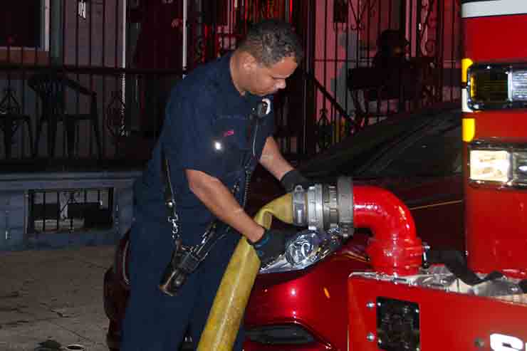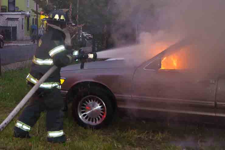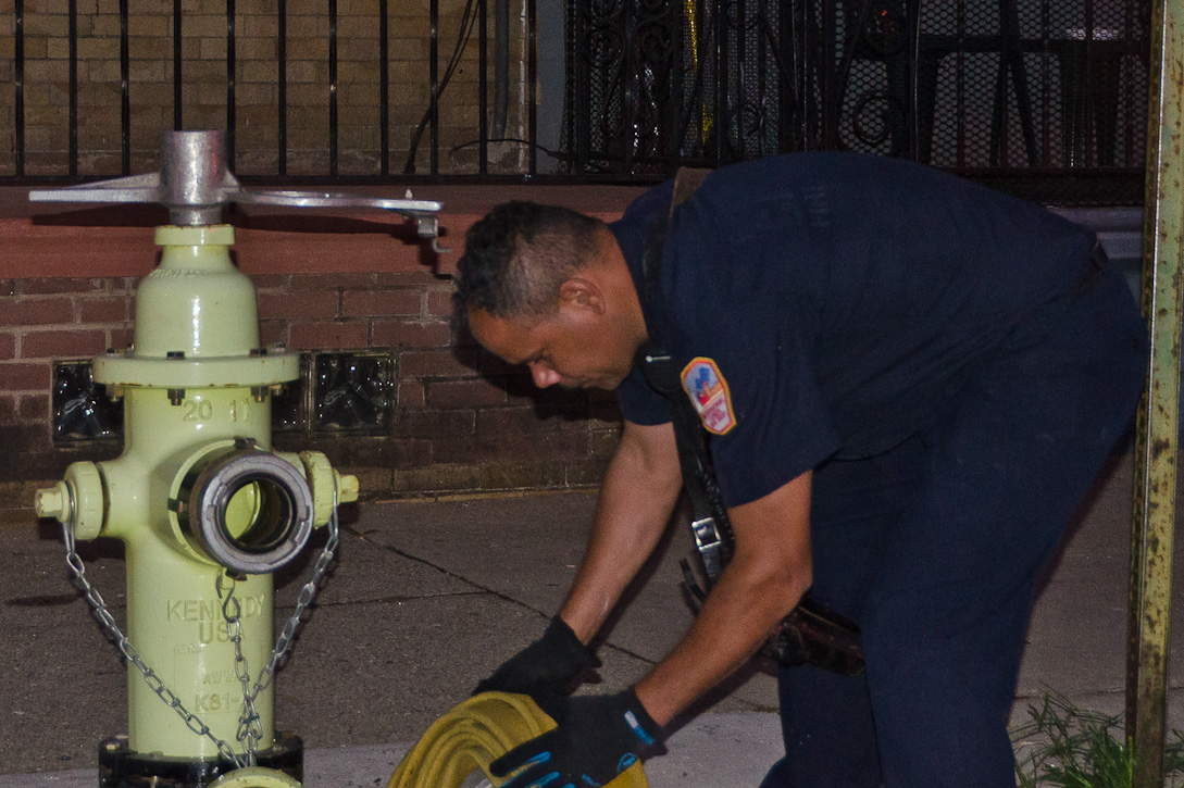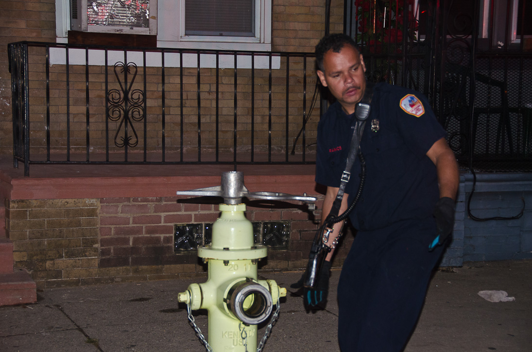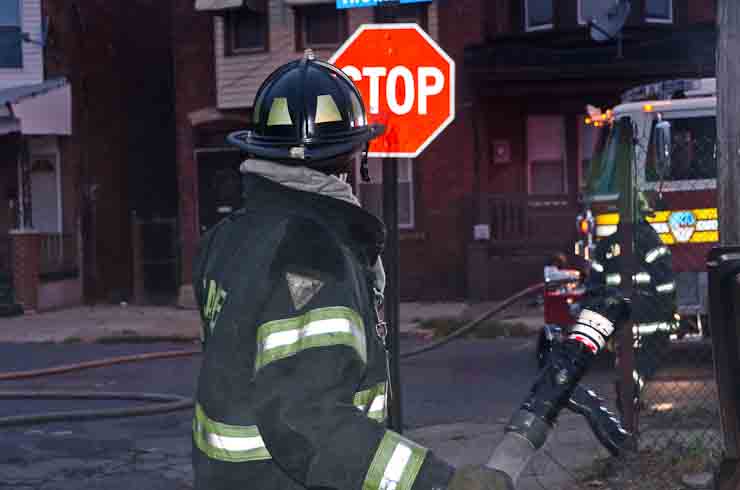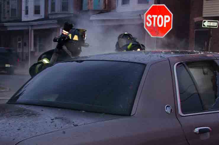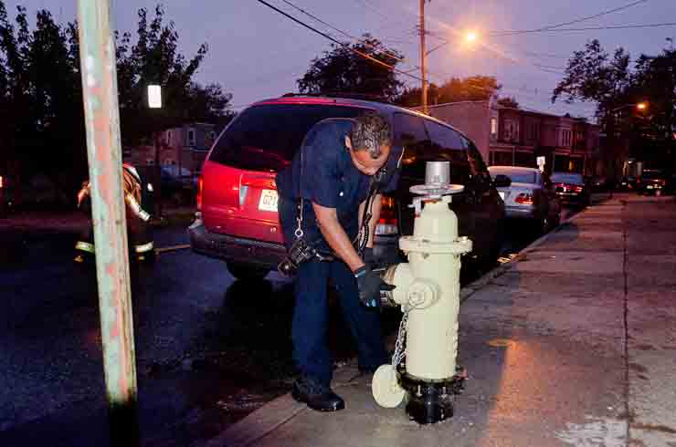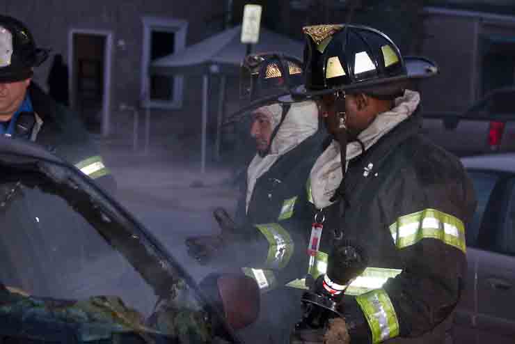 This page and the other pages in this series are the successors to the series of web-page about the Camden Fire Department that began with the page Camden Fire Department: The Fires of the Summer of 2011. On this and other pages in the series you will find pictures and information regarding different events and aspects of the fire service in Camden, New Jersey. At approximately 6:25 on October 9, 2012 Squad 7 was dispatched to Warsaw and Thurman Streets, where a car was on fire. The car was parked off street in a vacant lot that residents of Thurman Street had been using as a parking lot. The fire, in the car's engine compartment, was quickly dealt with. As with the web page covering other Camden Fire Department events, if you can identify anyone that I've missed, please comment at the bottom of the page. (I'm terrible at at names and faces). November 1, 2012 |