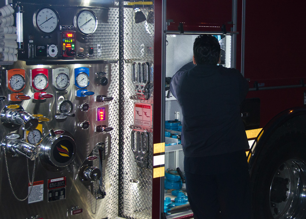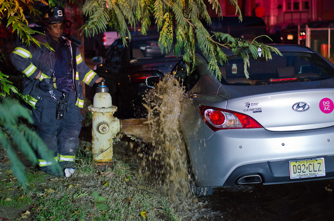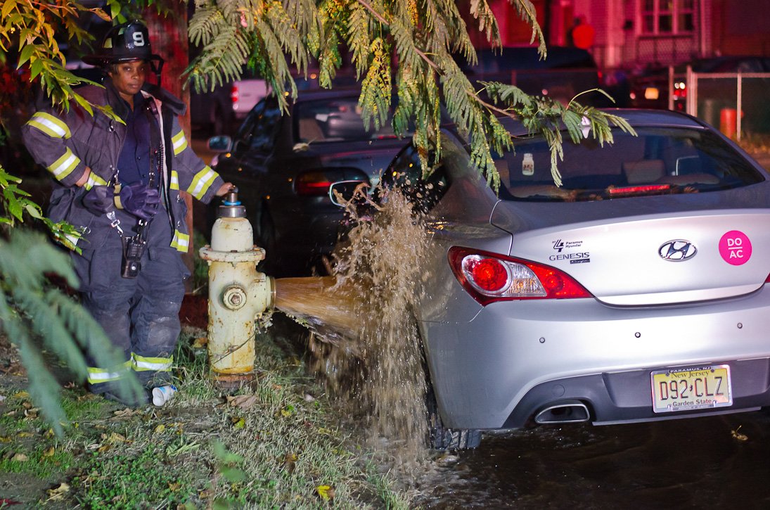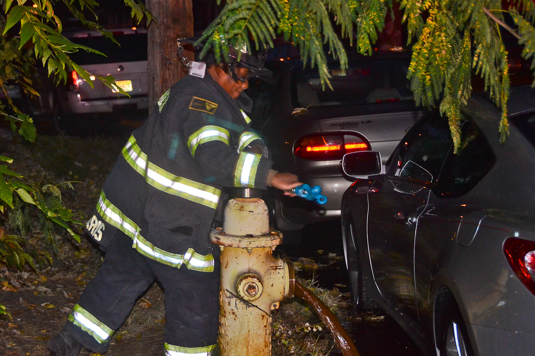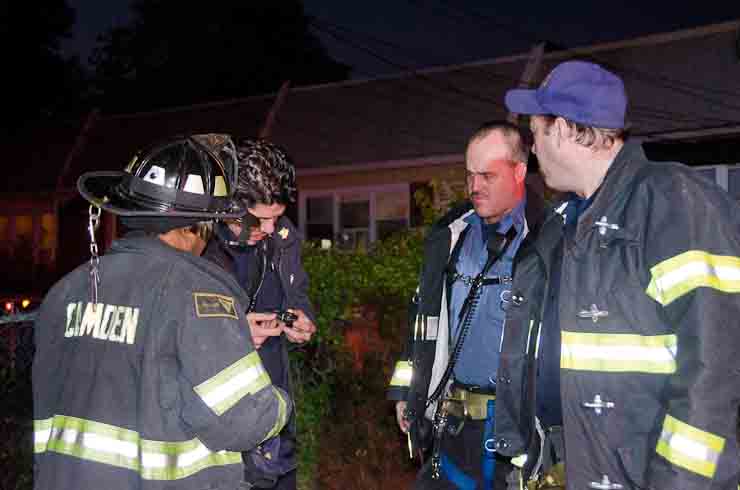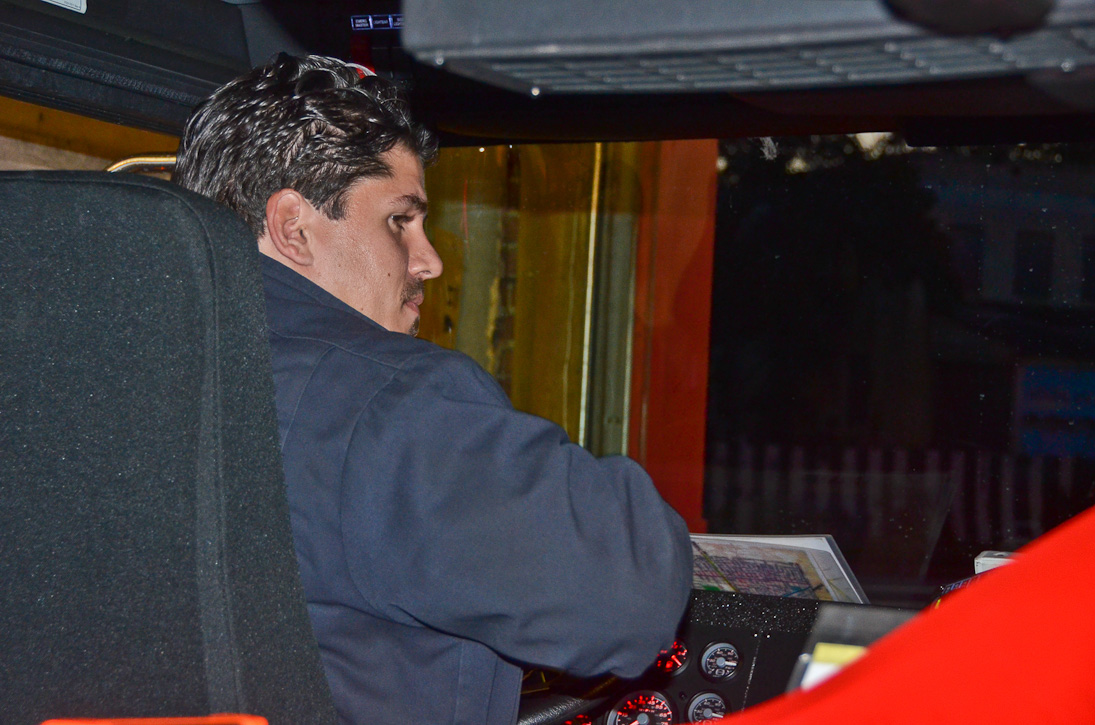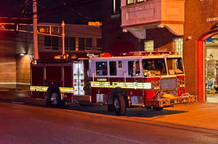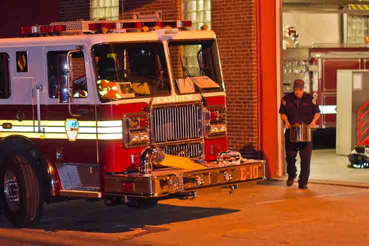 This page and the other pages in this series are the successors to the series of web-page about the Camden Fire Department that began with the page Camden Fire Department: The Fires of the Summer of 2011. On this and other pages in the series you will find pictures and information regarding different events and aspects of the fire service in Camden, New Jersey. Sunday evening at Engine 10, getting ready for another Sunday dinner at Liberty Station. At 6:36 Engine 10 was dispatched to Lakeshore Drive to investigate an appliance. No drama on this one… always a good thing, in reality… but I did take advantage of the opportunity to get a few photos of the new Engine 10 truck at night. As with the web page covering other Camden Fire Department events, if you can identify anyone that I've missed, please comment at the bottom of the page. (I'm terrible at at names and faces). November 2, 2012 |