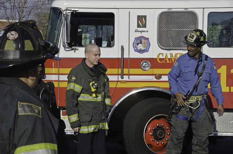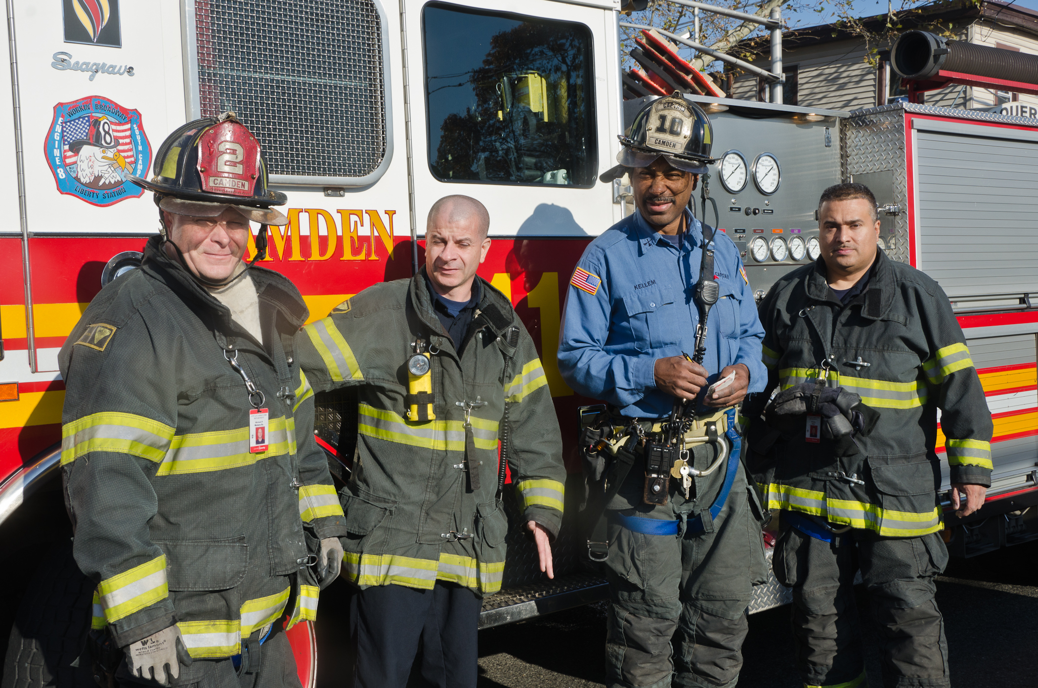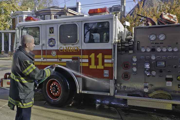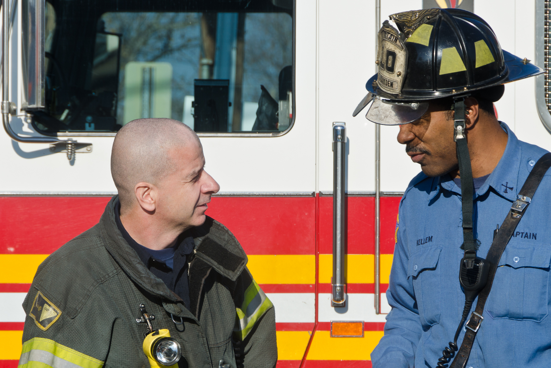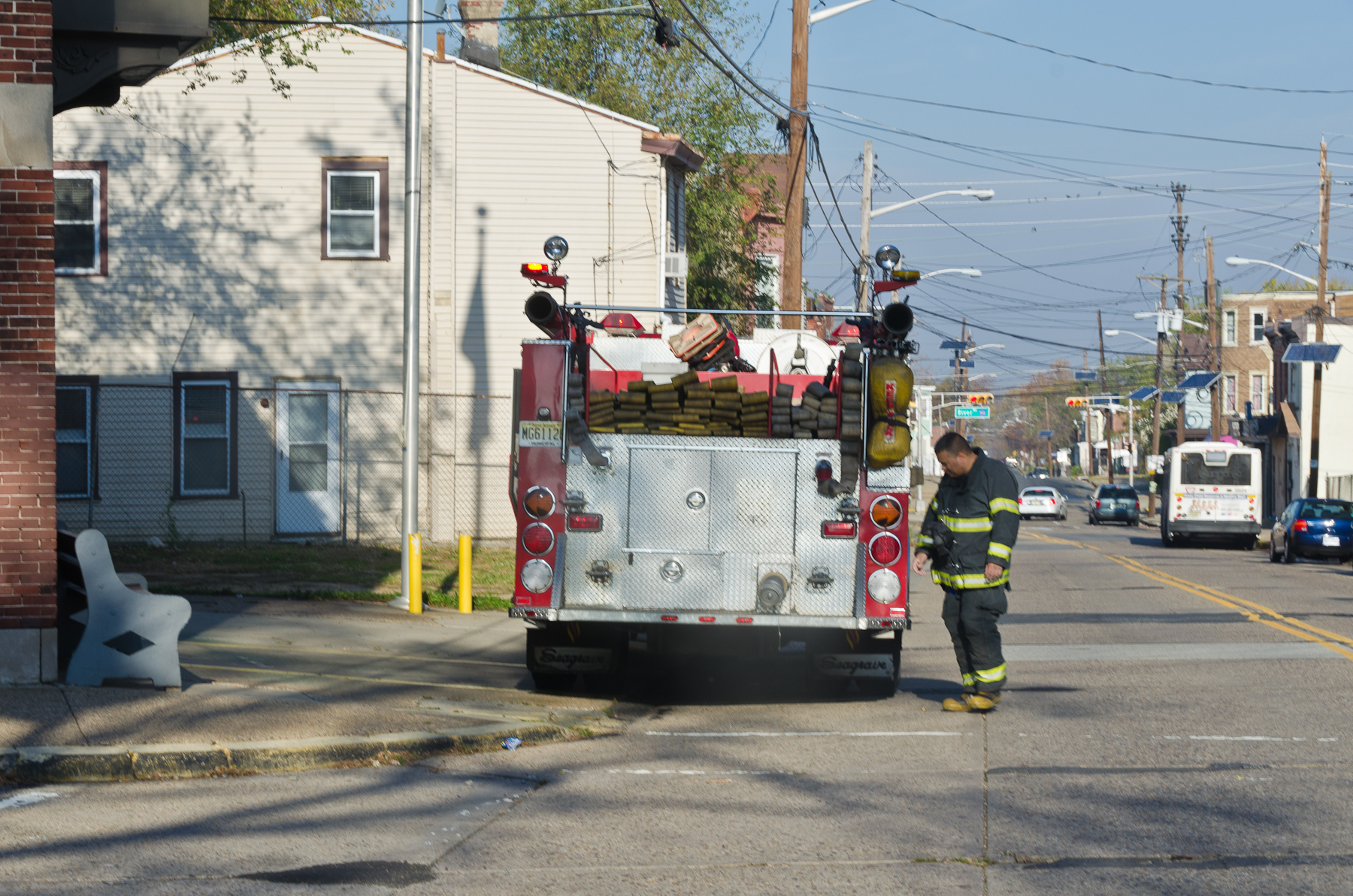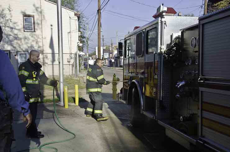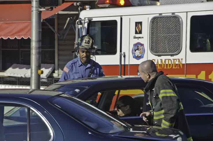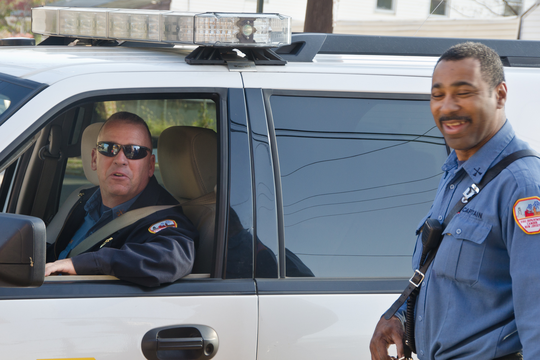 This page and the other pages in this series are the successors to the series of web-page about the Camden Fire Department that began with the page Camden Fire Department: The Fires of the Summer of 2011. On this and other pages in the series you will find pictures and information regarding different events and aspects of the fire service in Camden, New Jersey. I was at the post office on Federal Street when a call came over the radio sending Engine 11 to 26th and River Avenue to attend to a two-car accident. Happily enough, no one was hurt. Engine 11 returned to quarters, I stopped by to hang out for a bit and took some more pictures! As with the web page covering other Camden Fire Department events, if you can identify anyone that I've missed, please comment at the bottom of the page. (I'm terrible at at names and faces). January 14, 2013 |