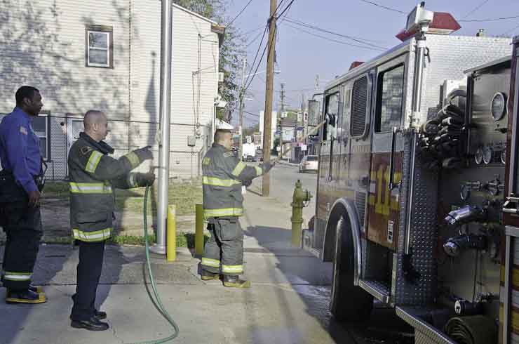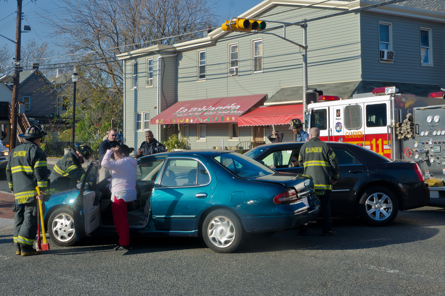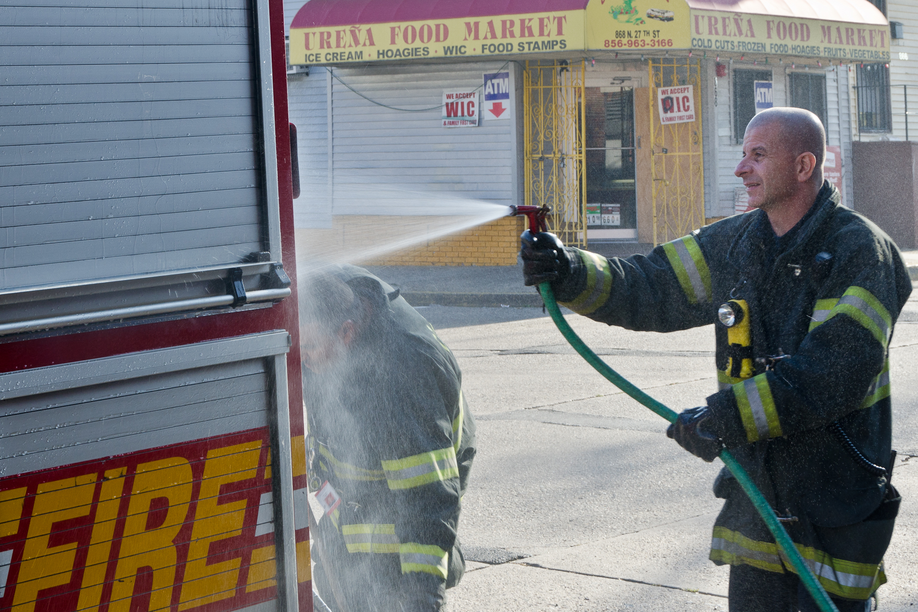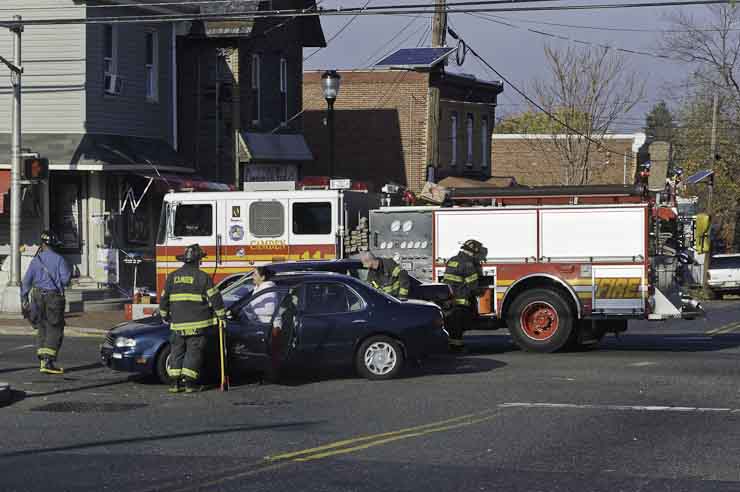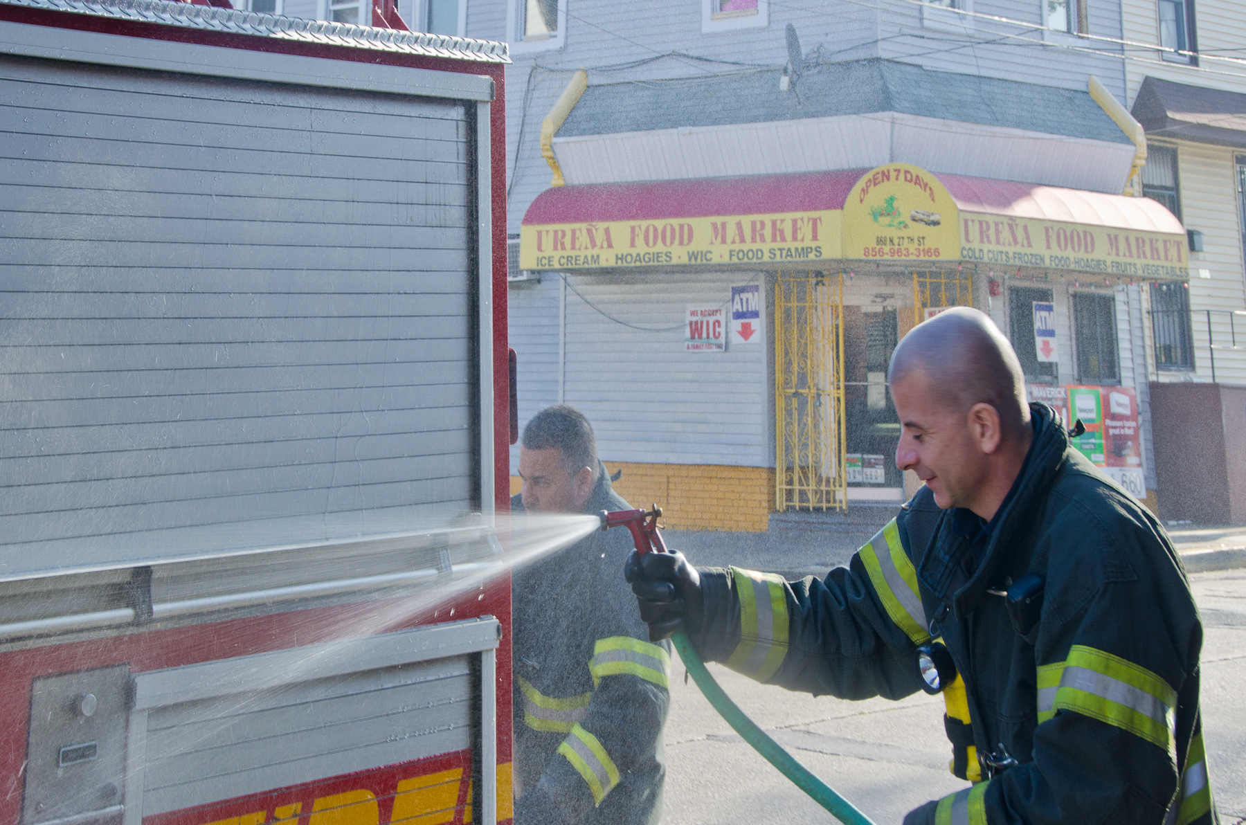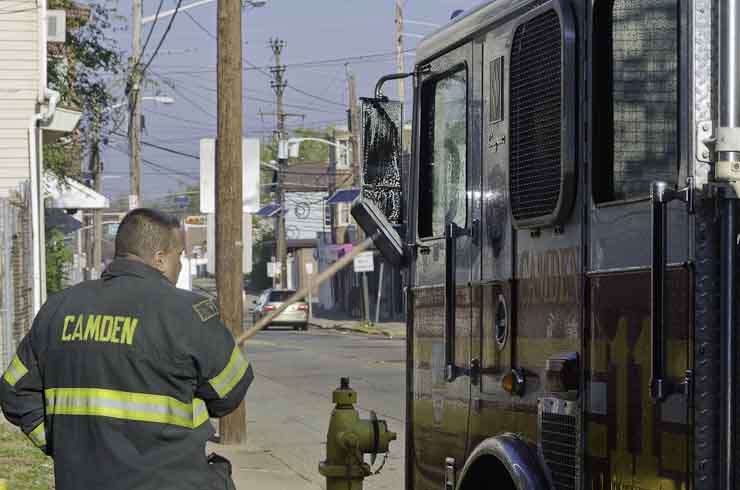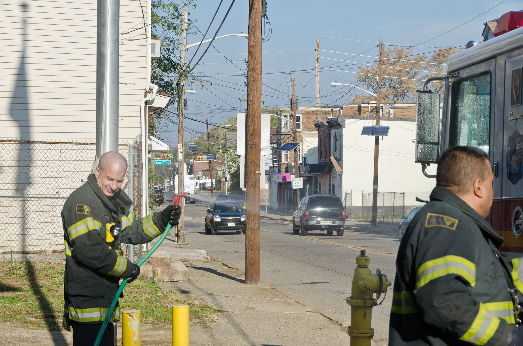 This page and the other pages in this series are the successors to the series of web-page about the Camden Fire Department that began with the page Camden Fire Department: The Fires of the Summer of 2011. On this and other pages in the series you will find pictures and information regarding different events and aspects of the fire service in Camden, New Jersey. I was at the post office on Federal Street when a call came over the radio sending Engine 11 to 26th and River Avenue to attend to a two-car accident. Happily enough, no one was hurt. Engine 11 returned to quarters, I stopped by to hang out for a bit and took some more pictures! As with the web page covering other Camden Fire Department events, if you can identify anyone that I've missed, please comment at the bottom of the page. (I'm terrible at at names and faces). January 14, 2013 |