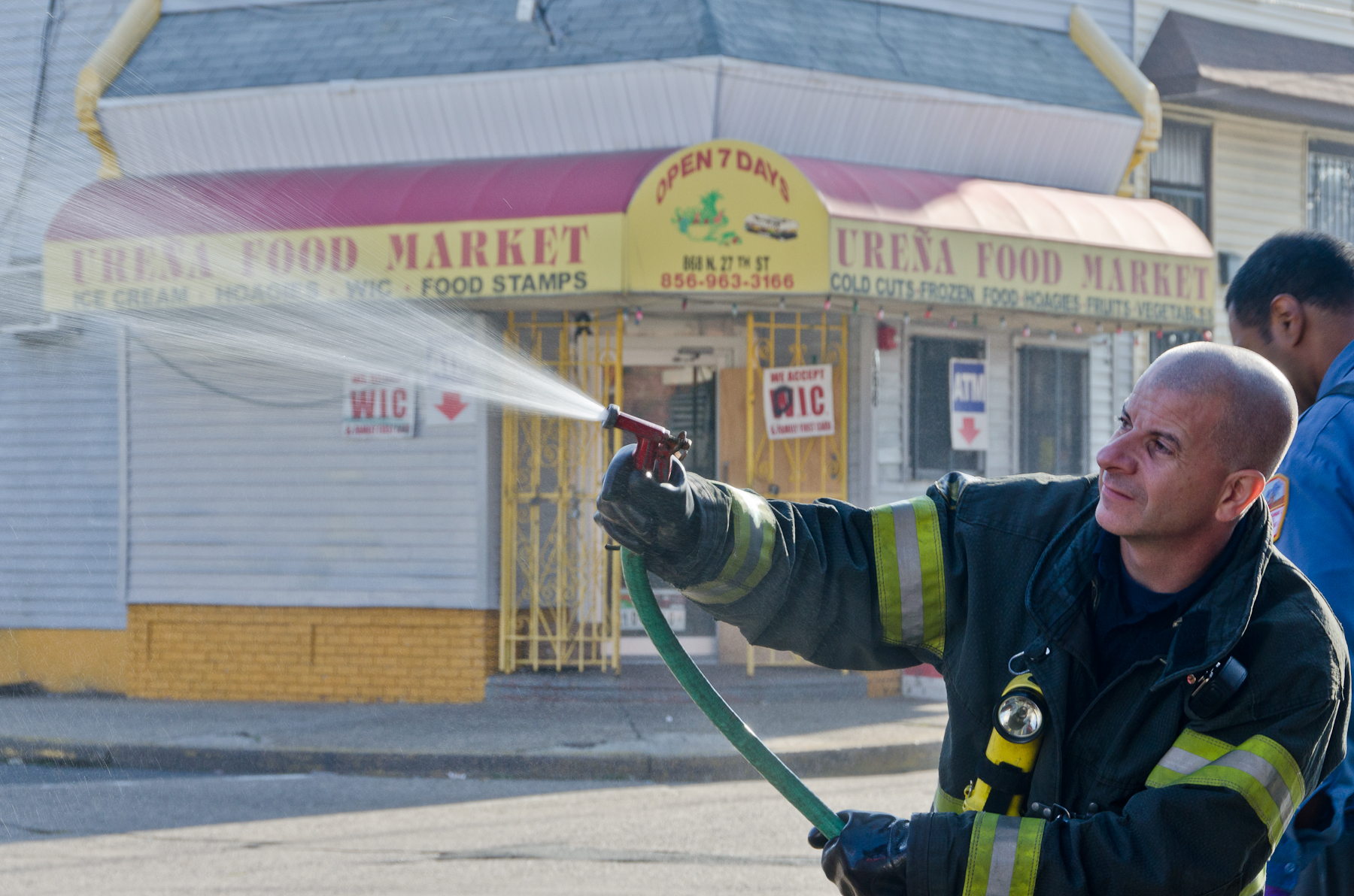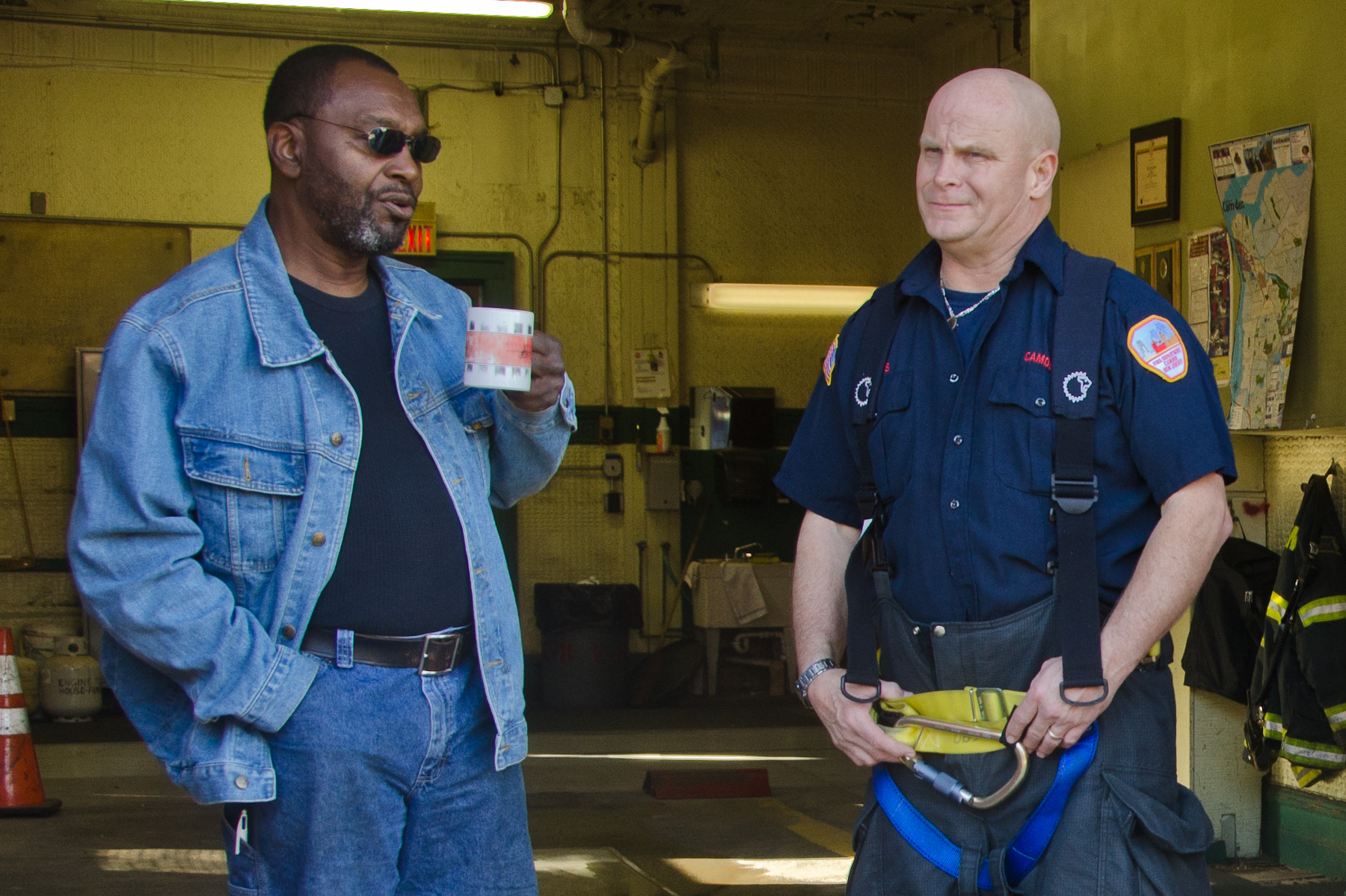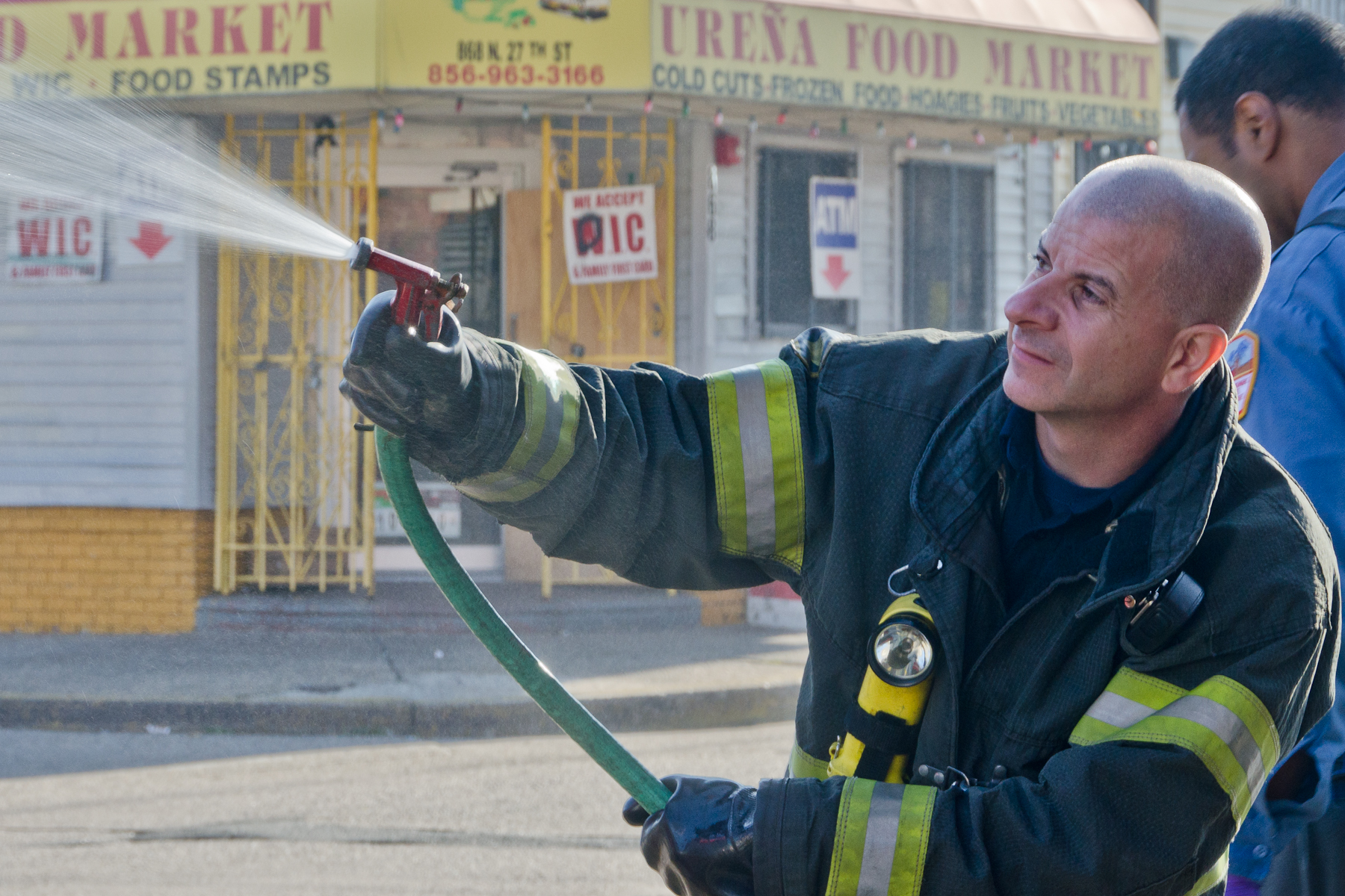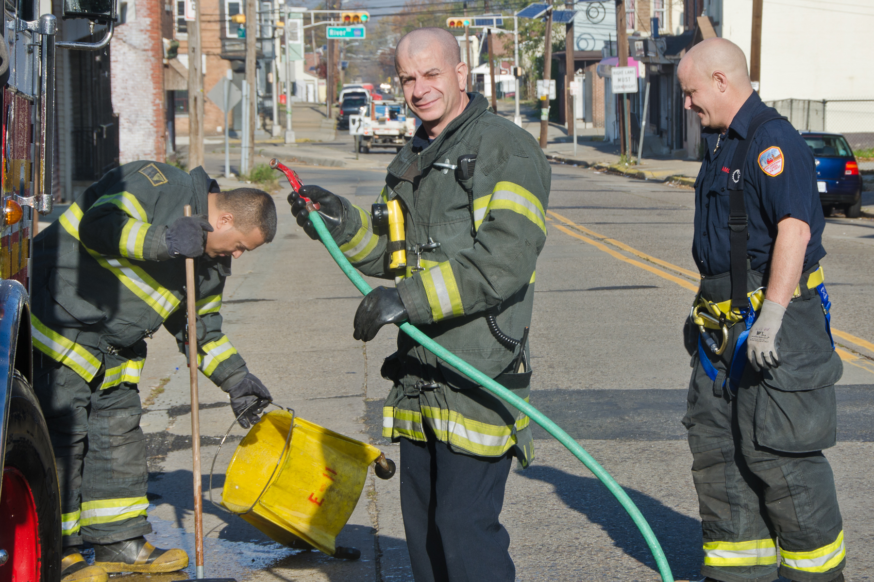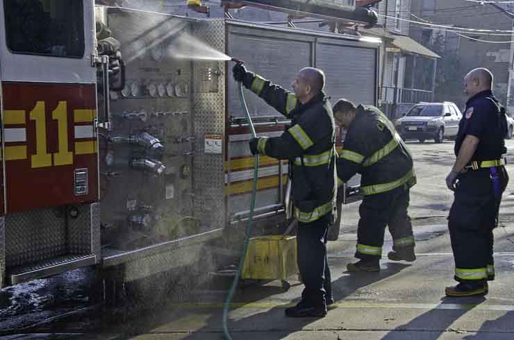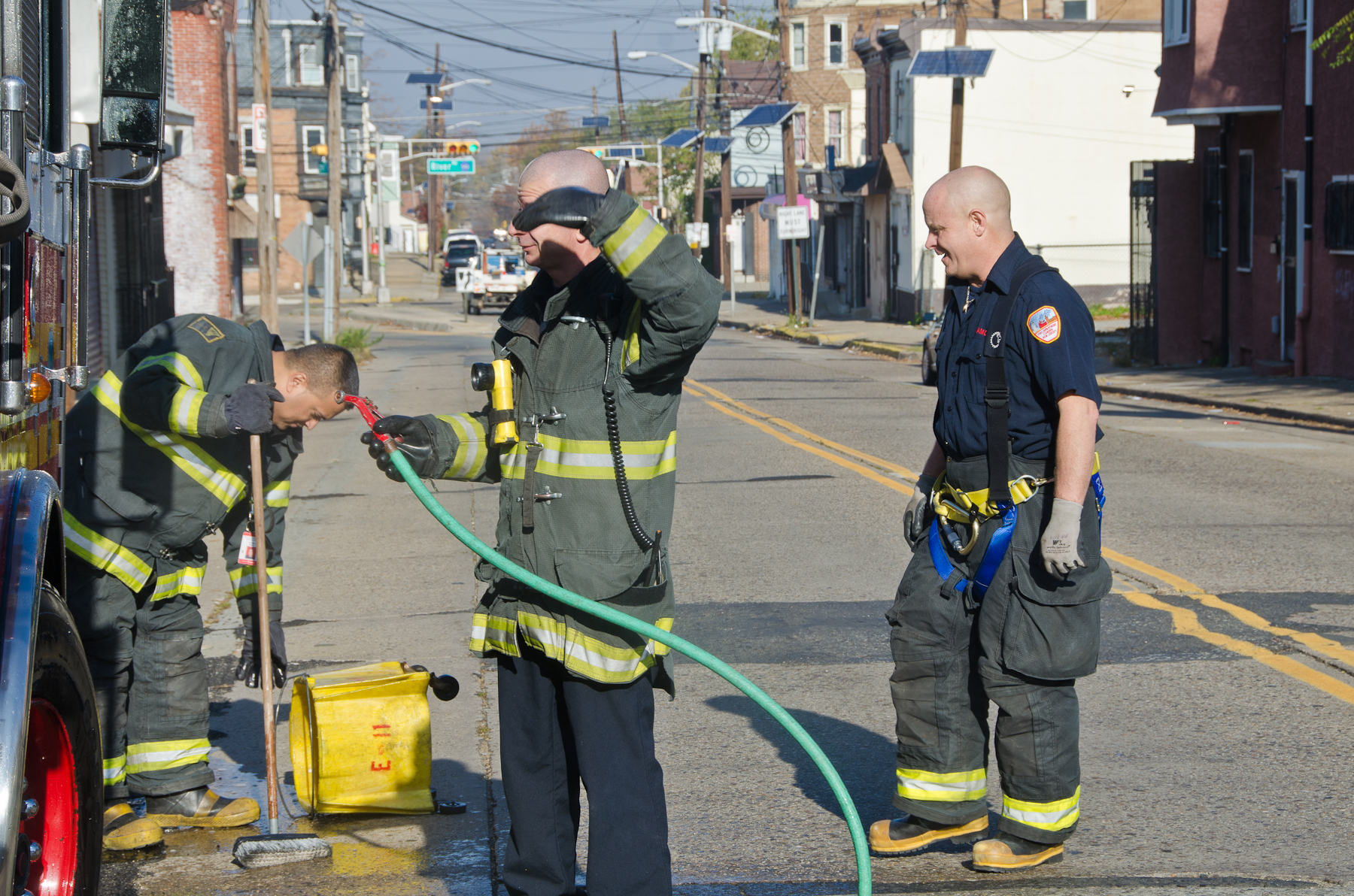 This page and the other pages in this series are the successors to the series of web-page about the Camden Fire Department that began with the page Camden Fire Department: The Fires of the Summer of 2011. On this and other pages in the series you will find pictures and information regarding different events and aspects of the fire service in Camden, New Jersey. I was at the post office on Federal Street when a call came over the radio sending Engine 11 to 26th and River Avenue to attend to a two-car accident. Happily enough, no one was hurt. Engine 11 returned to quarters, I stopped by to hang out for a bit and took some more pictures! As with the web page covering other Camden Fire Department events, if you can identify anyone that I've missed, please comment at the bottom of the page. (I'm terrible at at names and faces). January 14, 2013 |